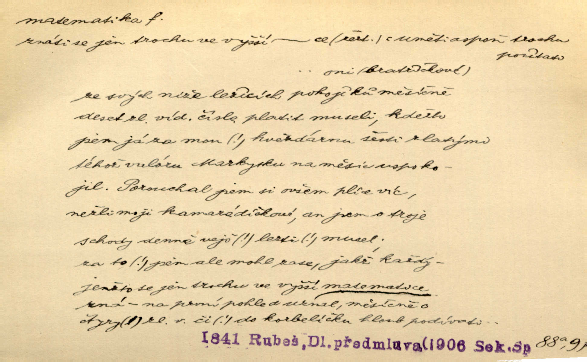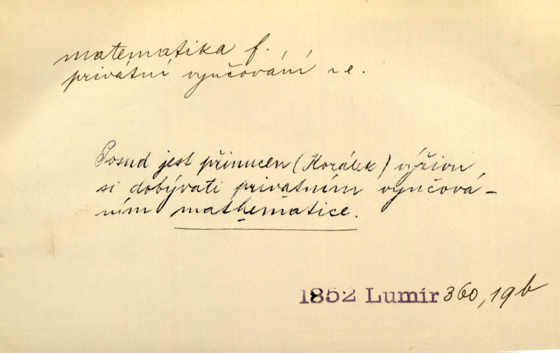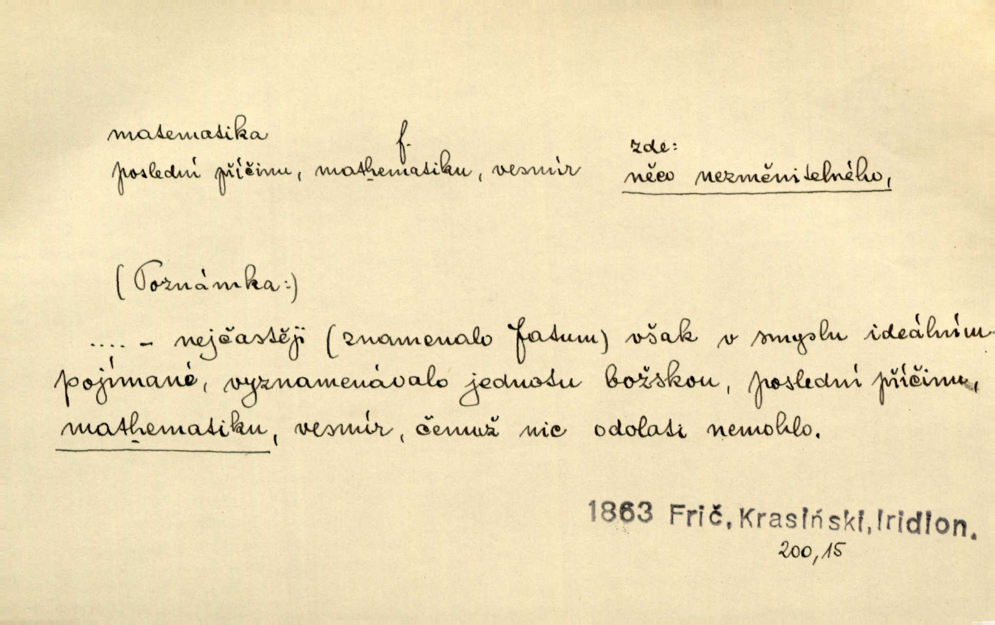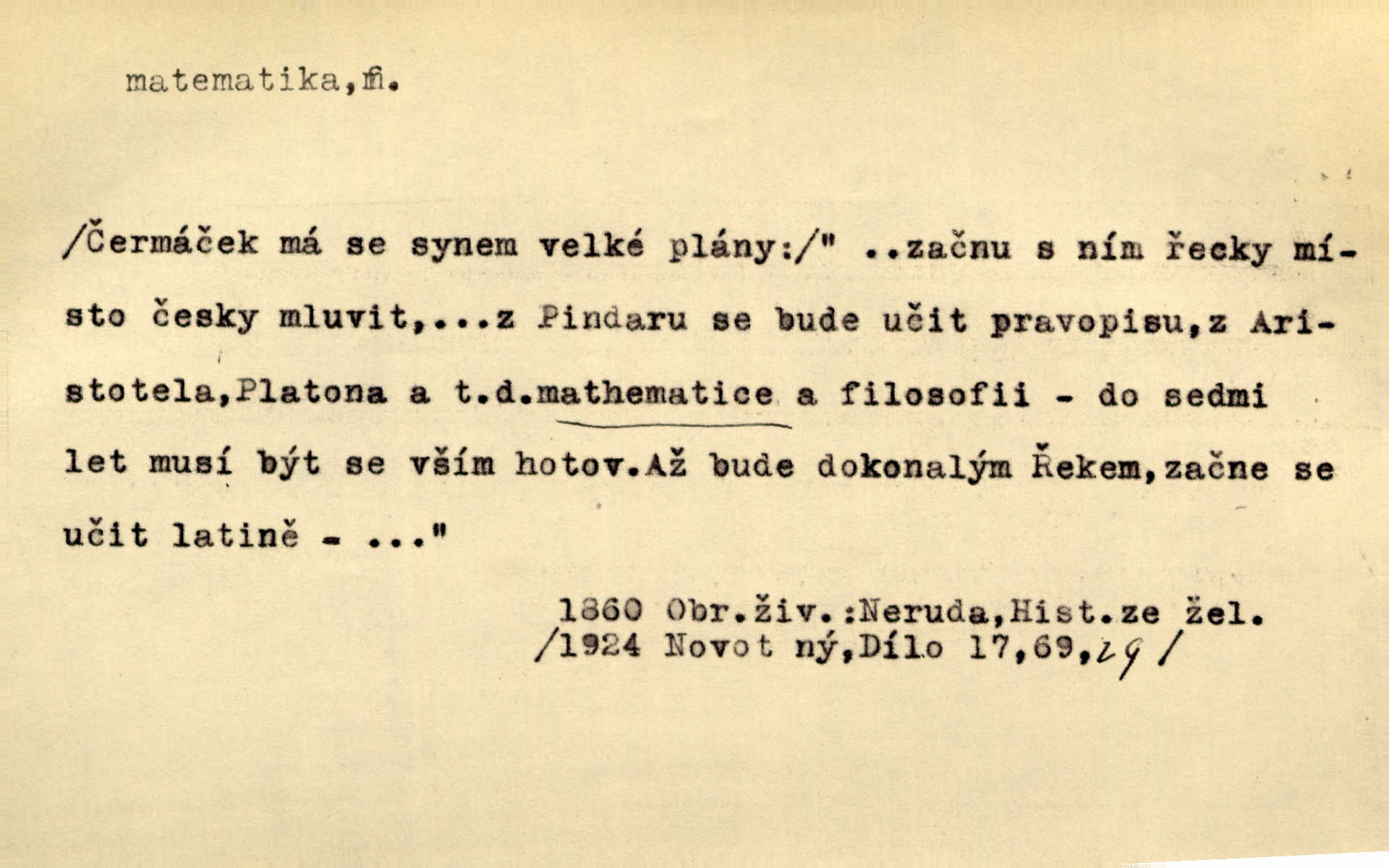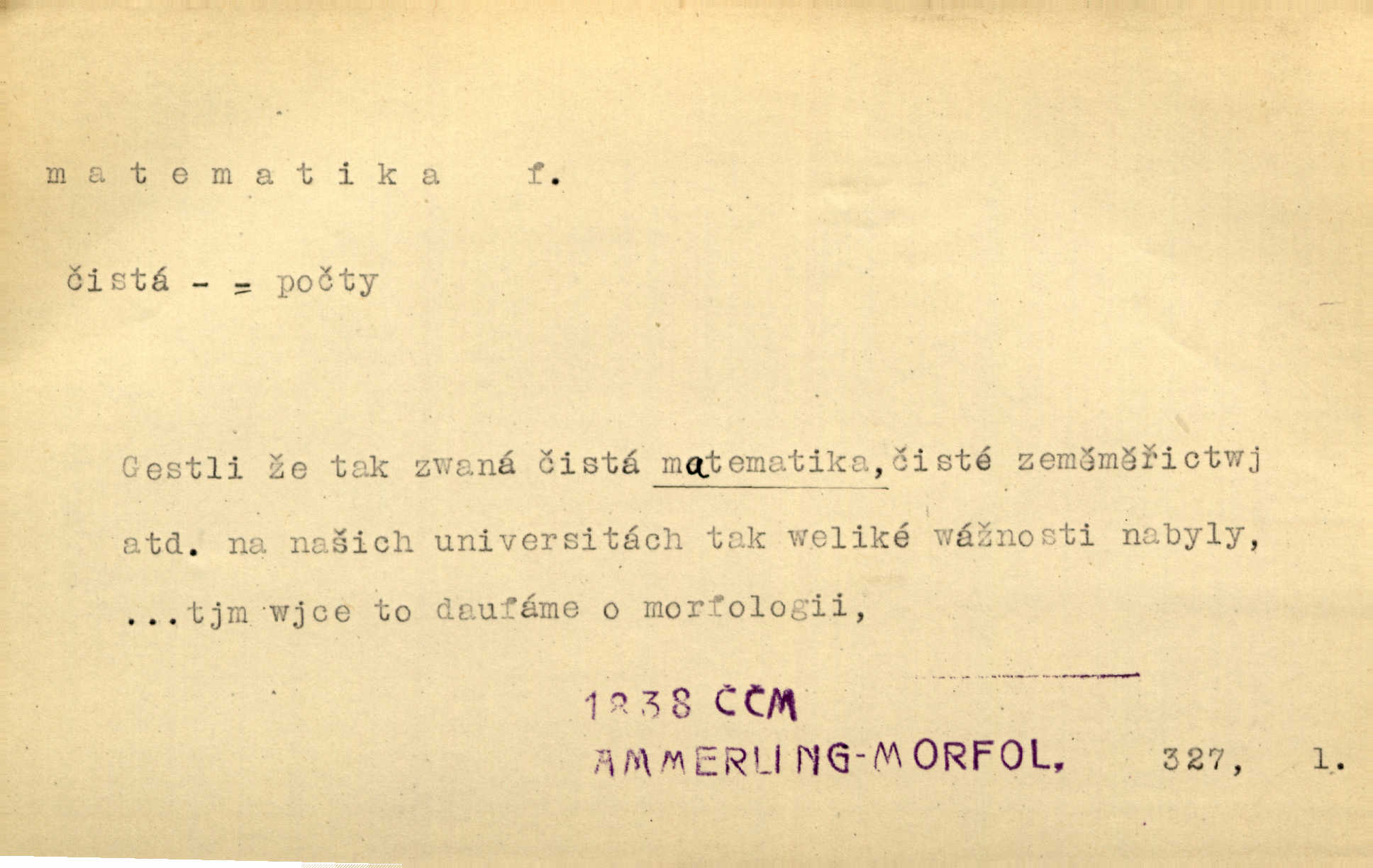 - matematika, -y f. věda o číselných a prostorových útvarech a vztazích. Plavala jsem [při písemné zkoušce] z matematiky. Čap. Ch. Dobrovský, domácí učitel mathematiky mladého hraběte z Nostic. Jir. To, prosím, je skoro tak jisté jako matematika: slabost láká útočníka, risiko odpuzuje. Přít. Mat. matematika čistá, užitá, pojišťovací a j.