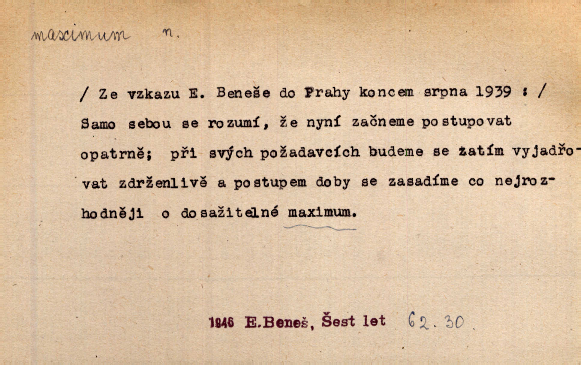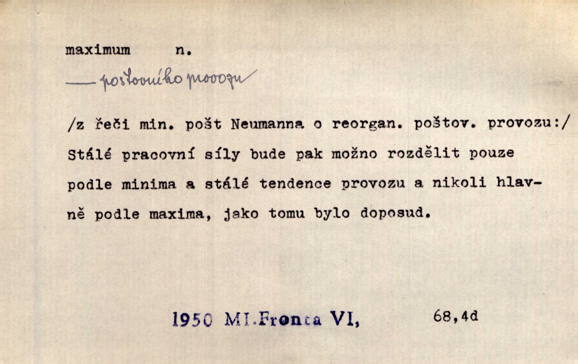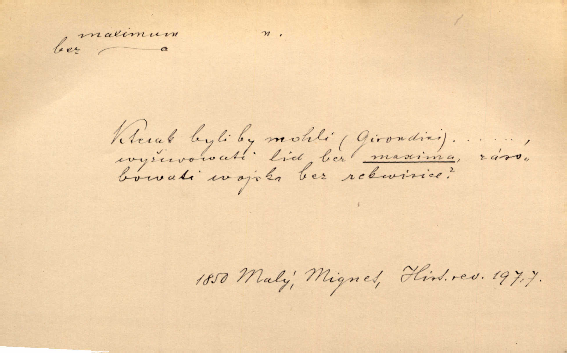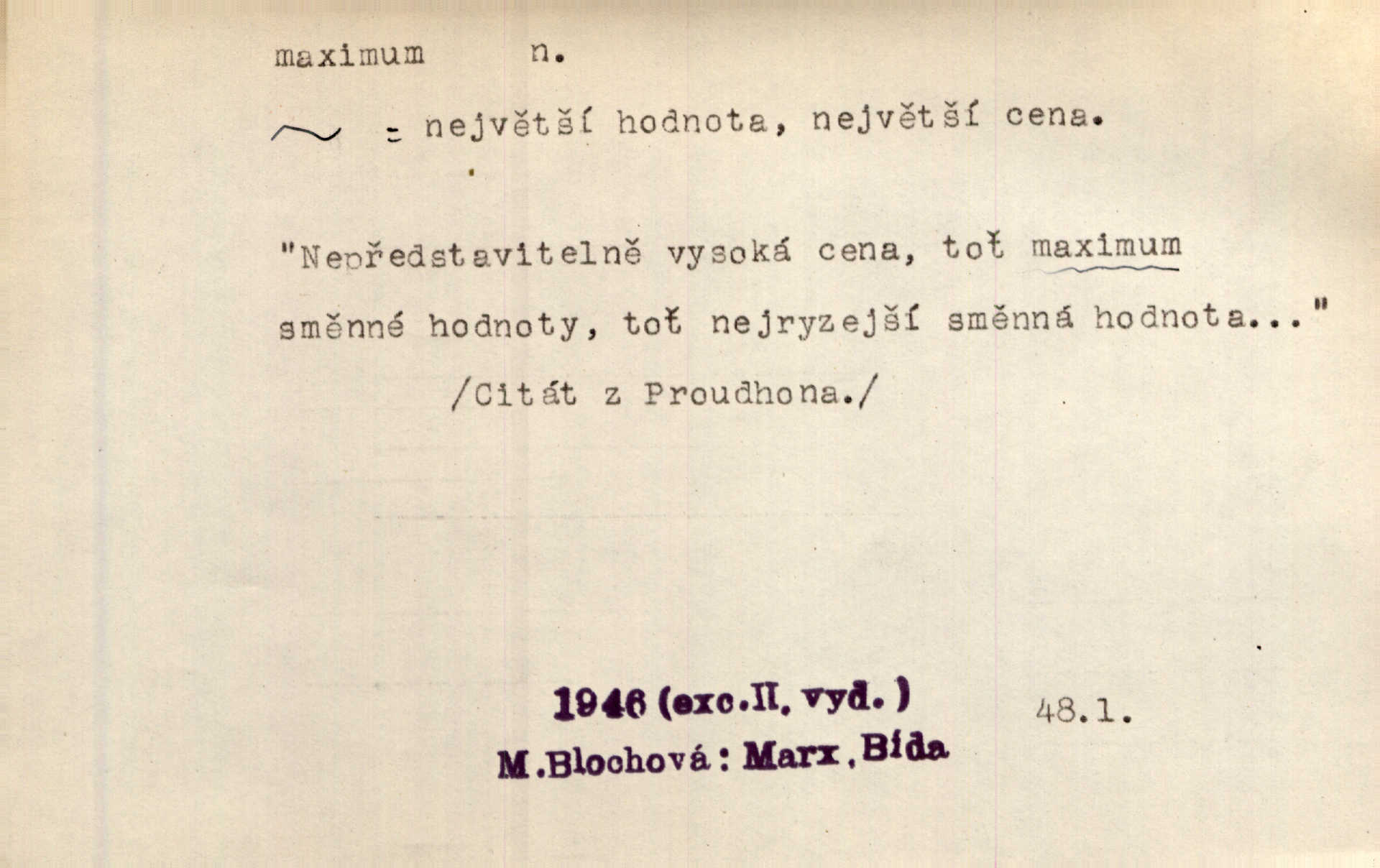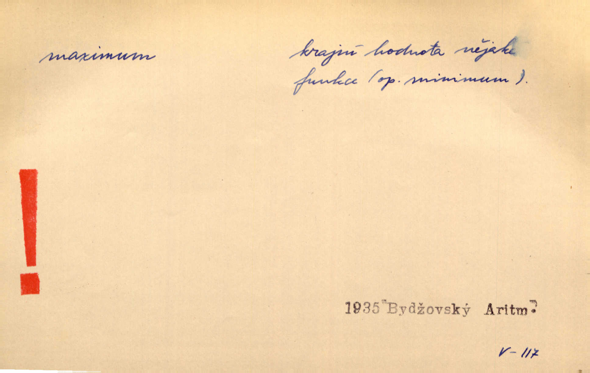 - maximum, -ima n. nejvyšší možná míra, největší možné množství (op. minimum). Pracovní doby prodloužil až na krajní maximum. Lier. Mládí nese v sobě maximum tragiky. Mah. Jeho [konstruktéra] činnost vedena jest touto jedinou myšlénkou: minimem síly přírodní dosáhnout maxima effektu. Naše d. Mat. krajní (extrémní) hodnota funkce (op. minimum). Meteor. nejvyšší hodnota meteorologického činitele, zvl. oblast poměrně nejvyššího tlaku (op. minimum).