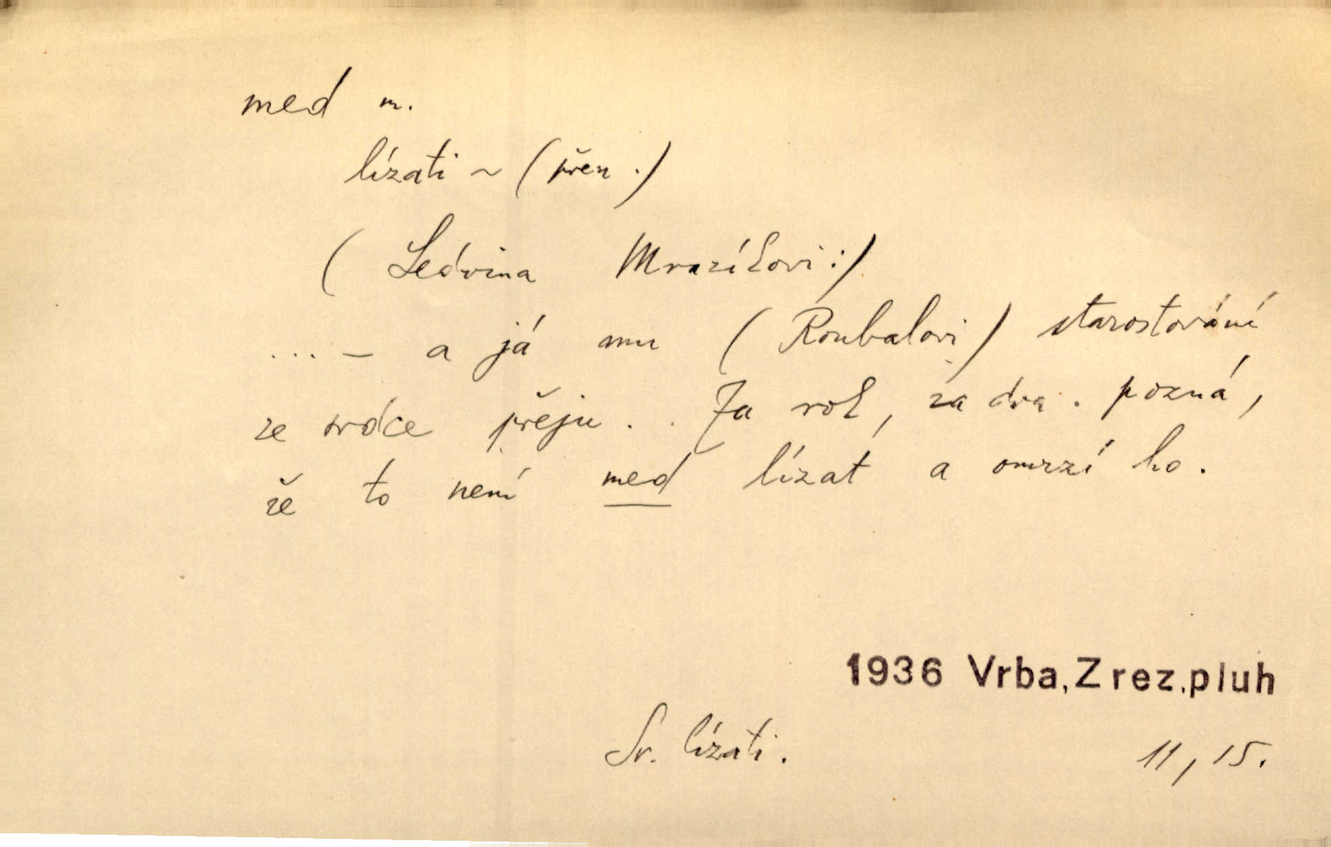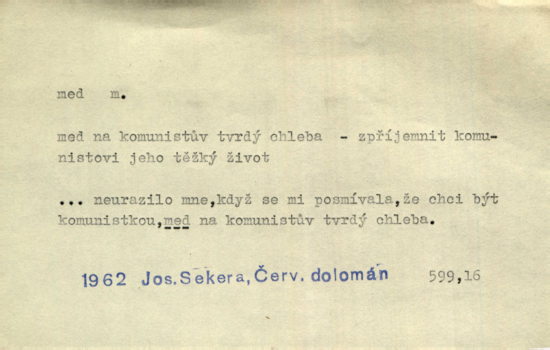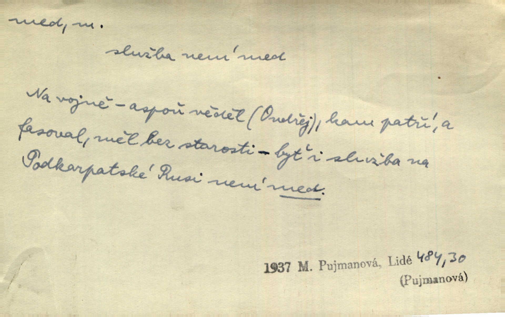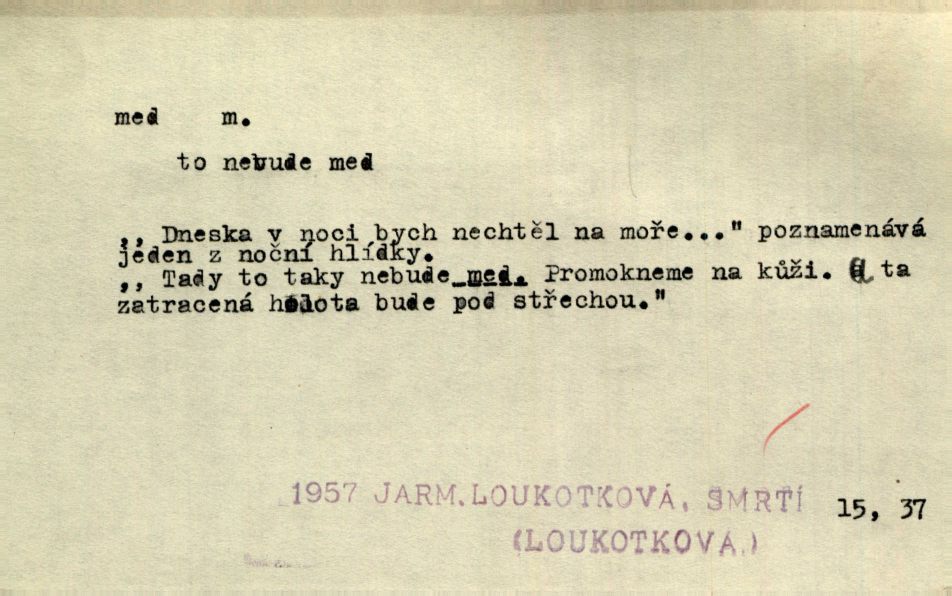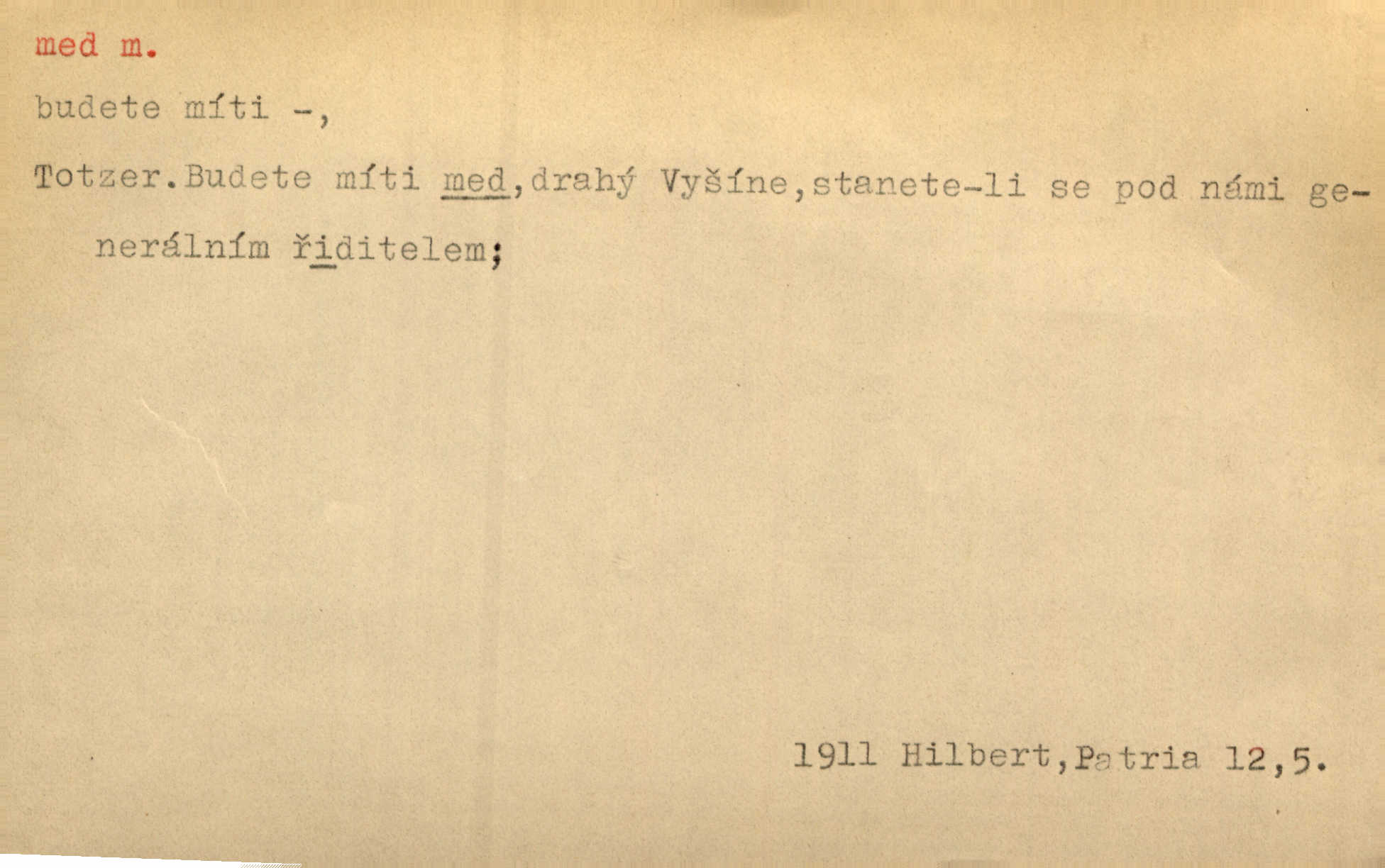- med, -u m. sladká, hustá šťáva, kterou včely po květech sbírají, v svých útrobách uzpůsobují a ukládají do buněk v plástech. Na stolku byly dobré buchty, chléb, med, pomazánka. Něm. Pod sladkým medem tráví lidi jedem úlisností. Pořek. Od včely pochází med, od hada jed. Přísl. Tentokrát nás měla ráda sv. Hedvika, o které se říká, že do řepy ještě medu nalívá v polovici října nejvíce cukernatí řepa. A. Mrš. Přen. V stínu stromů chutná líp rtů dívčích med sladké rty. Vrch. Jenický nechal brzy všeho medu a vší laskavosti, když mu se svatovým bohatstvím zmehlo lichocení. Jir. Ustál. sp. Matka ke mně byla jako med, zvali mě, trachtili velmi přívětivá. Herrm. Je to člověk jako med vlídný, laskavý. Herb. Táhlo se to za mnou jako mouchy za medem. Baar. Slova jeho plynula lahodně jako med. Zey. Pan školní rada mluvil, jako když medu ukrajuje. Vrba. Taková hezká slečinka! Ta se vdá jako med! snadno. R. Svob. Já mu starostování ze srdce přeju. Za rok, za dva pozná, že to není med lízat, a omrzí ho příjemná věc. Vrba. Musíš se na službách protírati mezi cizími lidmi, a dobře víš, že to není žádný med. Šmil. Tu noc nebyla služba [strážníků] žádným medem. Vach. Med vám [Čechům] bude [Aeneáš Sylvius] mazat kolem úst lichotiti. Jir. Co pak teď — teď jsou [syn se ženou] ještě samej med a mandle milují se, jsou v líbánkách. Šim. Borovec byl samý cukr a med samá laskavost, velmi roztomilý. Šmil. Cukr. Turecký med halva, výrobek z pšeničné mouky, másla, medu, sesamového oleje a mandlí n. ořechů. Umělý med. Typ. slang. vysázená, ale ještě nevyplacená práce počítajícího sazeče. D medovina. Med, pivo a víno jsem tam pil. Čel. Praotec váš… zpit medem topor robil k loupežím. Heyd.