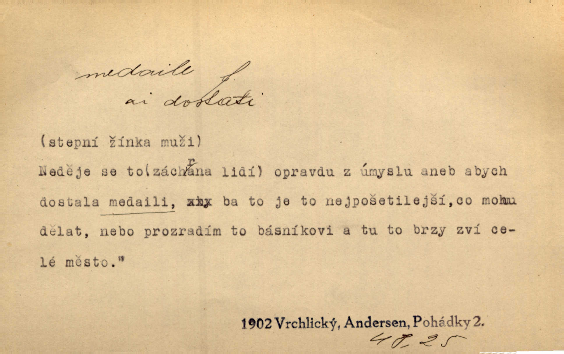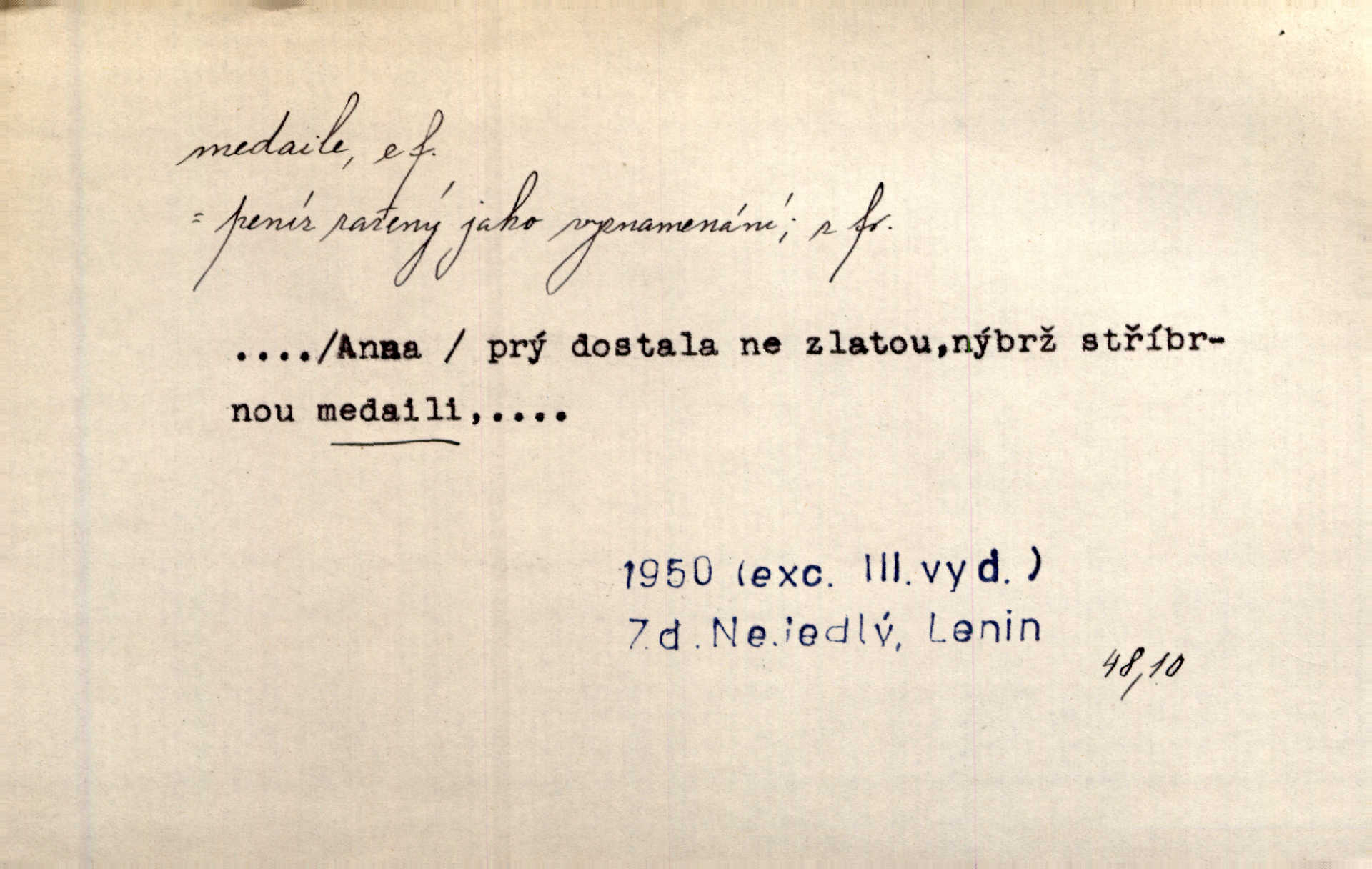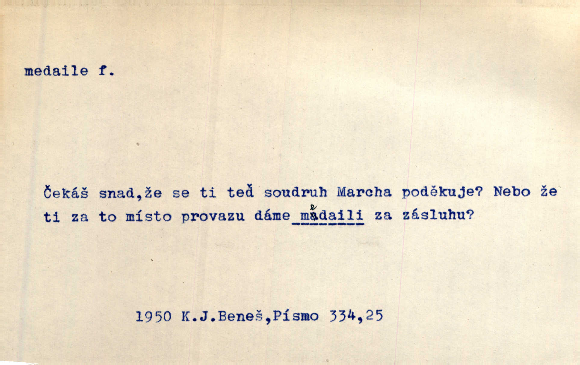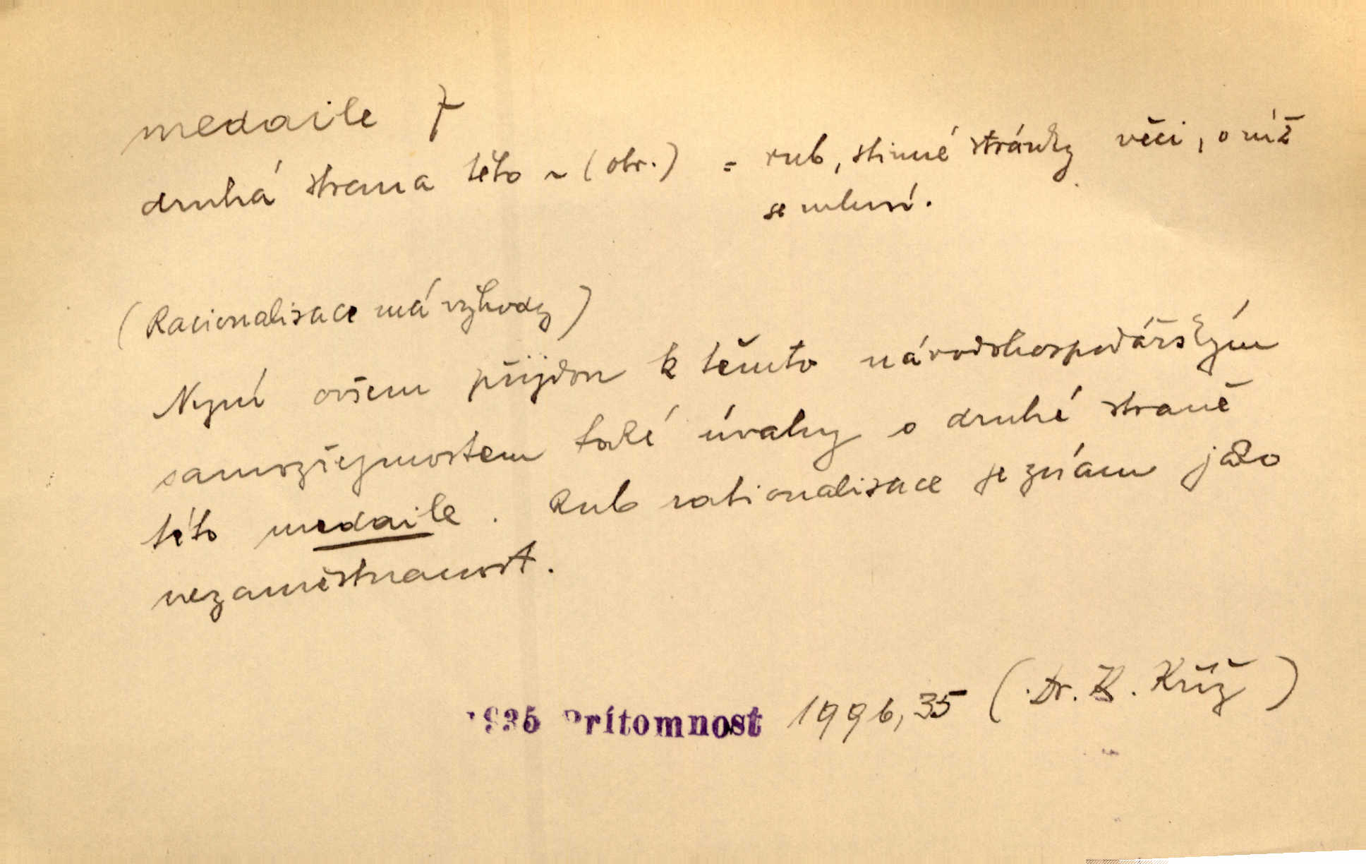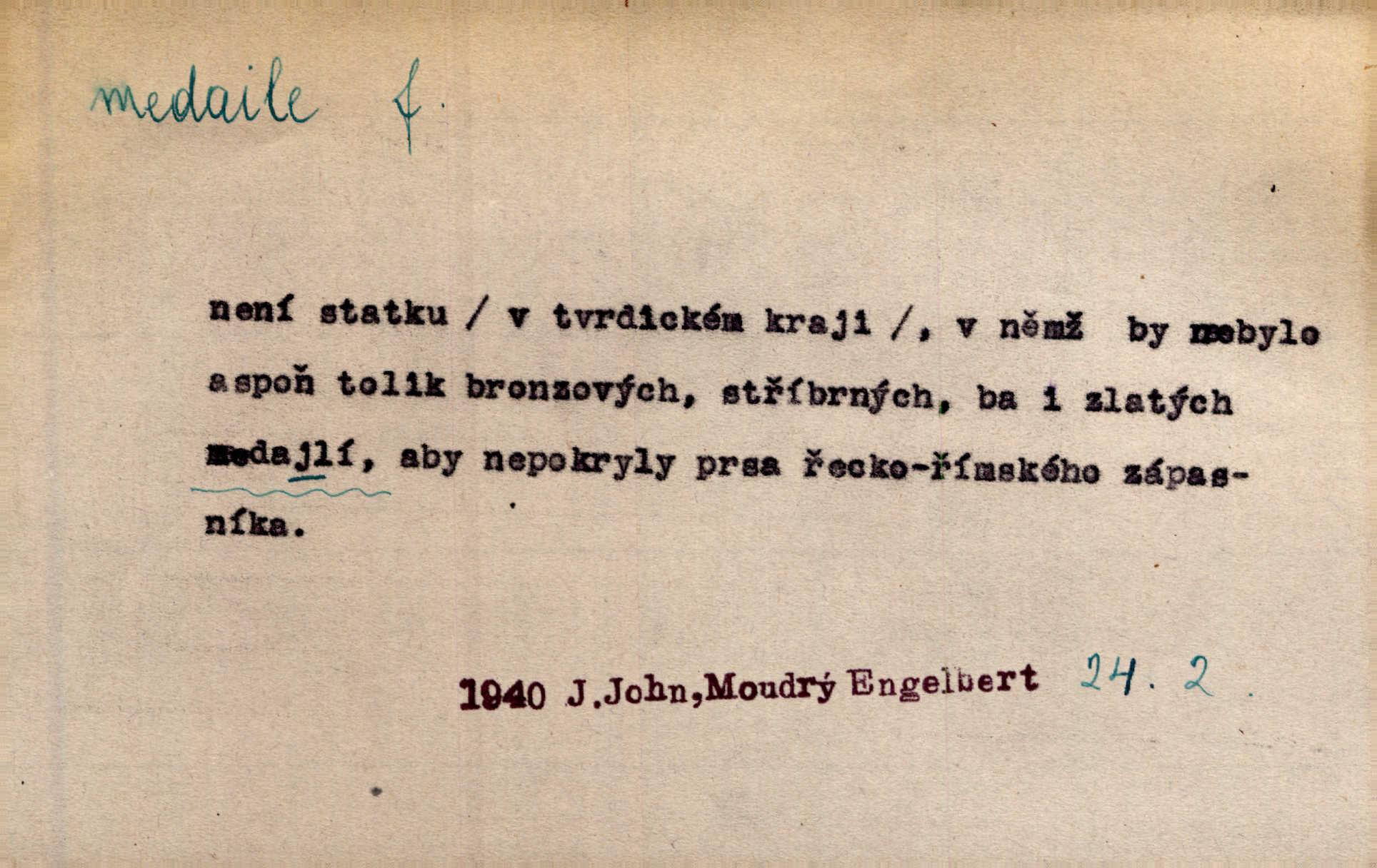 - medaile (lid. také medalie), -e f. záslužný peníz, vyznamenání, řád. Sedělo tam několik důstojníků, většinou s lesklými medaillemi na prsou. Jir. Premianti na gymnasiu dostávali tenkráte zlacené a postříbřené medaile. Jir. Československá revoluční medaile. Medaile vítězství. Za svou rozvahu a hrdinský skutek dostal stříbrnou medalii. Jir. Na jeho [vysloužilcově] kabátě nikdo nikdy nespatřil vojenskou válečnou medalii. Baar. D pamětní peníz. Jedná se o pomníku Janu Kollárovi a o medailli, ježto k jeho památce bude lita. Lum. Nyní ovšem přijdou také úvahy o druhé straně této medaile. Rub racionalisace je znám jako nezaměstnanost o stinné stránce této věci. Přít.