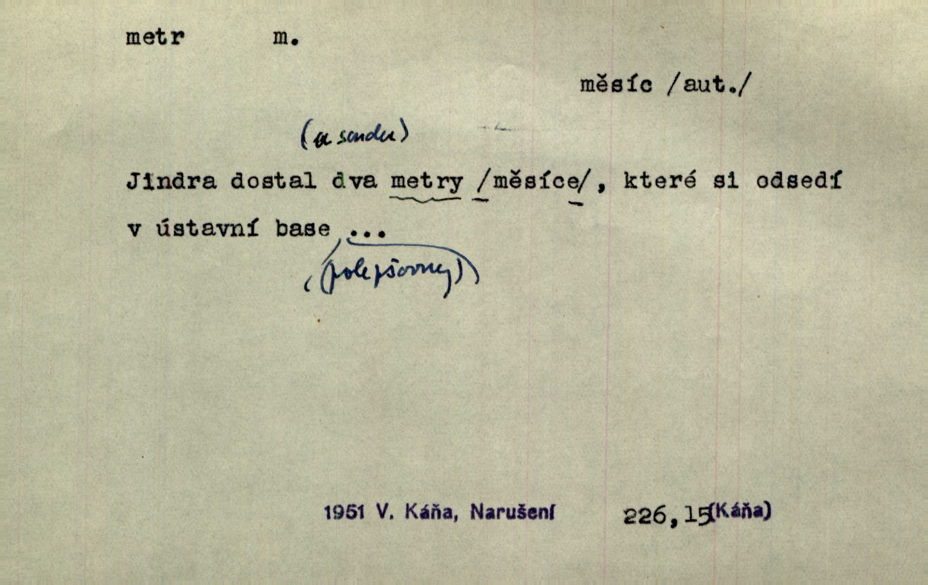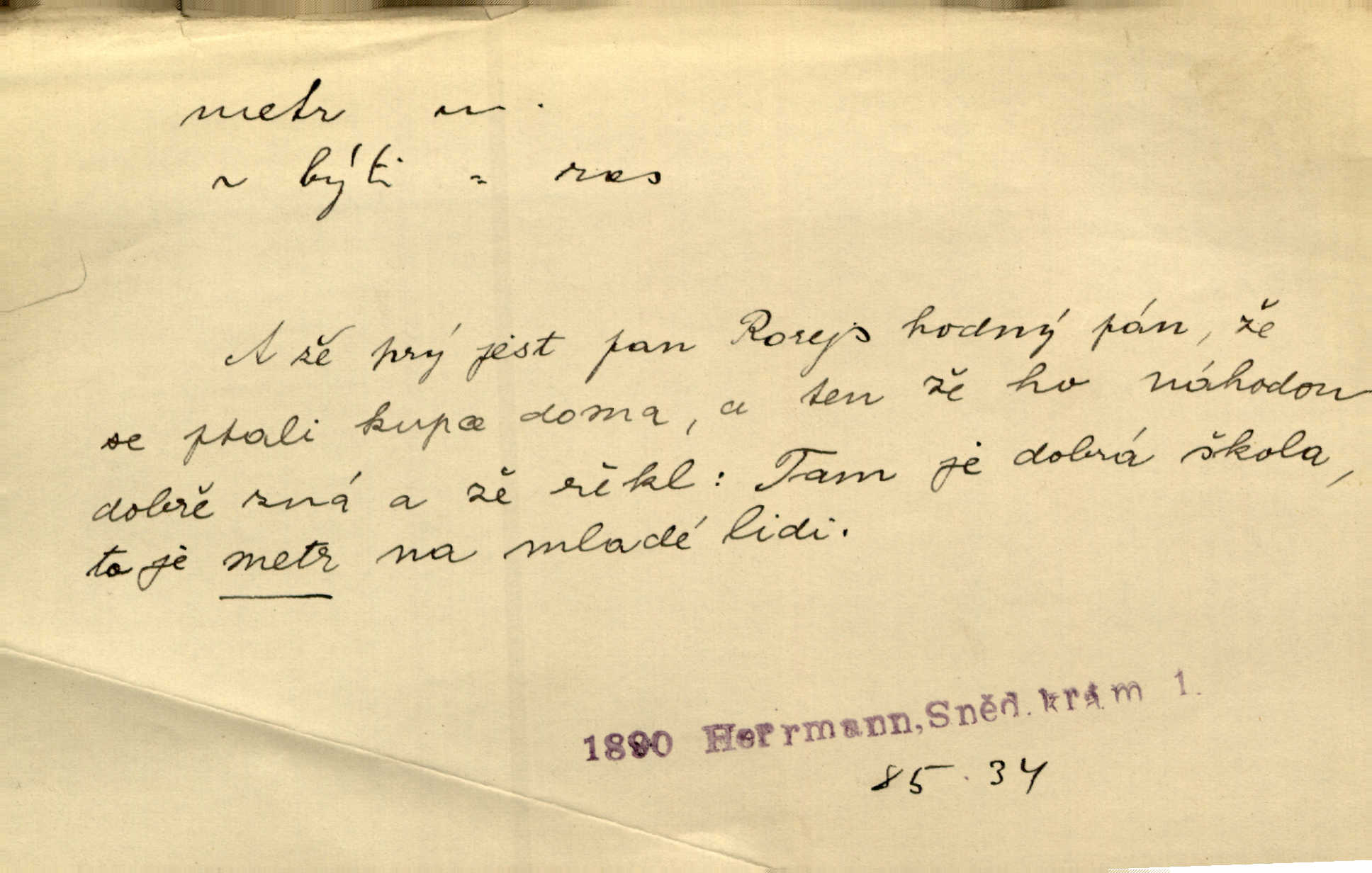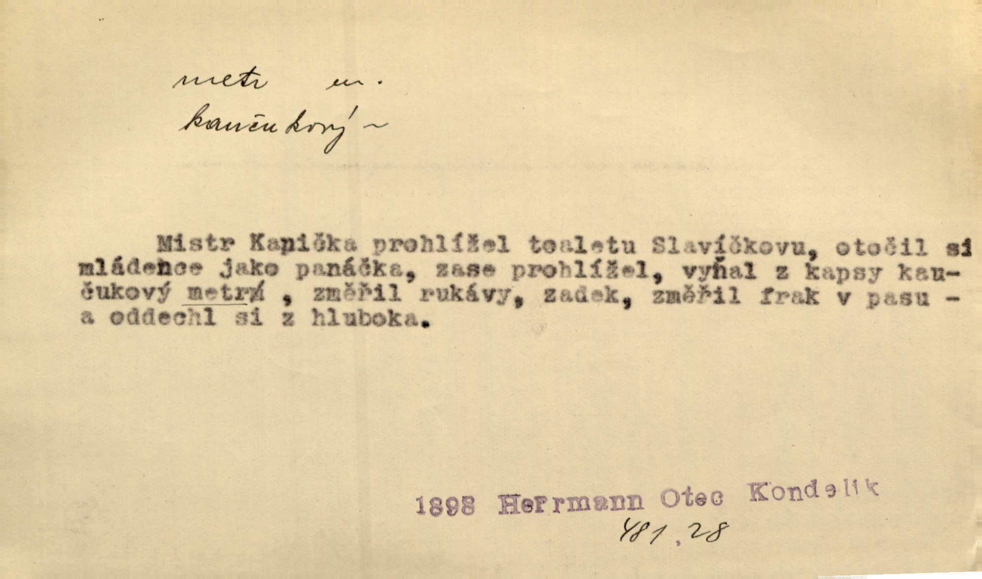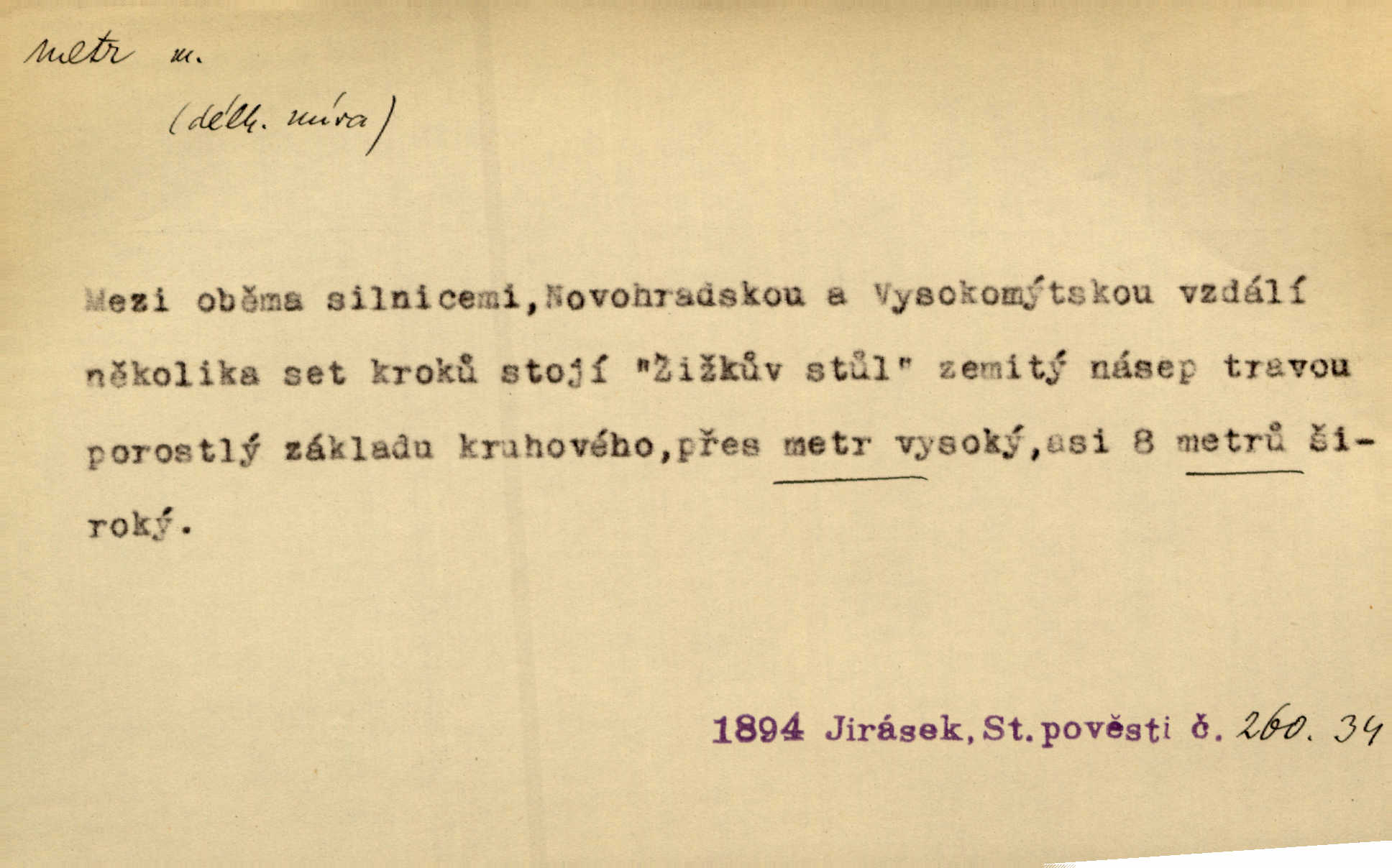 - metr, -u m. základní jednotka délkové míry, přibližně desítimiliontá část čtvrtiny zemského poledníku. Metr délkový, čtvereční, krychlový, pevný, prostorový. D měřítko dlouhé jeden metr. Vzal metr a měřil zas výšku. A. Mrš. Vytáhl z kapsy pláště skládací metr. Těs. Krejčovský metr a j. D vyrovnaná hranice dřeva obsahující 1 krychlový metr. V lese s mužem porážela a do metrů skládala dříví. V. K. Jeř. Dříví v metrech složené se bělalo. Baar. Do neděle to [polena] máme v metrech. Mor. D metr, -a expr. zdatný, energický n. ostrý, přísný člověk. Ta kovářka, to je metr; kdyby té nebylo, už by Viktorka víc nechodila. Něm. Karlíček je dobrý, přičinlivý, bude z něho metr! Krás. Pouštět hrůzu na sedláky, na to on je metr. Havl. Náš táta je na holky metr, žádnou lenoru jim netrpí. Rais. Kojan se zvolna probíral z rozespaní a jasně ji chápal, jakého metra má před sebou. Hol. To jsme na sebe pozvali [do karetní hry] pěkného metra. Herrm. D Argot. měsíc vězení. Stálo to [rvačka] tenkrát pět metrů. Těs.