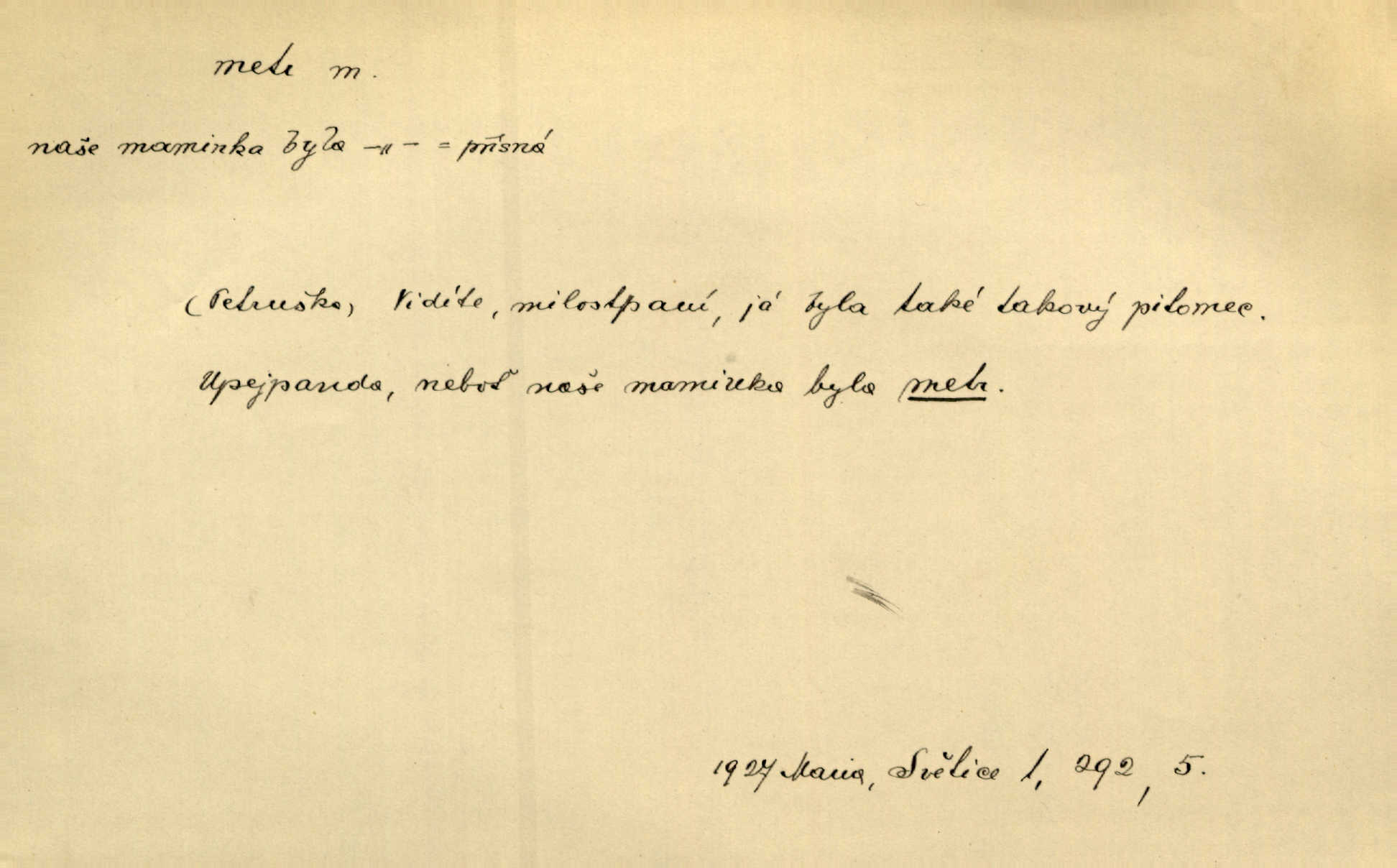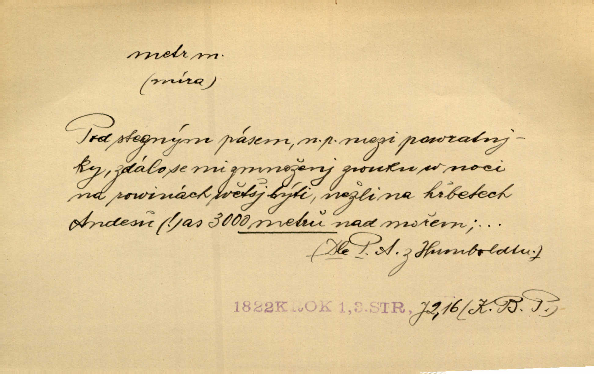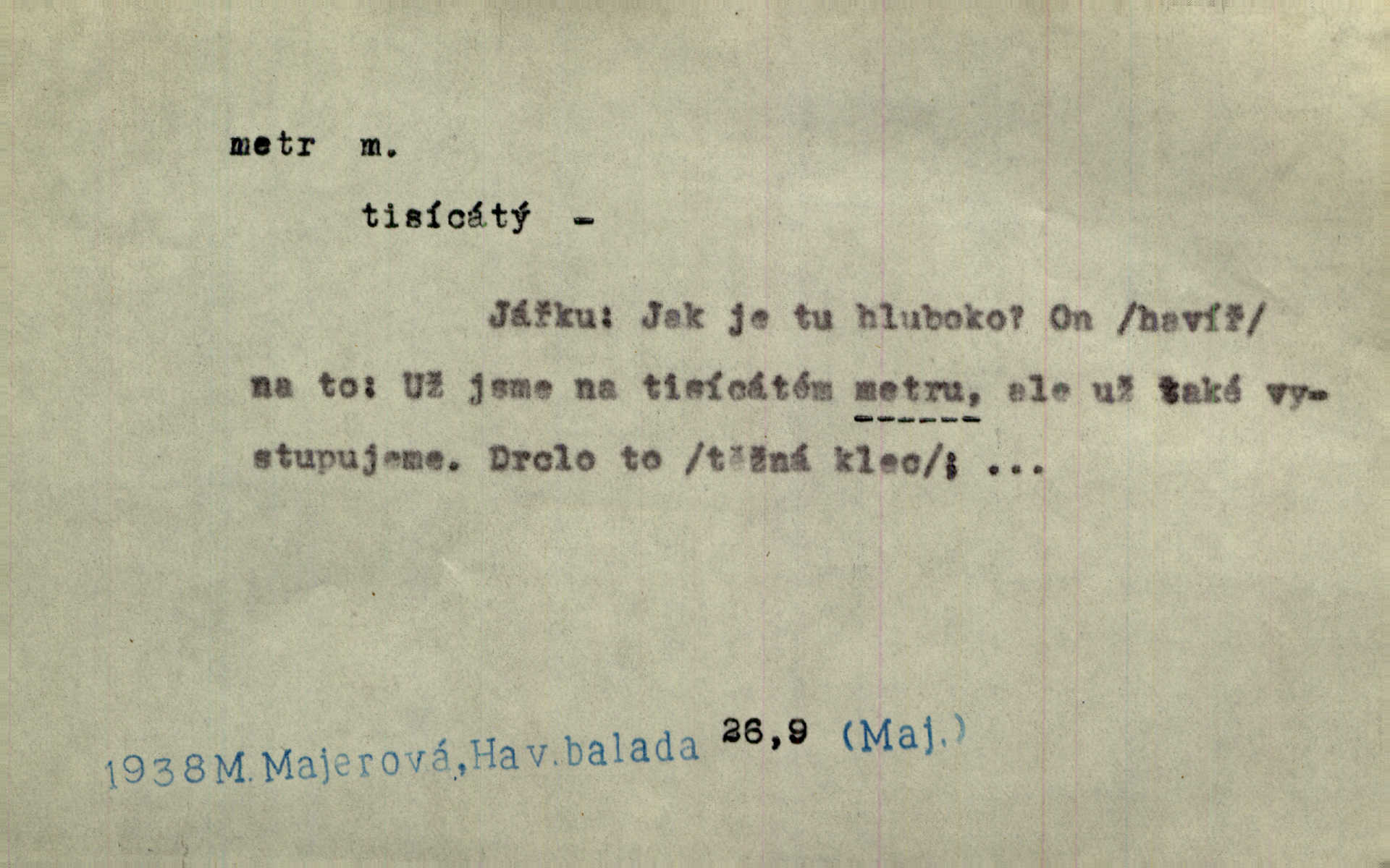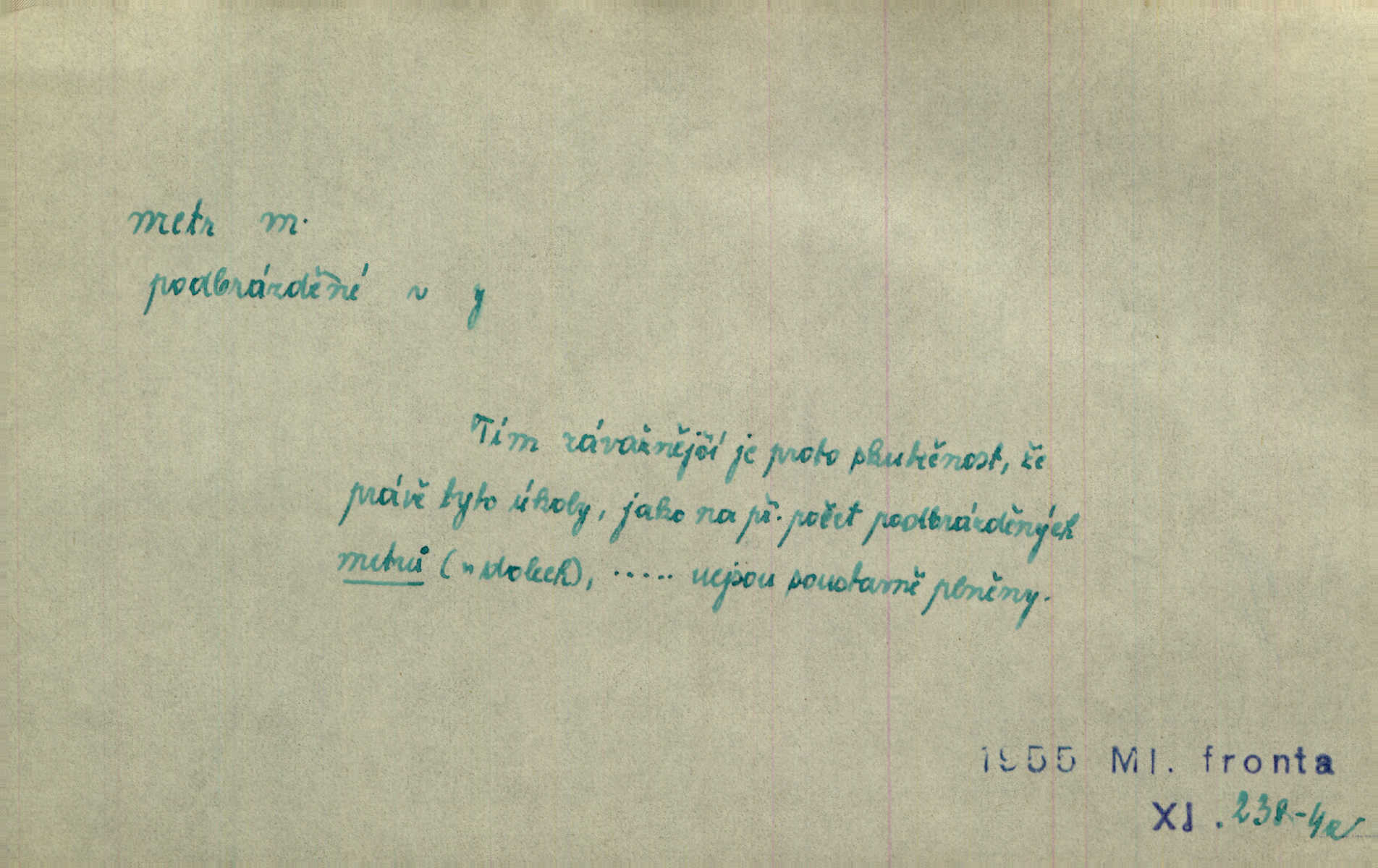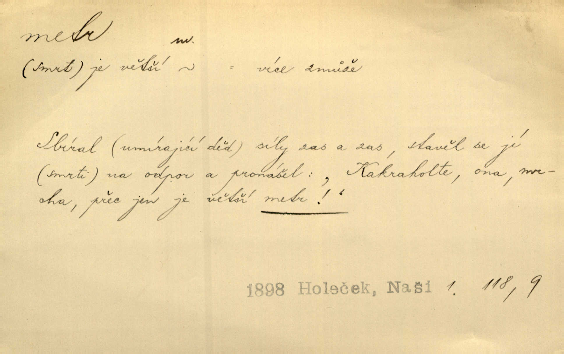 - metr, -u m. základní jednotka délkové míry, přibližně desítimiliontá část čtvrtiny zemského poledníku. Metr délkový, čtvereční, krychlový, pevný, prostorový. D měřítko dlouhé jeden metr. Vzal metr a měřil zas výšku. A. Mrš. Vytáhl z kapsy pláště skládací metr. Těs. Krejčovský metr a j. D vyrovnaná hranice dřeva obsahující 1 krychlový metr. V lese s mužem porážela a do metrů skládala dříví. V. K. Jeř. Dříví v metrech složené se bělalo. Baar. Do neděle to [polena] máme v metrech. Mor. D metr, -a expr. zdatný, energický n. ostrý, přísný člověk. Ta kovářka, to je metr; kdyby té nebylo, už by Viktorka víc nechodila. Něm. Karlíček je dobrý, přičinlivý, bude z něho metr! Krás. Pouštět hrůzu na sedláky, na to on je metr. Havl. Náš táta je na holky metr, žádnou lenoru jim netrpí. Rais. Kojan se zvolna probíral z rozespaní a jasně ji chápal, jakého metra má před sebou. Hol. To jsme na sebe pozvali [do karetní hry] pěkného metra. Herrm. D Argot. měsíc vězení. Stálo to [rvačka] tenkrát pět metrů. Těs.