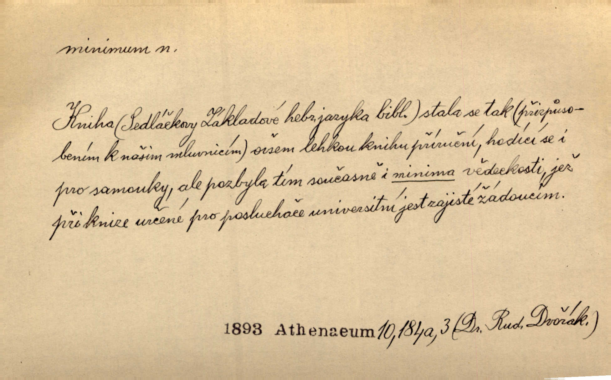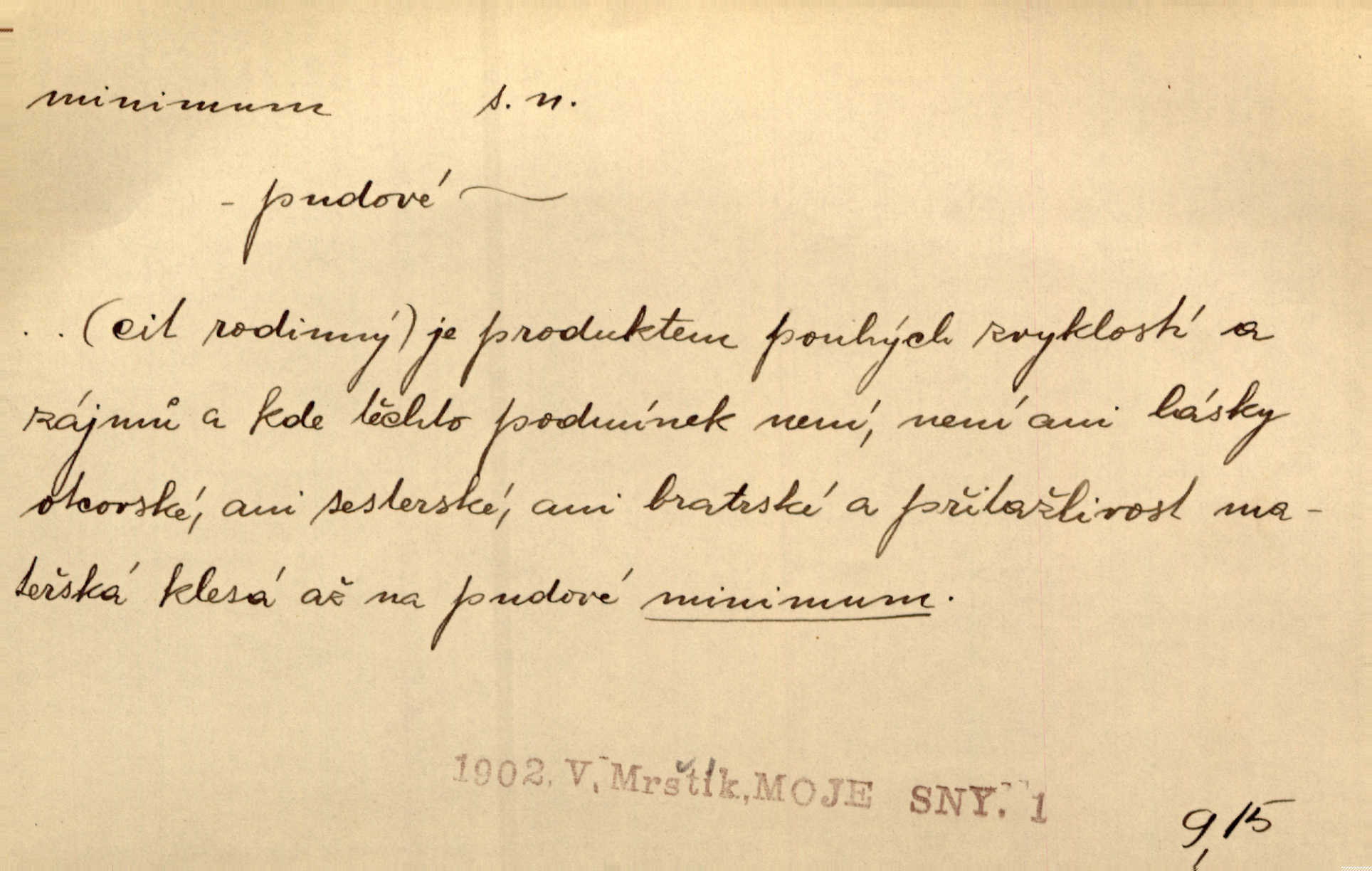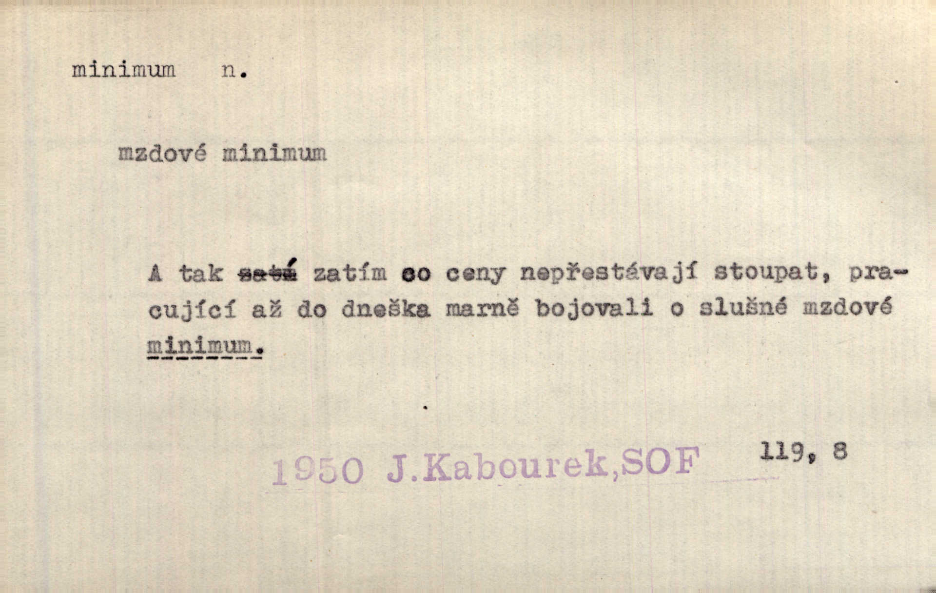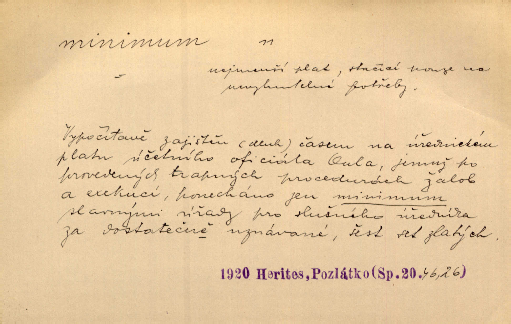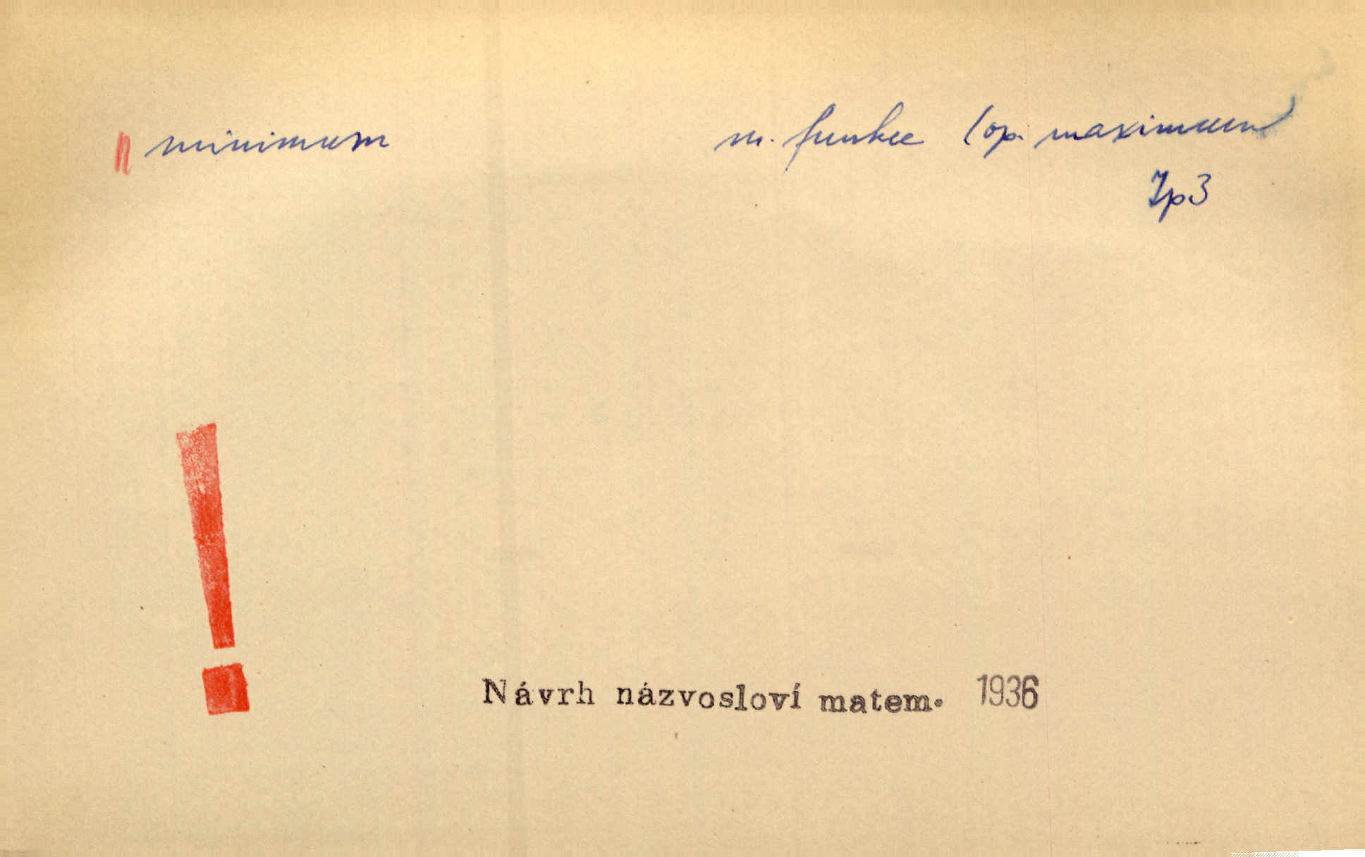 - minimum (vysl. -ny-), -nima n. nejmenší hodnota, míra, nejmenší částka nějaké veličiny (op. maximum). Vypravovatelská funkce epikova stlačena na minimum. Sez. Myslíte, že se dá důtkami pomoci zemi, která po dobrém nevydala ani minimum své obětavosti? Kop. Existenční minimum důchod naprosto nutný k uhájení živobytí. Fys. minimum tlaku nejnižší tlak, který v uvažovaném ději nastal.