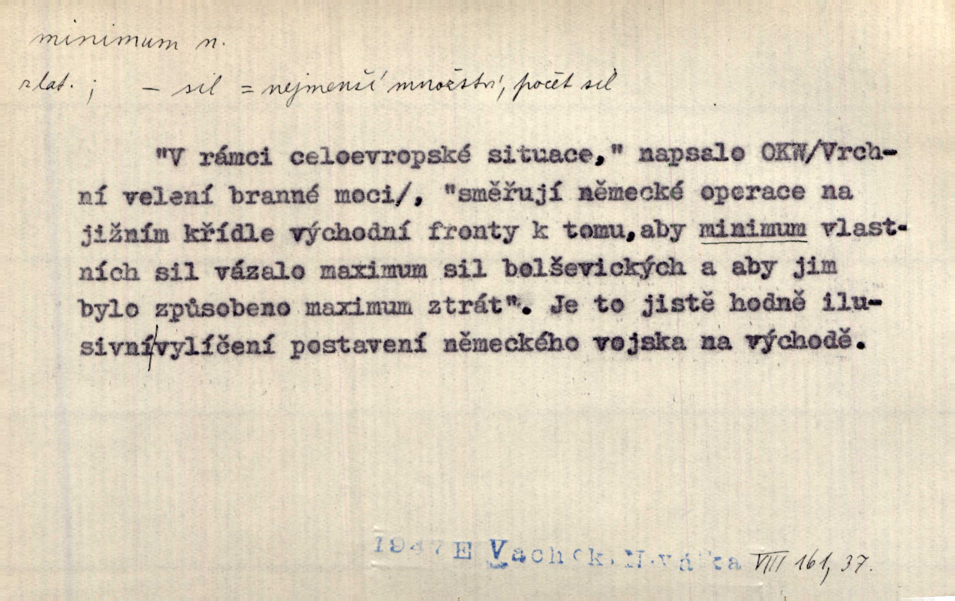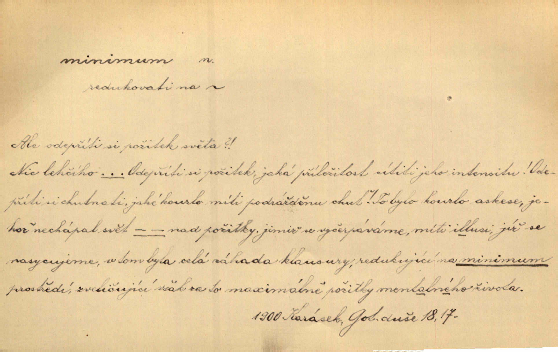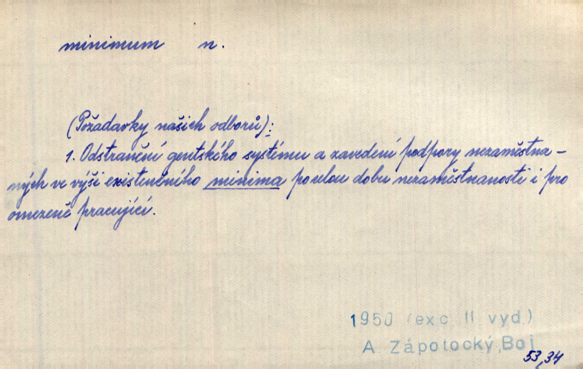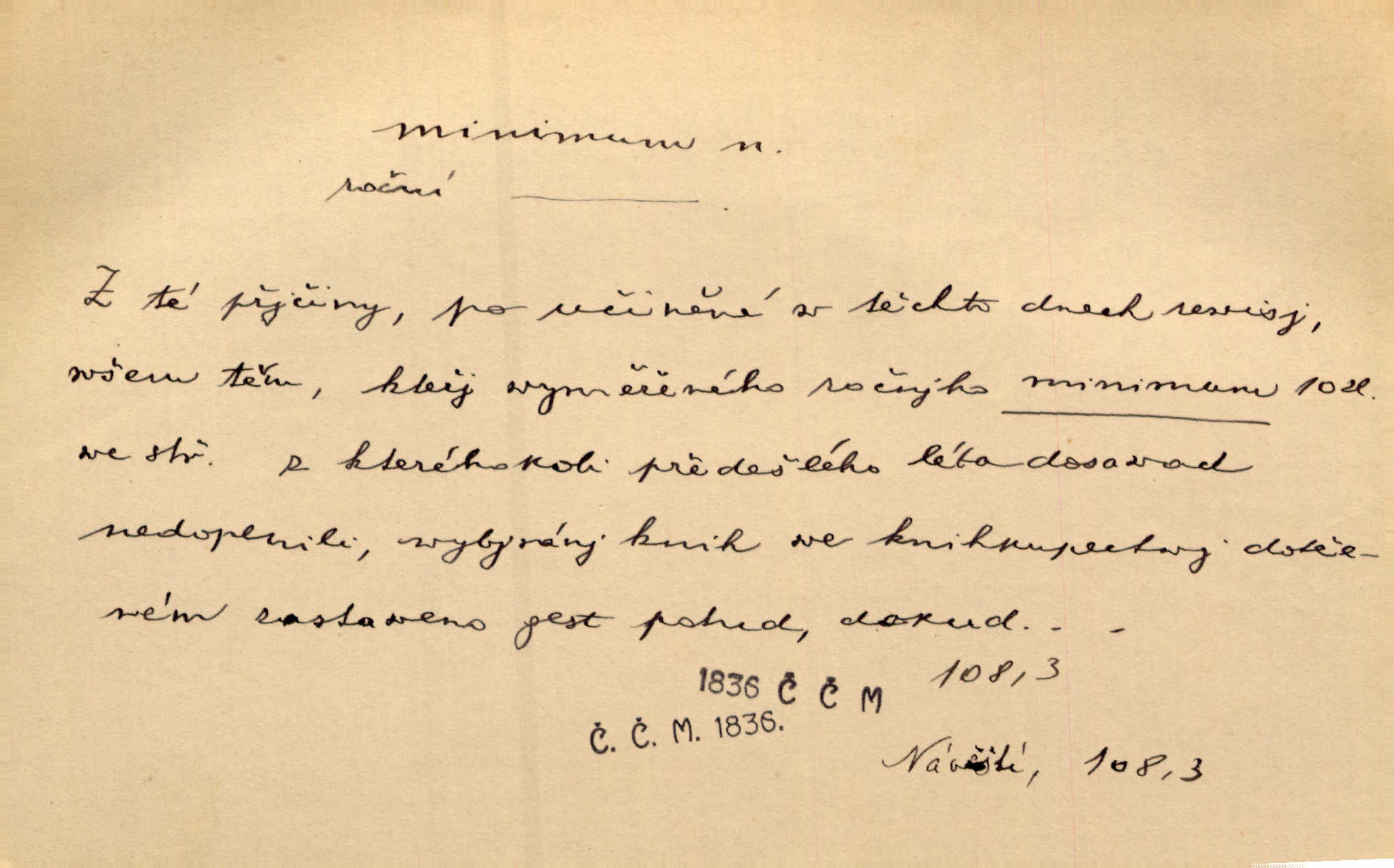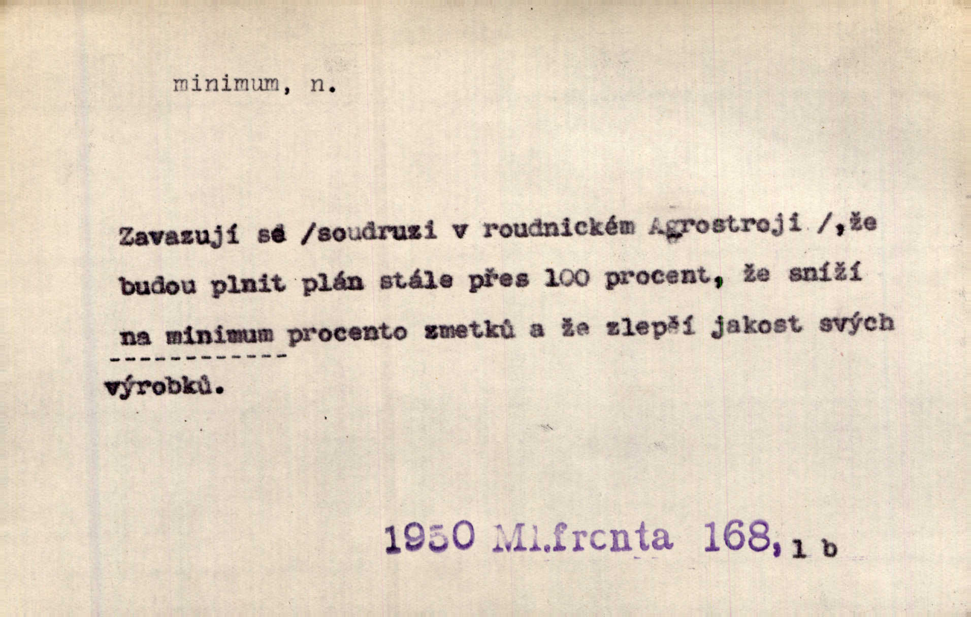 - minimum (vysl. -ny-), -nima n. nejmenší hodnota, míra, nejmenší částka nějaké veličiny (op. maximum). Vypravovatelská funkce epikova stlačena na minimum. Sez. Myslíte, že se dá důtkami pomoci zemi, která po dobrém nevydala ani minimum své obětavosti? Kop. Existenční minimum důchod naprosto nutný k uhájení živobytí. Fys. minimum tlaku nejnižší tlak, který v uvažovaném ději nastal.