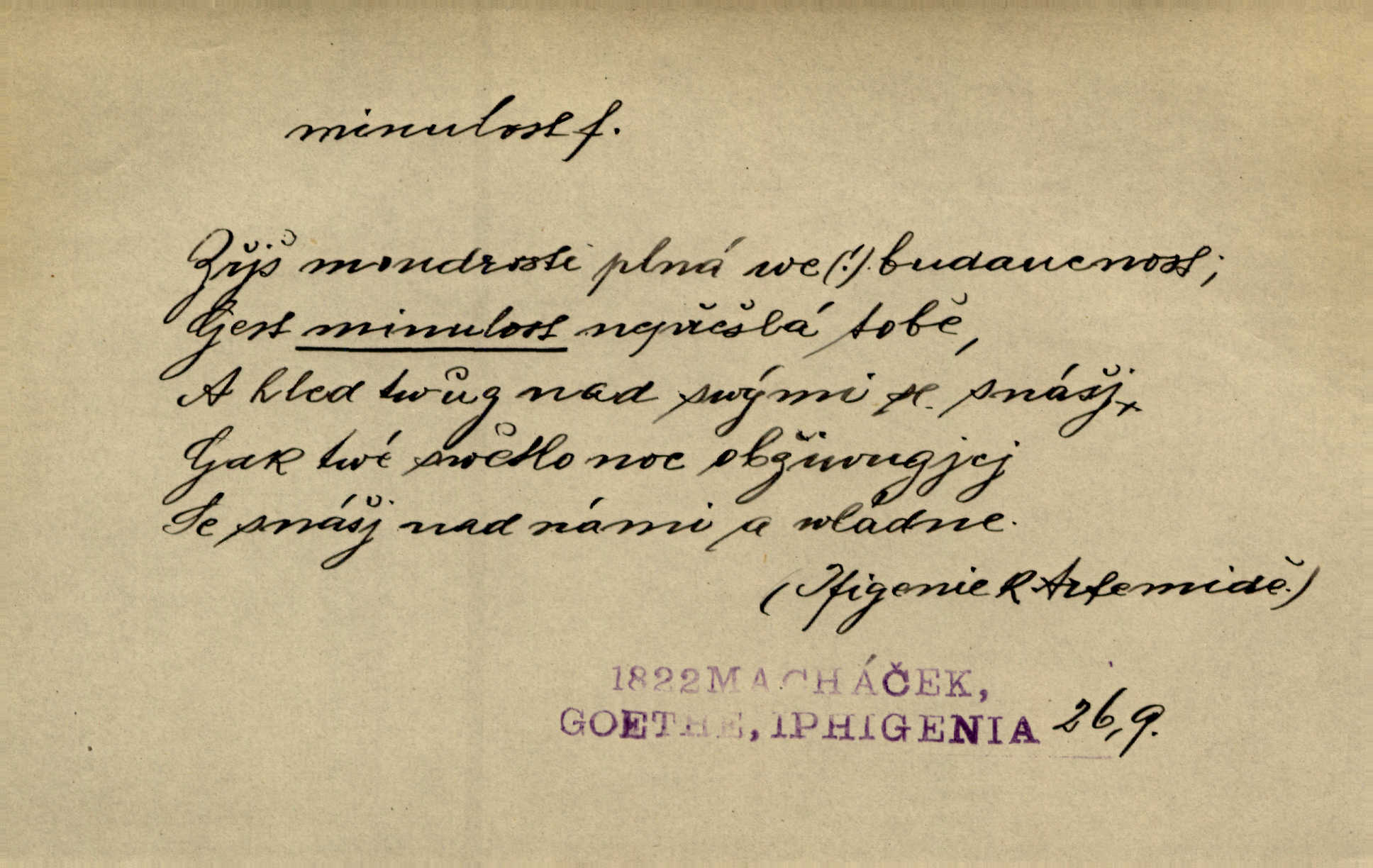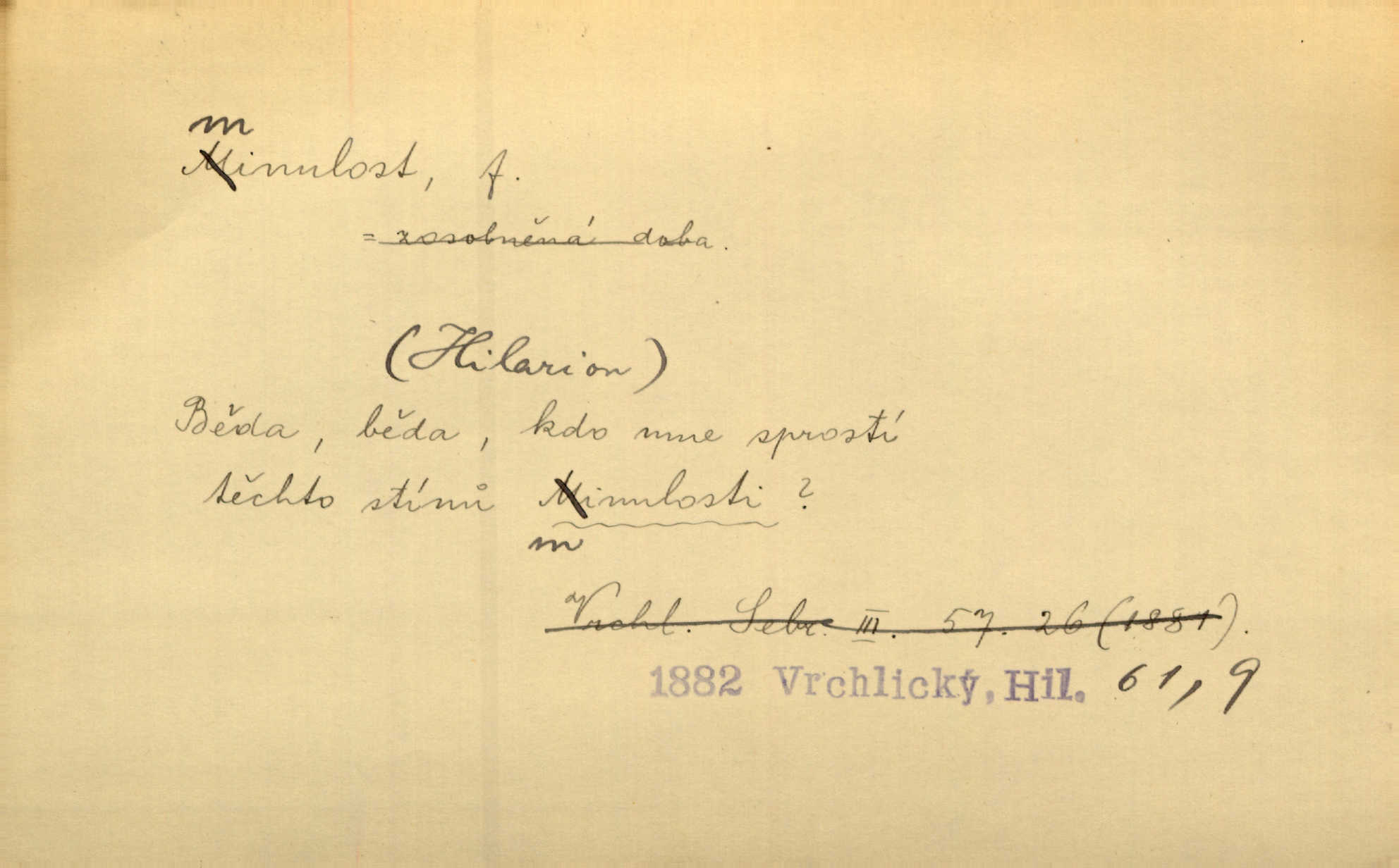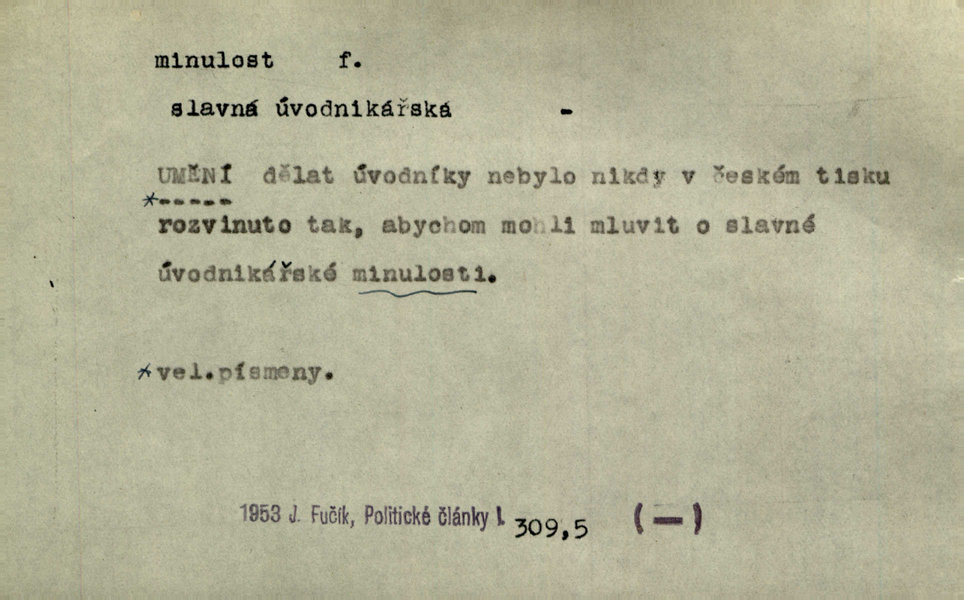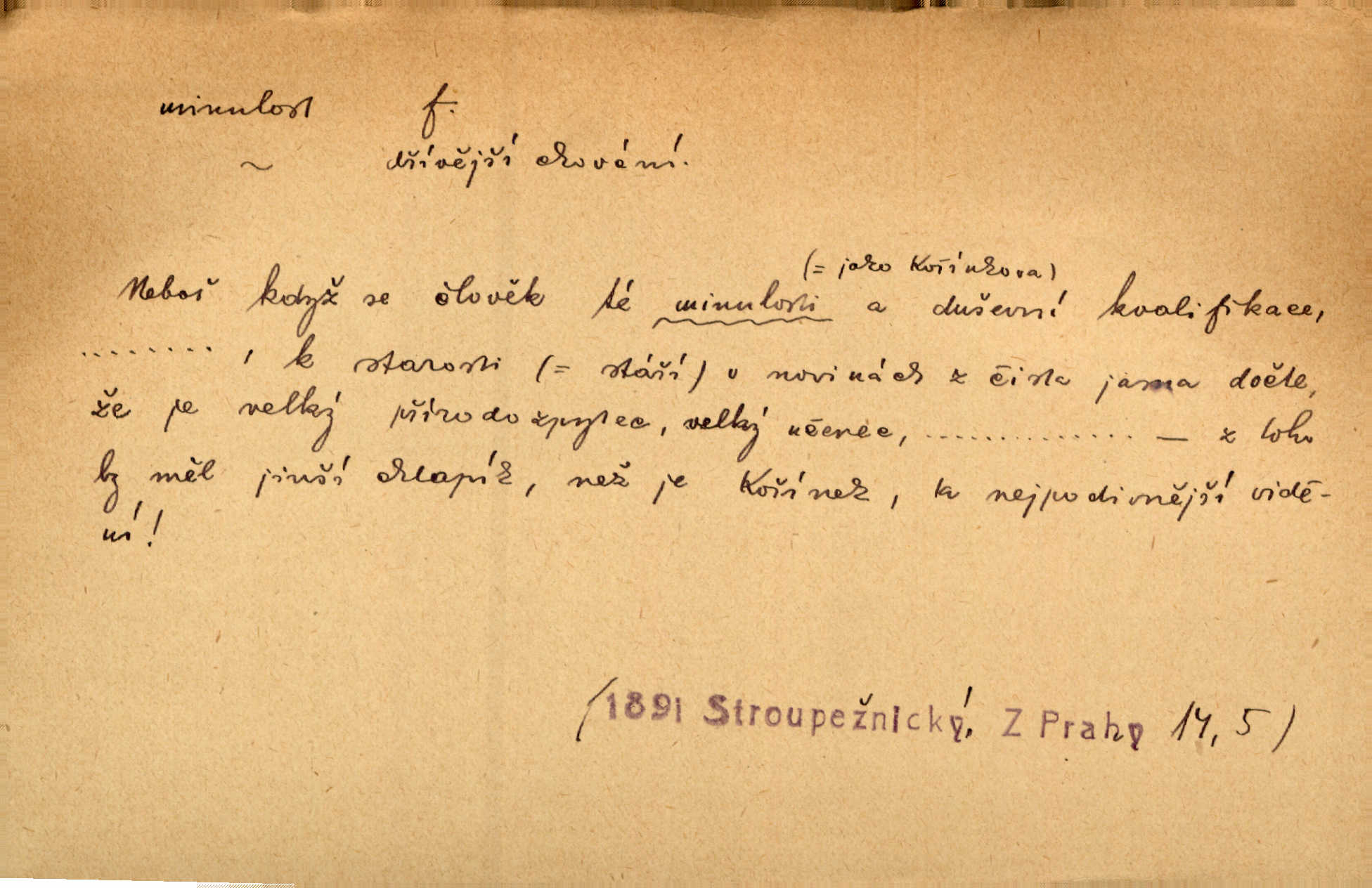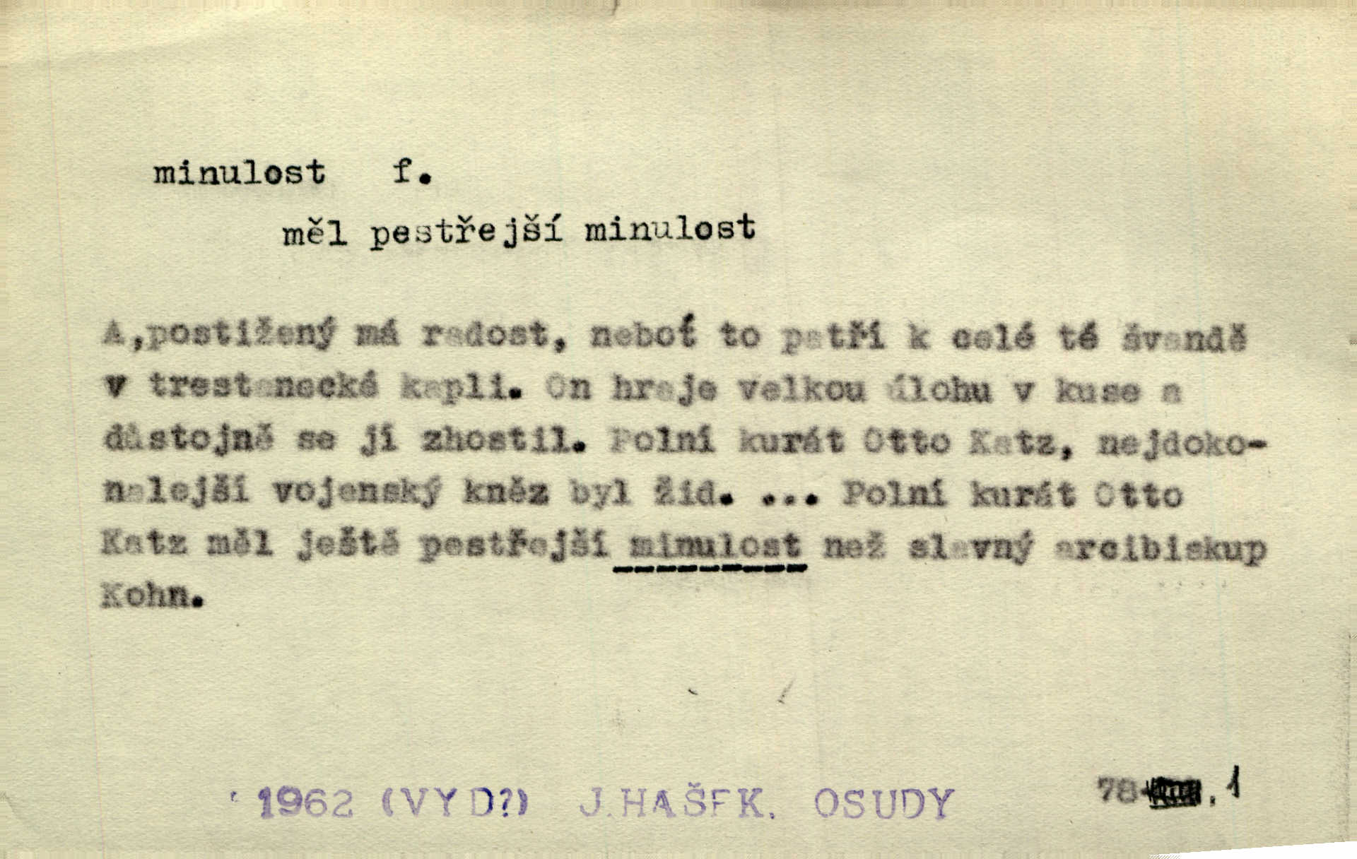 - minulost, -i f. minulá, uplynulá doba. Jen z minulosti jasně poznané dá se dobře poznat přítomnost. Durd. předvčerejšek zdá se mně být už šedou minulostí. Ner. Osm let, jeden rok stejný jako druhý, odešlo do minulosti. Šmil. I tato pleticha patří do minulosti pominula. Šmil. D Zvl. minulý život n. způsob života, minulé činy. Dívko, nechť minulost tvoje jakákoli, chci, bys byla mou. Zey. Má minulost byla velmi trudná. Sab. Propustili mne [žebráka na policii]‚ když se přesvědčili, že mám lepší minulost. Vach. Tvrdilo se, že je to [bratří Čapkové] pseudonym, za kterým se skrývá ruinovaný bankéř čili, jak se říká, člověk s minulostí se špatnou pověstí. Čap.