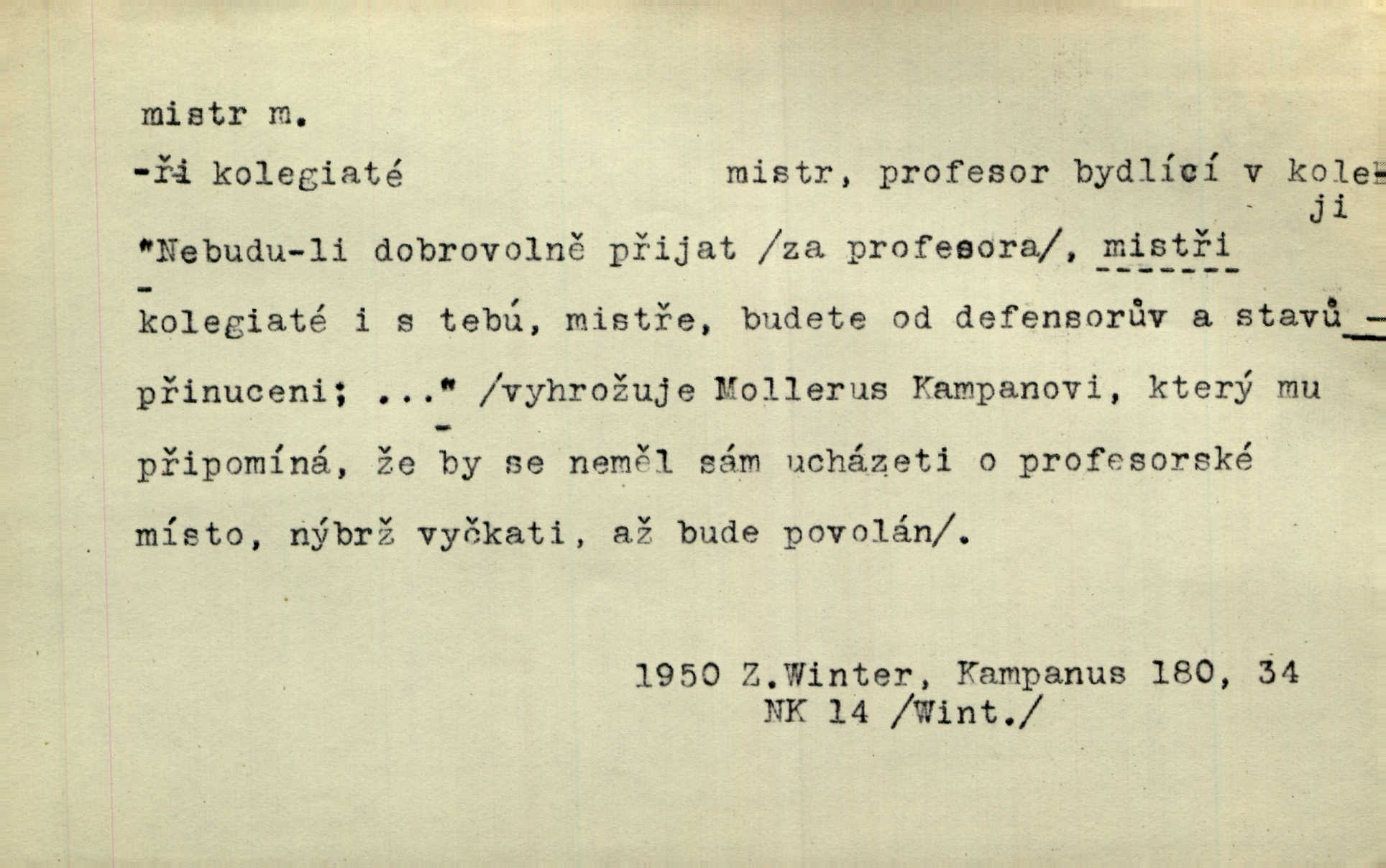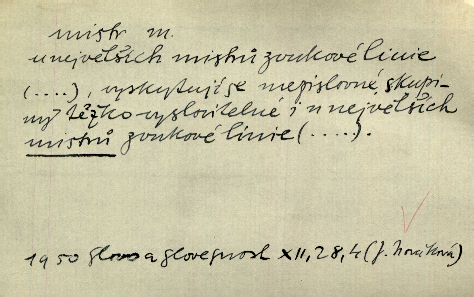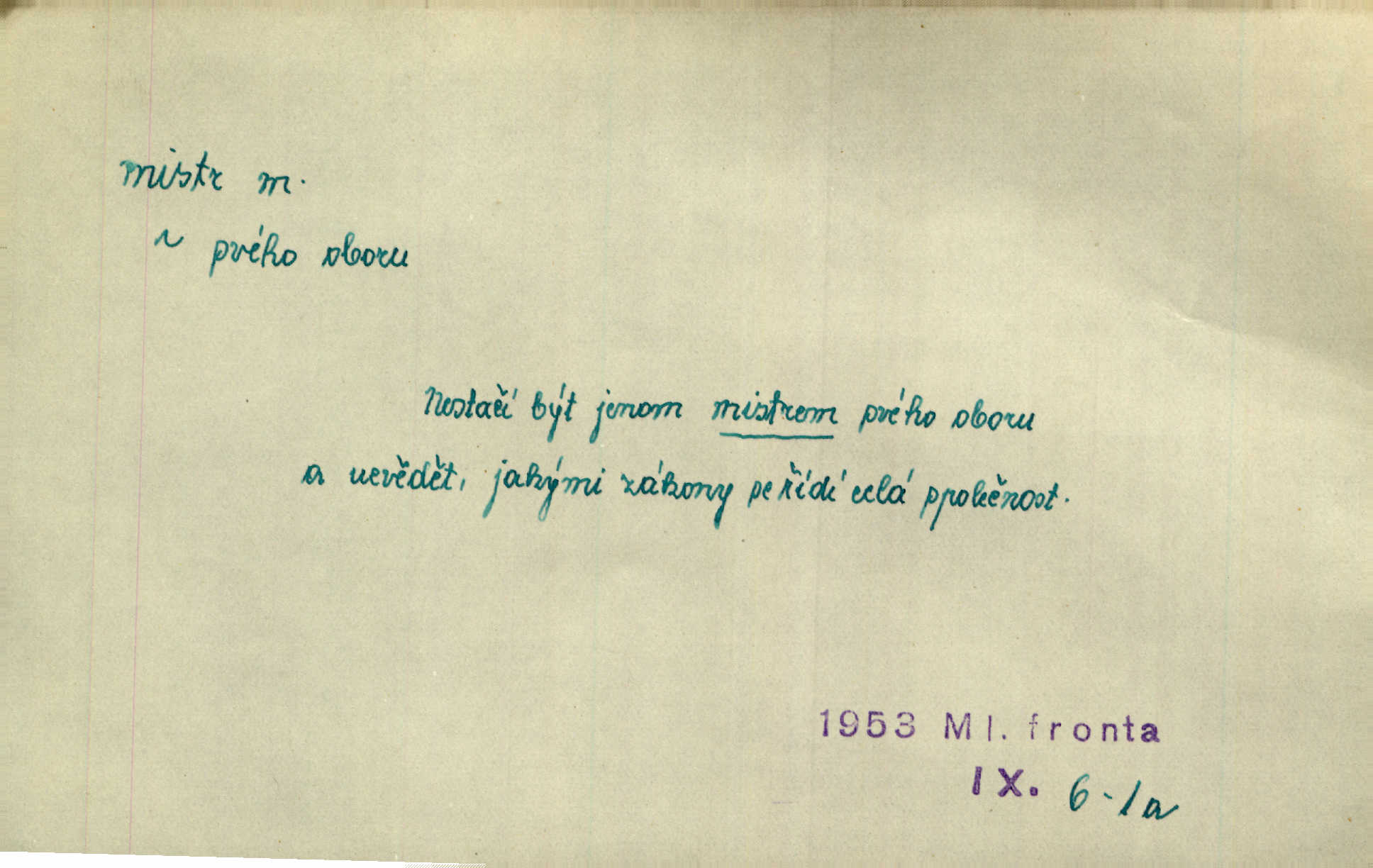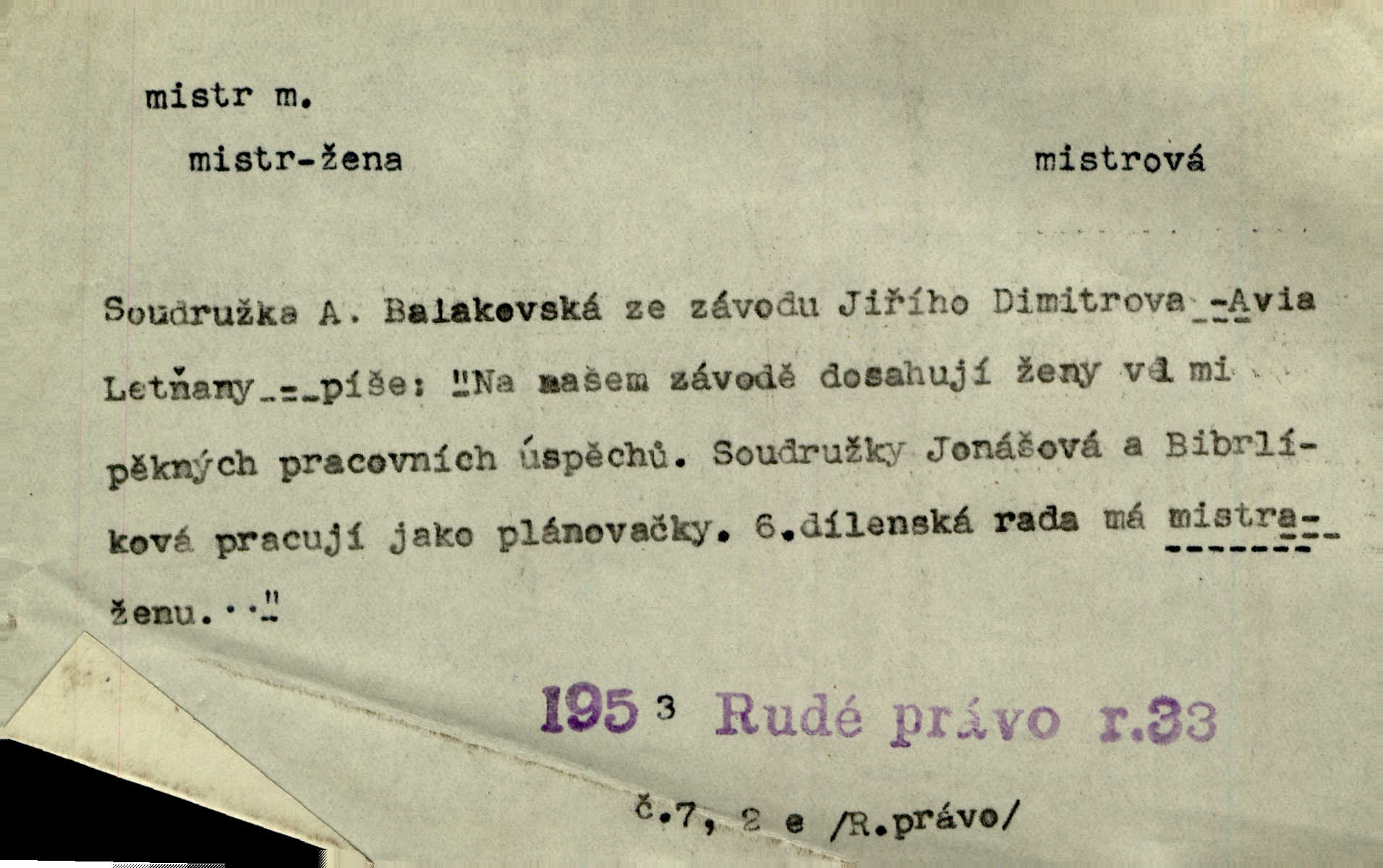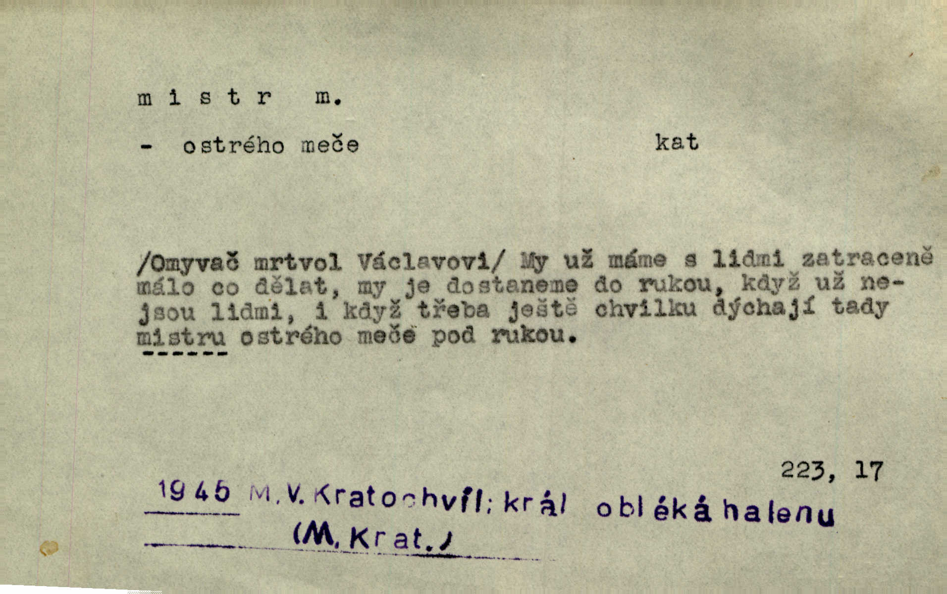 - mistr, -a m. řemeslník oprávněný vykonávati samostatně řemeslo. [Borek] vstoupil do učení k zednickému mistru. Maj. „Jste, starosto, moudrý muž. Ale i mistr tesař se utne.“ Šmil. Mistr Kondelík! Skoro celá Praha ví od nedávna, že je to malíř pokojů. Ale ne nějaký zcela obyčejný hudlař. Herrm. Mistr popravčí není osobně zlý a nepřívětivý člověk, ó nikoliv; plní jen svou povinnost a jeho svědomí je čisté. K. Čap. D dílovedoucí v továrnách, přední dělník. Otec byl mistrem v brněnské jedné továrně. V. Mrš. Žel. staniční, návěštní, telegrafní mistr. D znalec, odborník. Každý [z tovaryšů] měl vykázaný obor své práce. Ten šil jen kalhoty, ten rukávy do kabátů všíval, ten byl mistr na vesty. Her. Nebyl valný mistr v kartách. Jir. [Usedlí mužové] jsou trochu neohební v rozmluvách s dámami: na to jsou mistři páni poručíkové. Havl. To jim je mistr na klavír, toho zvou všude. Jir. Ukázal, že je mistrem svého jazyka dokonalým. Vrch. Co hmatů v lepké hlíně mistr dláta se nazkouší, než v sličném vása tvaru se z jeví oku? sochař. Vrch. Mistr tónů hudební skladatel. Vrch. [Nakladatelství nezapomínalo] ani na staré a starší mistry pera spisovatele. Přít. D čestný titul, název pro vynikající umělce. „Nám umělcům se neříká pan mistr, nýbrž toliko mistr, bez pan.“ Čap. Ch. [K Al. Jiráskovi:] Mistře! Vy ji lépe znáte, naši Prahu. Klášt. Volné tyto studie vznikly na podnět mistra Nerudy. Vrch. Dílo to [obraz] zajisté pravého francouzského mistra. Jir. Staré rytiny francouzských mistrů. Jir. Též titul vynikajících sportovců. Mistr světa v boxu, v lehké atletice a j. D autor, původce, tvůrce vynikajícího díla literárního n. uměleckého. Spis tento mistra svého nezapře. Tyl. Ten, kdo byl jejich [kreseb] mistrem, prošel školou nejpřísnější kázně. R. Svob. D učitel, hlava n. vůdce skupiny, školy, směru. Tak bylo jemu [Dantovi]‚ jejž ctím mistrem svým. Vrch. [Němci] Rusům za hlavní vinu to pokládají, čemu je sami naučili a v čem se ještě posavad žákové svým mistrům ani nevyrovnali. Havl. Taneční mistr. Baletní mistr cvičitel baletu v divadle. Koncertní mistr přední vedoucí hráč na některý nástroj (zvl. housle a cello) v orchestru. D o Kristu, zvláště v poměru k apoštolům. Petr, ač by rád byl koláče jedl, také se děkoval, připomínaje si mistrův zákaz. Něm. D akademická hodnost středověká. Se šťastným humorem, ironií proloženým, popisuje nám [básník] mistry v kolleji. Havl. Učení Mistra Jana Husi. Rais.