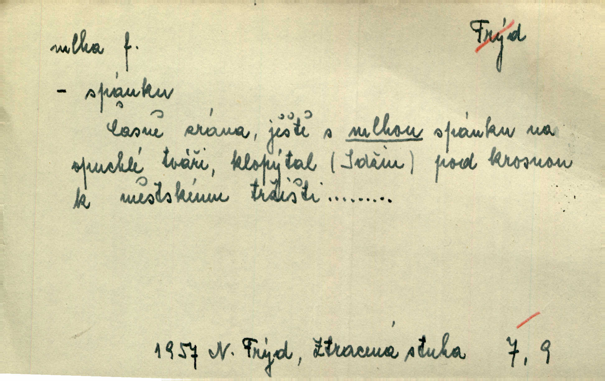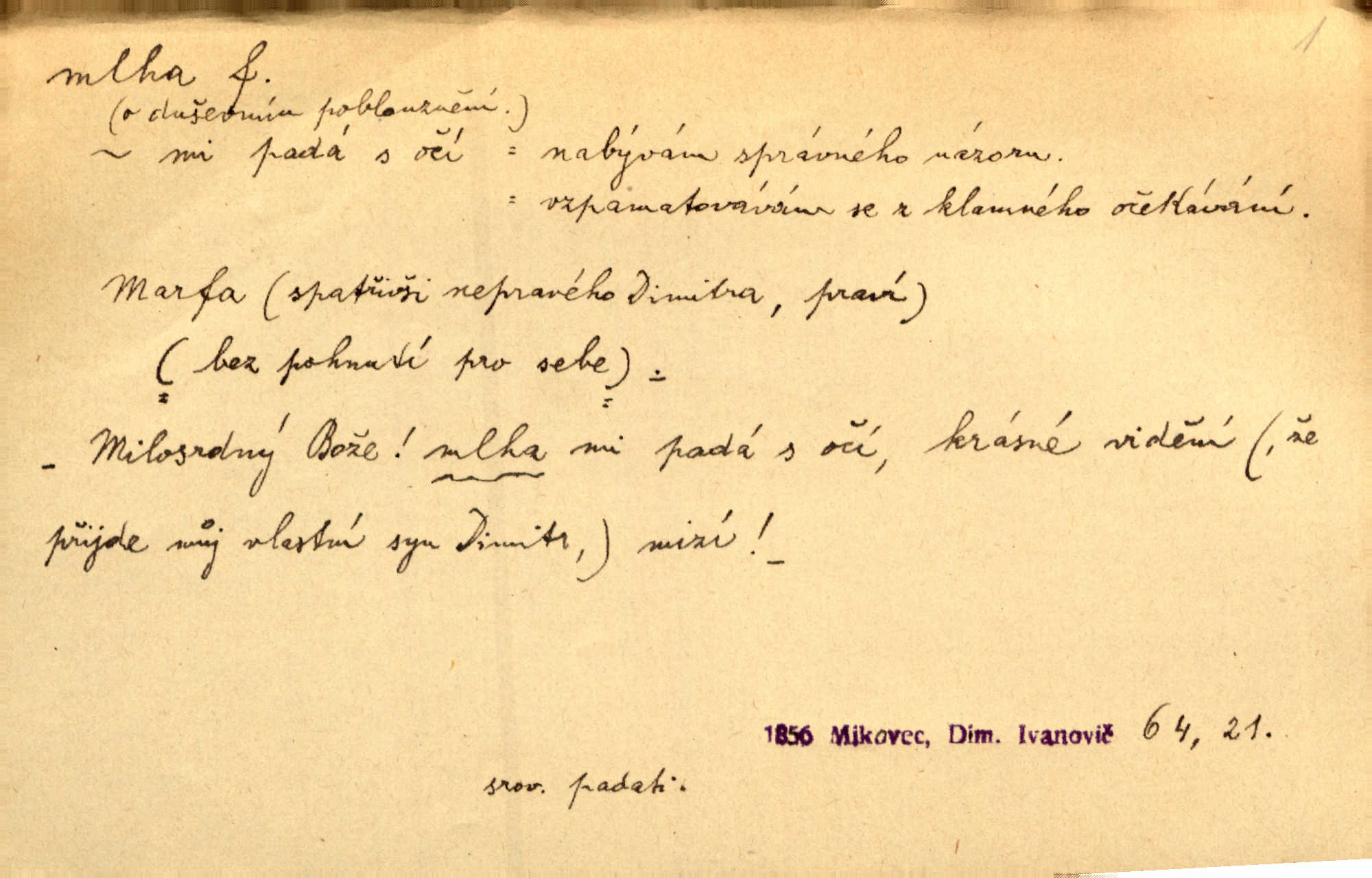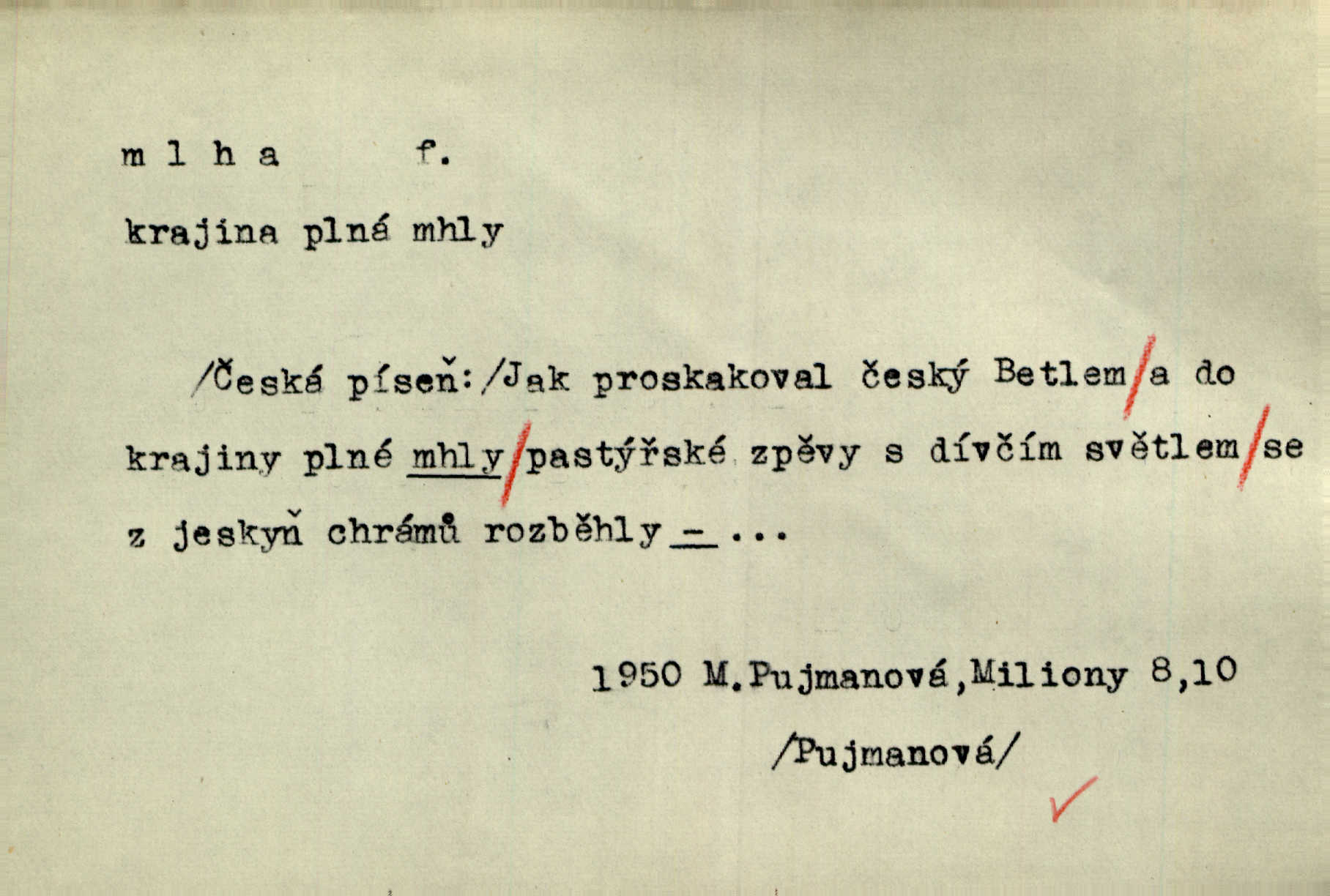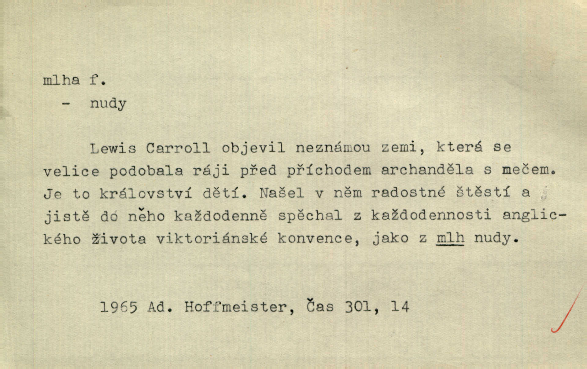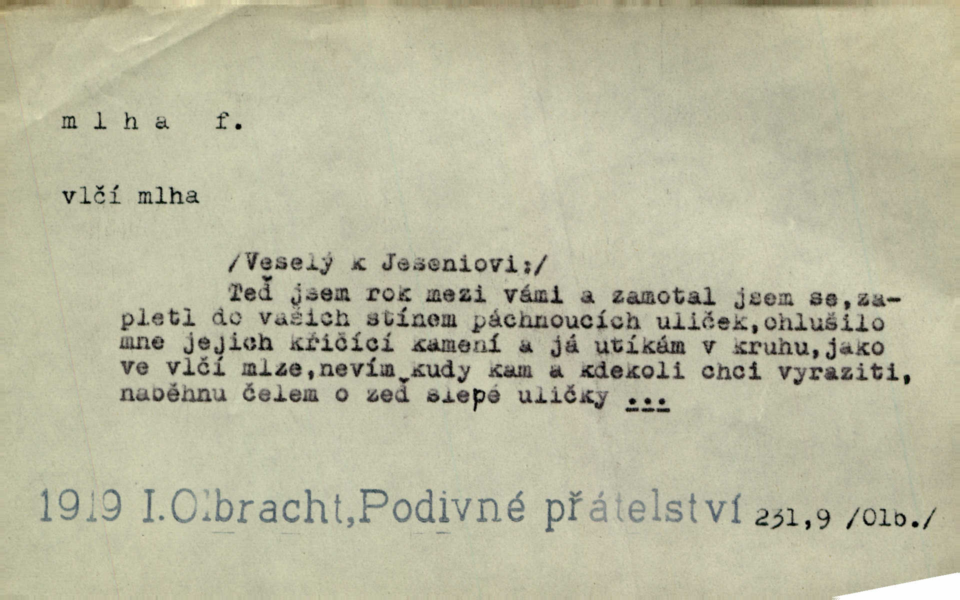 - mlha (ob. mha, zř. mhla), -y f. sražené vodní páry vznášející se blízko nad povrchem země. Stráně se ztrácely v mlhách. Kos. Pozadí s Petřínem bylo ještě zahaleno mlhou. Čech. Nebylo nic vidět pro samou mlhu. Něm. Mha obklopuje z rána zemi. Sova. „To je tam zas mlha, jako pytel,“ hlásili. Baar. Mlha padá, bude hezky. Zvon. Spocený ubíhá do listopadové mlhy. Maj. [Hřbitov za měsíční noci] zahalený ve stříbrné mlze. Vrch. Ustál. sp. Na Marjánku pamatuji se jen jako v mlze nejasně. Rais. [Bylo živo v Náchodě,] panstva a dvořanů jako mhy velké množství, spousta. Jir. Chodila jako v mlhách tápavě, s obestřenými smysly. Merh. Voj. umělá mlha neprůhledný oblak vyvinutý rozličnými chemikaliemi. Mlha yperitová. D vůbec o něčem, co zastírá jasný, správný pohled n. názor na skutečnost. Příští světlo prokmitává už mlhou předsudkův. Durd. Mlha studentských snů klesala a život počal se mu objevovati v určitých formách. Hlad. [Umírající:] Nebojím se ničeho. Mlha přede mnou, mlha za mnou. Podl. Jistě to viděl, ale tvářil se mha přede mnou, mha za mnou, neřekl nic jako by neviděl. Šrám. Jen v mlhách viděl její tvář v nejasné vzpomínce. Hlad. [Lenin] z mlhy zapomenutí vyprošťuje učení Marxovo o státě. Slav. Mlha mi padá s očí, krásné vidění [že se vrací můj syn] mizí! Mik. Nemysli, že mám mlhu na očích že špatně vidím. Šmil. Myslil, že má slepičí mlhu, a protíral si oko za okem. Šmil. [Mladá rozpěněná krev] vstupuje brzo na mozek, až oči dostanou kočičí mlhu. Jan. Vlčí mlha, noční mlha, večerní mlha hemeralopie. To jsi měl vlčí mhlu. Něm. A ty babičko, trpíš na noční mlhu nevidíš za soumraku. J. z Hv. V kapse mají pavučiny a v hlavách mlhu jsou hloupí. Šmil. D o něčem nejasném, neurčitém, ponurém. Mlhy slov valily se mu [jasnovidci] z úst. Vanč. Světový názor Tolstojův prohlašuje Nordau za mlhu a nerozum myšlenkový zmatek. Vrch. Úsměv, který znenáhla rozháněl mlhy melancholie ponurost. Hlad. D podnapilost, opička. Vydrážděn malou mlhou z vína, díval se veselýma očima na vřavu. Sova. D věc připomínající mlhu. V mlhách továrního dýmu značí se i Brno s šedým Špilberkem. A. Mrš. Koně funěli z nozder sloupy mlhy páry. Čap. Ch. D Dial. vlčí mlha květina vlčí mák. Jak se ta vlčí mlha, ta chrpa, ten koukol na nás pěkně smějí. Kosm. D Sport. slang. soudce mlha špatně posuzující výkony hráčů. Diváci kritisují hlasitě zasahování soudcovo: „Soudce špatně vidí! Soudce mlha!“ Lid. nov.