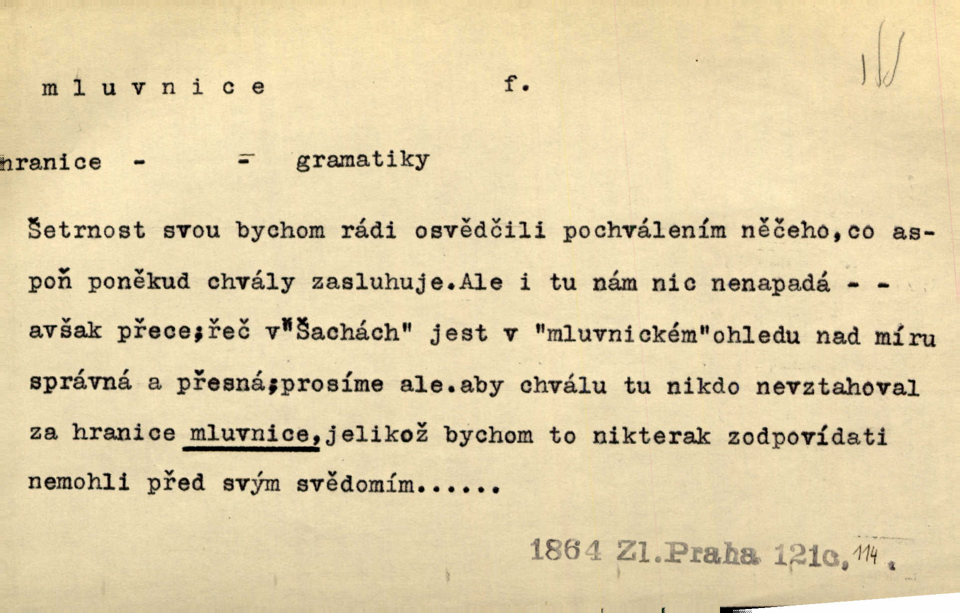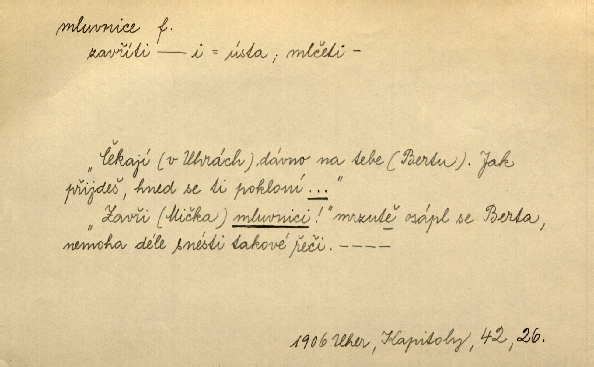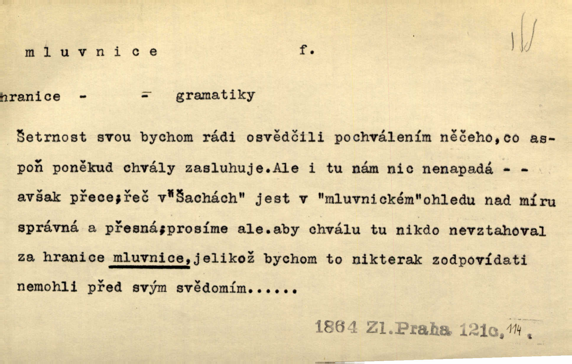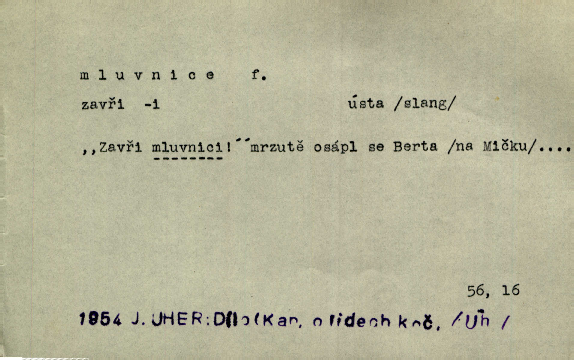 - mluvnice, -e f. část nauky o jazyce obírající se hláskami, tvořením slov a tvarů i jejich syntaktickým významem a větou, gramatika; kniha obsahující gramatiku. D Žert. ústa „Zavři mluvnici!“ mrzutě osápl se Berta, nemoha déle snésti takové řeči. Uh. Inu, řeknu poctivě, mluvnici jsem měl otevřenou žasl jsem. Rais. A co pak o hubičku! Ta mě nezabije a vás nespasí. Utřete si mluvnici! Herrm.