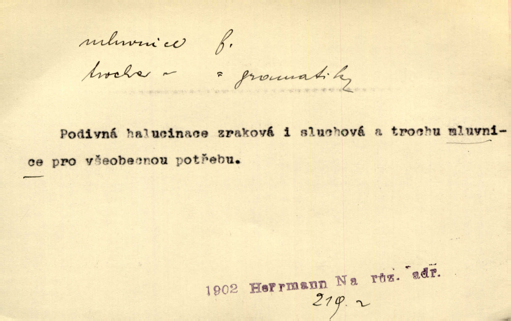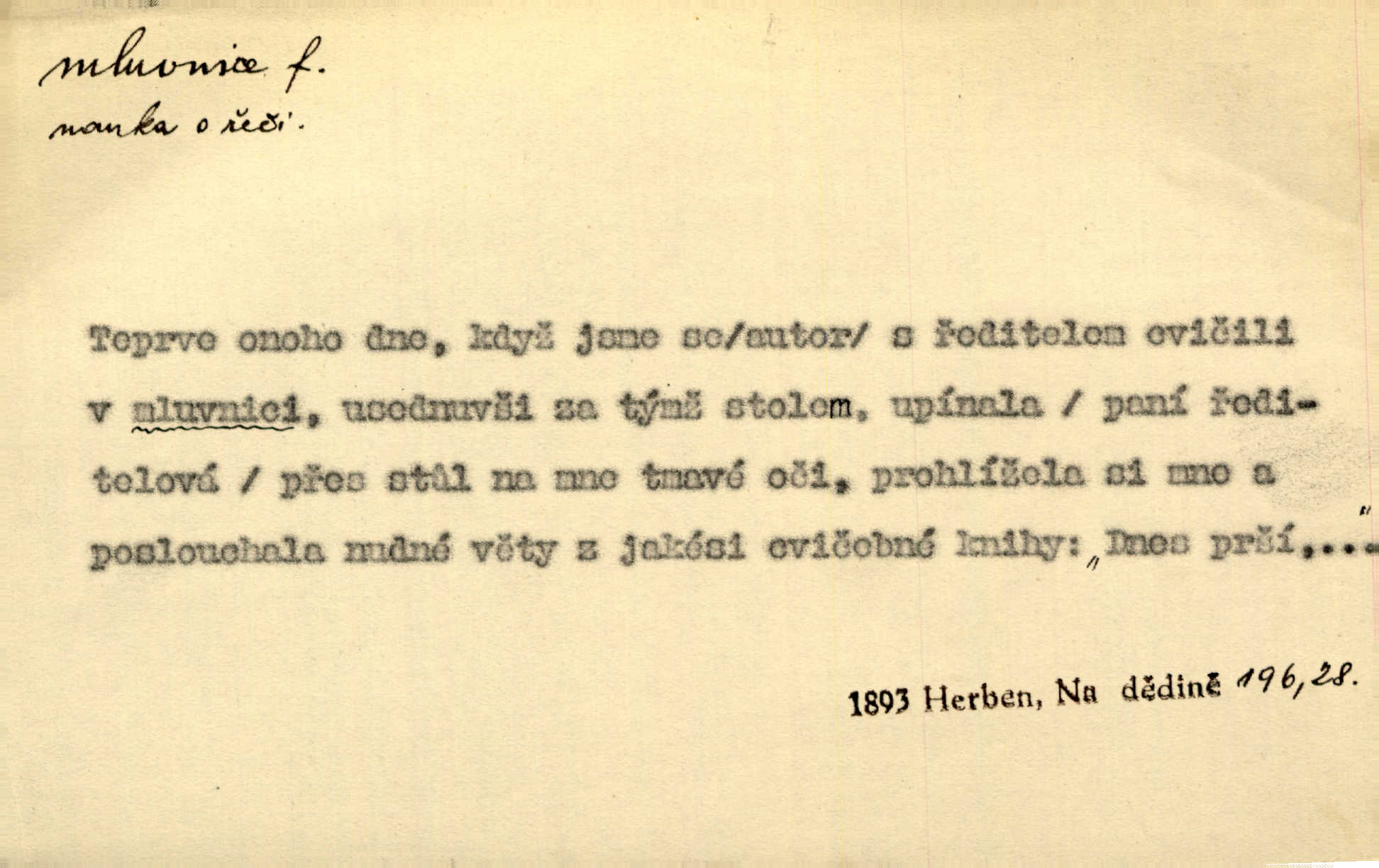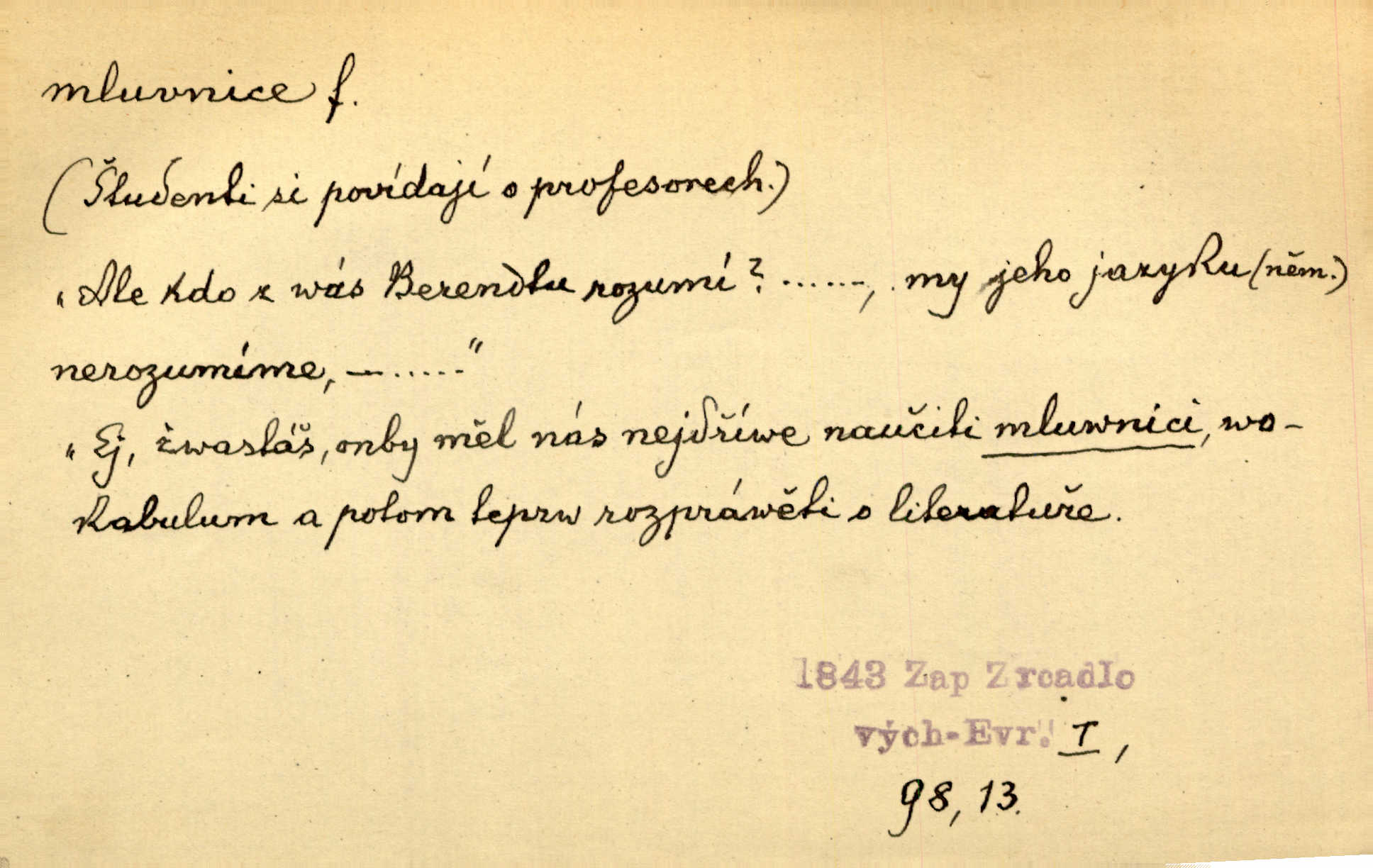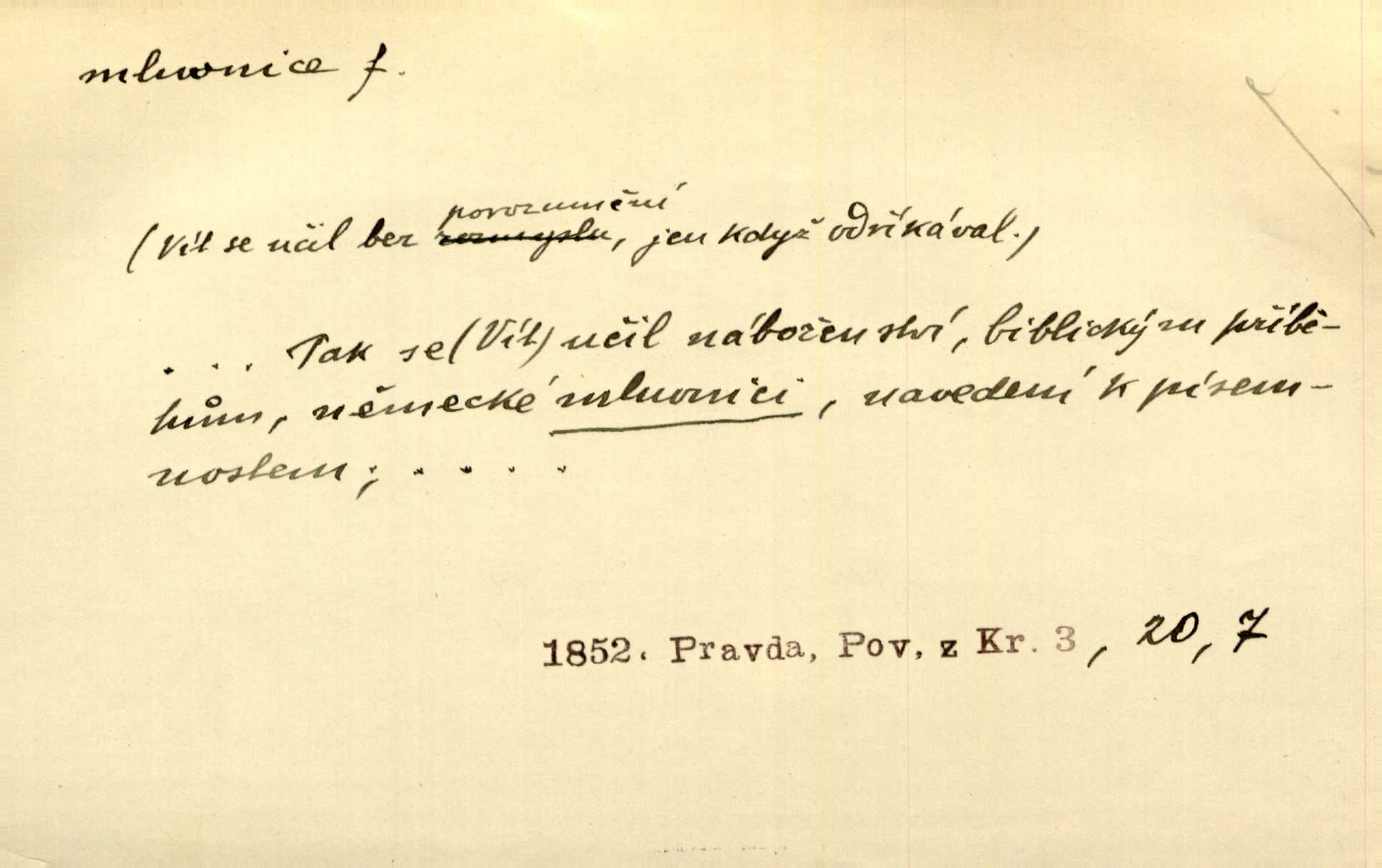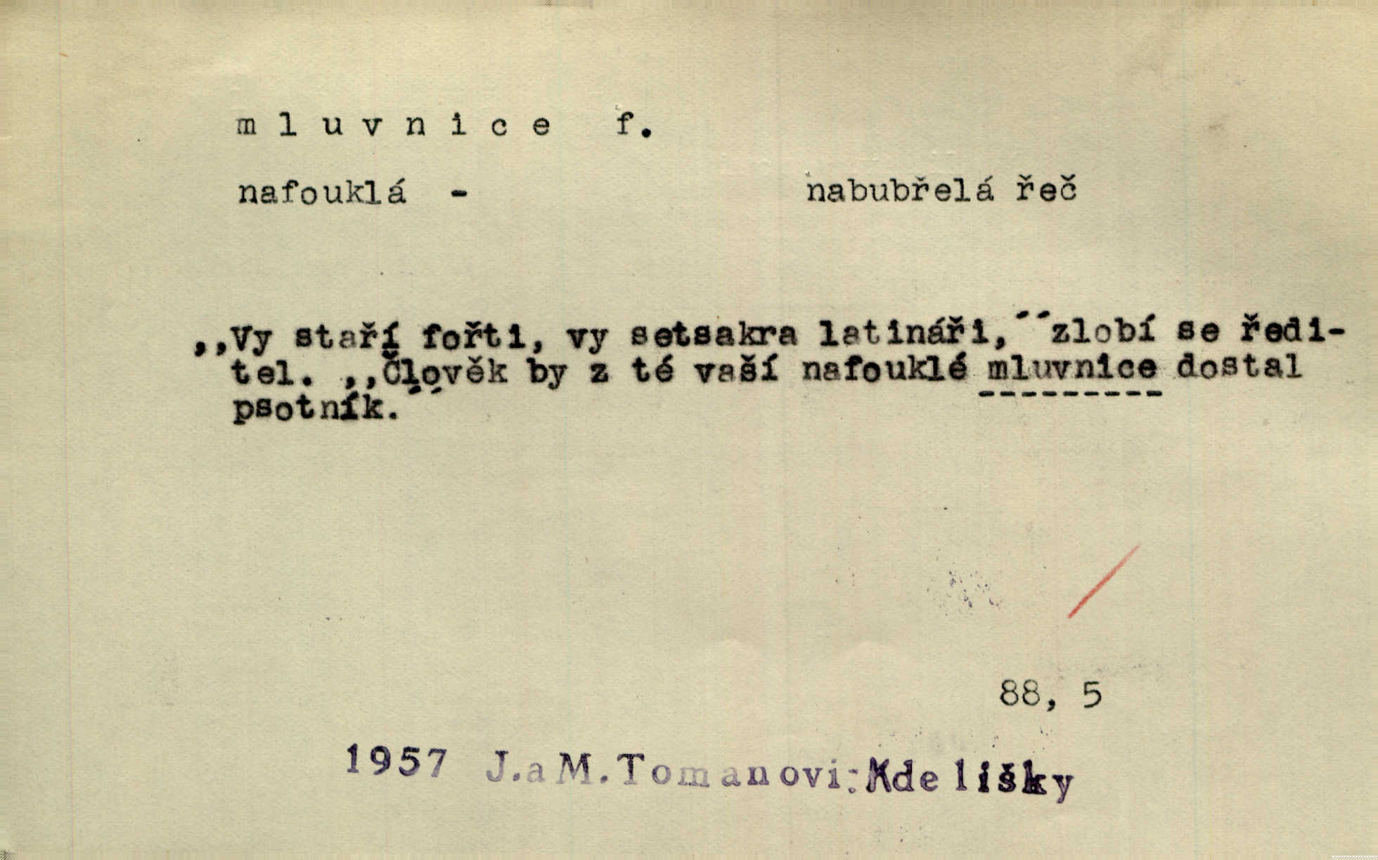 - mluvnice, -e f. část nauky o jazyce obírající se hláskami, tvořením slov a tvarů i jejich syntaktickým významem a větou, gramatika; kniha obsahující gramatiku. D Žert. ústa „Zavři mluvnici!“ mrzutě osápl se Berta, nemoha déle snésti takové řeči. Uh. Inu, řeknu poctivě, mluvnici jsem měl otevřenou žasl jsem. Rais. A co pak o hubičku! Ta mě nezabije a vás nespasí. Utřete si mluvnici! Herrm.