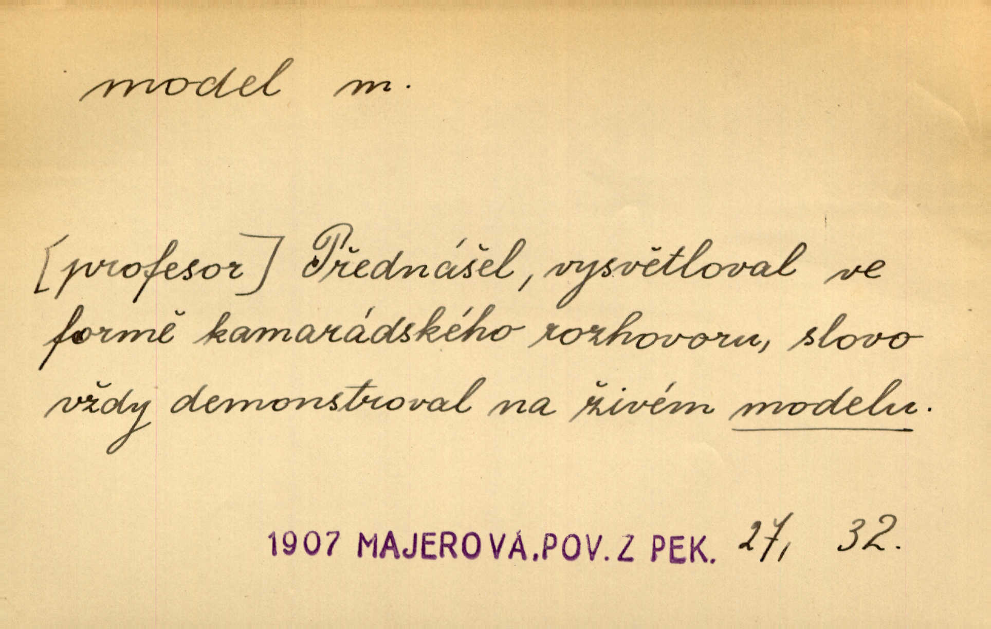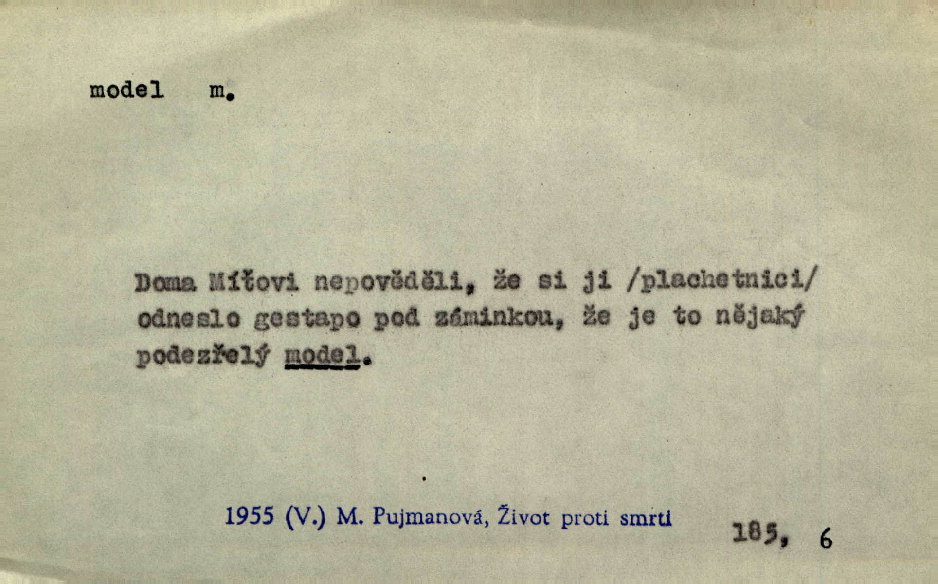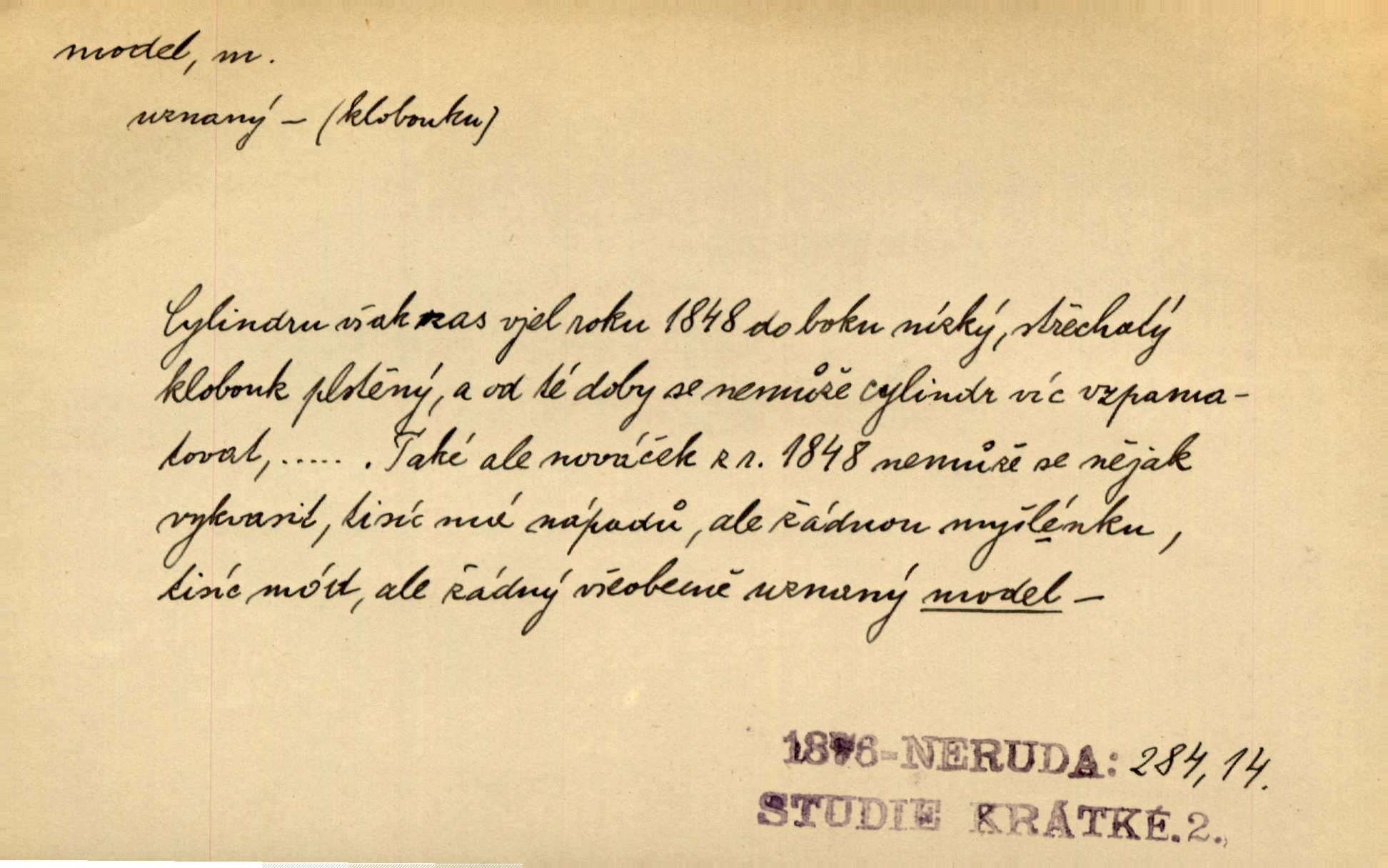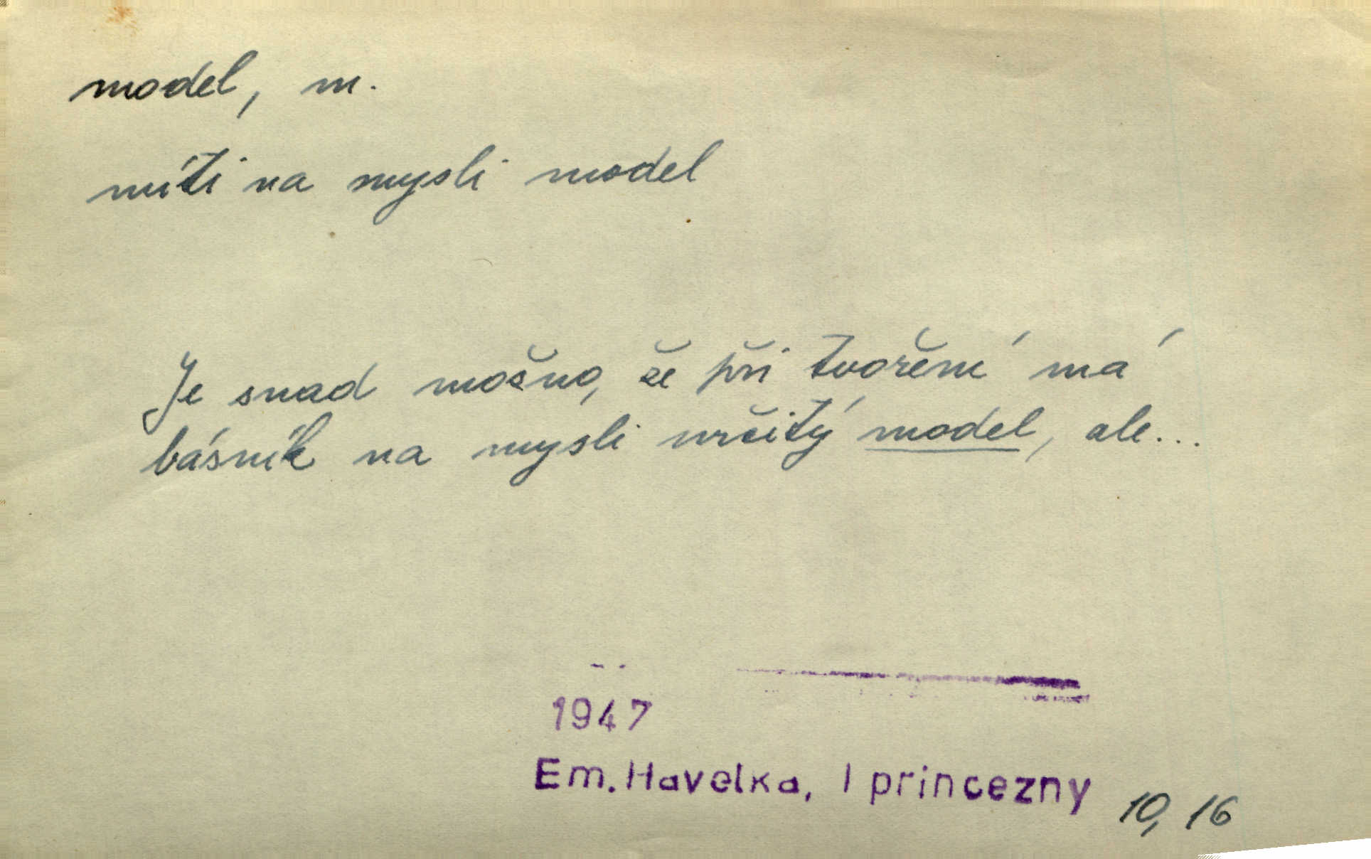 - model, -u m. věc n. osoba, která je předlohou k uměleckému tvoření, zvl. výtvarnému. Mám teď malovat svatého Krišpína, pan doktor by mně mohl sedět modelem. Ner. Do večerního aktu pro štukatéry chodil teď mužský model. Čap. Ch. Nyní mluvím k své žákyni, a nikoli k modelu Diany. Hol. Také Zališ, houslista, přicházel do Hronova, můj model k jednomu z mých prvních „obrázků z hor“. Jir. Kolik je tu [v Dykově „Konci Hackenschmiedově“] předloh a modelů čistě literárních! Šal. Výtv. živý model. D plastické podrobné znázornění stroje, stavby a pod., zprav. ve zmenšeném měřítku. Já jsem sestrojil svůj Perfect Carburator zprvu jen theoreticky. Pak jsem udělal malý model, který neběžel. Teprve čtvrtý model se opravdu točil. K. Čap. Tentokráte zničil mu požár duševní majetek, šedesát modelů rozličných strojů. Jir. Nevelký model mešity mekkské. Ner. Máte vylíčenu vlašskou chalupu tak, že byste dle líčení mohli modell její sestaviti. Ath. V rohu stolu nakupeno bylo několik slepených již modelů stereometrických těles. Šim. Fys. model atomu znázornění složení atomu. Slév. pomůcka, kterou se vytvořují dutiny ve formě. D Tech. typ, způsob provedení. Model auta, letadla, stroje, děla a pod. D Oděv. model na módní přehlídce (v t. zv. modelových domech) originální výrobek oděvnický, vzor, podle něhož se vyrábějí kusy další.