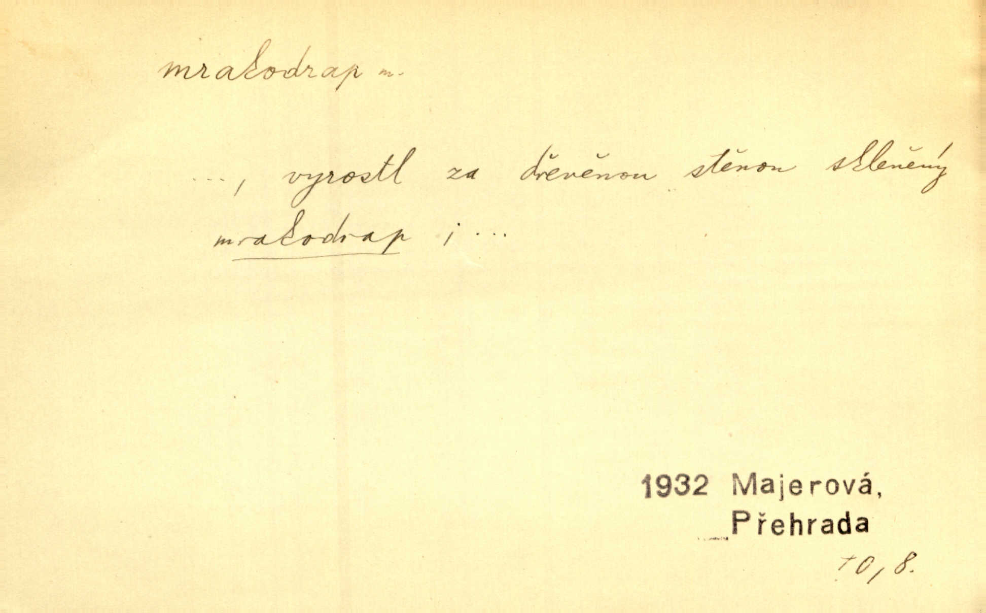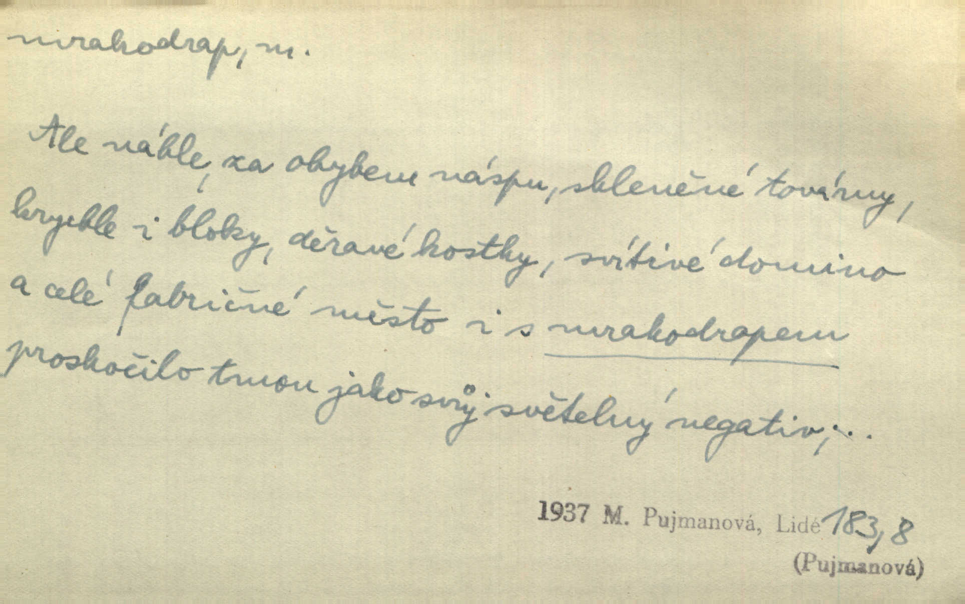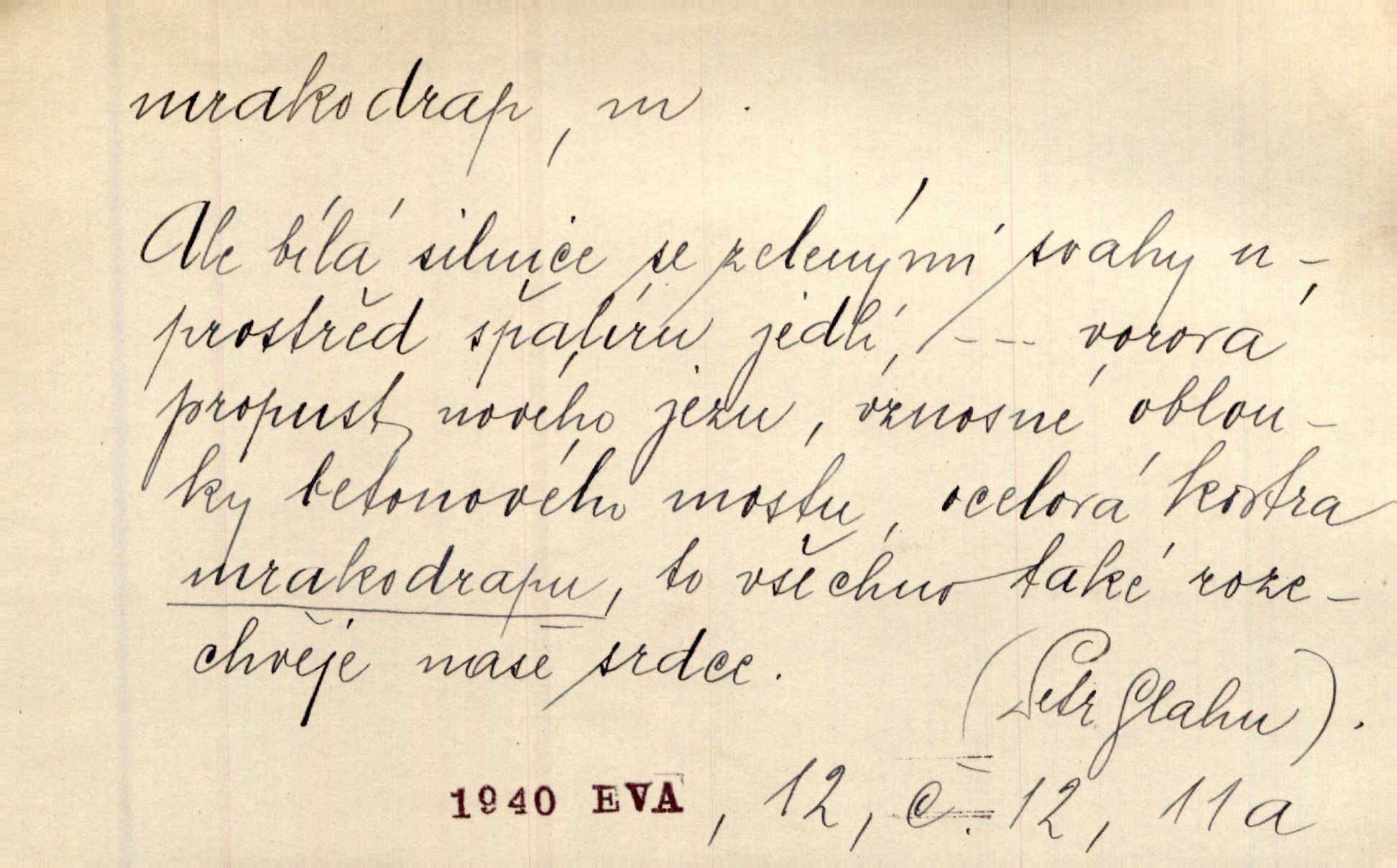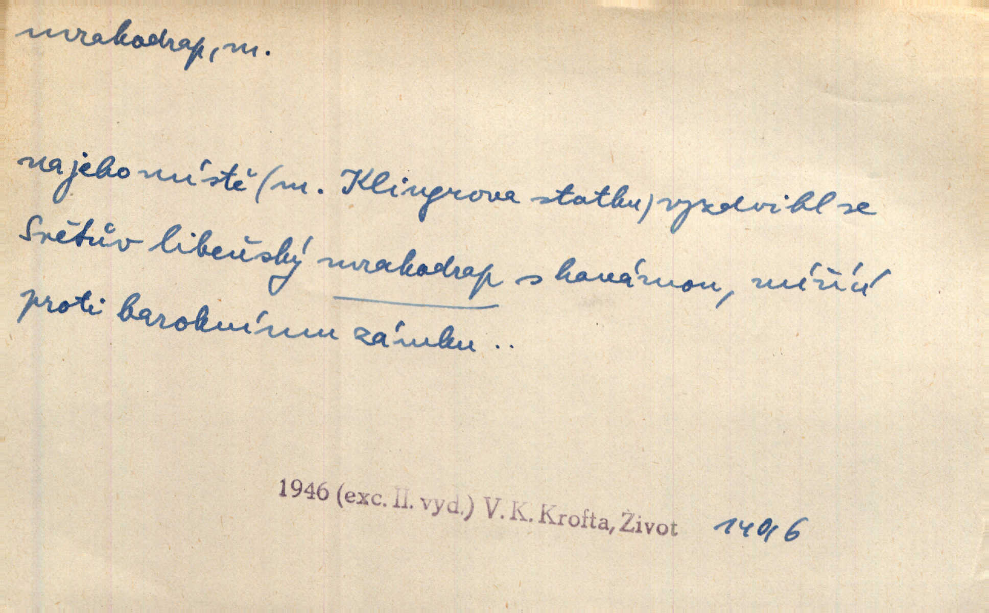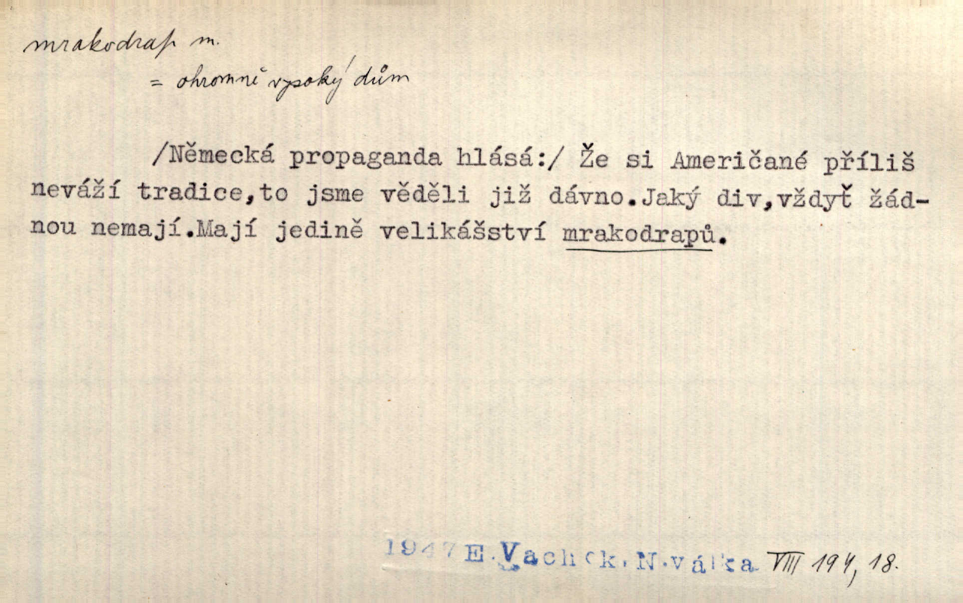 - mrakodrap, -u m. vysoká budova s neobyčejně velkým počtem poschodí. Mravenci jsou i architekti, takže v lidských rozměrech hledajíce ekvivalentu, museli bychom si představiti mrakodrap nejméně o 700 poschodích. J. Havlasa. Mrakodrap o 65 poschodích. Přít.