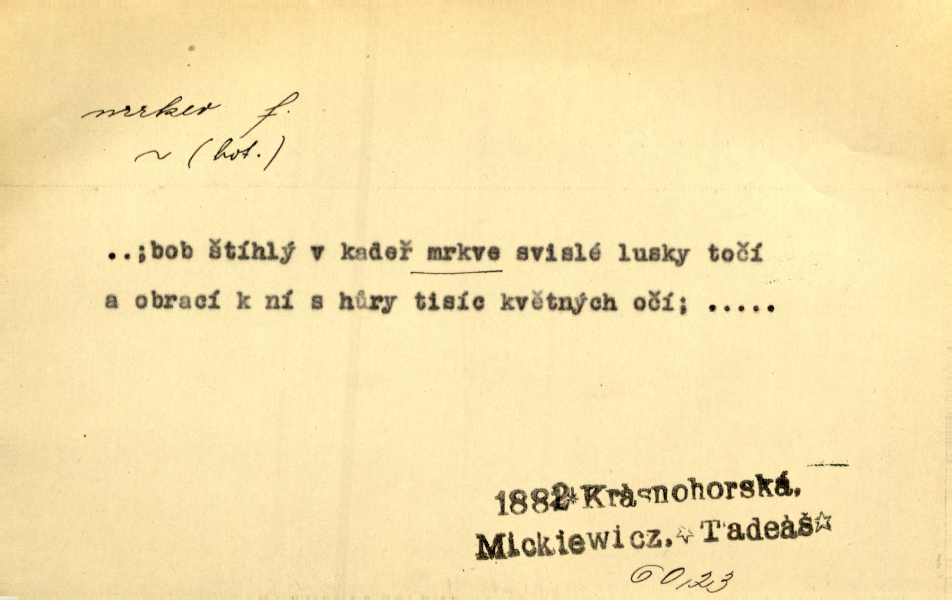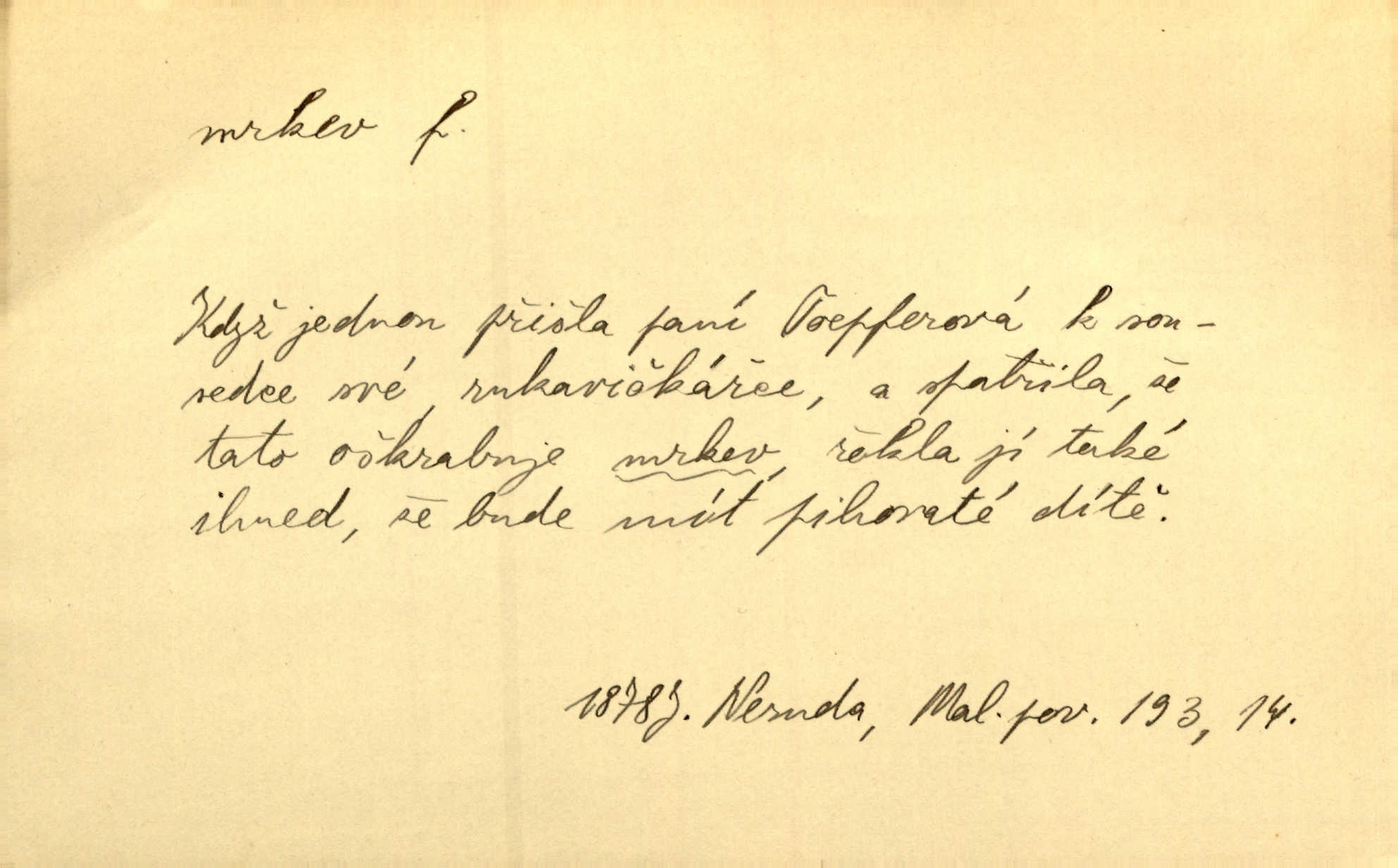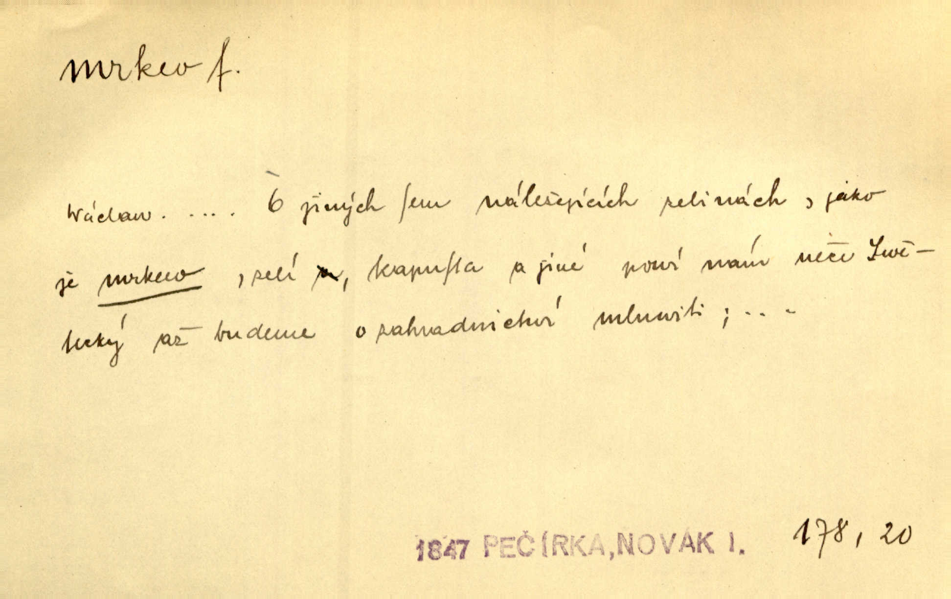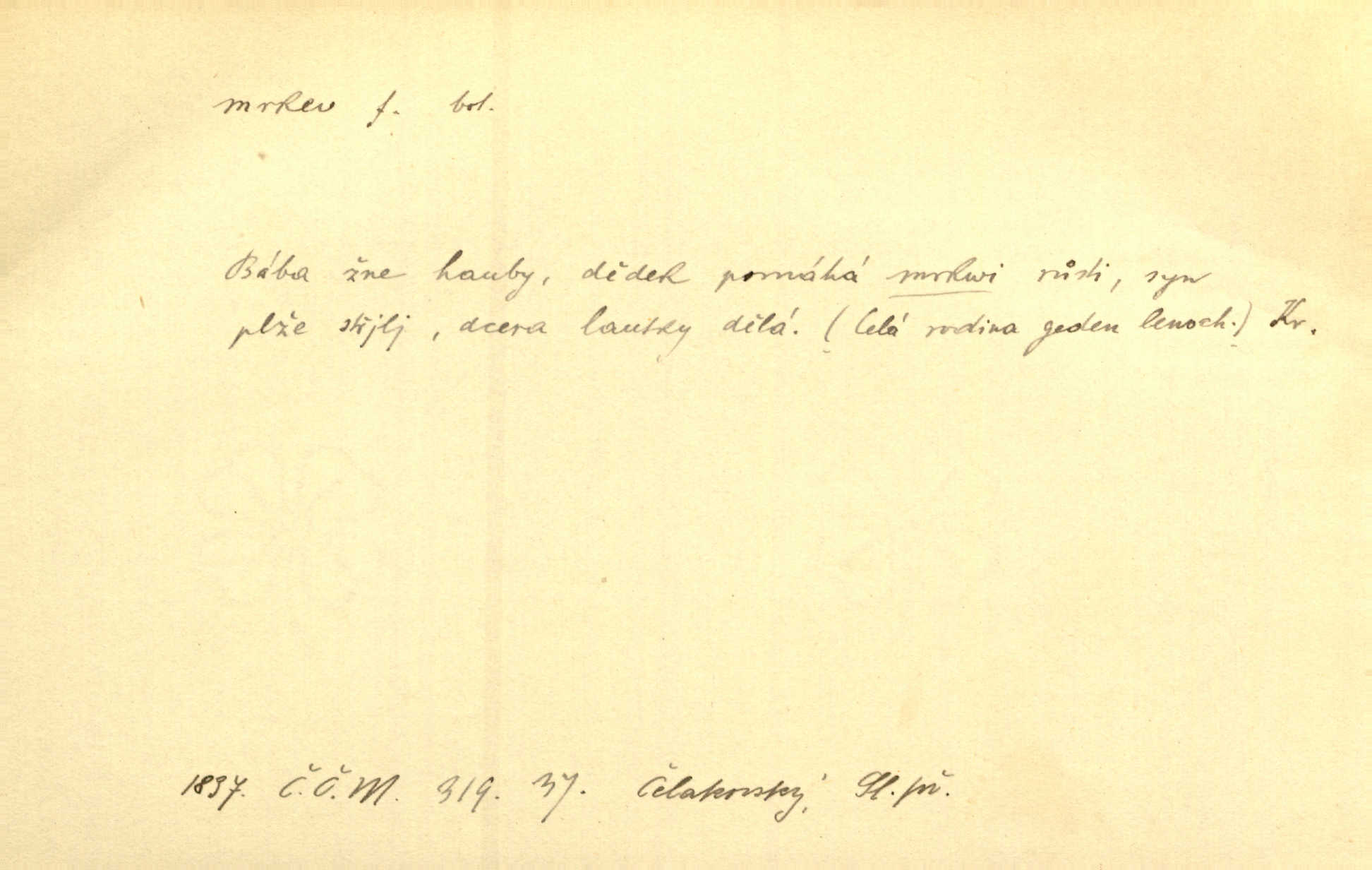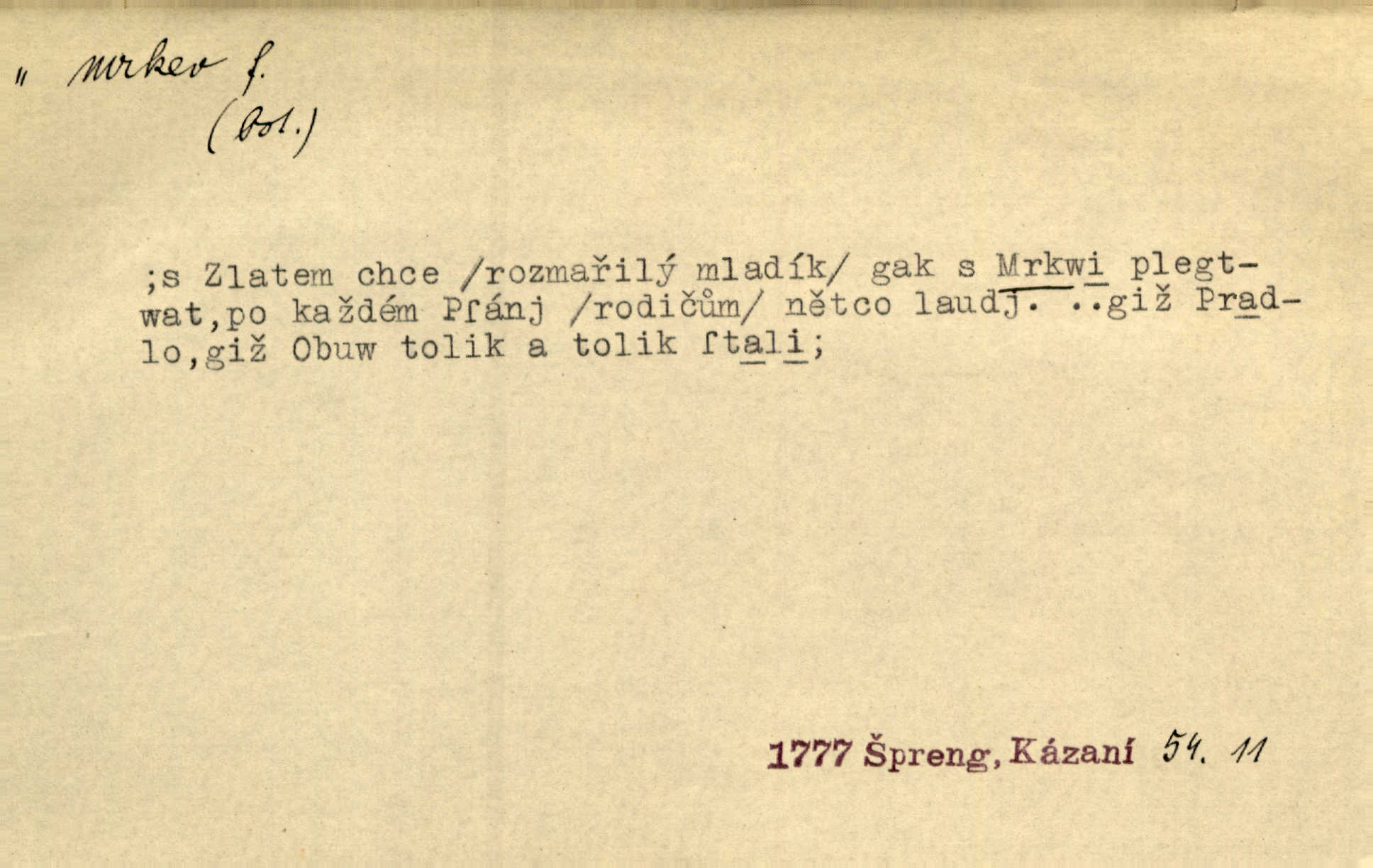 - mrkev, -kve f. druh zeleniny. Zahrady se zelím, cibulí, brambory, mrkví. Havl. Na stole se objevila vepřová s mrkví. Čap. Ch. Hoch láme těžké damascenské meče jako mrkve — kdo umí to v celé říši? Vrch. Bot. rod rostlin z čeledi okoličnatých, Daucus.