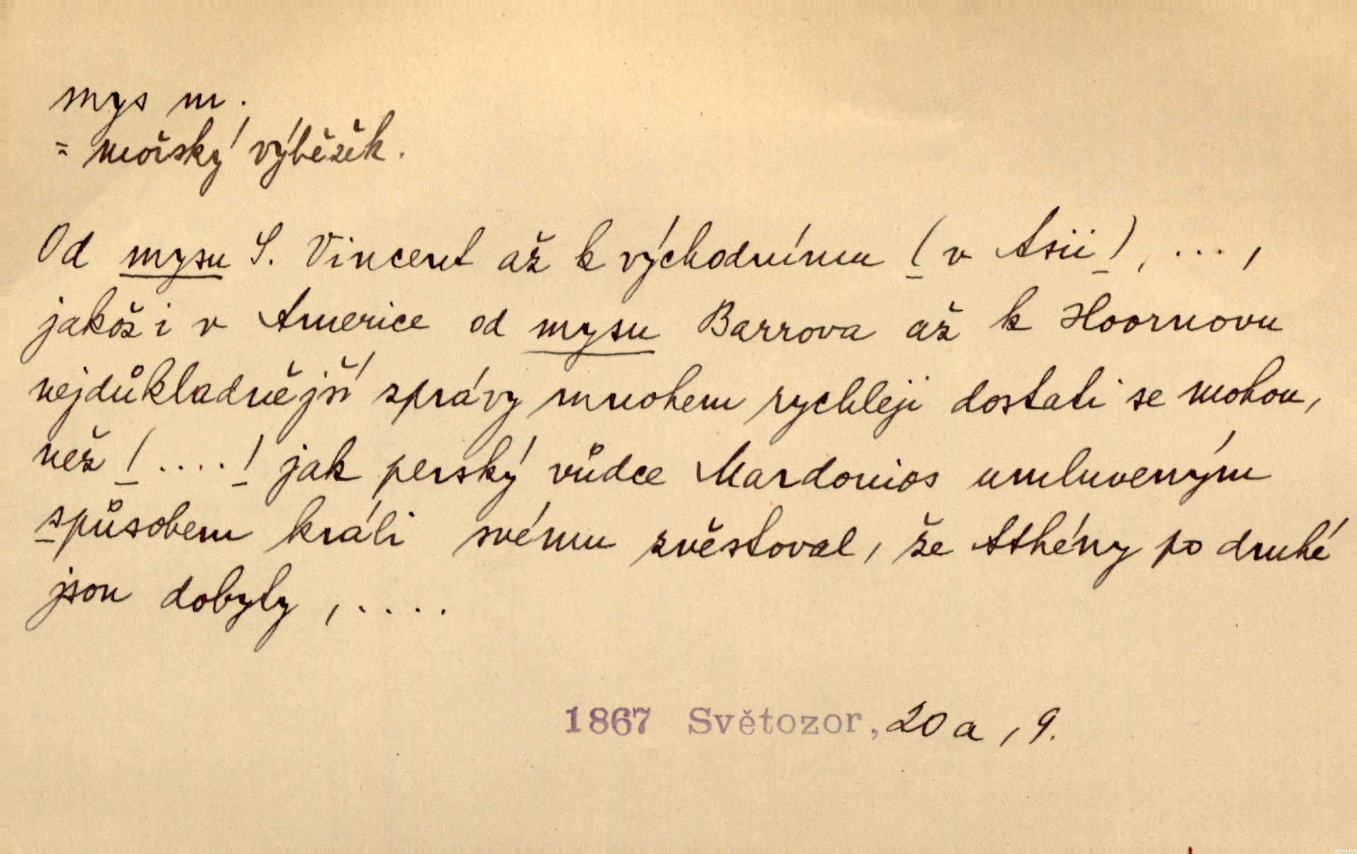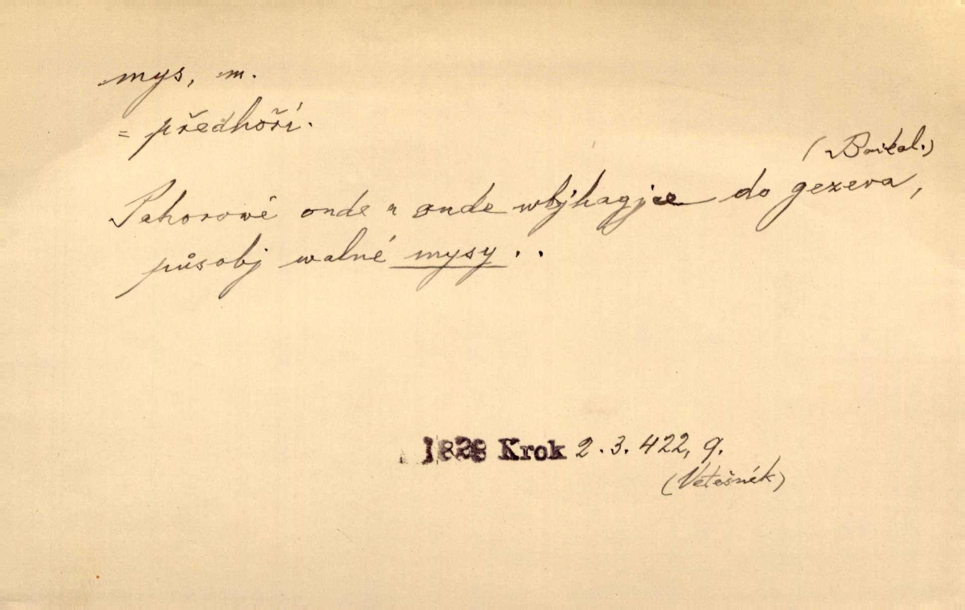ostře vybíhající výběžek pevniny do moře.