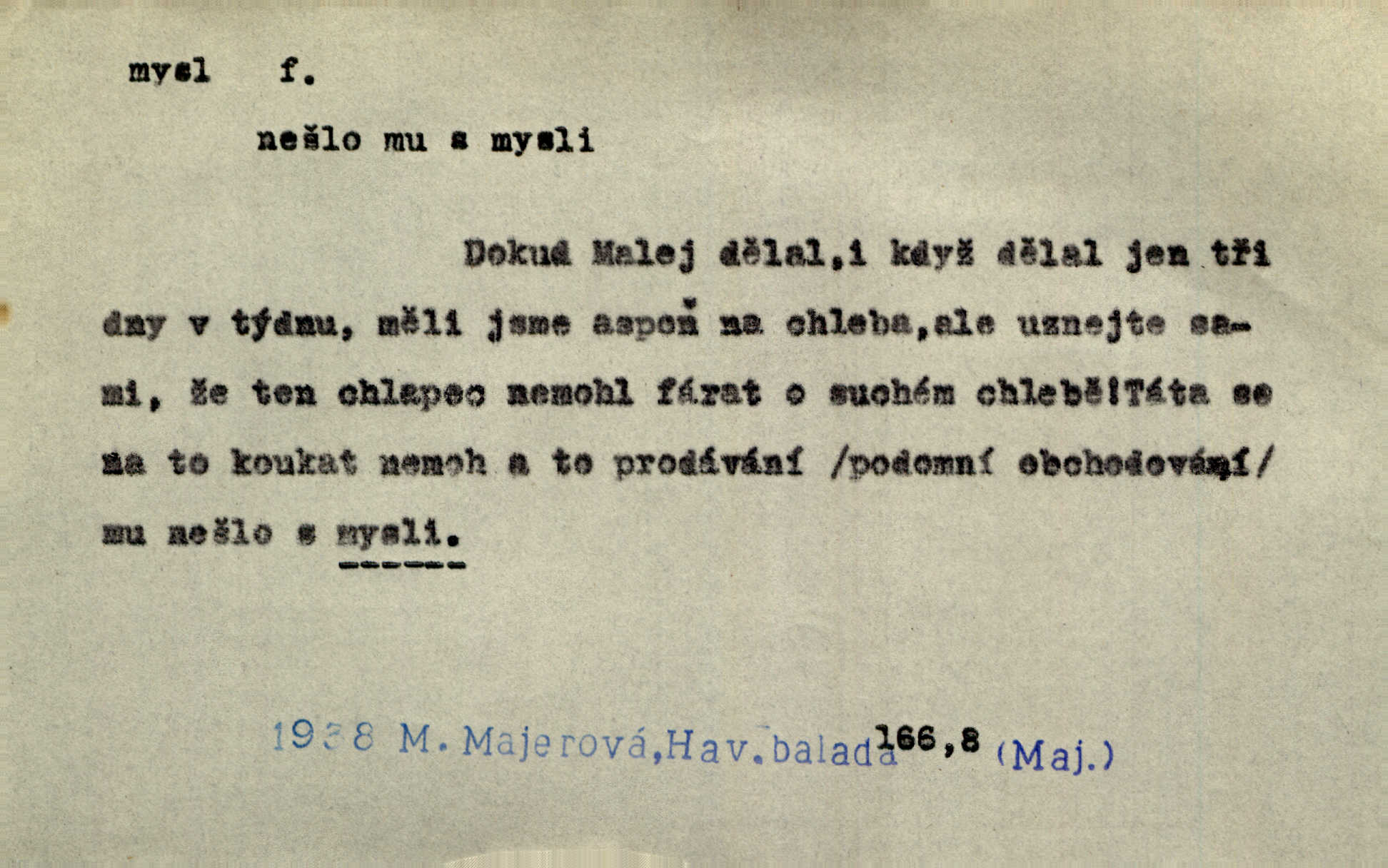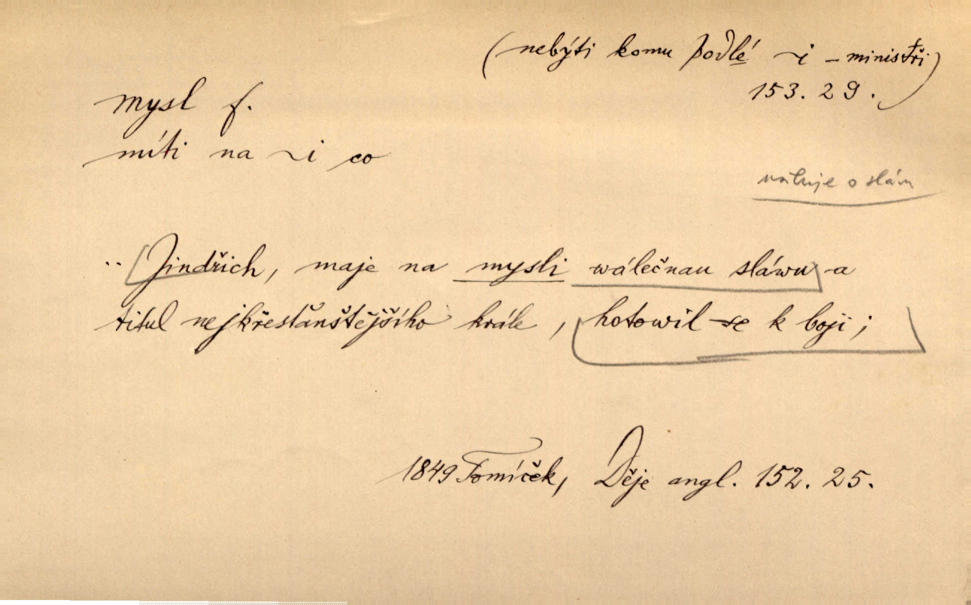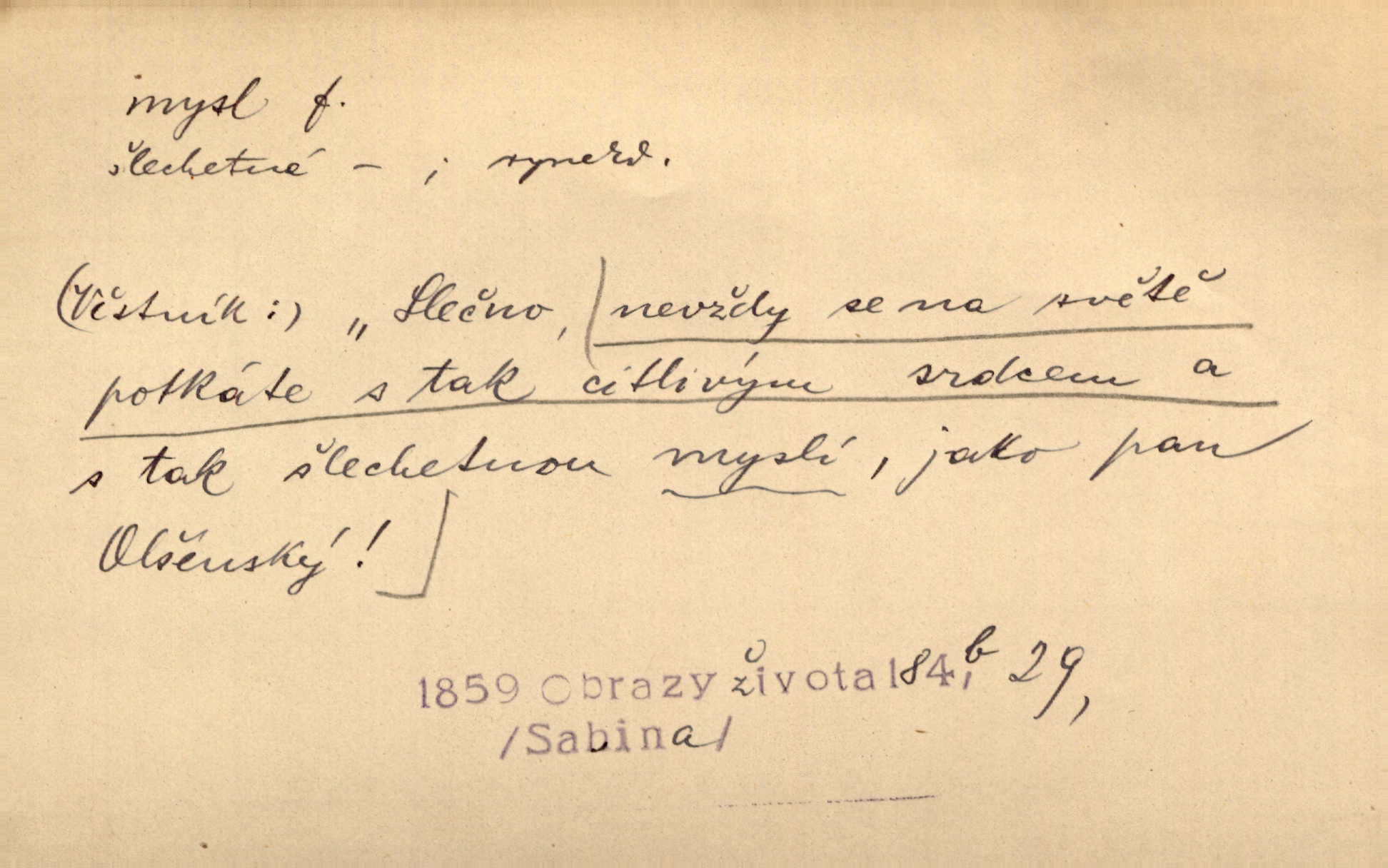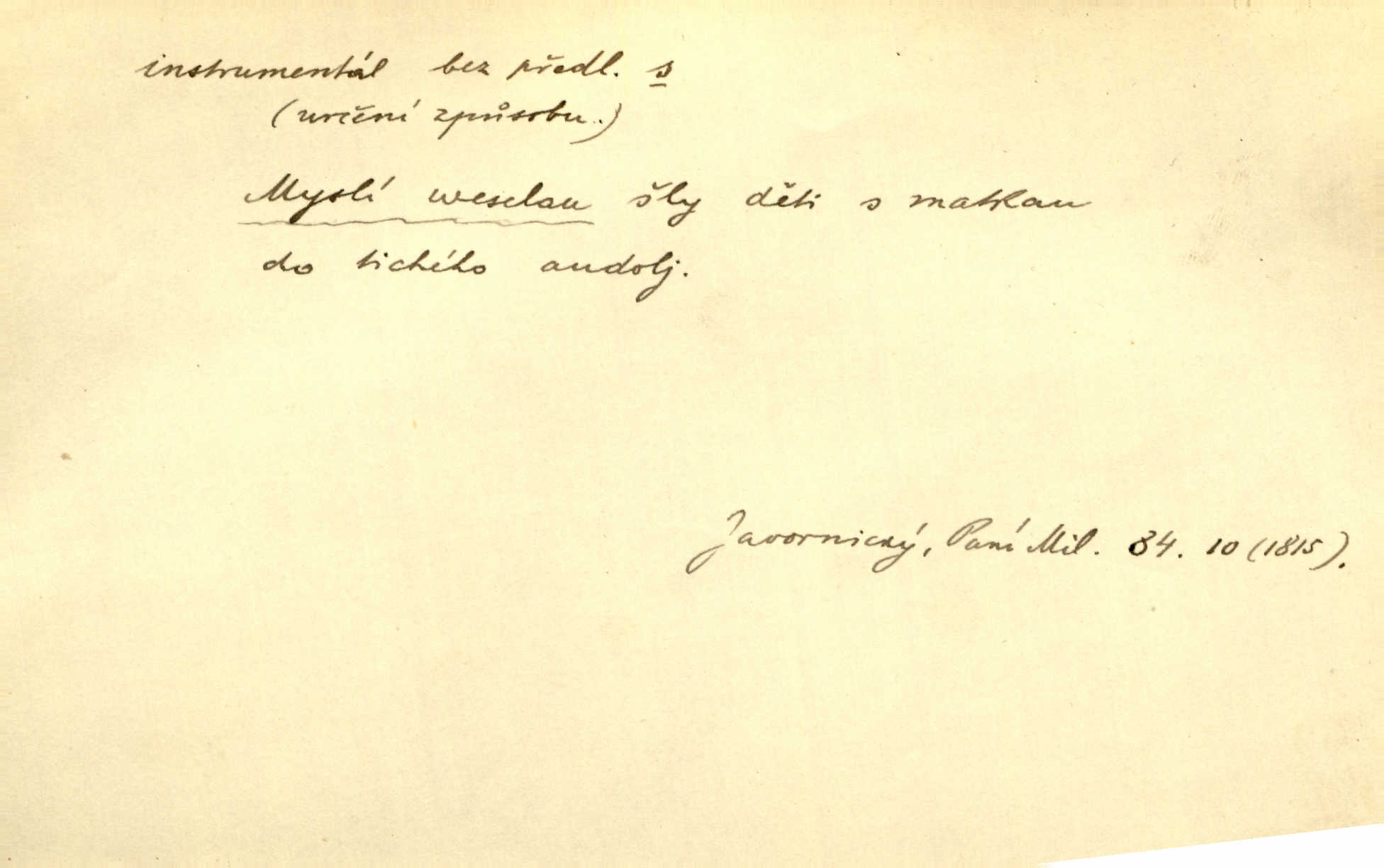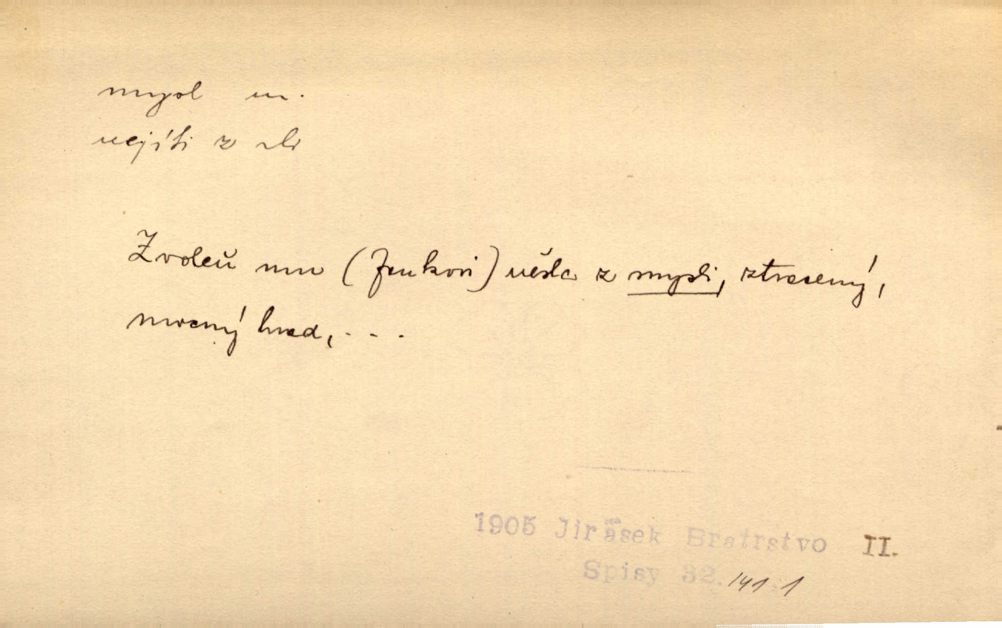 - mysl, -i f. (pl. dat. myslím, lok. myslích, instr. myslemi) duševní základna lidského myšlení, cítění a chtění. Tuhá poroba mysl jejich otupila. Jir. Událosť ta zaujala mysli všech našich přátel. Šmil. Ta [matka] se navzpomínala! Pořád to měla na mysli na to myslila. Třeb. Jindřich, maje na mysli válečnou slávu, hotovil se k boji. Tomíč. Bylo podškrtnuto ještě jiné místo, které mi dříve nepřišlo na mysl kterého jsem si nevšiml. K. Čap. Srdce její chytlo se kdysi na podobu šohaje, jenž jí nevypadl z mysli nezapomněla naň. Herb. Zvoleň mu nešla z mysli. Jir. Sejde s očí, sejde s mysli zapomene se. Přísl. Že já jsem bratrem jejím, prosím, abys pustil z mysli nemyslil na to. Šmil. Pro přírodu měl mysl přístupnou. Šmil. Já nevím, co jsem dělala, snad jsem byla na mysli spletená. Čap. Ch. Zdali neklesá [Havlíček v Brixenu] na mysli a nesžírá-li zoufalství jeho ňadra? Herb. Filos. pocitová základna a povaha logického myšlení. D mínění, smýšlení, názory, přesvědčení. Vím, že jste jedné mysli s tím nehodným knězem. Jir. Všude se mi stýskalo, všecko bylo mi proti mysli. Něm. Když provdávali starší sestru za advokáta, nebylo jí to [mladší sestře] po mysli. Šmil. Ve všech skladbách jeho vane vroucí, upřímná, bohu oddaná mysl. Šmil. Ne vždy se na světě potkáte s tak citlivým srdcem a s tak šlechetnou myslí. Sab. Byl to člověk lehké mysli lehkomyslný. Něm. První jeho žena byla ze zemanského rodu a vysoké mysli hrdá. Vrba. D citový obsah lidského nitra, nálada, chuť k něčemu. Jiskra byl dobré mysli. Jir. Vybízel dělníky k zpěvu, aby těžká práce neudusila veselou a zdravou mysl. Pfleg. Veselá mysl půl zdraví. Pořek. Není hodno ani radostí ani žalem kormoutiti jasnou mysl. Klác. S veselou myslí v srdci opouštěl jsem zámek. Stroup. Cítil se příliš osamělým a byl proto těžké mysli. Šmil. Sluší s myslí hrdinnou buď čekat mír, buď ránu poslední. Vrch. D dobrá mysl lid. rostlina dobromysl, Origanum. Rozkvétá tu macoška, tymian, dobrá mysl. Vrch. Dobrá mysl pomáhá od bolesti zubů a štípání v hlavě. R. Svob. D odvaha, zmužilost, energie. Dodal si mysli a vešel. Svět. Nyní mu klesá mysl a již se poddává úzkosti a bázni. Prav. Teď teprve nabyli postrašení [pijáci] mysli a spěchali za ním. J. J. Kol. Když nechcete, zůstanu, jenom se utište — a neztrácejte mysl! Šim.