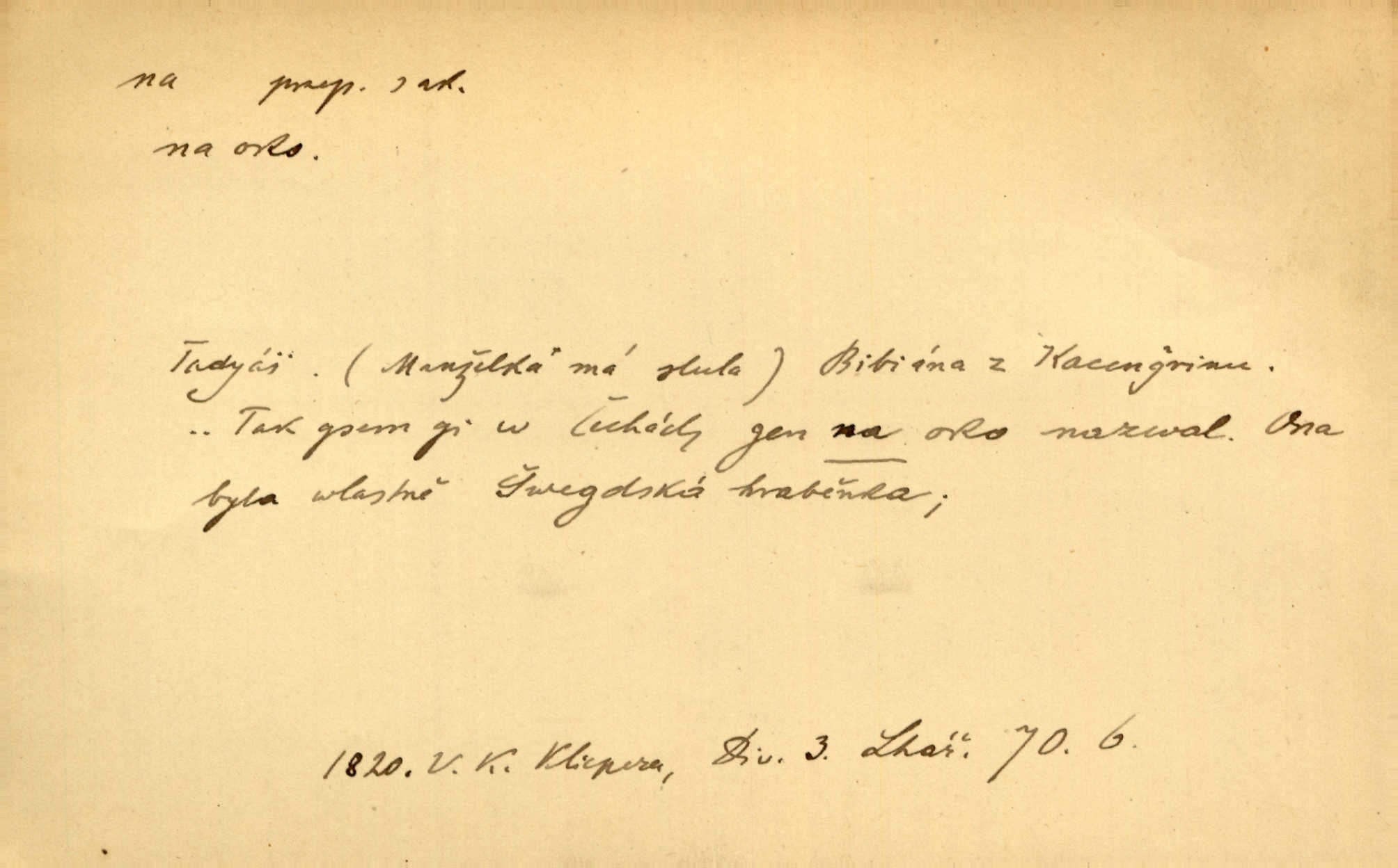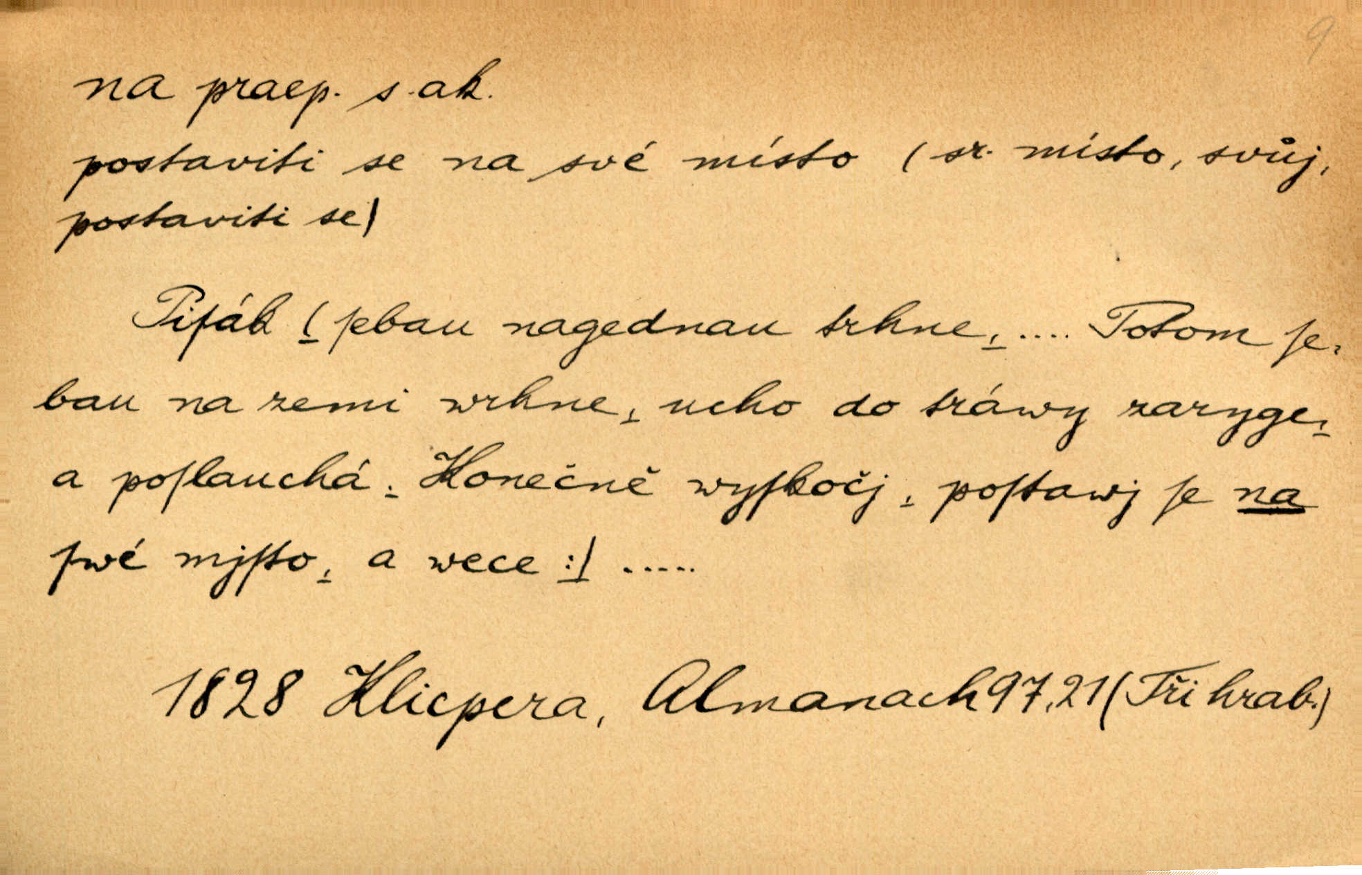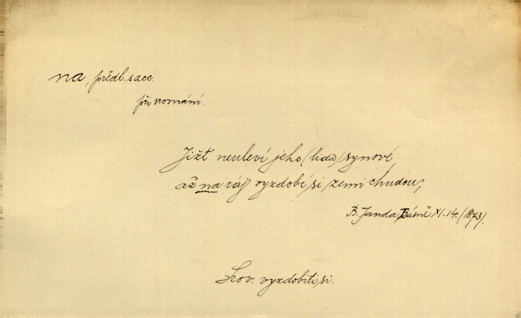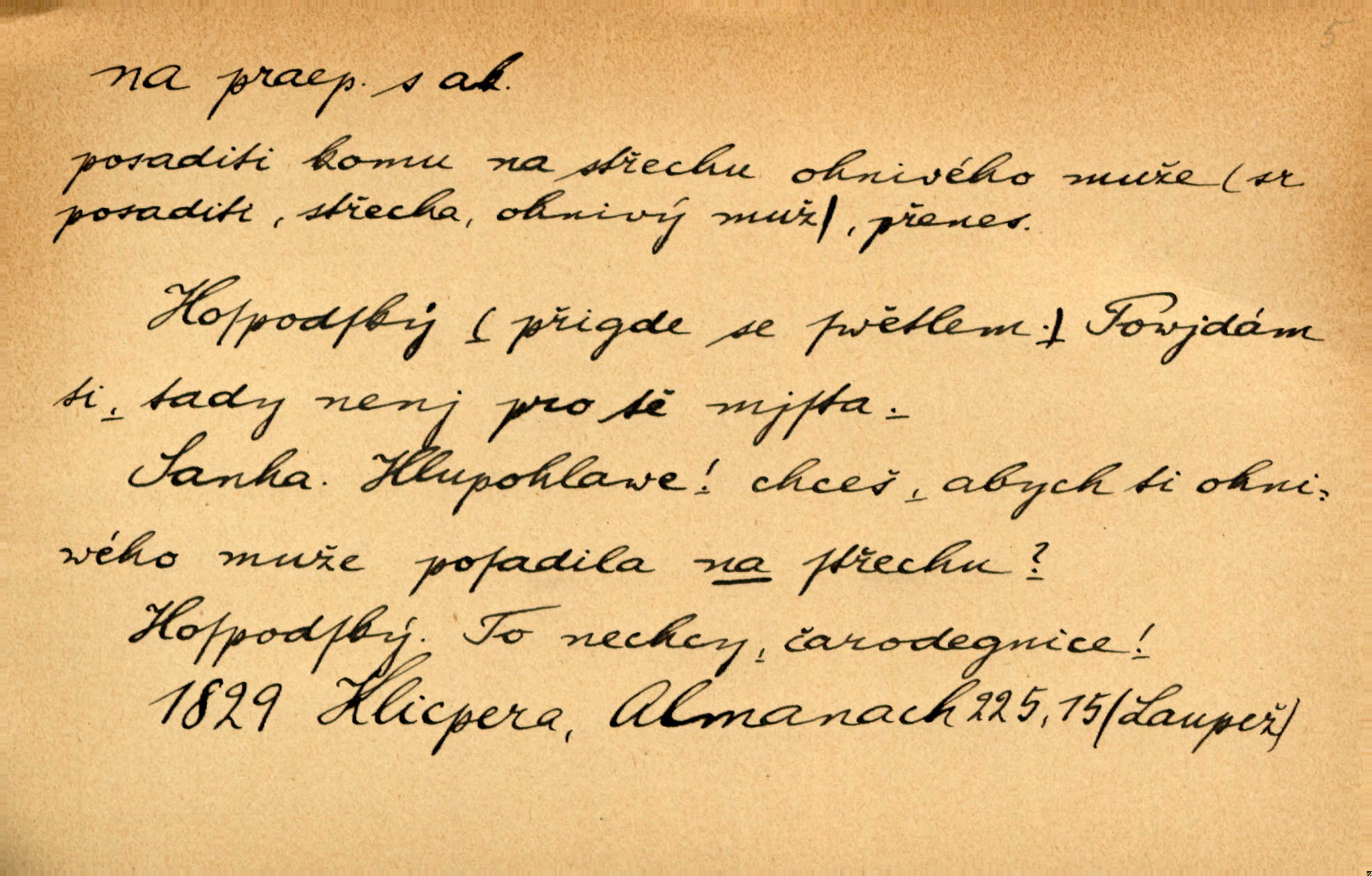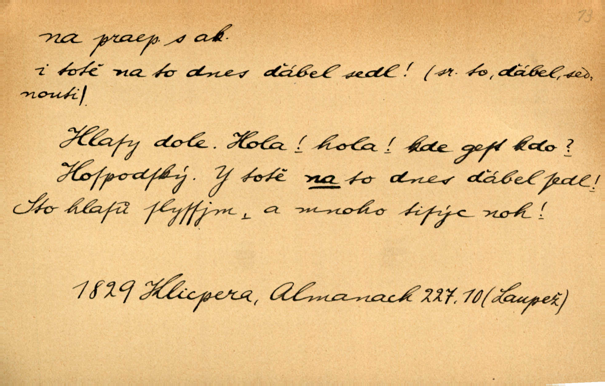 - na 2. citosl. dial. v německém prostředí no, nuže. „Na!“ vykřik kočí, komoň frká, a juž kola hrčí. Heyd. Vyšinul se na kůň, zavolal: „Šimla, na!“ Kosm. Ah — tady je pěkně, na, však nemusíme odtud pospíchat. Jir. Na, ve Zdicích bude Suchářípa hned po poledni. Čap. Ch.