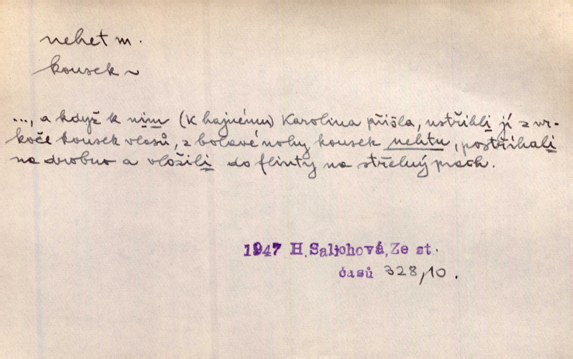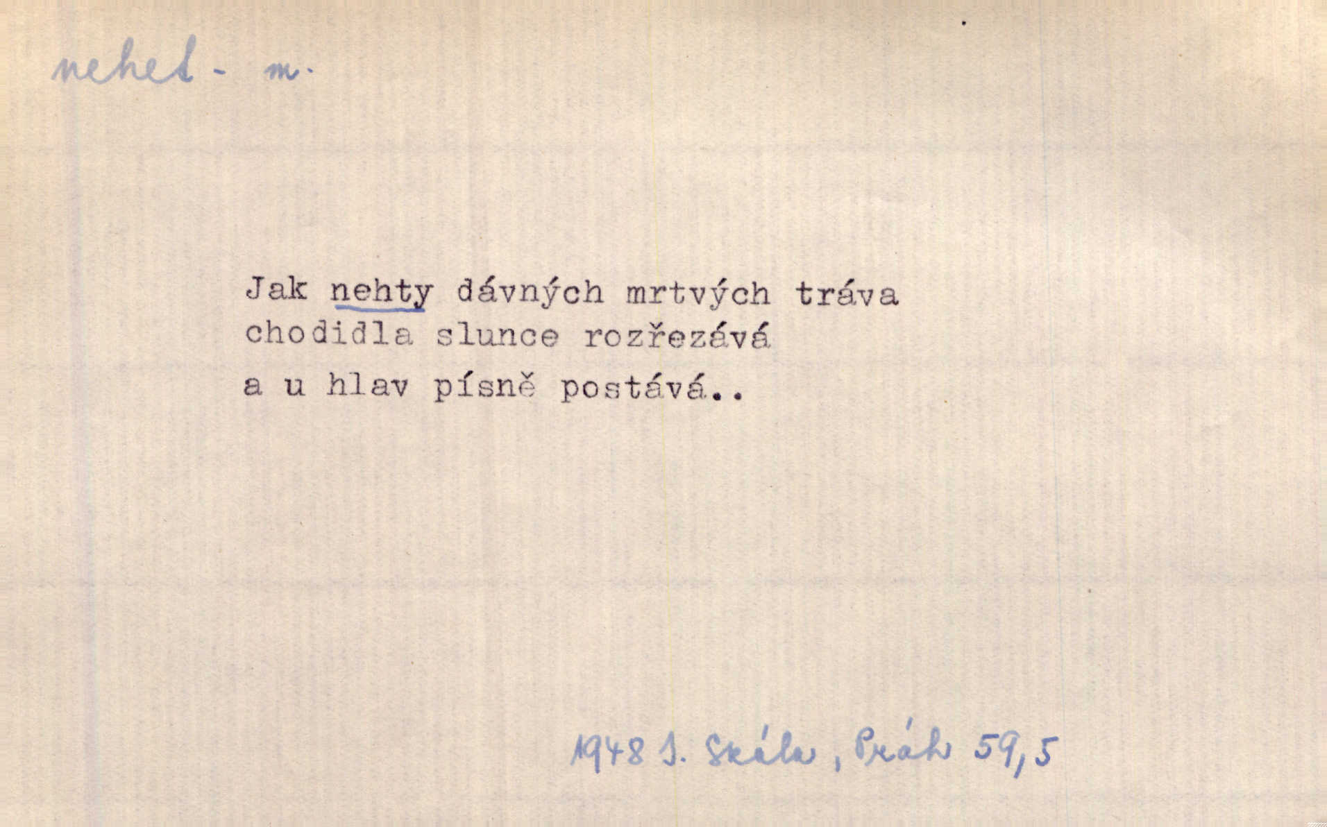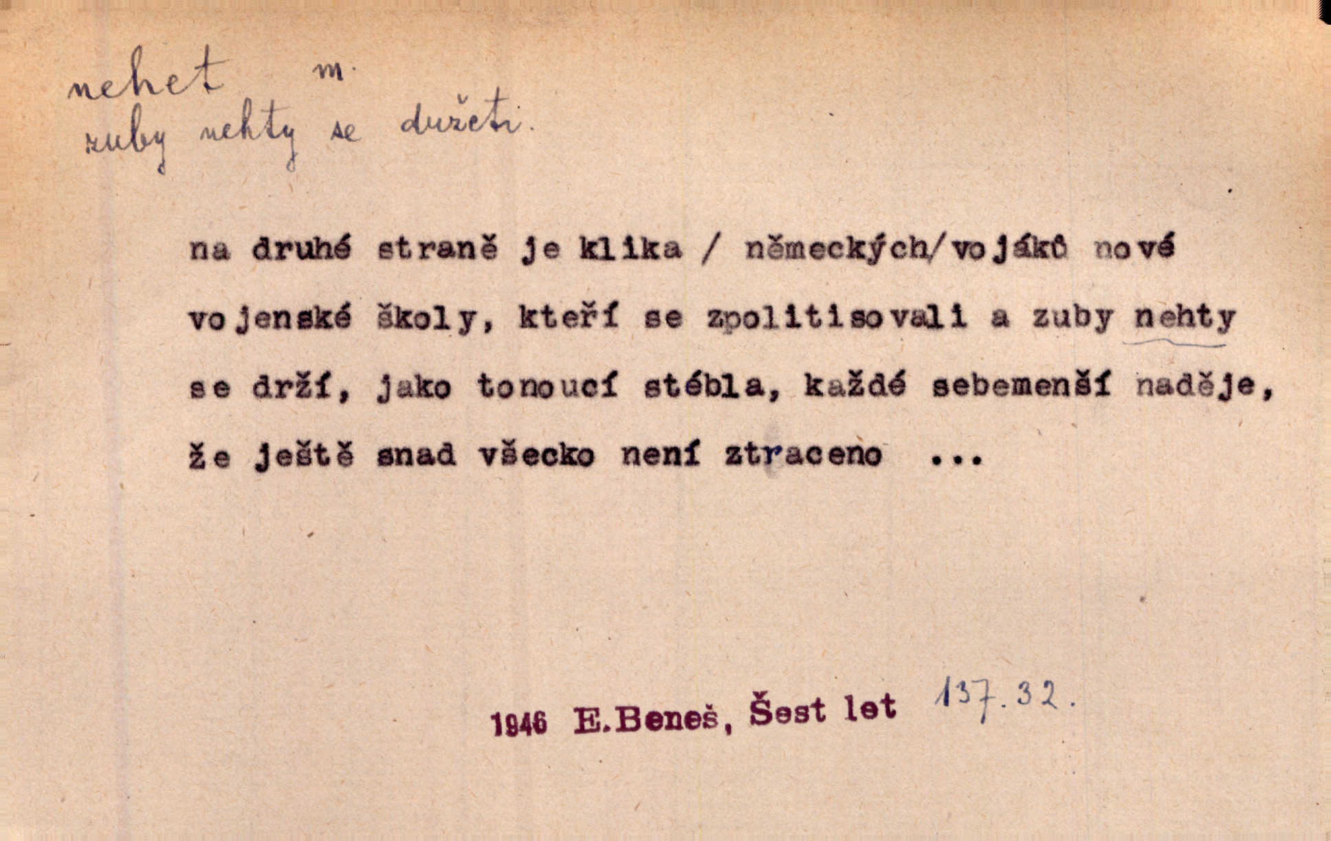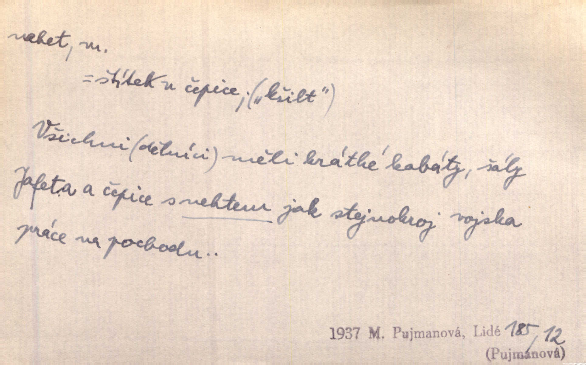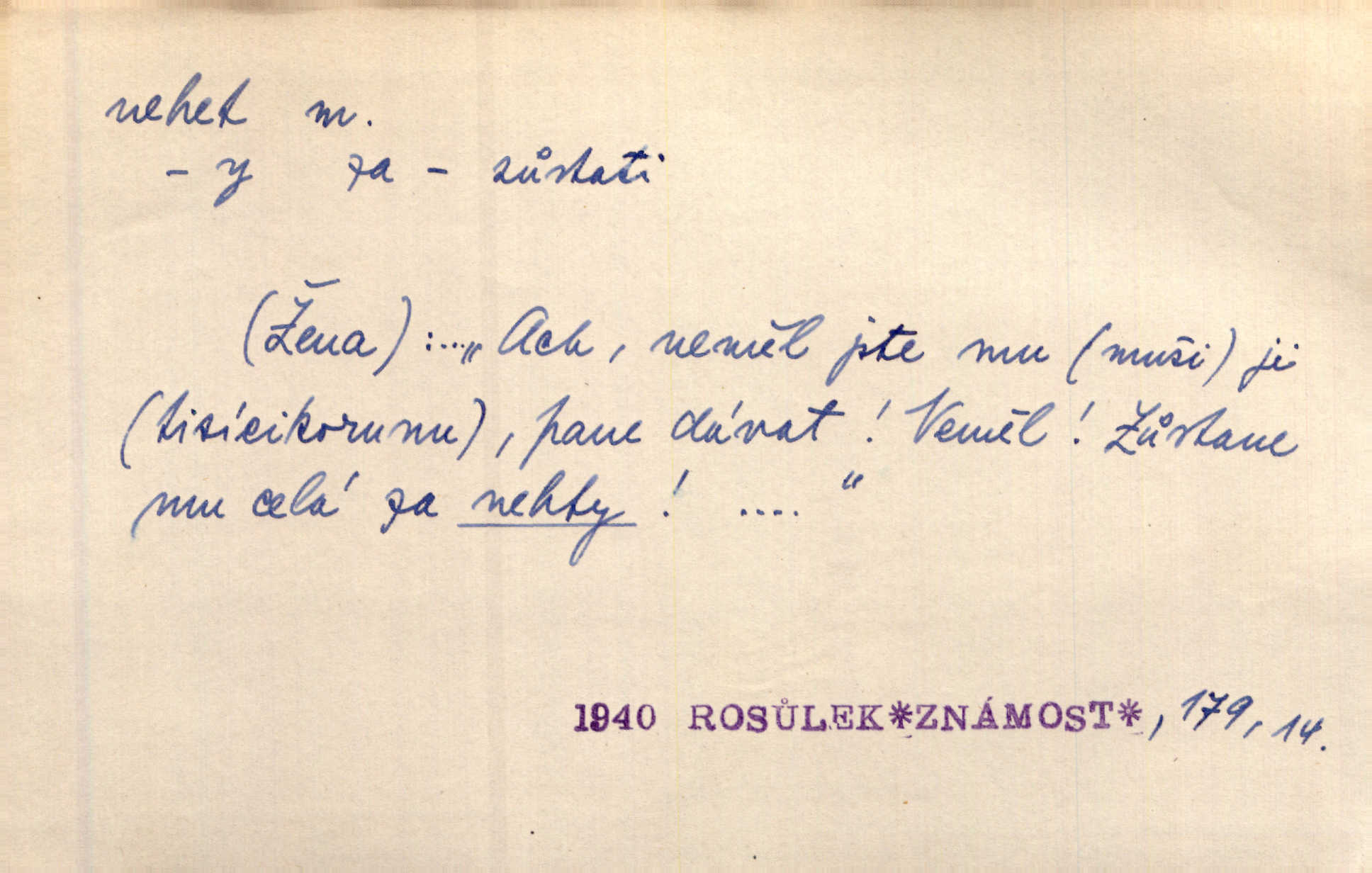 - nehet, -htu m. zrohovatělá ploténka pokožky na konečných článcích prstů. Piloval i soustruhoval nehty. Herrm. Růžový nehet krásně opalisuje v lesku slunce. Mach. Zbaven [vězeň] denní záře, rve si šedé vlasy, nehtem ryje tváře. Čech. Ustál. sp. Na těch cestách [do školy v zimě] mráz pálíval, zalézalo za nehty. Rais. [Úkol kritikův v novinách je] nepříjemná historie, která tě znepřáteluje kde s kým a zadírá se ti zatrachtile za nehty působí nesnáze, nepříjemnosti. Šal. „Kronika z konce tisíciletí“ je několik smyslných erotických avantýr mladého Alberta, z nichž teprve poslední, Bertina, jde mu hlouběji za nehty působí silněji. Šal. Je to [na panském] jako při císařské službě: každému zůstane něco za nehty, za velkými mnoho, za malými málo každý si něco nechá, zpronevěří, ukradne. Hol. Máš ty dlúhé nehty, dyž se ti za něma třicet rynských zadrhne ukradneš je. Herb. Byli obžalováni, že za války za nehty si nechali několik set zlatých zpronevěřili, ukradli. Hol. Vy [sedláci] budete míti taková práva jako před 200 lety a musíte se jich držeti zuby nehty vší mocí, všemožně. Herb. Měl pověst člověka tvrdošijného, jenž zuby nehty drží se toho, co si jednou usmyslil úporně, svéhlavě. Čech. [Purkmistr] byl muž plný síly a při tom do nehtu prolinulý důvěrou v tajemníka docela. Štech. Vzal jsem já vám někdy, co by za nehet vlezlo? třeba jen nějakou maličkost, vůbec něco. Herb. Nese [chuďas v chumelenici] otýpku klestí. Patrně nasadil život, aby si vypůjčil za nehet tepla trošku. Lier. Česká hospodyně může bědovat, že nemá doma „ani náprstek vody“ a „ani za nehet mouky“ vůbec žádnou mouku. Ner. Na tom [klepu] není pravdy, ani co by se za nehet vešlo vůbec žádná pravda. Stank. Nemohla míti za nehet pochybnosti o jejím původu. Herrm. D Slang. štítek čepice. Měl čepici placatou, s obrovským nehtem a s kostkou. Přít. Muž v čepici s „nehtem“. Maj. Kameník popotáhl nehet čepice na stranu. Nový. A nyní ještě štítek, chránící oči před sluncem a ve vojenské hantýrce nehet zvaný, se k čapce našije. Kop. D Zool. rohovitá šupina na zobáku. Bot. dolejší vzpřímená a zúžená část korunního plátku. D Dial. dobytčí nemoc projevující se na sliznici jazyka. Má-li nehet která kráva, ať se jí blínové semeno dává. Hol.