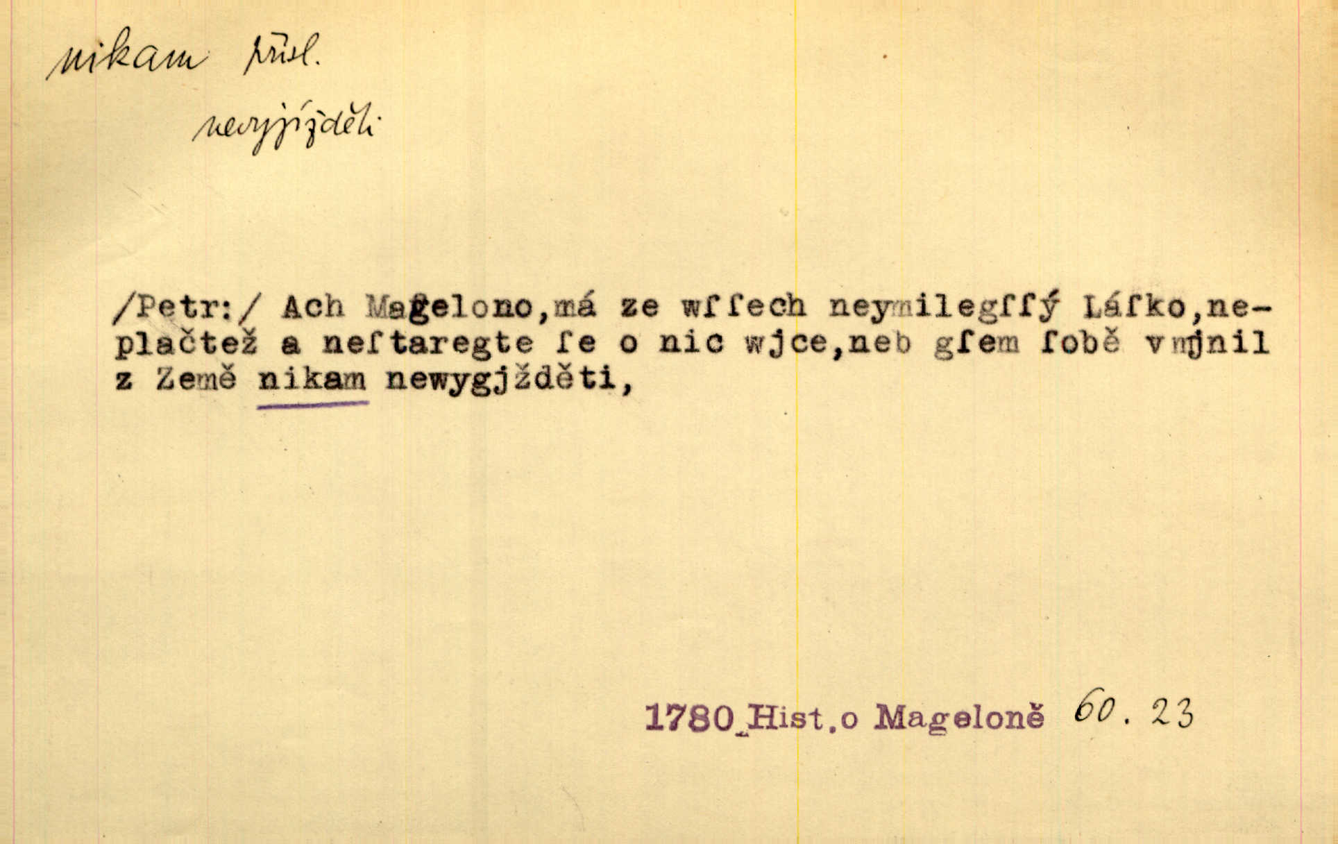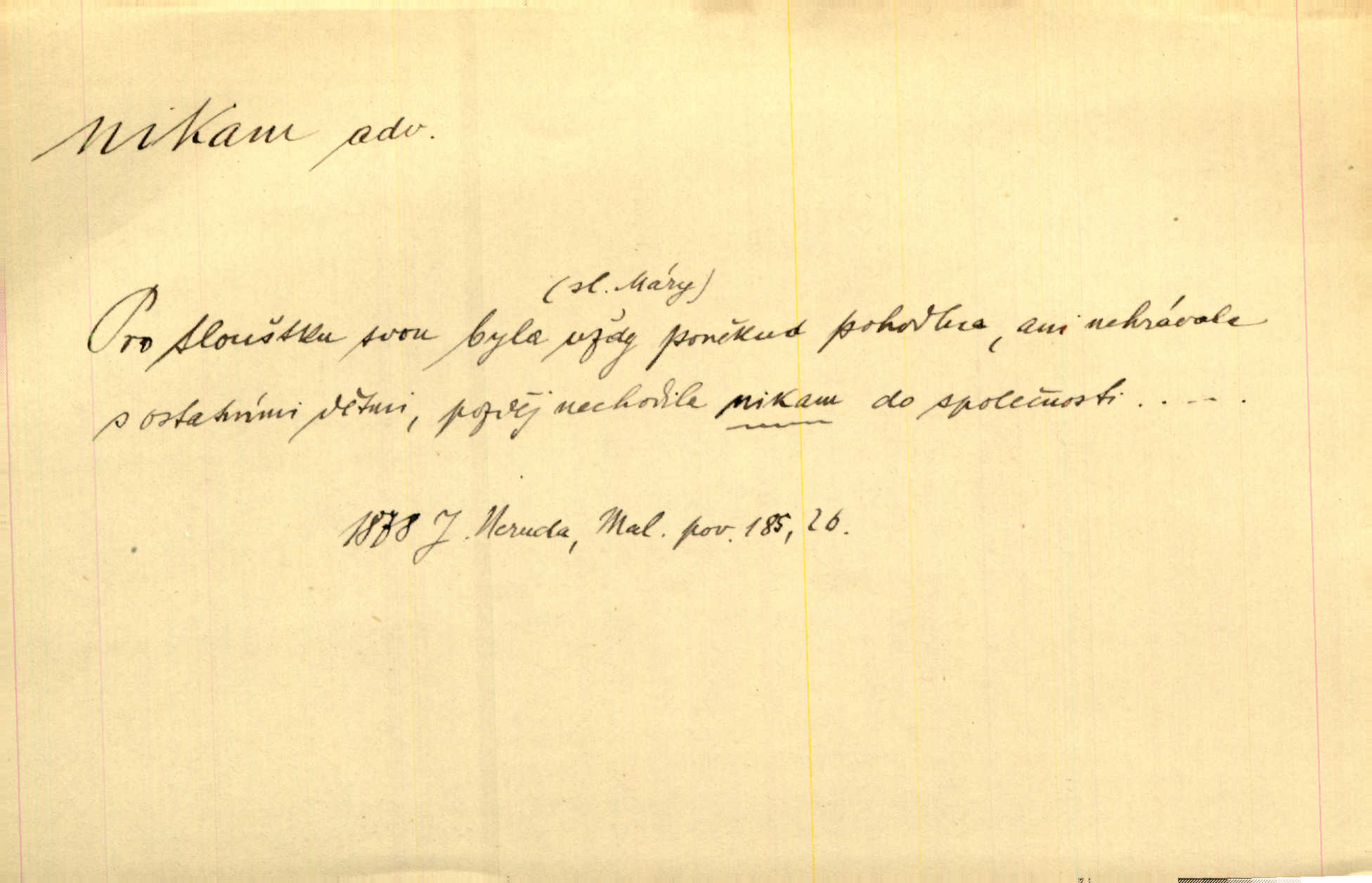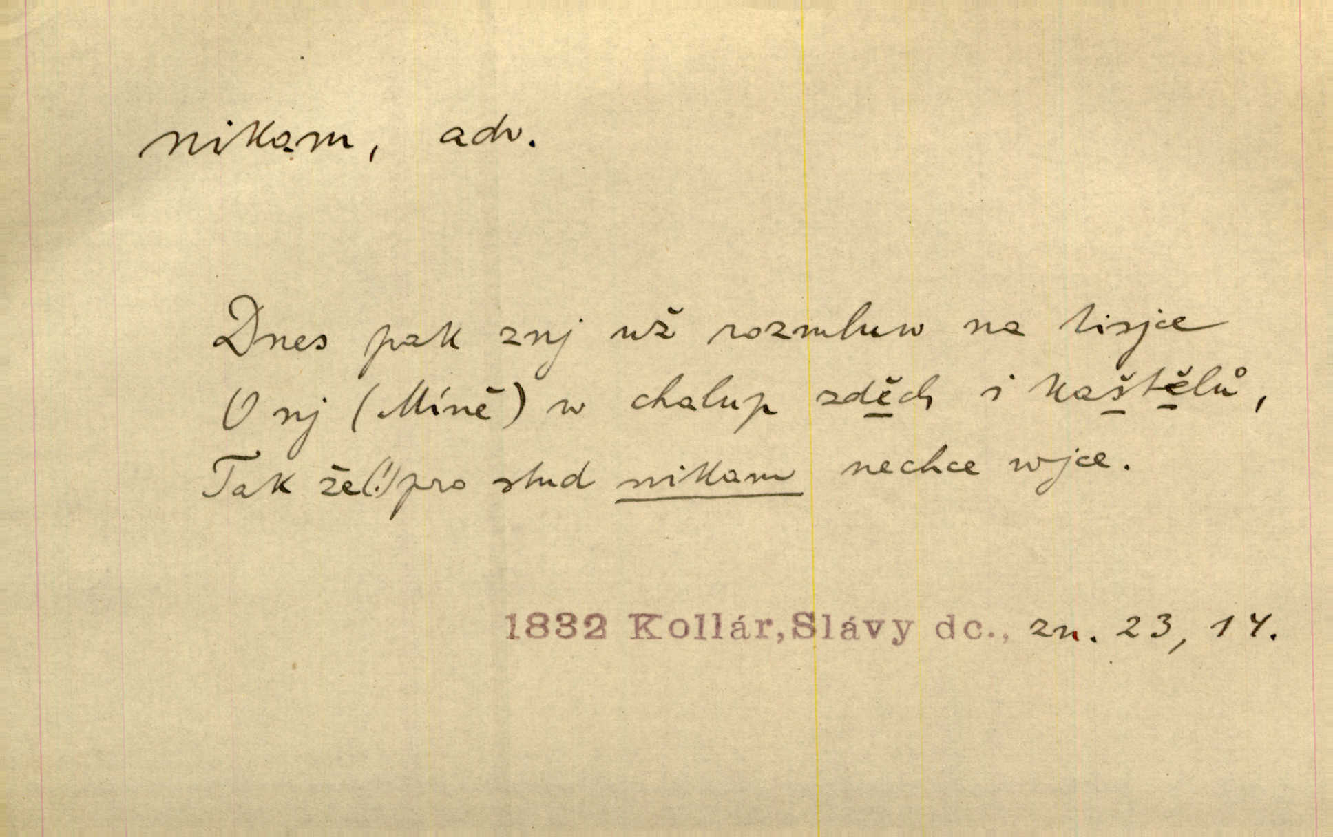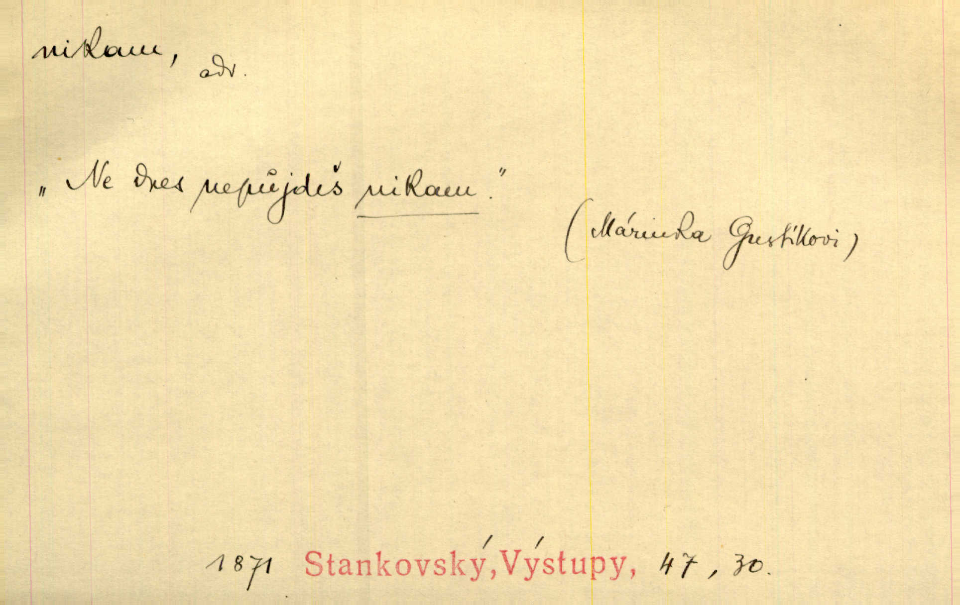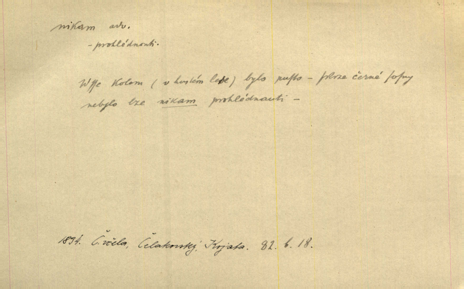 - nikam (poněk. zast. také nikamž) adv. na žádné místo. Nikam nechoď, dcero moje! Erb. Nechodila nikam do společnosti. Ner. Jaktěživ jsem nešel nikdy nikam tak rád, jako dneska do Jiřic. Třeb. Člověk lehce mávl rukou, pohlížeje neurčitě a zamyšleně nikam. K. Čap. V zemi nepřátelské nehýbej se nikdo nikamž, leč na rozkaz hejtmanův svých. Pal. D k žádnému zdárnému cíli, k žádnému výsledku, úspěchu a pod. To já pořád říkám, že to se svou opposicí nepřivedeš nikam. Havl. Žitných učinili pro ně co mohli, aby ulevili dceři v neštěstí, ale nikam to nevedlo. Šmil. Pláčem už nikam nemohla nemohla nic pracovati. A. Mrš.