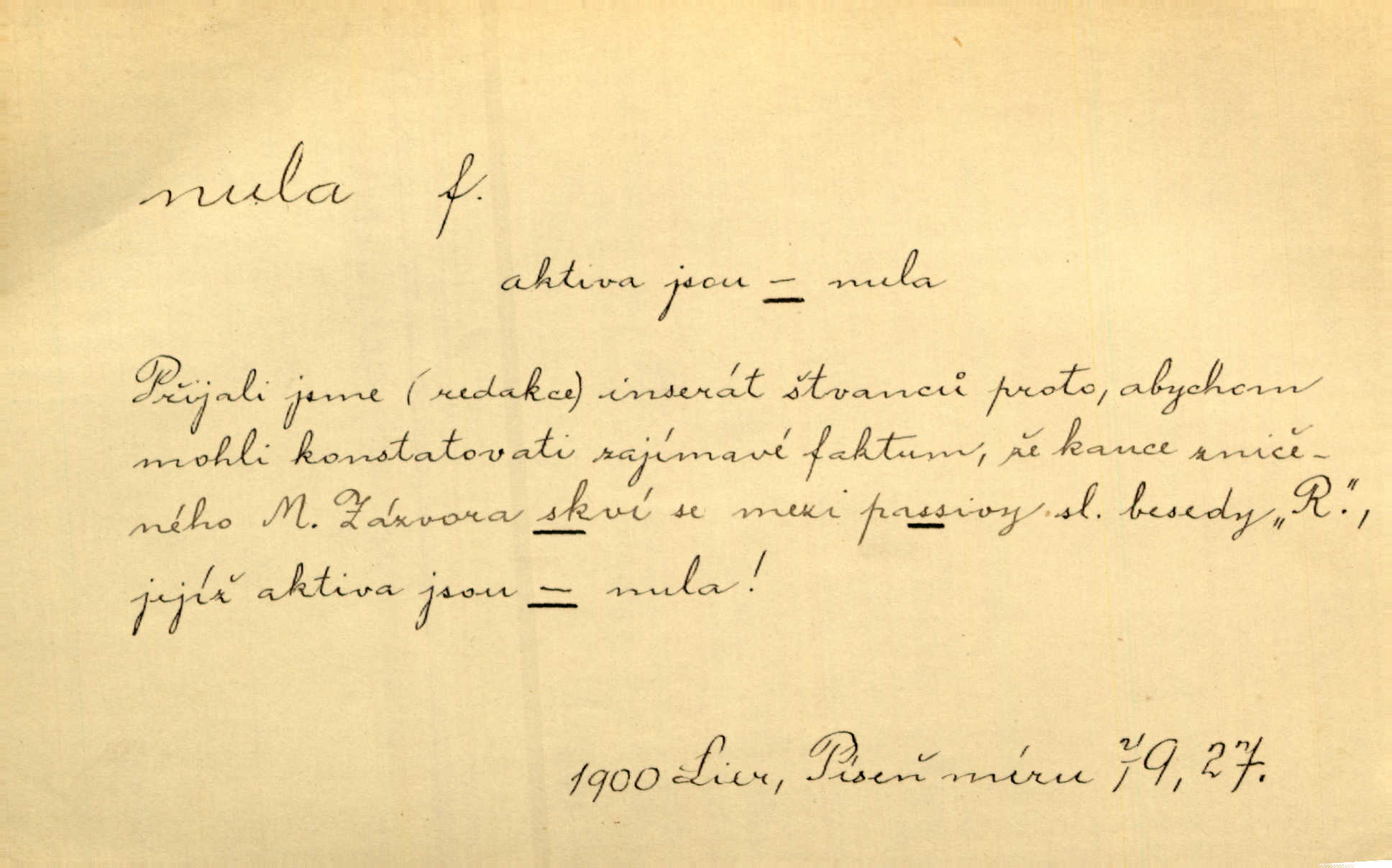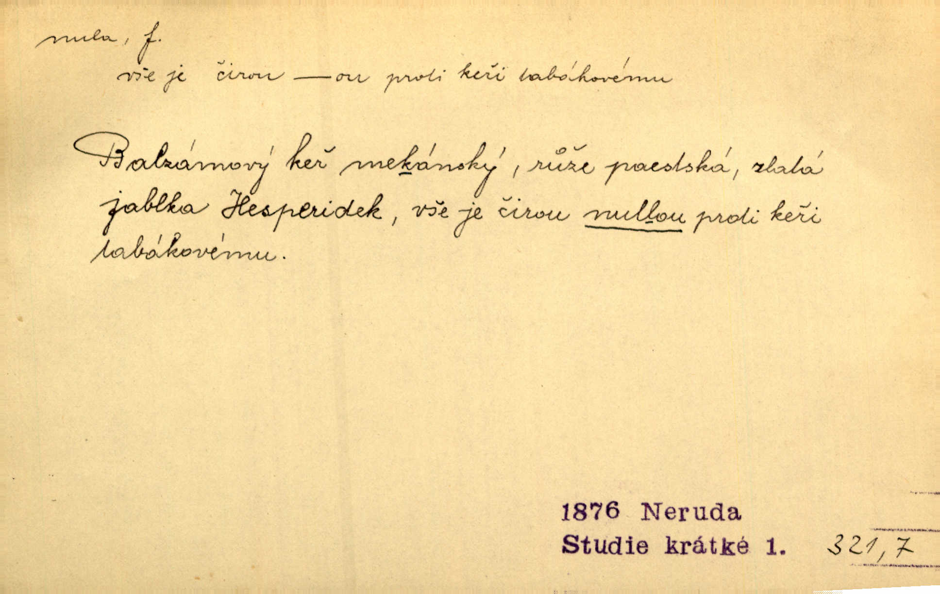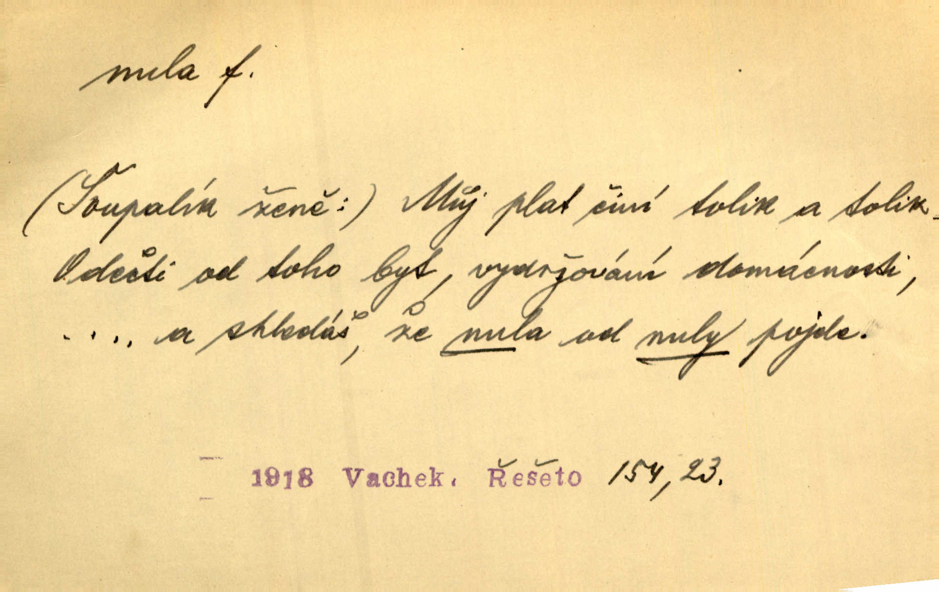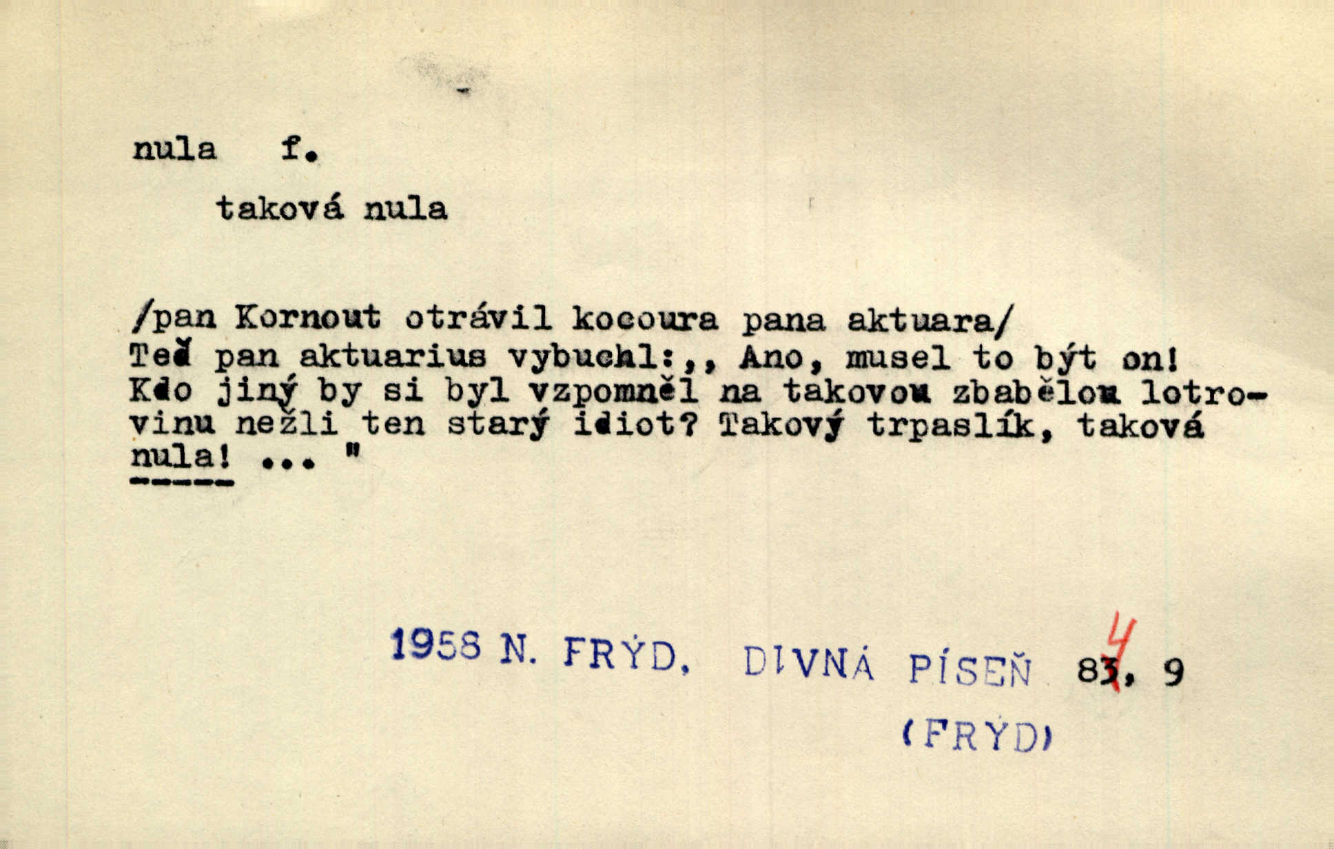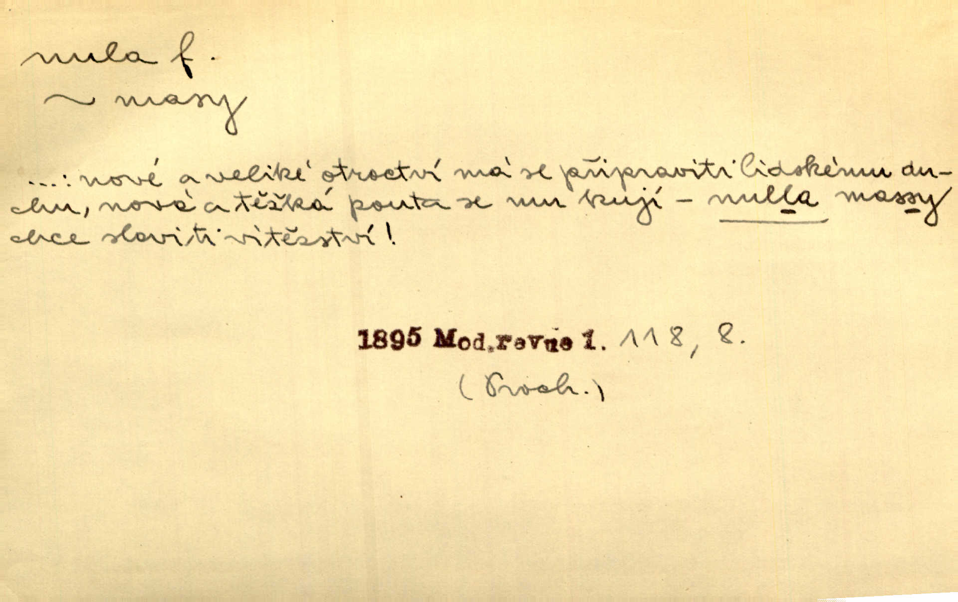 - nula, -y f. značka pro žádnou jednotku, pro nic. Poznamenáme si místo, kde se rtuť zastavila, nulou. Zl. kl. Nakreslil kouřem a cigaretou do vzduchu jakousi nulu. K. Čap. V „půlčase“ oba kluby psaly nulu, přes to, že po celých 30 minut „Patricia“ obléhala „Rapida“. Čap. Ch. Teploměr ukazoval 22° pod nulou pod bodem mrazu. Kun. Jeho námaha klesla pod nulu velmi, velice. Vrch. Její kurs u vojska klesl, možno-li pod nulu. Dur. Ve všech našich městech upadly řemesla a průmysl až pod nullu. Havl. Mat. jméno číslice pro číslo vyjadřující, že není žádných jednotek (desítek atd.). D nic. „Pivo a chléb“, počítal hostinský, „dělá 14 kr. Za nocleh nechci nic. Dali jste mi 4 košťata. Dám vám za ně těch 14 kr. A 14 od 14ti zbude nulla.“ Prav. Můj plat činí tolik a tolik. Odečti od toho byt, vydržování domácnosti, a shledáš, že nula od nuly pojde. Vach. Martin hospodařil od pěti k čtyřem a naposled přišel až na nulu. Prav. Přijde jen ještě porota a řekne tak a tak, dvanácti ano kontra nula. Ner. Chudoba srážela v nullu všechen smělejší vzlet jeho výpočtů. V. Mrš. Mat. číslo vyjadřující, že není žádných jednotek (desítek atd.). D někdo bezvýznamný, něco bezvýznamného, nicotného. Rychtář a konšelé jsou nula. Jir. Pan Šaroch zůstal nullou v domě. Podl. Vpředu stála stará paní a v stínu jejího sebevědomí se ztrácely tři ženské nuly. Til. Nesprostíš mne hrůzy před politickými nullami. Sova. Pan vrchní byl jen titulárním pánem, jeho vplyv a moc byly nulou. Svět. Tedy, chaso! mažte a uvidíte, jak to potom pojede! Tramvaj bude nula! Kosm. D Zř. druh lepší mouky, nulka. Hospodyně nabrala si z truhly litr nuly. Zákr.