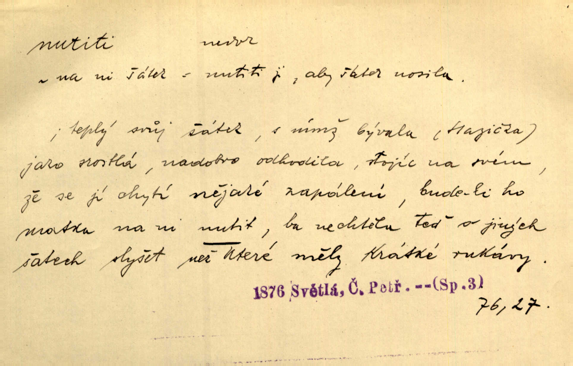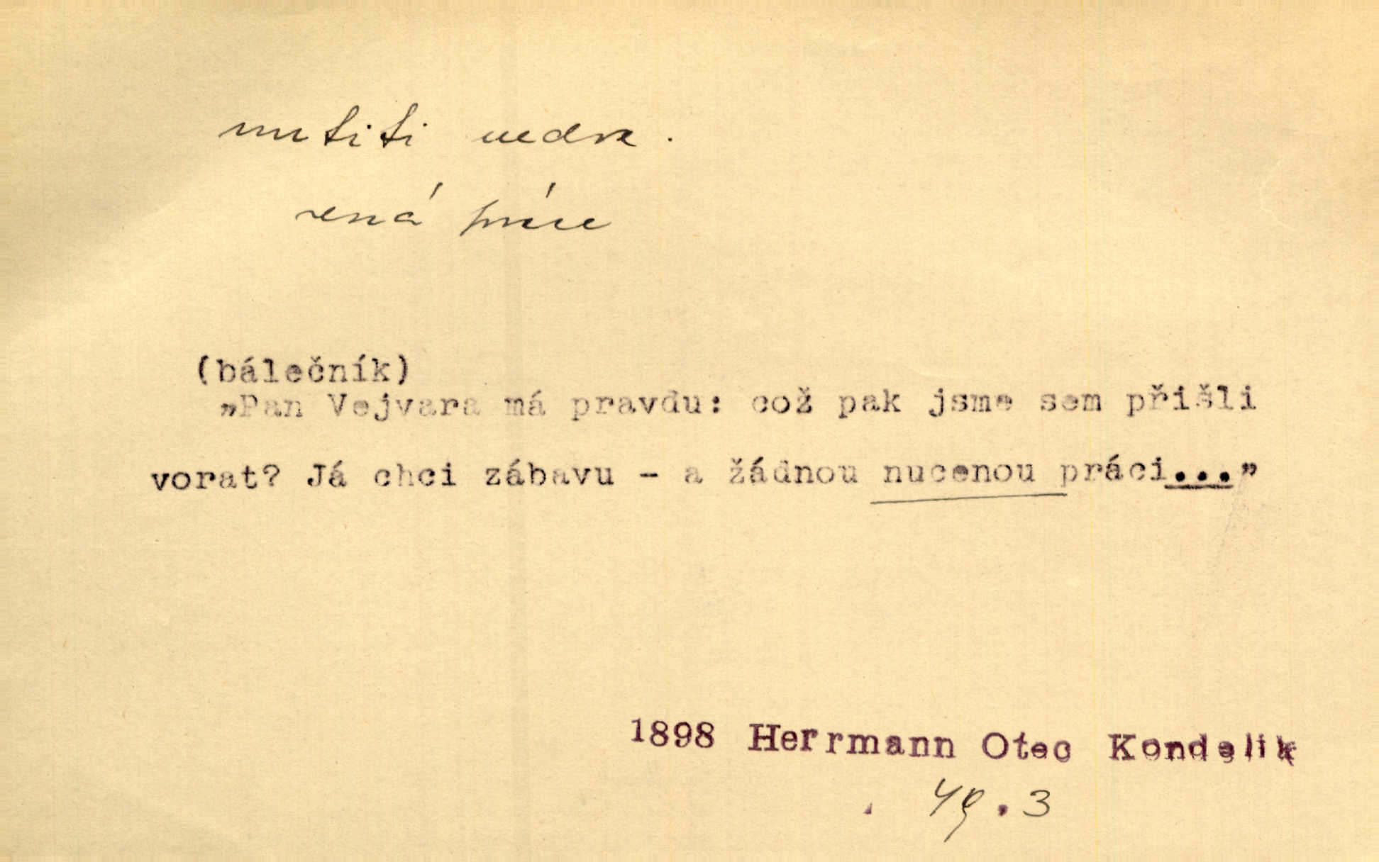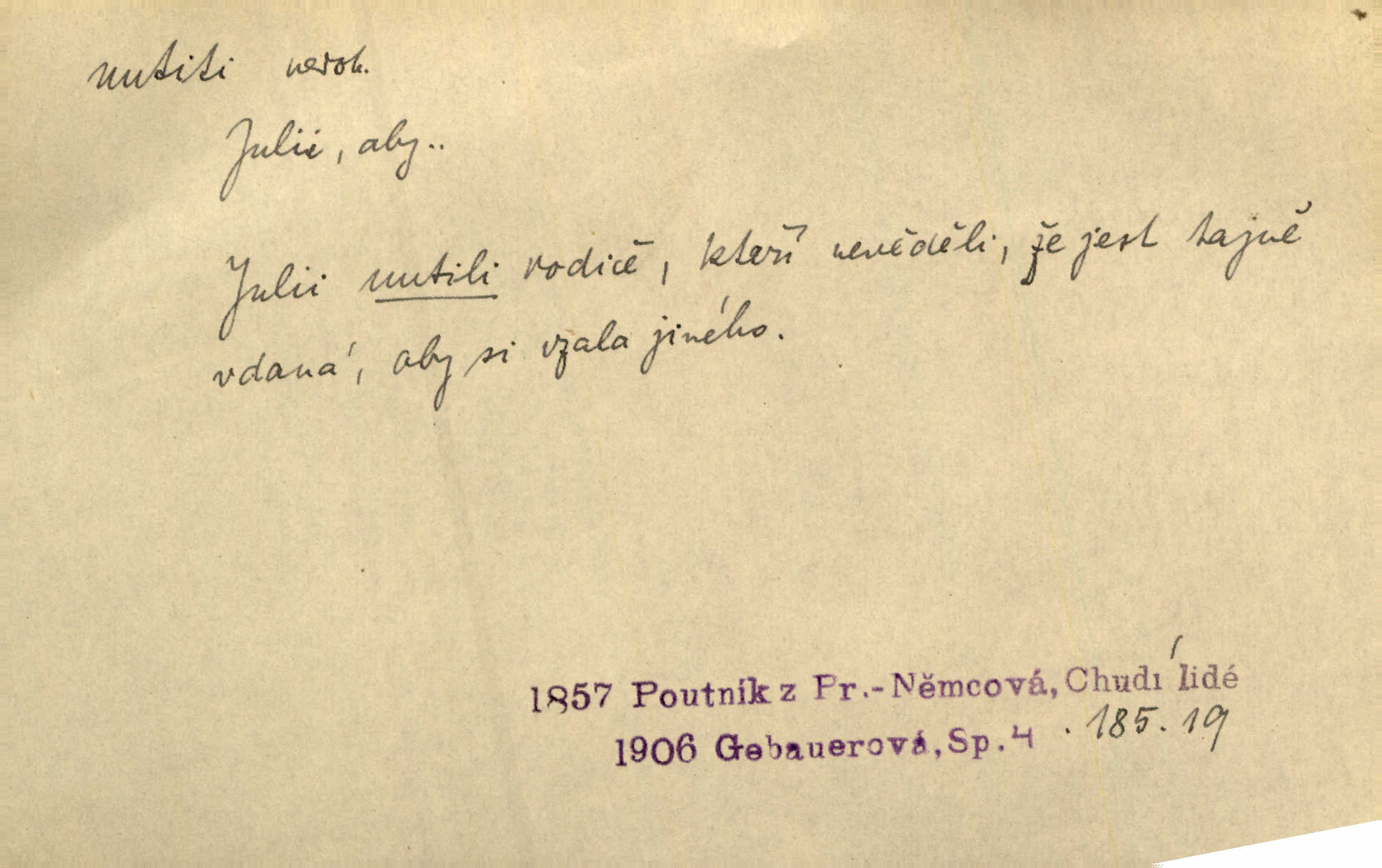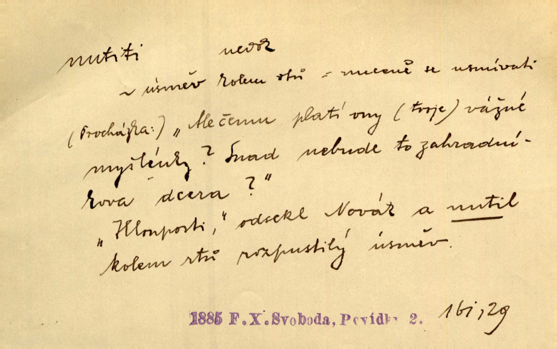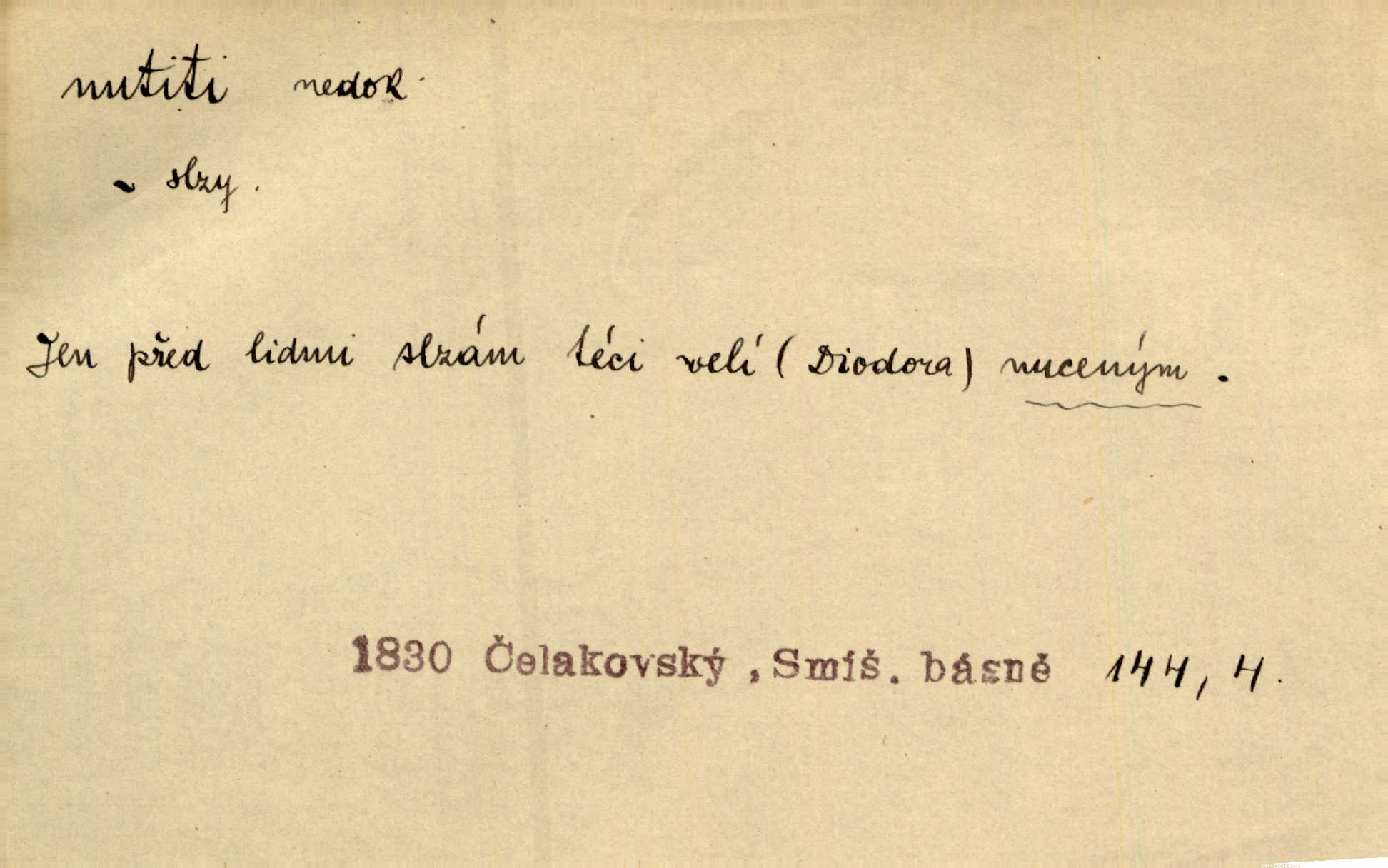 - nutiti ned. (koho k čemu, do čeho, kam a pod.) důtklivě, naléhavě, důrazně pobízeti, vybízeti, vésti. „Nechte mě, nenuťte mě,“ bránila se kamarádkám, nutícím ji k tanci. V. Mrš. Pouhá nouze, strach před škodou nutí jej [člověka] k chytrosti. Durd. Nedopustil, aby jeho dcera ke svatbě byla nucena. J. J. Kol. Škoda je Ješka; nerozuma otec, že ho k té ochechuli nutí. Jan. To už byl tak její [hostinské] „zvyk“, nutit do pití a do hry. V. Mrš. [Hospodáři] cpou do dýmek a nutí hosty do piva. Just. Později si školu sám zamiloval, a již nebylo třeba, aby ho do ní nutili. Prav. První [maminčin milenec] zmizl a do druhýho bába maminku nutila. Čap. Ch. [Caterina] nutila jej zpět na divan, konejšila jej slovy a polibky. Zey. Matku jsem neměl, a poručník na řemeslo nutil. Jir. „Sedláčkové“ aby o zadržené ouroky nebyli nuceni. Pal. Kdo u Štěpánů jen jednou pojedl, nutil ženu, aby se pozeptala, jak Helena to ono strojí. Prav. Vrchnost musila lidi nutit, aby se na opuštěných živnostech usazovali. Jir. I nepřítele nutil klekat k nohoum svým. Jan. Nucen byl, na několik okamžení se posadit na kamennou lavičku musil. Květy. Jsem nucena s tebou mluviti, jak dívka mluviti snad nemá. Zey. Nespokojenost v zemi tak velice se byla rozmohla, že císař nucena se viděl vyjednávati s ní. Pal. Doktor neodpověděl, Bohutínský byl nucen pokračovati. Arb. D (co komu) naléhavě nabízeti. Posadili jej za stůl a nutili mu plný talíř polévky. Wolk. [Pensista] doma kaktusy pěstuje a jeden exemplář mi nutí v úsměvu. Sova. D (co odkud, kam) s překonáváním obtíží, překážek, odporu, nesnází vykonávati, prováděti, dosahovati, někam n. odněkud dostávati a pod. Nutil kolem rtů rozpustilý úsměv. Svob. Voral kývaje nutil smích. Rais. Přemáhal zlost a nutil do sebe zbytek kávy. Herrm. Ret v úsměv nutí [Hus]. Špind. „To nevím — nevím!“ nutil starý ze sebe a chtěl vstáti. Tyl. „Ano, to je plátno,“ nutila domácí paní ze sebe v rozpacích. Ner. Zaťukal — zaprosil, po případě i zahromoval si náš kancelista na Fáfka i na ostatní podobné šosáčky a nutil z nich, čeho právě potřeboval: podpisy, staré obleky, cupaninu, peníze — jako čaroděj! Štech. Stál tu [před otcem]‚ jako stává obviněnec před soudem, když nutí z něho výpověď přisvědčující. Třeb. D nutiti se (do čeho, k čemu, kam a pod.) s námahou, s přemáháním obtíží o něco usilovati, snažiti se. „Dívku beze věna? — Toho za našich dob nebývá,“ nutila se hraběnka k žertu. Bozd. Já myslím, že se Olšovský k tomu velice nutil, a to mne urazilo. Pfleg. Musila se k němu ještě teď tak nutit. Svět. Králenec se nutil do úsměvu. Hol. Neměla zájmu na politice, nutila se do toho. R. Svob. V duchu se zalekl, ale nutil se, aby jeho hlas zněl přísně. Jir. Antikvář, maje knihu s tolika stran již zamluvenou, nutil se, aby ji koupil. Stroup. Děvče se nutilo, a ač její kuchyňské vědomosti nebyly příliš rozšířeny, přece dovedla všecko ku spokojenosti starého Procházky. Pfleg. „Na vyčištění svého domu budeme muset asi rukou statečně přiložiti“. „Budeme se nutiti dost a dost“. Ehrenb.