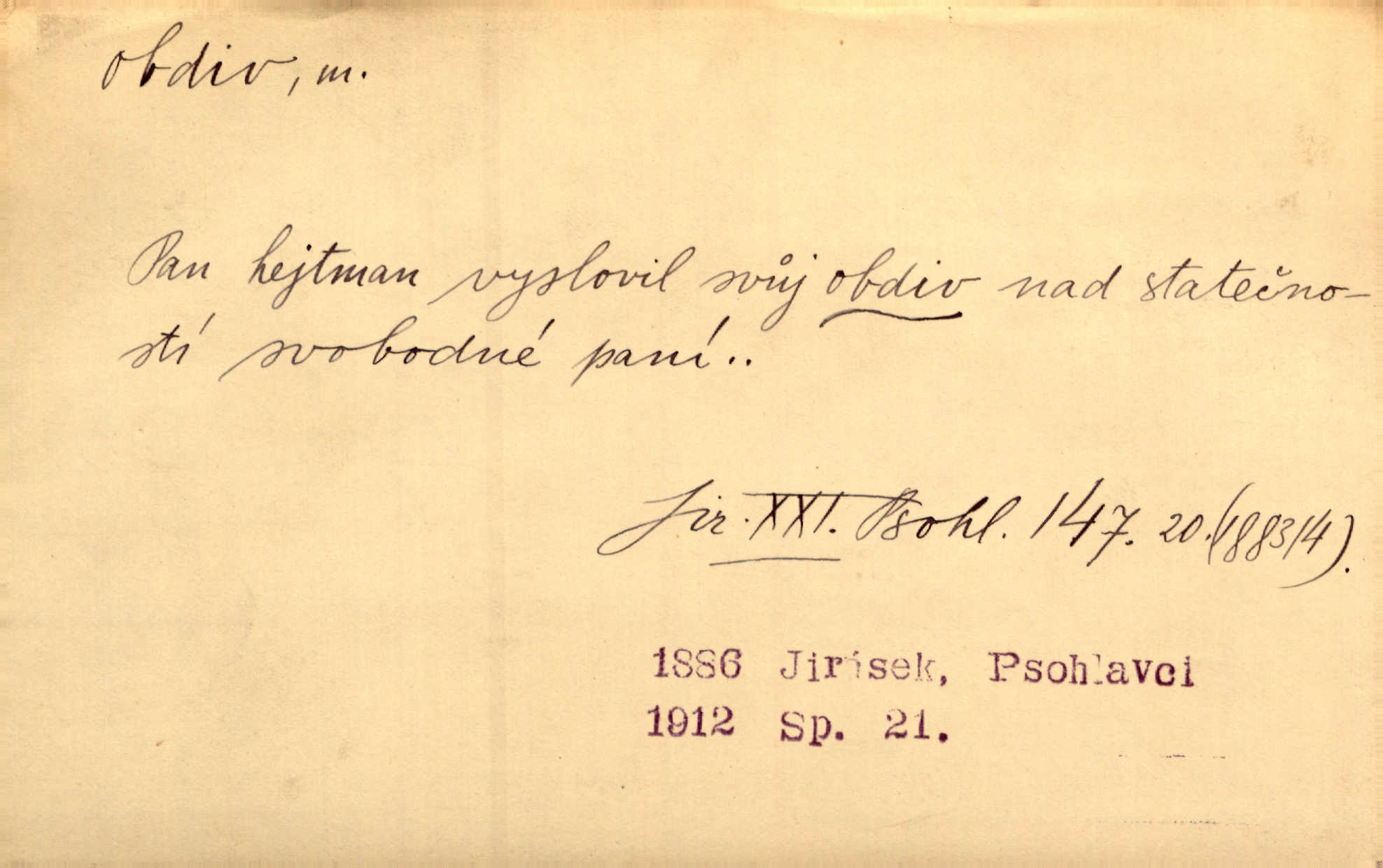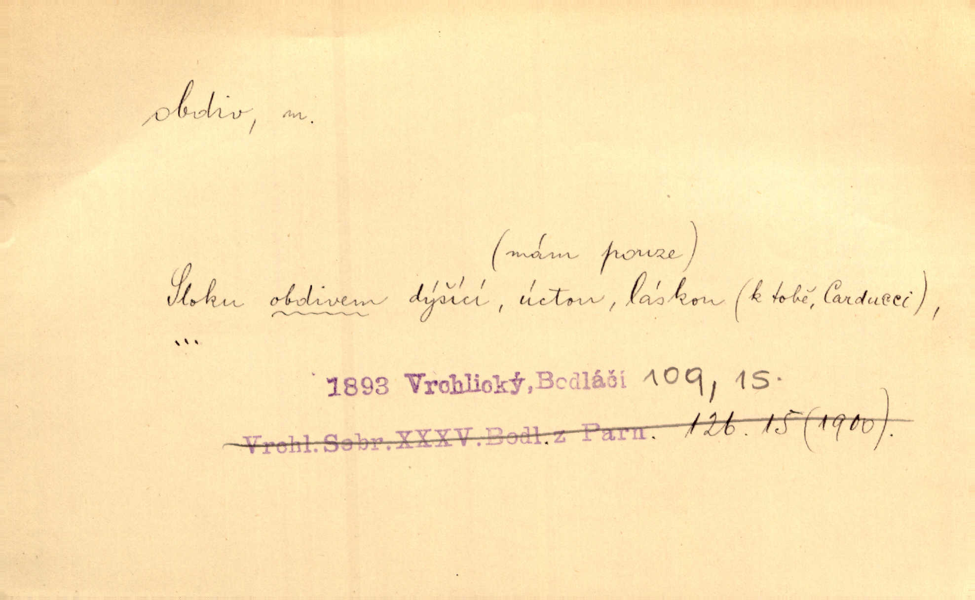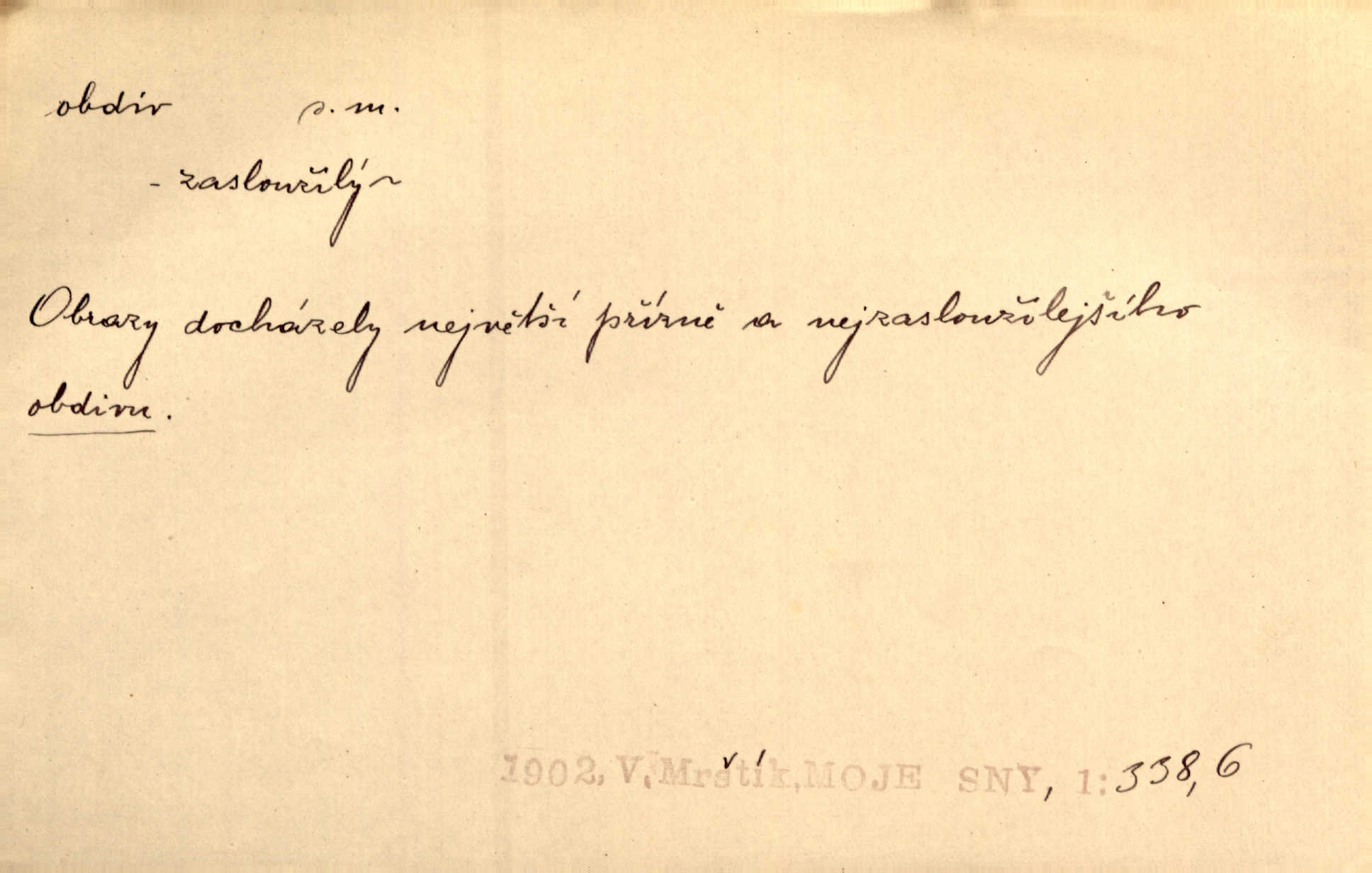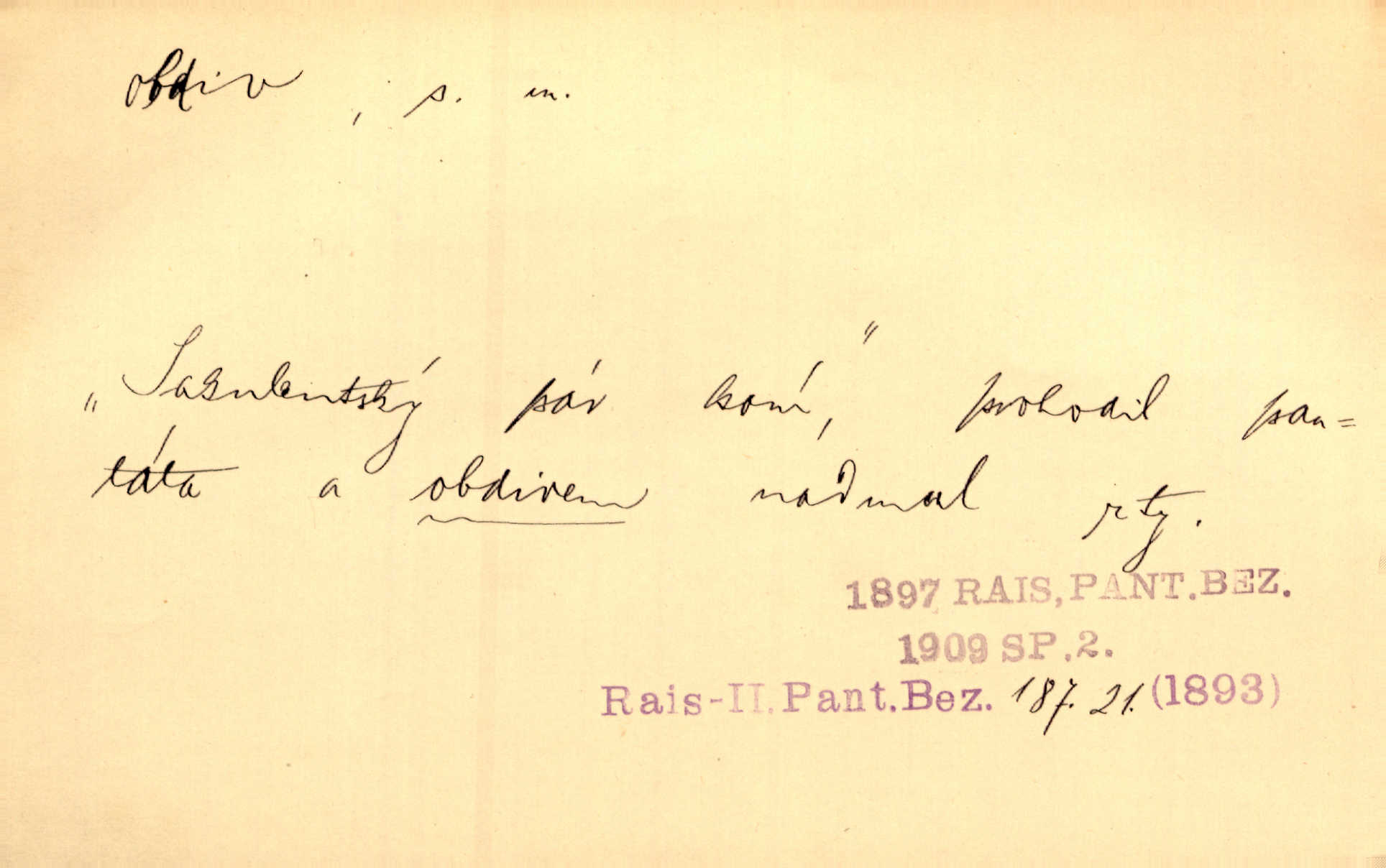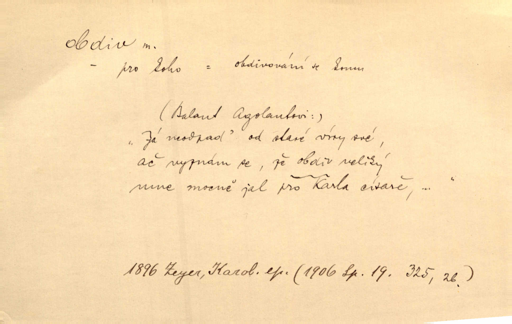 - obdiv, -u m. divení se něčemu, obdivování, podiv. Pan hejtman vyslovil svůj obdiv nad statečností svobodné paní. Jir. Obrazy docházely největší přízně a nejzasloužilejšího obdivu. V. Mrš. „Sakulentský pár koní,“ prohodil pantáta a obdivem nadmul rty. Rais.