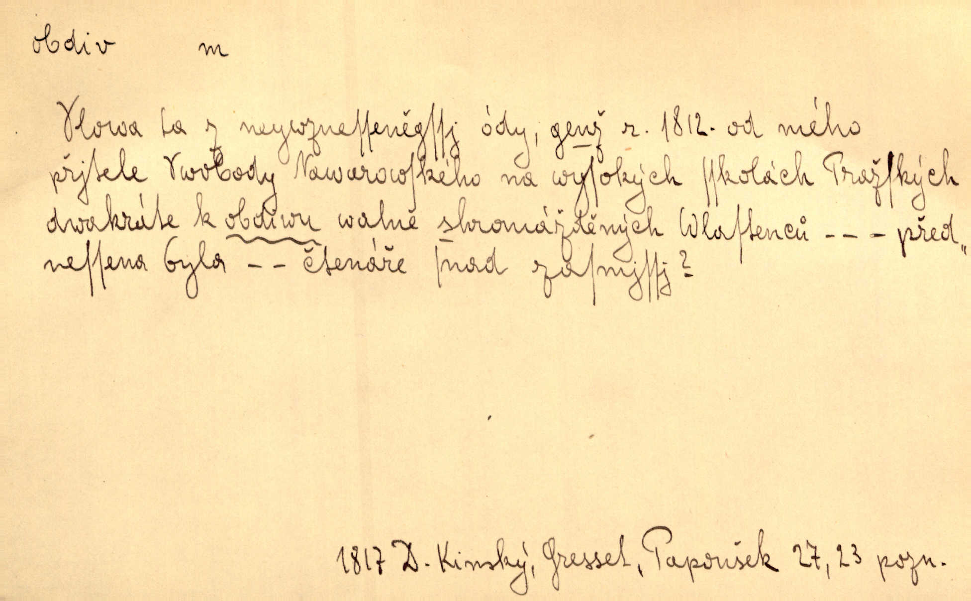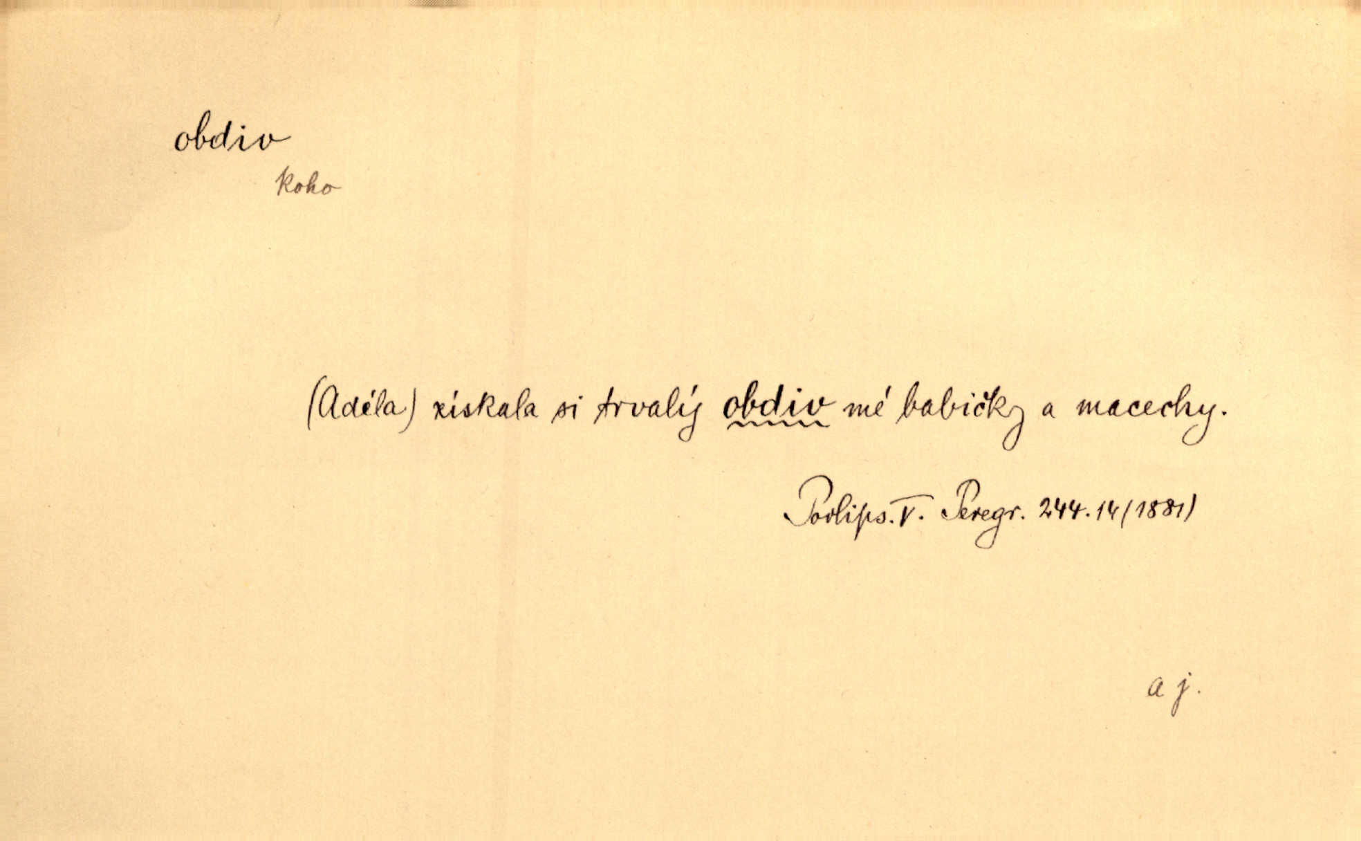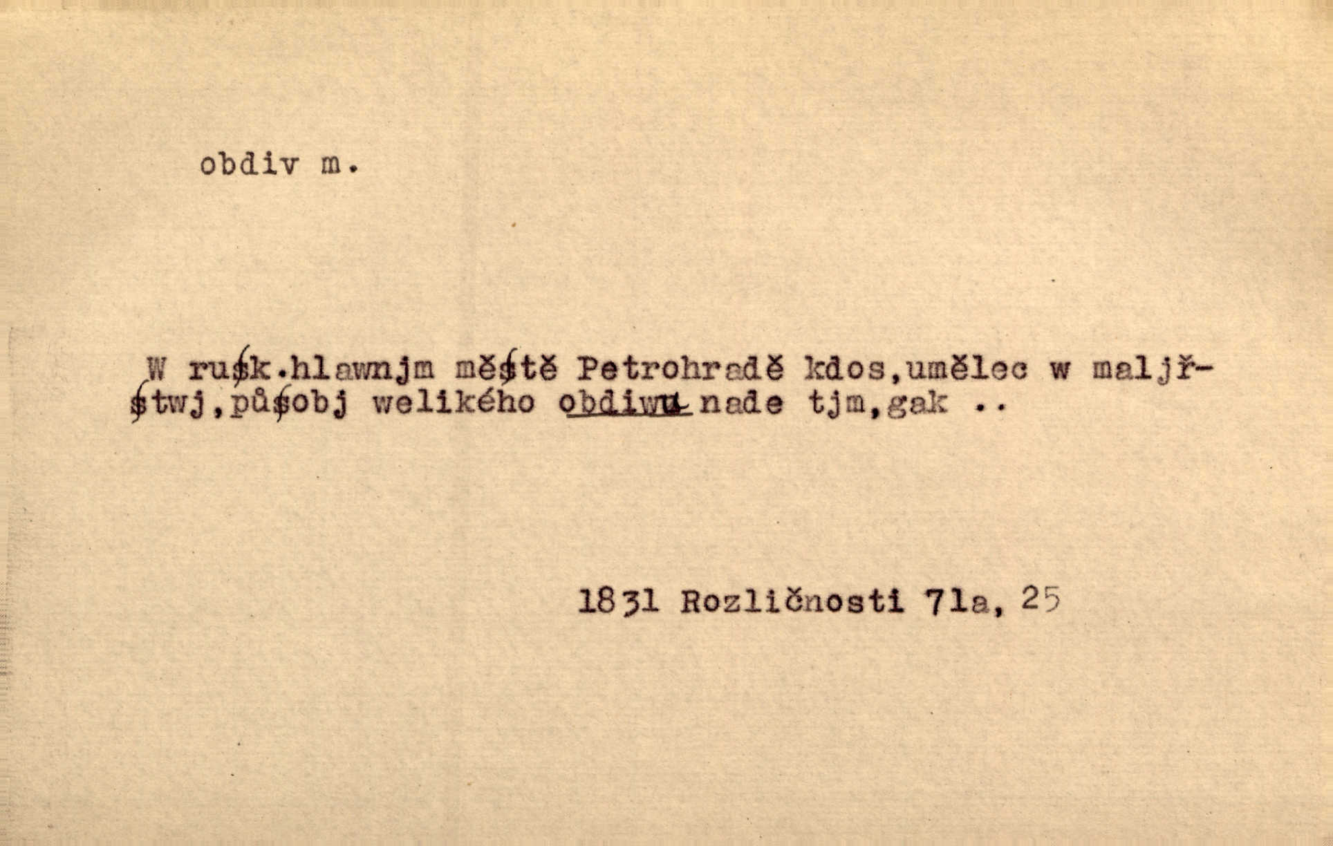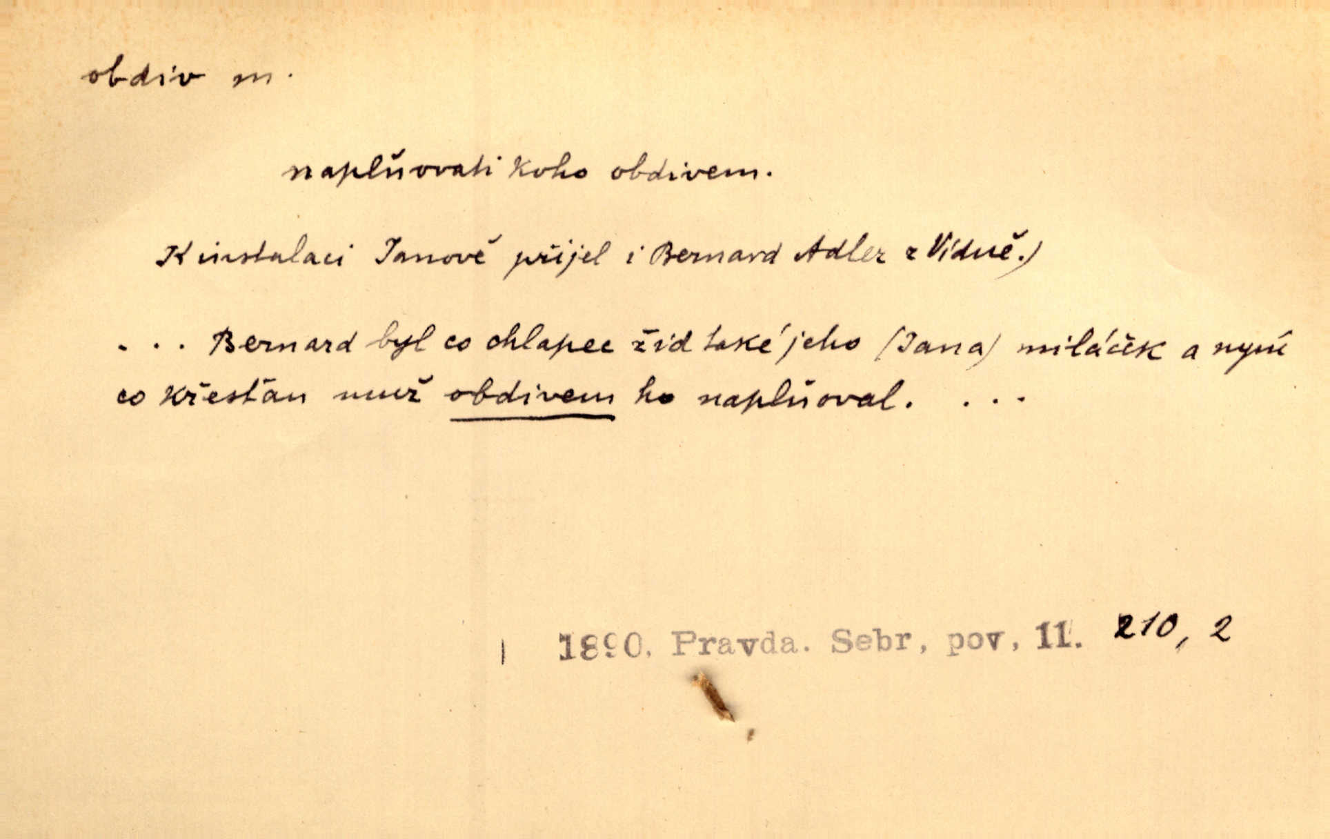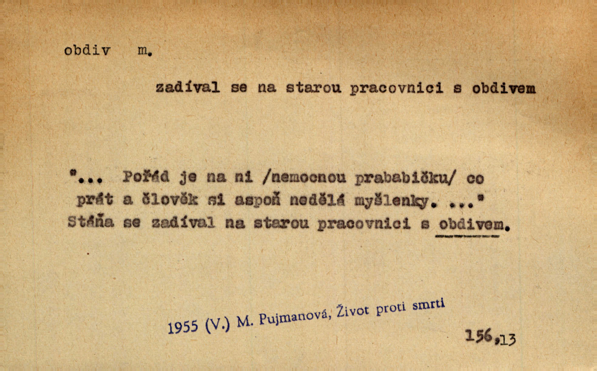 - obdiv, -u m. divení se něčemu, obdivování, podiv. Pan hejtman vyslovil svůj obdiv nad statečností svobodné paní. Jir. Obrazy docházely největší přízně a nejzasloužilejšího obdivu. V. Mrš. „Sakulentský pár koní,“ prohodil pantáta a obdivem nadmul rty. Rais.