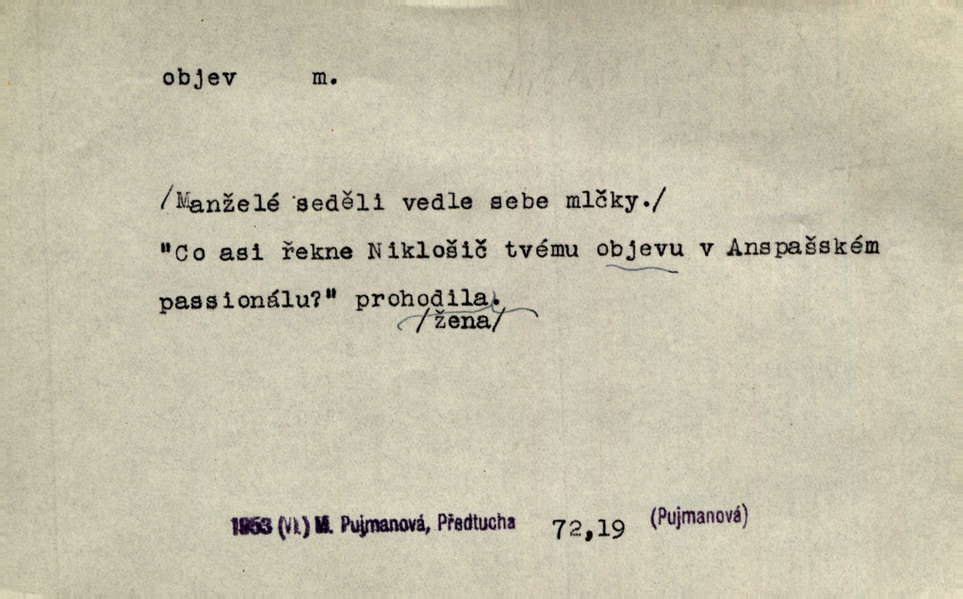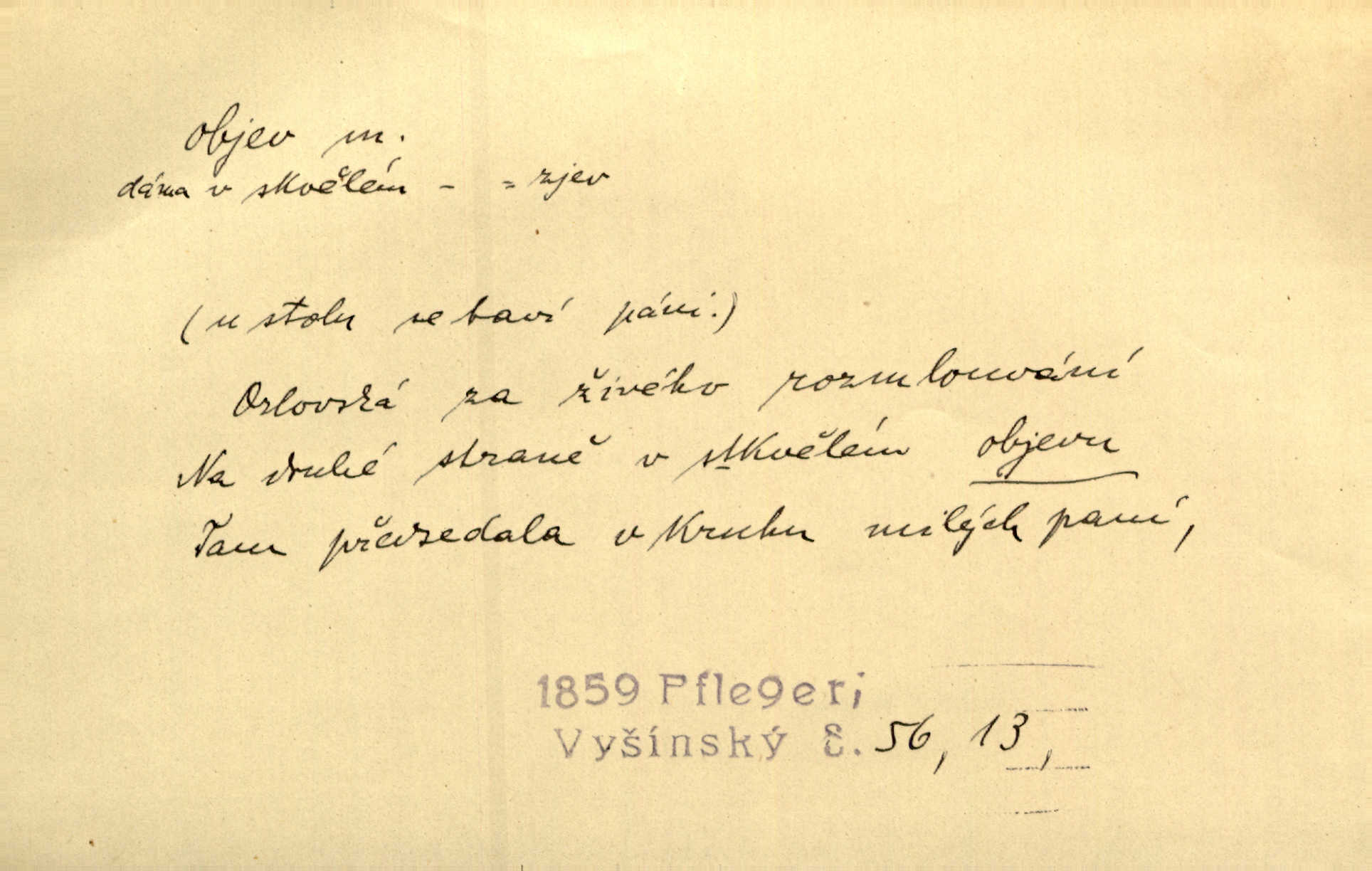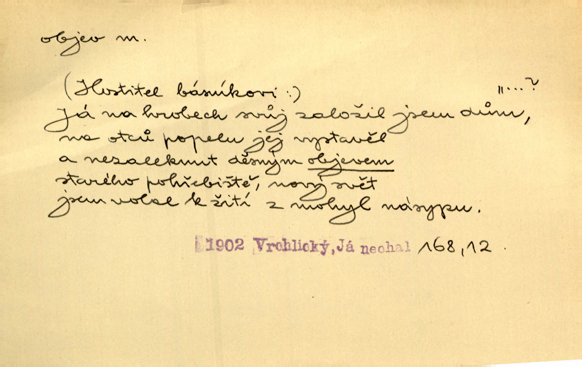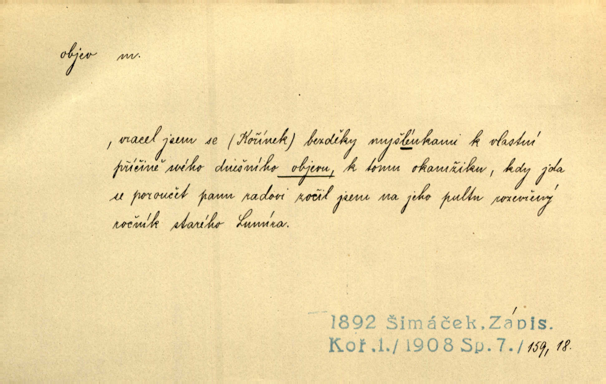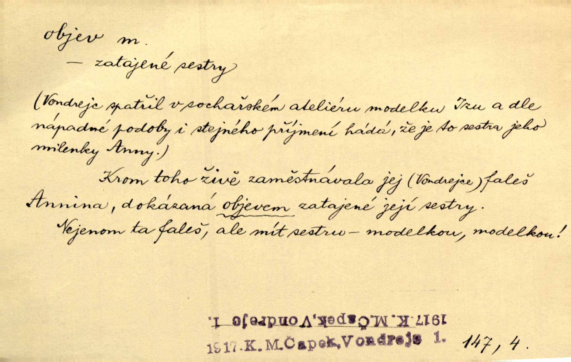 - objev, -u m. nález, odhalení něčeho, co dosud bylo neznámo n. o čem se nevědělo, objevení. Mapa objevů v Novém světě. Stroup. Celé město čekalo jakési objevy [o rodině tajemníkově]‚ ale sklamalo se. R. Svob. Byl to překvapující objev [pro spisovatele]‚ že Anglie je opravdu anglická. K. Čap. D Zř. objevení se, projev. Vzhlédla [Viola] k němu [muži] s láskou vroucí a zašla s ladným jitra objevem. O. Červ. První objev této změny jeho [Mohamedových] citů vidíme v nakládání jeho se Židy. Rieg. D Zř. zjev. [Hraběnka] uražena hrdopyšným objevem mladého vychovatele, nelibost svou sotva ukryla. Pfleg.
