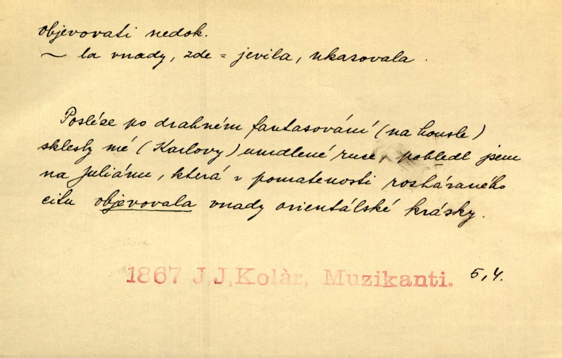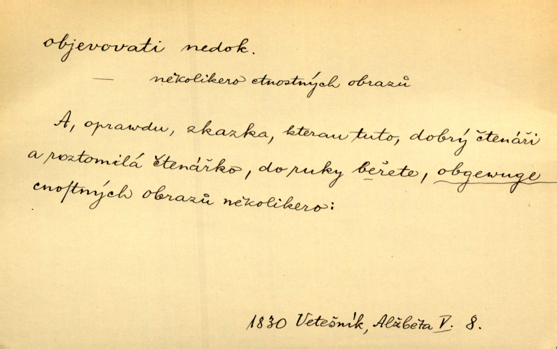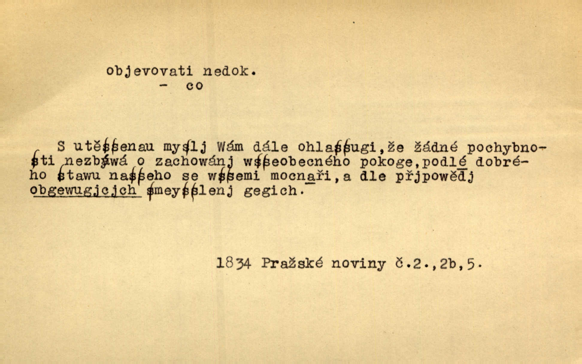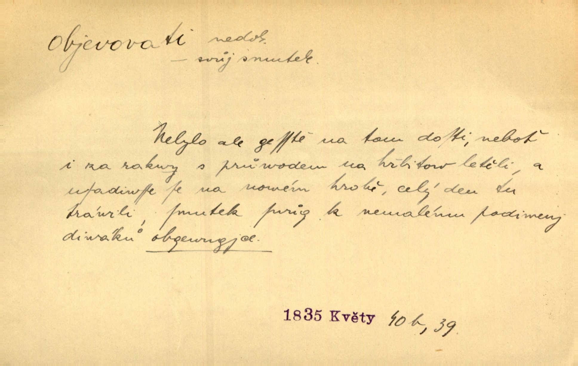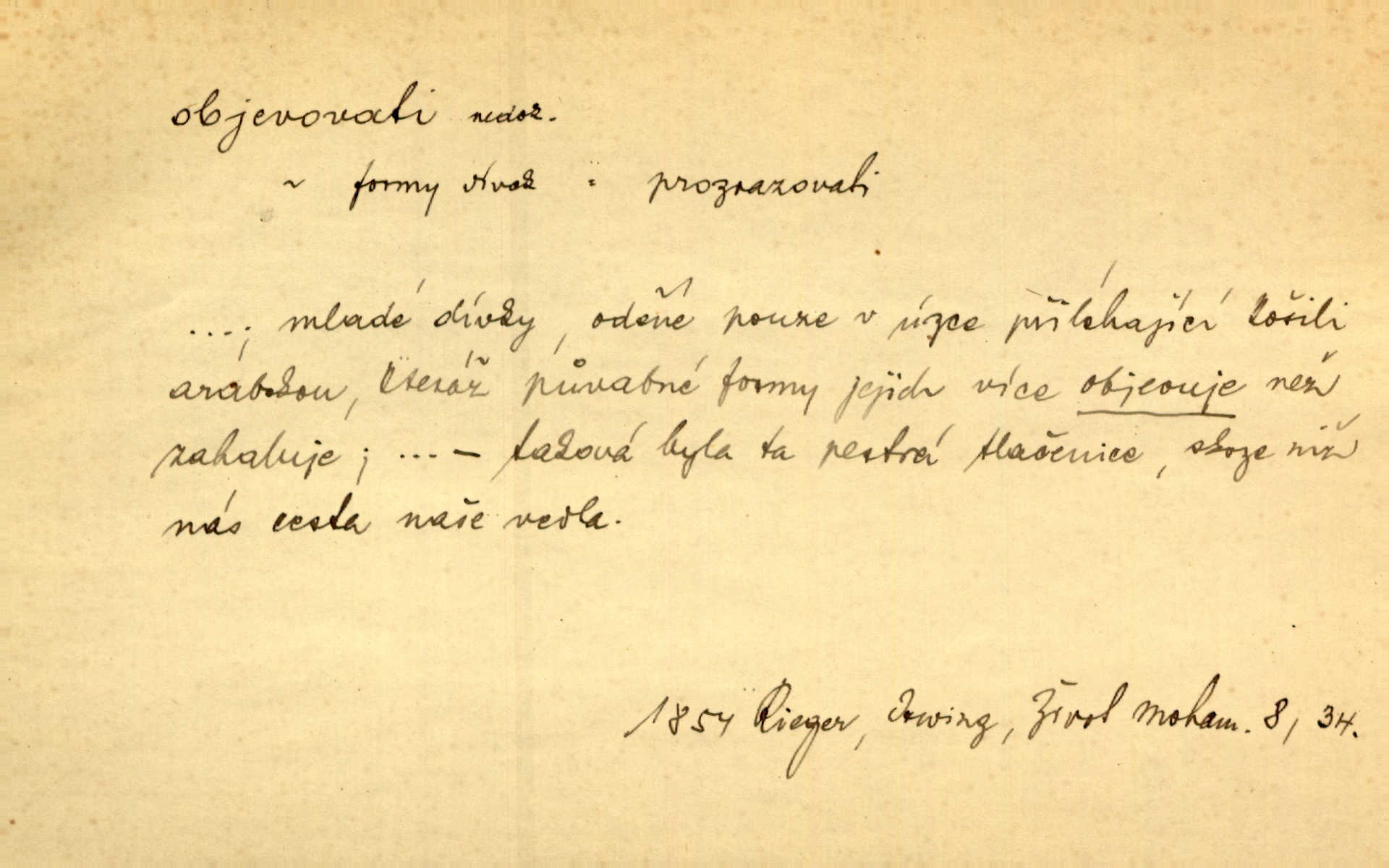 - objevovati ned. nalézati něco n. připadati na něco, co dosud bylo neznámo n. o čem se nevědělo. Objevoval nové její [manželčiny] nedostatky, jež mu dříve ušly. Vach. Objevoval v sobě úbytek duševních sil. Čech. D dávati najevo, projevovati, ukazovati. Sňal hluboko klobouk, objevuje šedou hlavu. R. Svob. Postať hrdě vypjatá objevuje tvary ztepilé a směrné. Čech. D objevovati se stávati se zjevným, ukazovati se, jeviti se, projevovati se, vyskytovati se. Východní obyčeje přikazují ženským, aby se veřejně bez hustých závojů neobjevovaly. Ner. Věřil [kněz] v objevování se duchů. Čech. Na zahradách počali se objevovati hospodáři v nových kalhotách a vestách. Rais. Otec můj se mi každou noc ve snu objevuje. Svět. Za horami sivé mraky se objevují. Pfleg. V „Sebrání básní a zpěvů“ r. 1795 objevuje se Jungmann poprvé obecenstvu českému. Zel. Vždy se mi objevovala Helena jako ubohá a vydrážděná nešťastnice. Svob. Poněvadž duši nikde nevidíme, soudíme o ní jen potud, pokud se nám v činnosti objevuje. Havl. V těchto sonetech se objevuje neobyčejná bohatost myšlénková. Vrch. [Županství dvorské] žádného trvání nemělo a po r. 1110 vícekrát se neobjevuje. H. Jireč. Kostlivec také v českých pověstech objevuje se co tanečník. Ner. Sloveso náviděti se objevuje i v jiných jazycích slovanských. Zub.