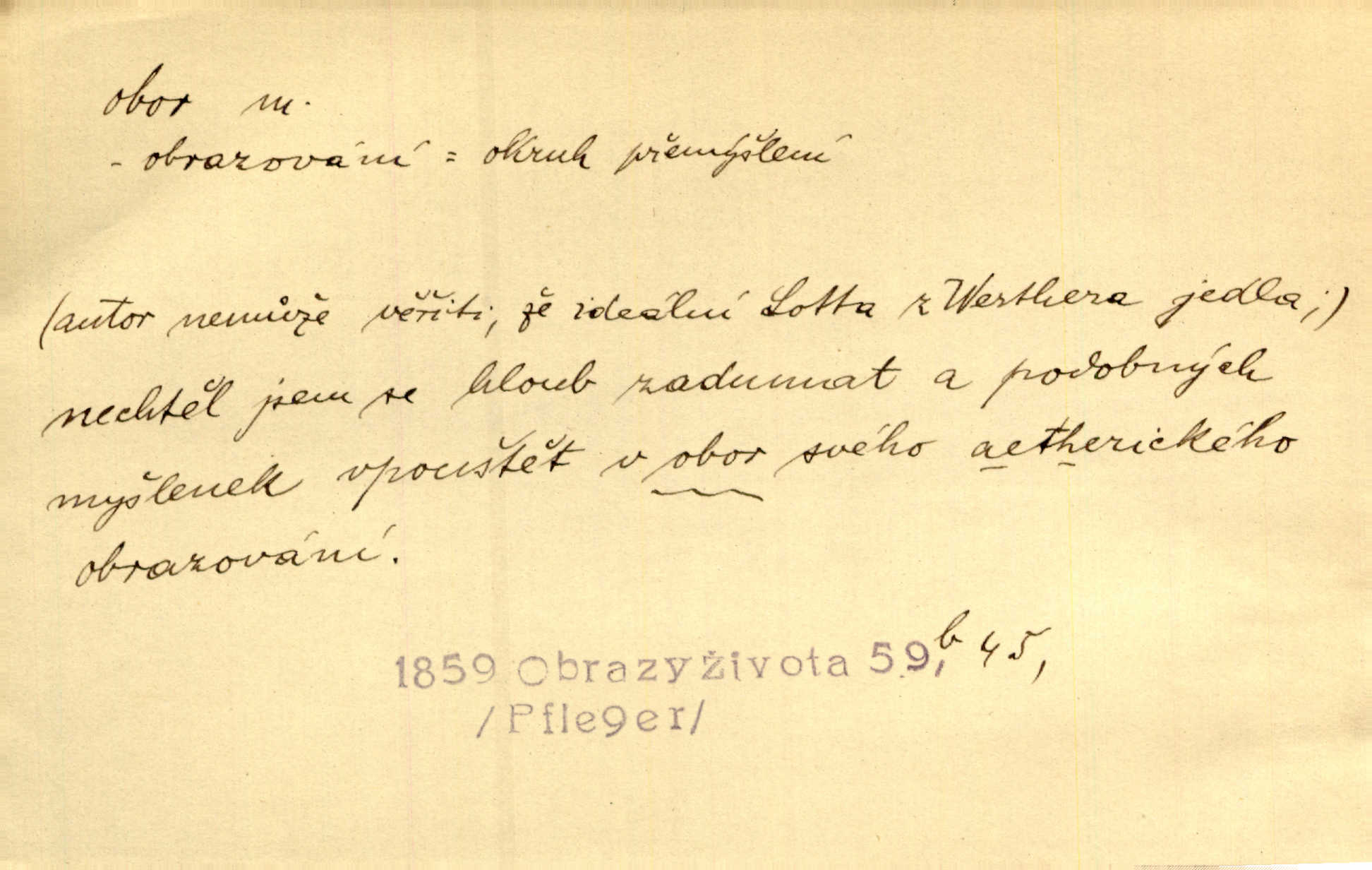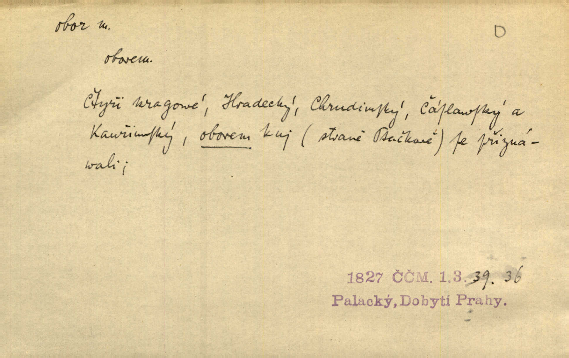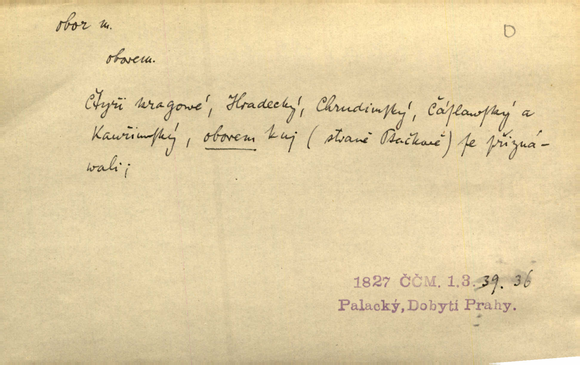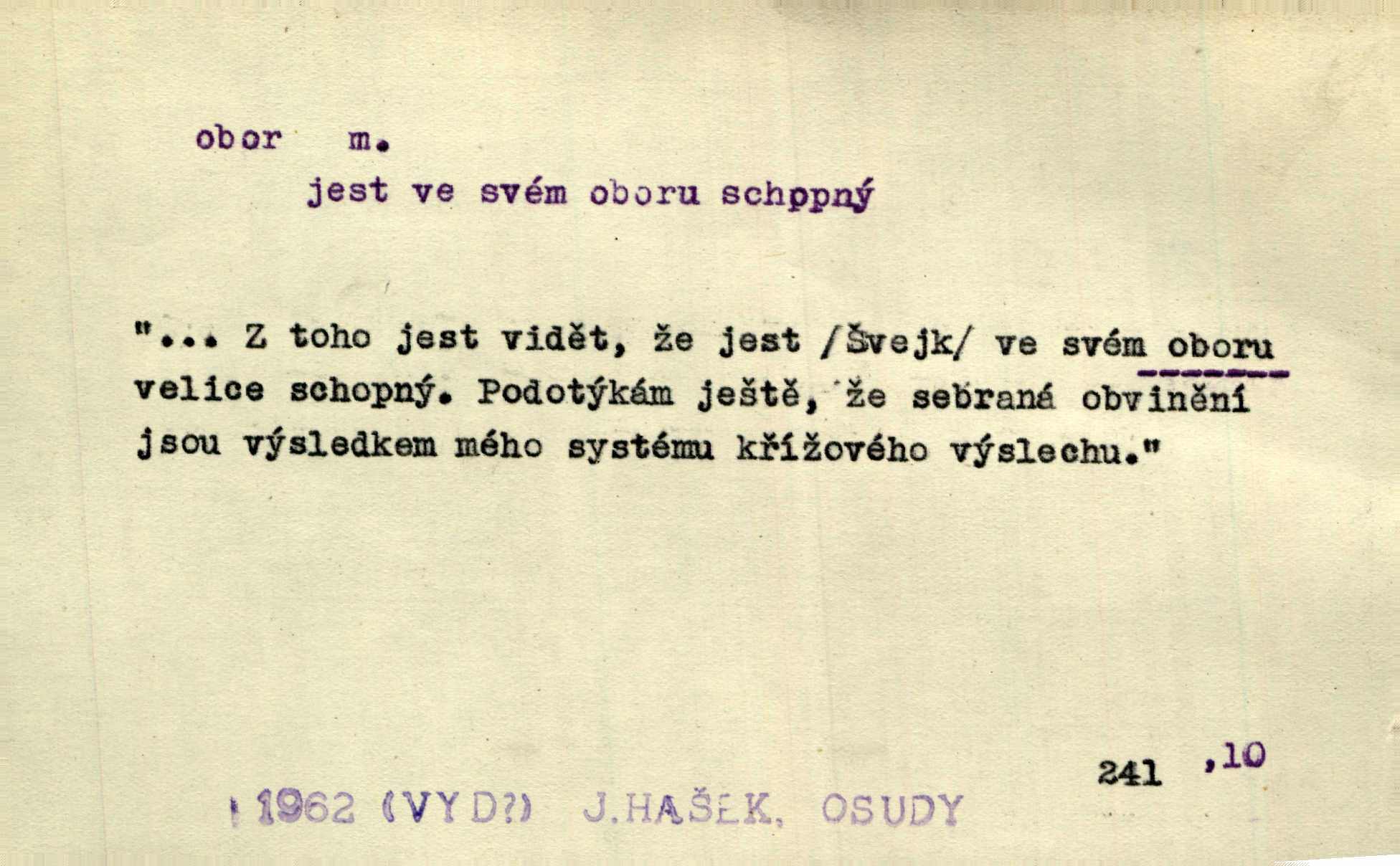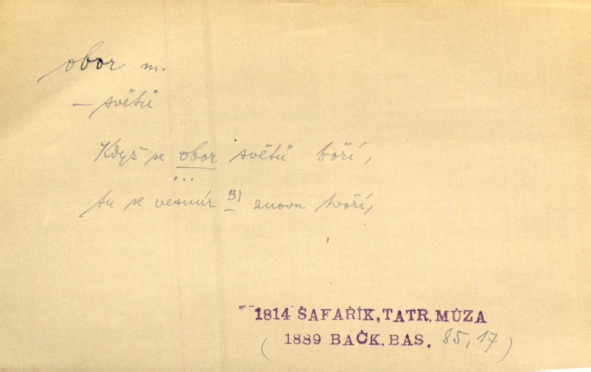 - obor, -u m. okruh, pole, druh působnosti, odvětví činnosti. Podobné kousky náležejí v obor čarodějství. Durd. Troufá si do všech úloh: však za vlastní svůj obor považuje tragické hrdiny. Čech. Jsou jiné obory na národa roli dědičné, jež leží úhorem. Mach. Obor působnosti obce je jednak samostatný, jednak přenesený. MSN. V jakém oboru byl [v kanceláři] zaměstnán, nevím. Arb. Český voják osvědčuje se zvláště v oborech, kde větší intelligence zapotřebí, jako u zákopníků a dělostřelců. Jir. Held jej doporučil jako nejlepšího v tom oboru [stavbě pian]. Jir. Pro každý obor myšlenky a citu má [fráze] slovník svůj. Vrch. D Poněk. zast. pásmo, oblast, okrsek, hl. zeměpisný. Působení slunce a měsíce v oboru parnatém země naší vůbec známo jest. Pal. Obor vzduchový, mžitím navlžený létavými se plnil parami. Sab. [Spor] dělí vzdělaného lidstva obor celý. Čech. Nařídil bych pěstounům mládeže po všem oboru zemském, aby vychovávali samé Černohorce světě. Hol. D Zast. sbor, zástup. Stařec z korábu vyjde se vším oborem. Jg. Milci obstupovali jej [Václava IV.] oborem, jak za celého života, tak i při smrti. Pal.