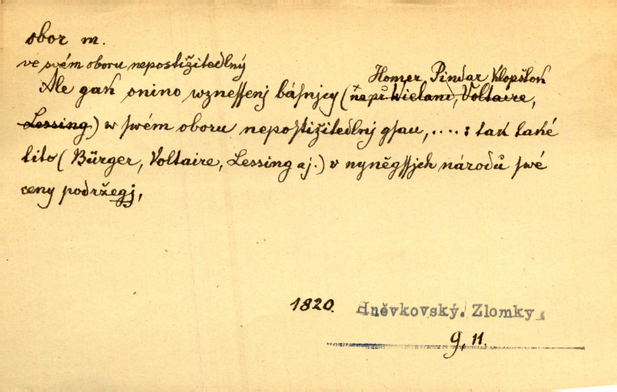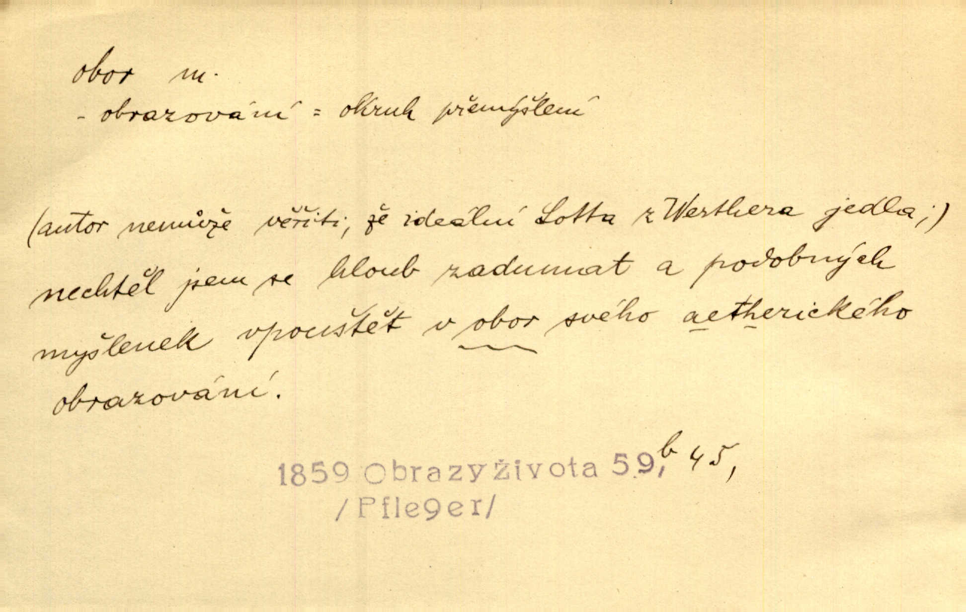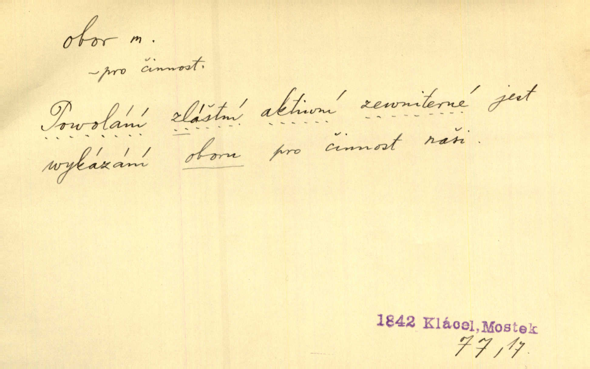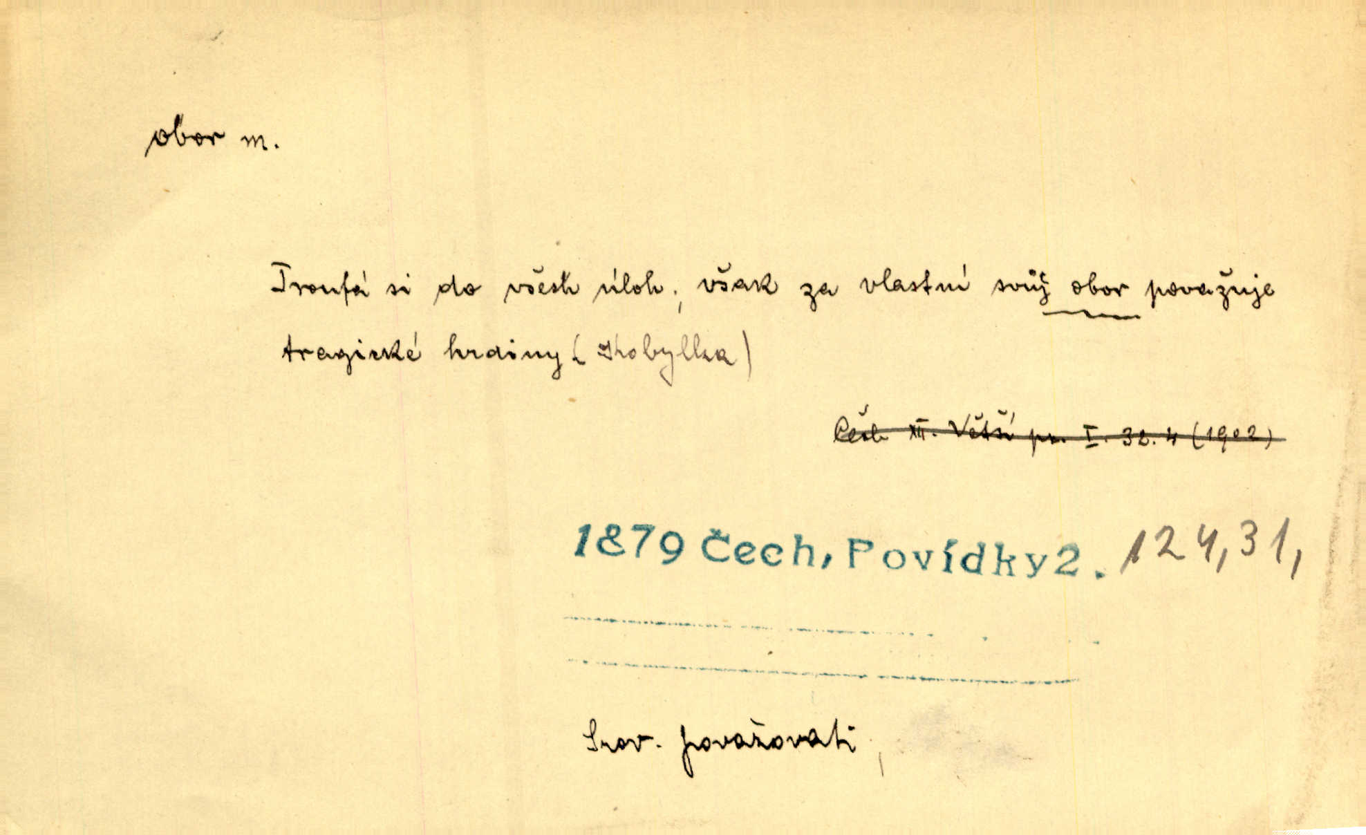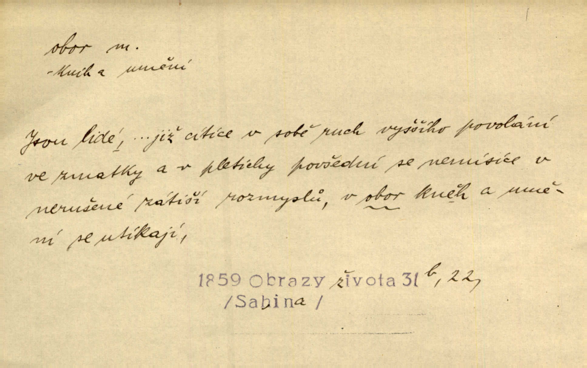 - obor, -u m. okruh, pole, druh působnosti, odvětví činnosti. Podobné kousky náležejí v obor čarodějství. Durd. Troufá si do všech úloh: však za vlastní svůj obor považuje tragické hrdiny. Čech. Jsou jiné obory na národa roli dědičné, jež leží úhorem. Mach. Obor působnosti obce je jednak samostatný, jednak přenesený. MSN. V jakém oboru byl [v kanceláři] zaměstnán, nevím. Arb. Český voják osvědčuje se zvláště v oborech, kde větší intelligence zapotřebí, jako u zákopníků a dělostřelců. Jir. Held jej doporučil jako nejlepšího v tom oboru [stavbě pian]. Jir. Pro každý obor myšlenky a citu má [fráze] slovník svůj. Vrch. D Poněk. zast. pásmo, oblast, okrsek, hl. zeměpisný. Působení slunce a měsíce v oboru parnatém země naší vůbec známo jest. Pal. Obor vzduchový, mžitím navlžený létavými se plnil parami. Sab. [Spor] dělí vzdělaného lidstva obor celý. Čech. Nařídil bych pěstounům mládeže po všem oboru zemském, aby vychovávali samé Černohorce světě. Hol. D Zast. sbor, zástup. Stařec z korábu vyjde se vším oborem. Jg. Milci obstupovali jej [Václava IV.] oborem, jak za celého života, tak i při smrti. Pal.