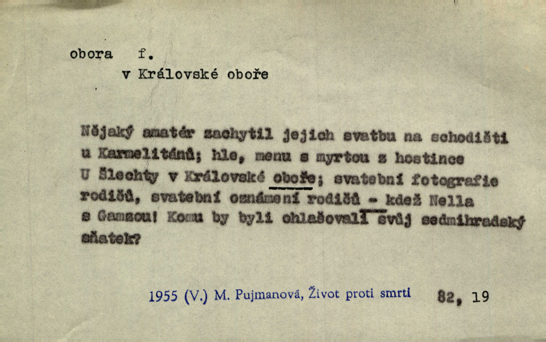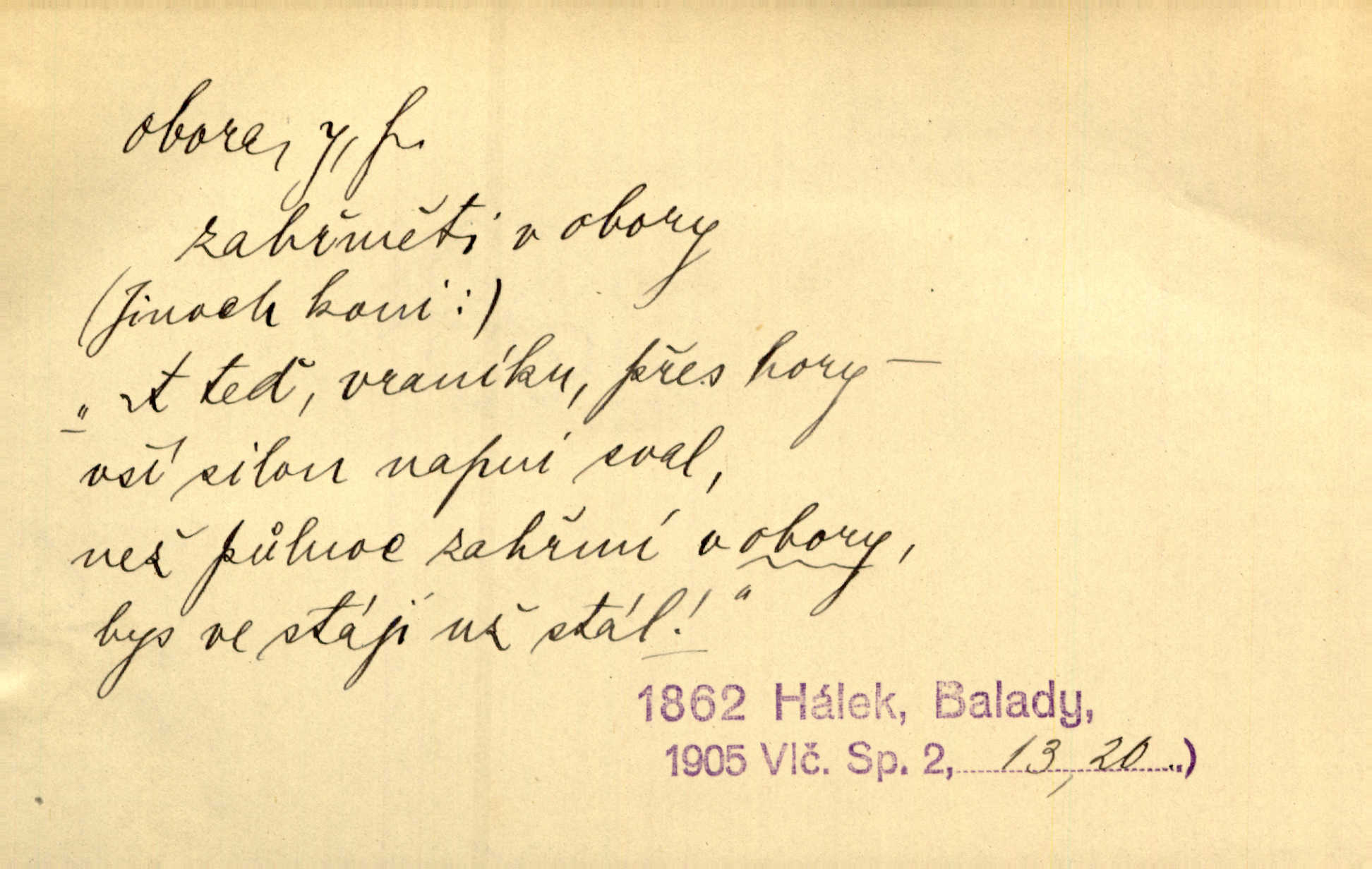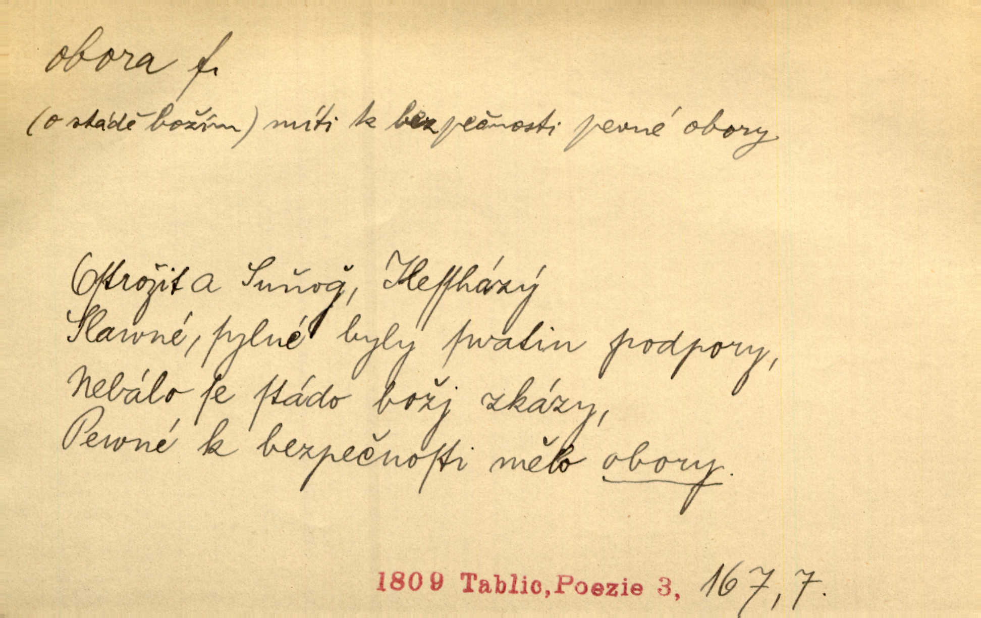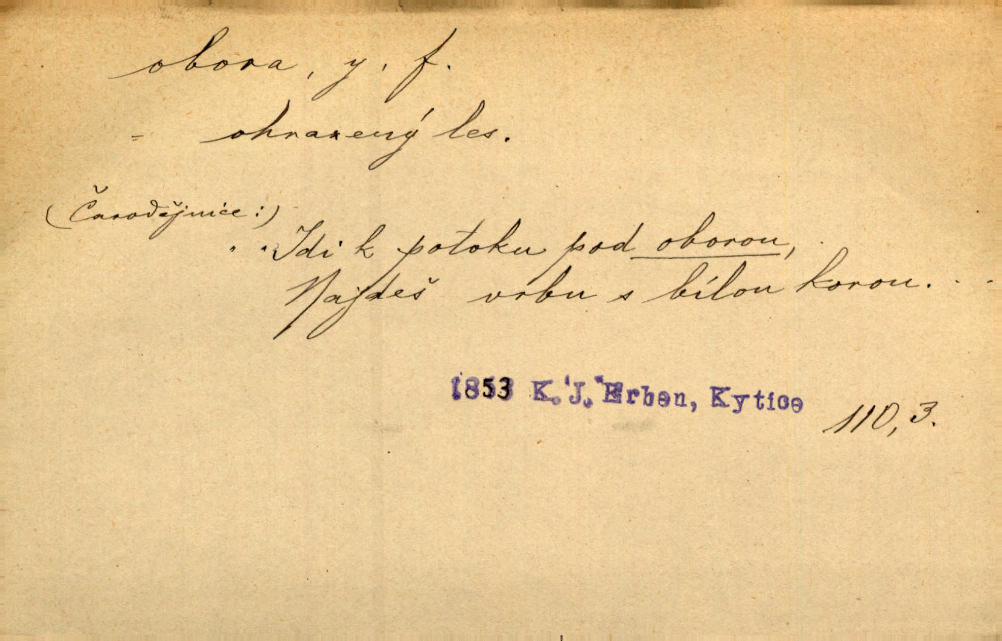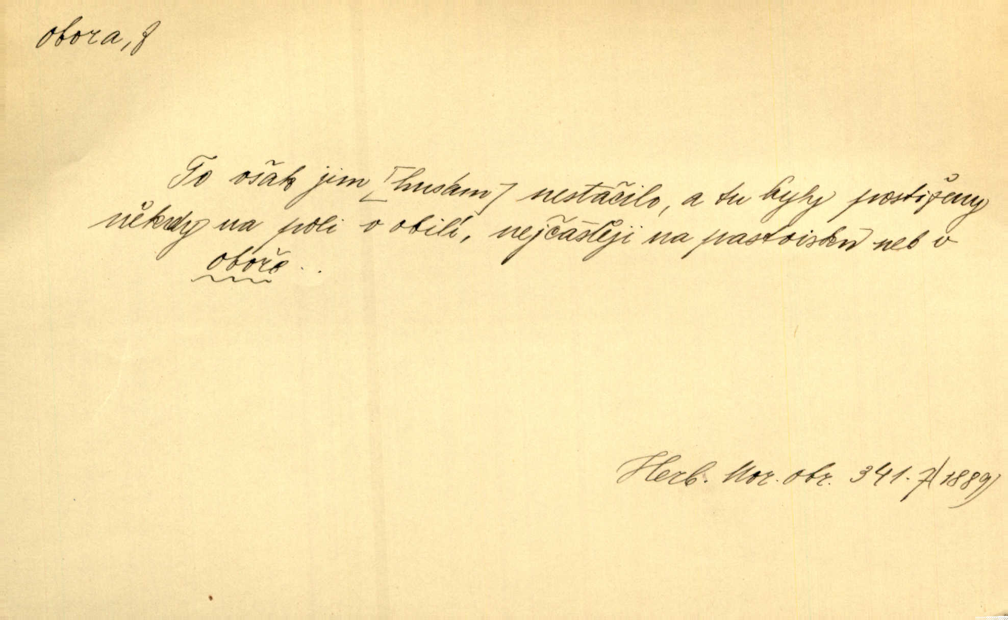 - obora, -y f. ohrazený pozemek porostlý lesem, v kterém se chová zvěř. Bylo slyšeti o králi a jeho družině, jak honí v oboře. Jir. Chodil se dívat do obory, když princ tam na ochočeném jelenu jezdil. Schulz. Přen. Prý vlhnou v ní [v černé zimě] i kosti, a časté její deště hojně mrví kněžskou oboru hřbitov. A. Mrš. Geogr. Královská obora jeden z pražských sadů. D Zast. obor, oblast. Slyšte, řeky valné, dřív než jdete v moře oboru. Koll.