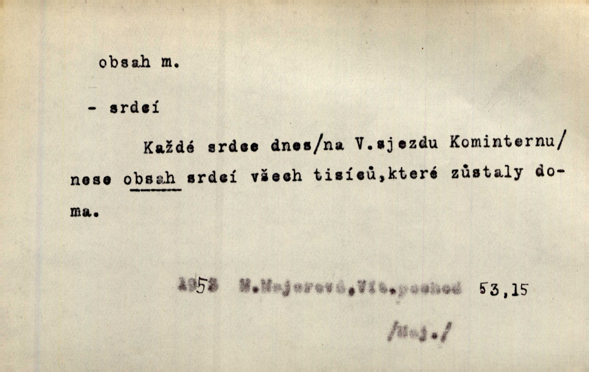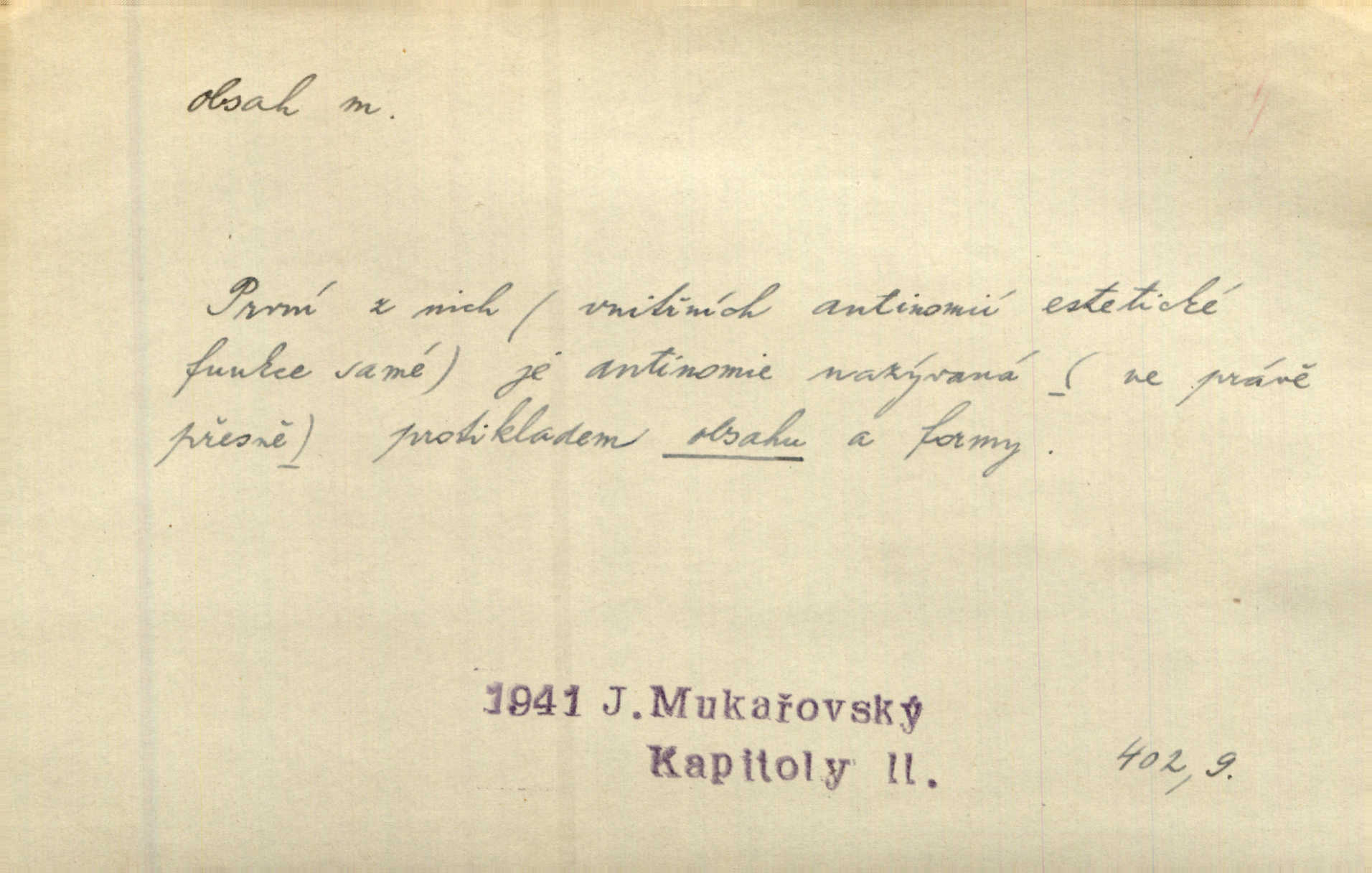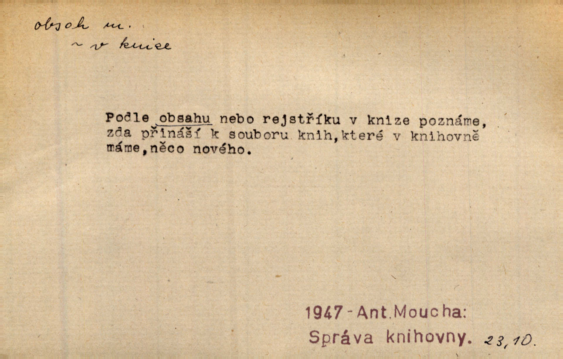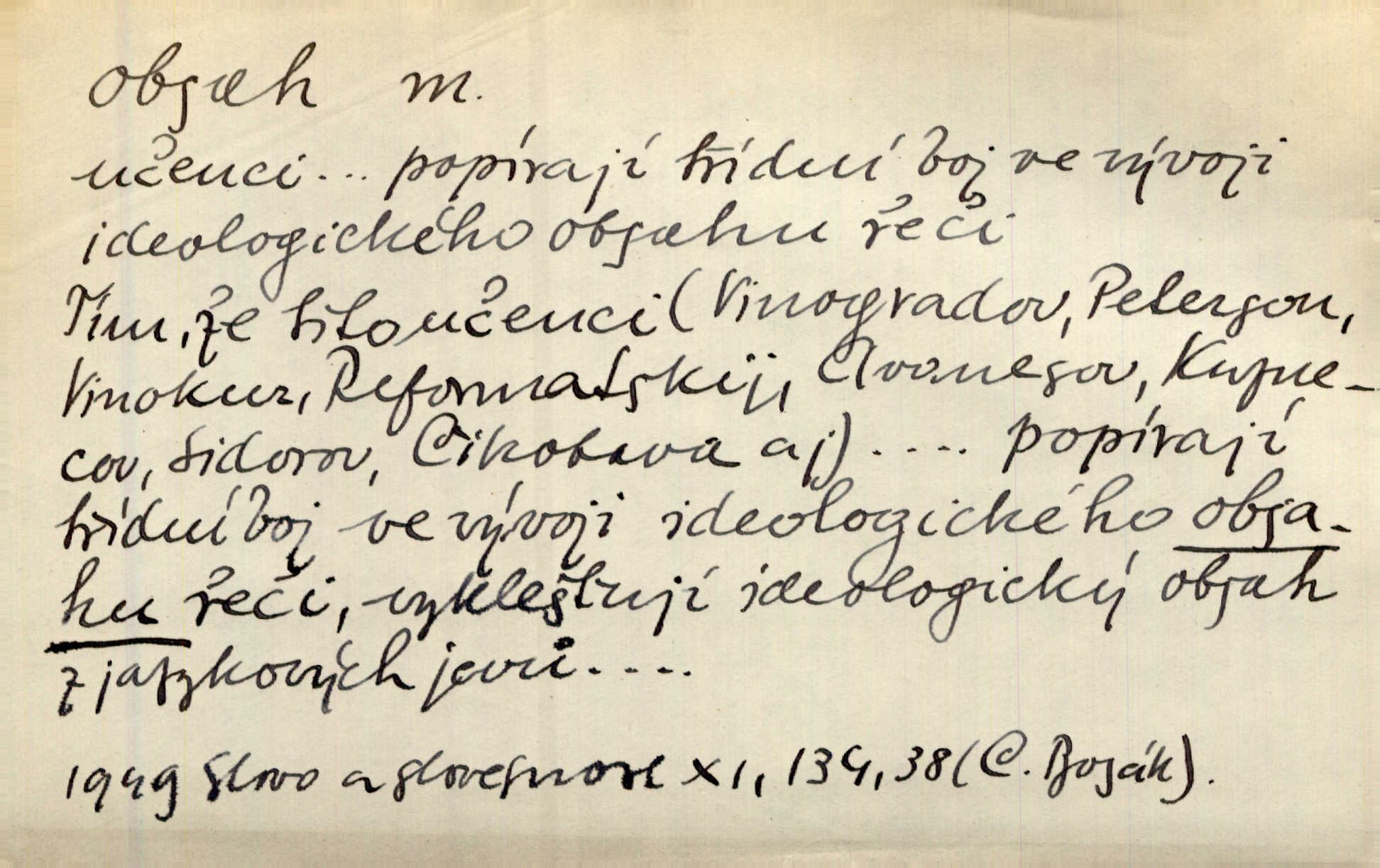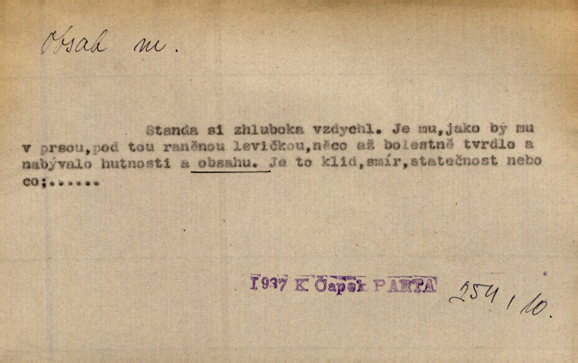 - obsah, -u m. co je uvnitř něčeho jakožto náplň, výplň, co zabírá vnitřek něčeho. Zotvírala skříně a přehlížela jejich obsah. Svět. Vnitřek jizby je zajímavý obsahem svým. Ner. Láhev s tmavým obsahem. Rais. Ten k tabatěrce zřetel obrací, noře prsty v obsah její hnědý. Čech. Na levé ruce visel jí košík, těžký obsahem. Šmil. Obal byl veliký, obsah malý. Herrm. Obsah nádoby. Geom. velikost plochy omezené uzavřenou čarou (plošný obsah); velikost prostoru ohraničeného uzavřenou plochou (krychlový obsah, objem). Chem. obsah chloru ve zkoumaném vzorku; produkt s malým obsahem arsenu; solný obsah roztoku. D vnitřní smysl, význam toho, co je vyjádřeno řečí, písmem, obrazem a pod. Tajuplné kouzlo její nespočívalo tak v obsahu řeči, jako spíše v lahodě hlasu jejího. Arb. Promysliv pozorně obsah každé sloky, nahlížel jsem teprve nyní jasně v bývalé názory páně radovy. Šim. Mnohosvazkové romány nicotného a nudného obsahu. V. Mrš. Viděli jsme již, jak malba a hudba obsahem i formou vyhovuje modernímu člověku. Ner. V tom [v lásce] je celý obsah mého života. Zey. Určení obsahu a dosahu práva státního občanství předpokládalo by takřka okružní cestu celou soustavou rakouského práva veřejného. Čes. pol. Stará slova domácí dostávají nový obsah, význam. Hujer. Logika by hledala obsah čili význam slova v jeho nitru. K. Čap. Jako hrubé udeření kamenem dotkla se ta slova obsahem i tonem duší obou kněží. Baar. Log. obsah pojmu souhrn všech podstatných znaků věci, jimiž jest pojem určen. D obsah knihy tištěný seznam věcí obsažených v knize.