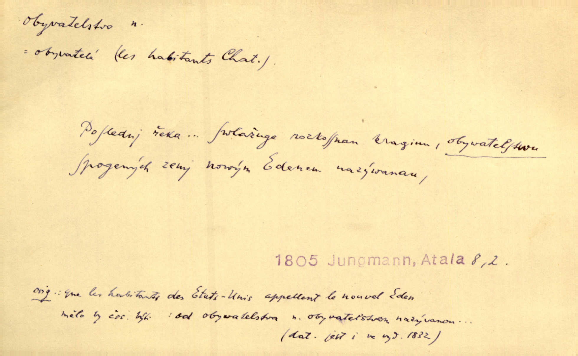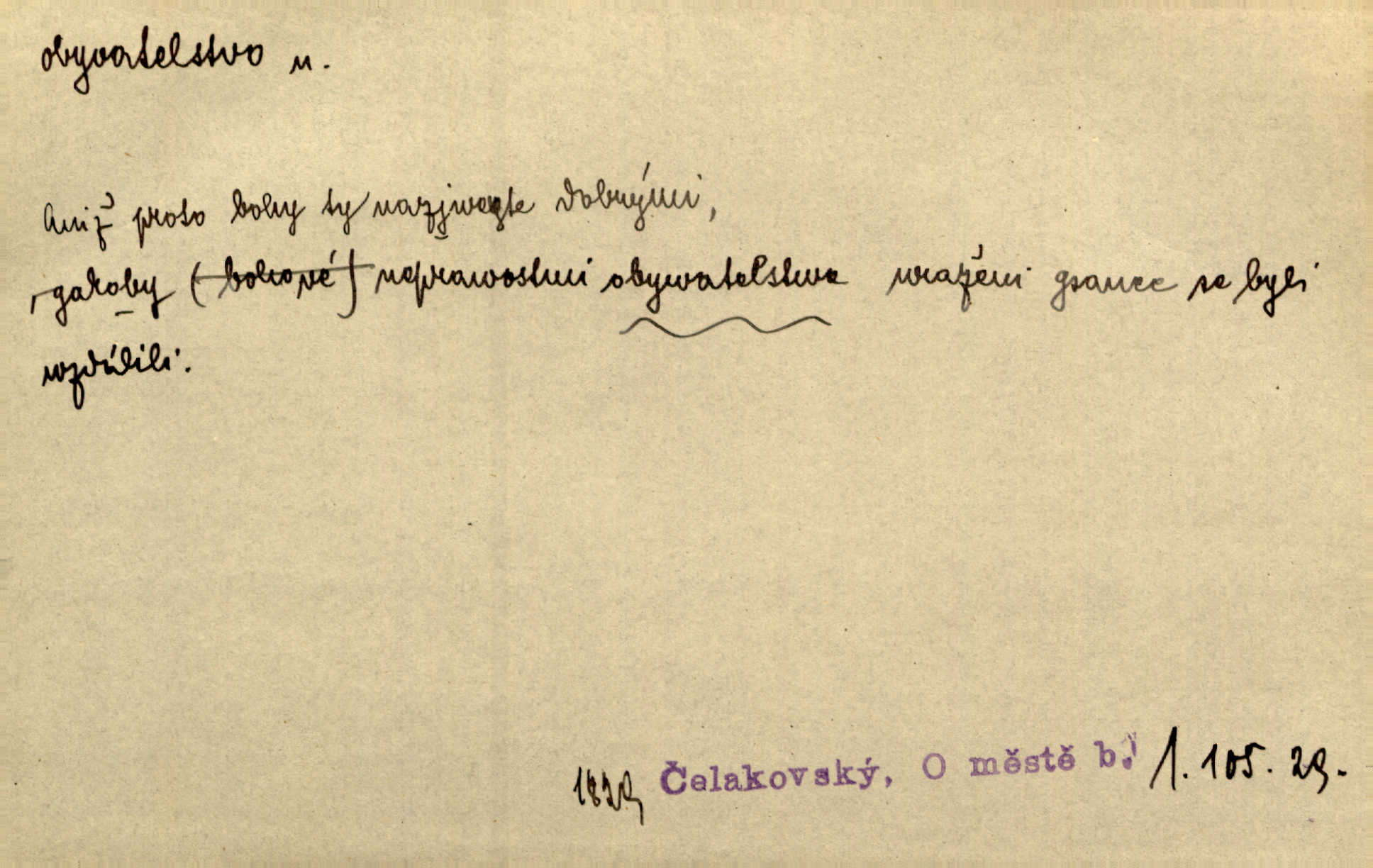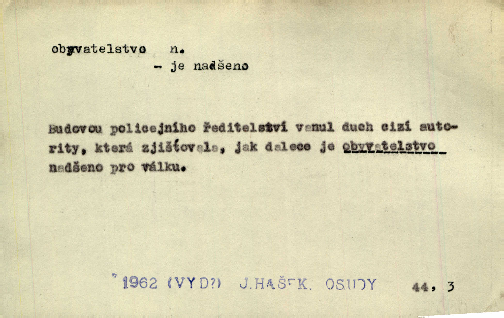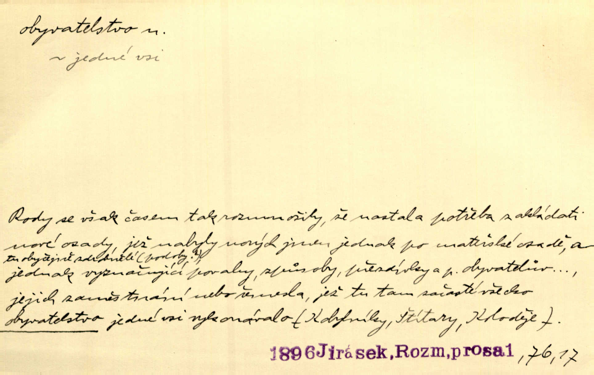 - obyvatelstvo, -a n. souhrn obyvatelů nějakého místa. [Krajský fysik] vypracoval osnovu soustavného poučování obyvatelstva. Vach. „Polosvětem“ nazval mladší Dumas jistou část ženského obyvatelstva pařížského. Ner. Pojezdný, jeho choť, dva písaři úřední, sluha a asi deset čeledínů — toť bylo celé jeho [dvora] obyvatelstvo. Svět. Přen. Vodní obyvatelstvo zvědavě se vymršťovalo na povrch ryby. Herrm. Luitgarda zjednala si bezpečné vědomosti o obyvatelstvu malých těch hlav vších. Čap. Ch.