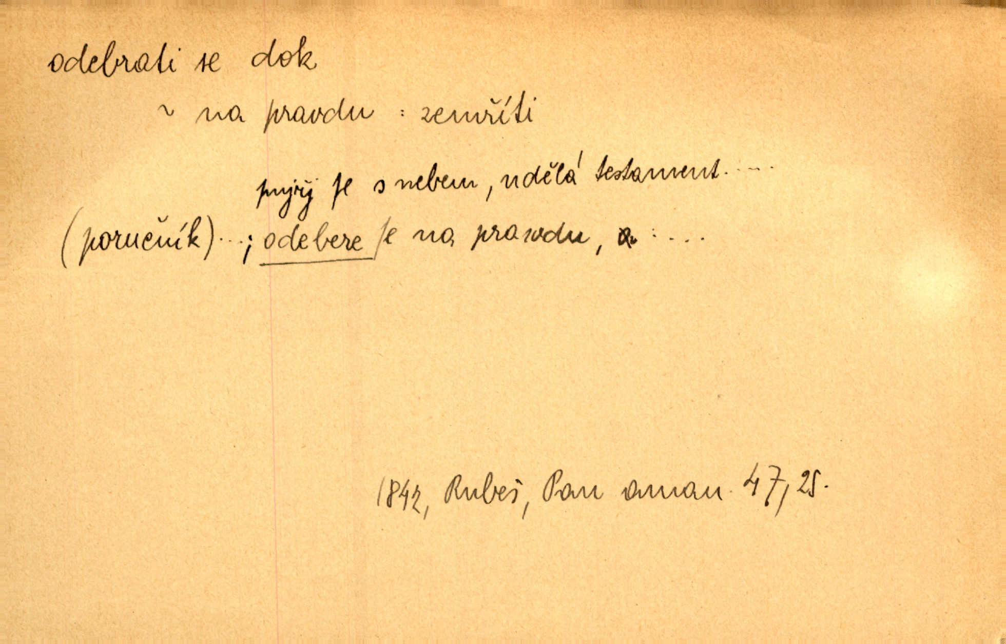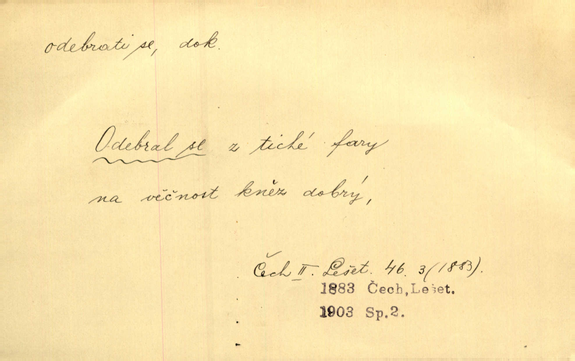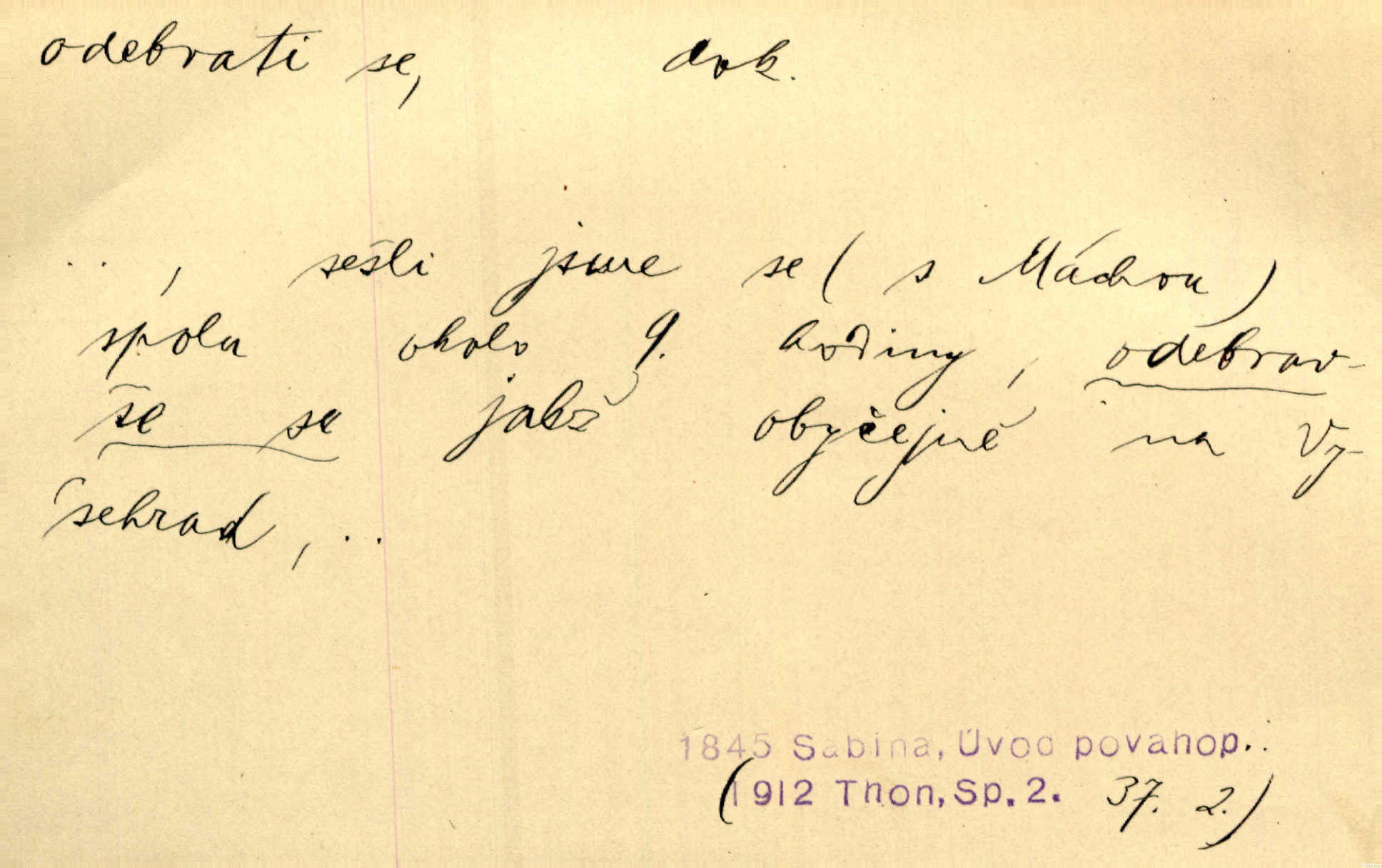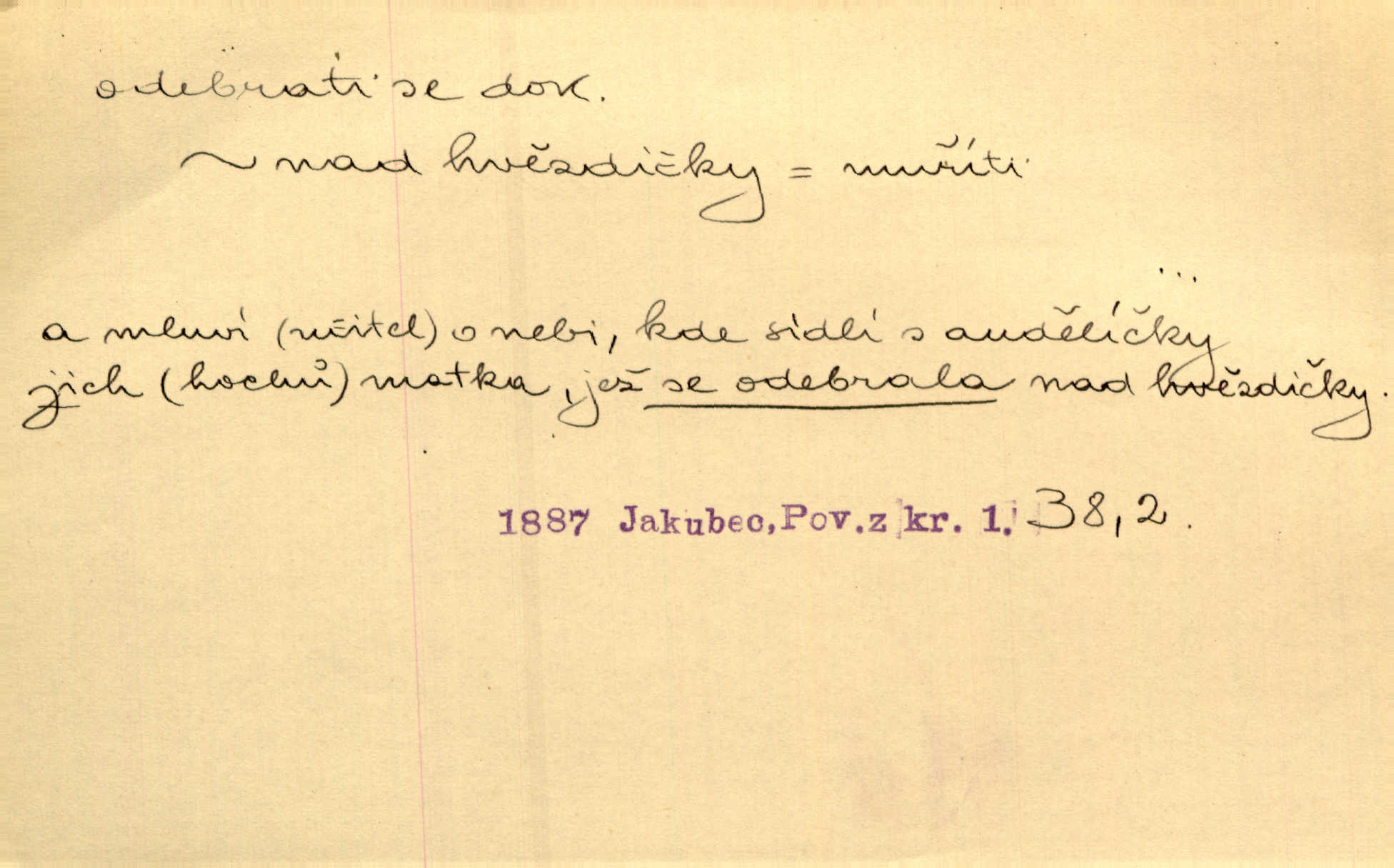 - odebrati se dok. odejíti. Opustil Prahu a odebral se na venek. Pfleg. Ty na Tetín se, paní, odebéřeš. Vrch. Bez groše odebral se na studie do Prahy. V. Mrš. V tomtéž okamžiku zvěstoval šramot, že se společnost chce odebrat. Ner. Shasiv světlo, odebral se na lože. I. Klicp. D odebrati se (na věčnost, na onen svět, k Abrahamu a pod.) eufem. zemříti. Odebral se z tiché fary na věčnost kněz dobrý. Čech. I ona za ním [mužem] k věčnému soudu se odebrala. Kun. Smíří se s nebem, udělá testament; odebere se na pravdu. Rub. V skutku byla jí dcerou pěstujíc ji, až se duše její k Pánu Bohu odebrala. Prav. Odebral se [kníže] k otcům. Hol. Čekají, brzy-li se odeberu k Ahrahamu. Just. Jen dlóho, Pane Bože, neležet a v pokoju se odebrat na onen svět. Mrš. Strouhal se odebral na jiný svět. Pfleg. Za tebou odeberu se [Maria za Kristem]‚ až bude Bohu libo. Zey. Co z ní [dcery] bude, kdybych odtud teď se odebrala? Svět. Druhé [dítě] odebralo se za tři neděle. Rais. Jene můj! jak časně jsi se odebral! Něm. Kdyby to tak bylo možná, lehčej bych se taky odebral. Šlej. „Barbora snad se vám už odebrala,“ pravil krajánek. M. Jahn. Hoří-li oheň v rošti na jedné straně, brzy někdo z domu se odebere. Lum. Starý vrátný dávno se odebral na hřbitov do Košíř. Pfleg.
