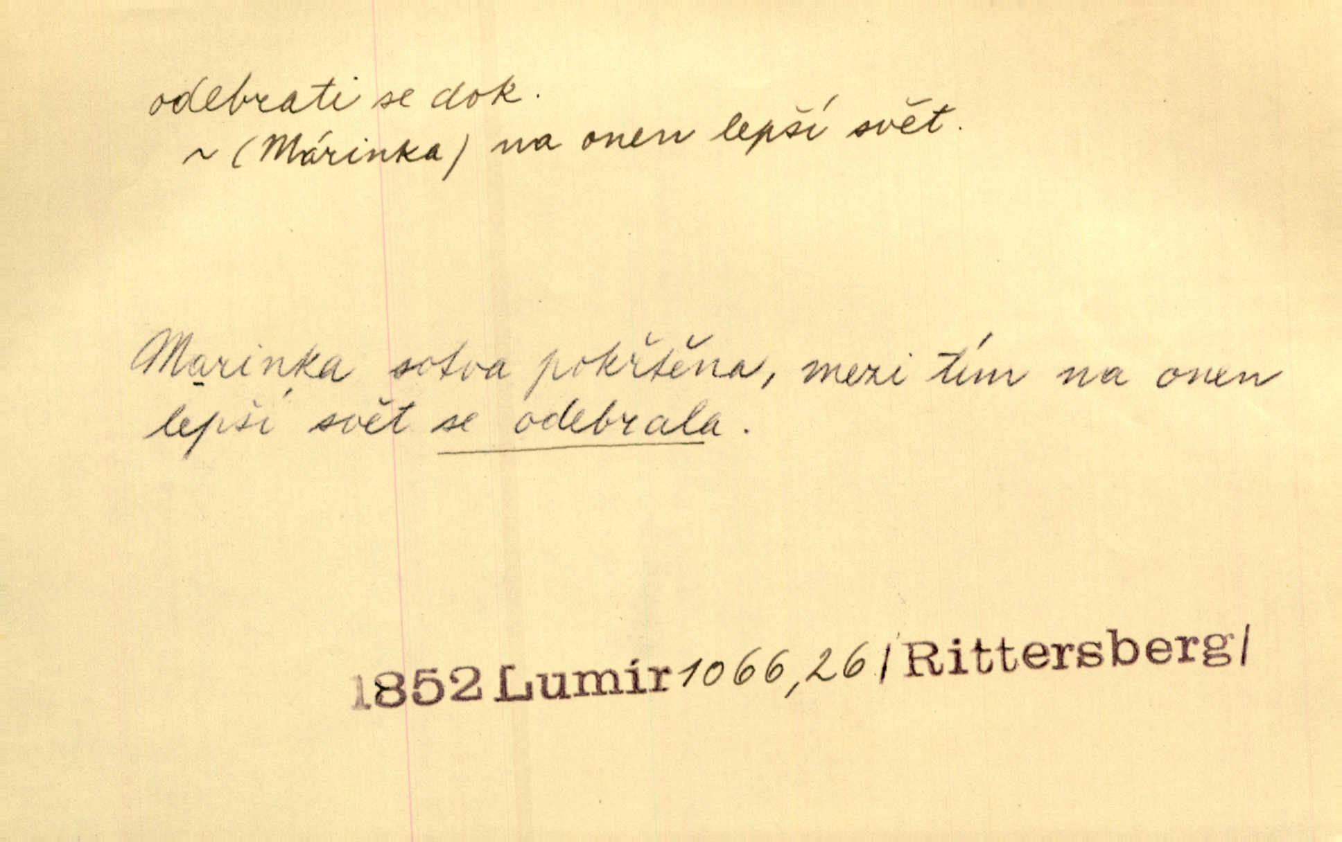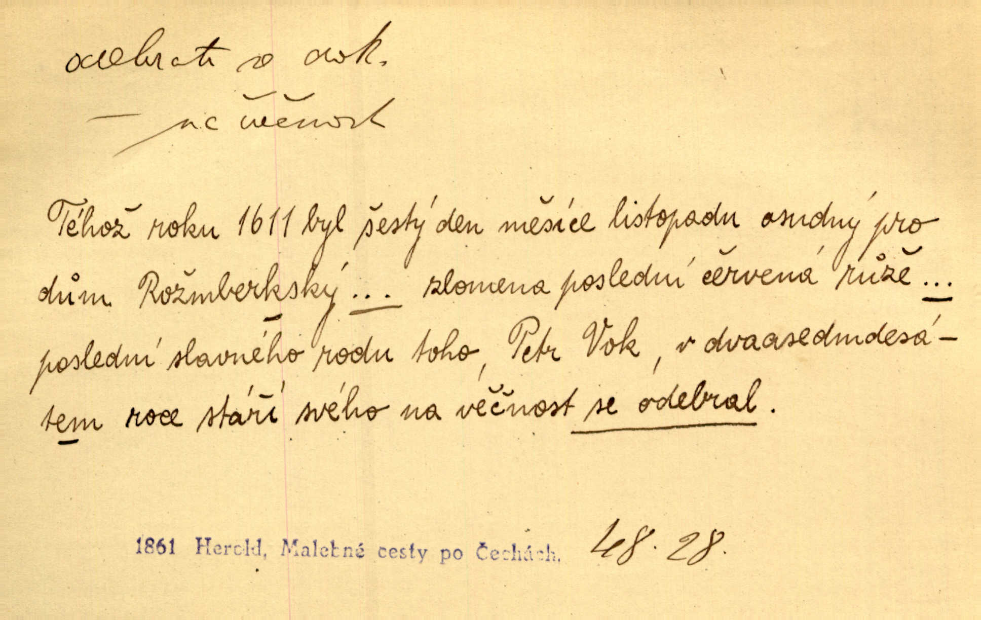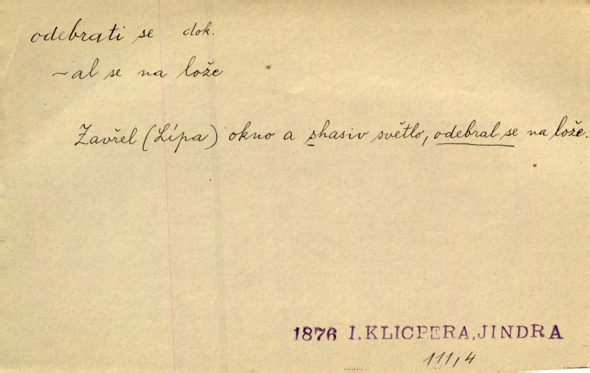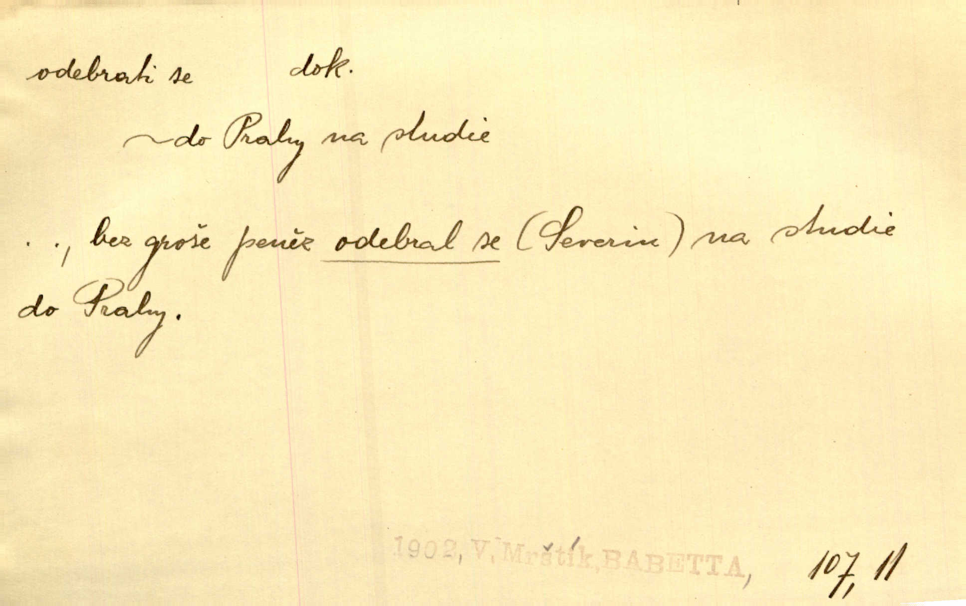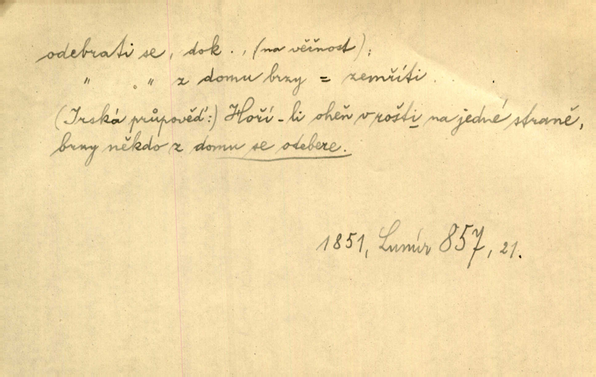 - odebrati se dok. odejíti. Opustil Prahu a odebral se na venek. Pfleg. Ty na Tetín se, paní, odebéřeš. Vrch. Bez groše odebral se na studie do Prahy. V. Mrš. V tomtéž okamžiku zvěstoval šramot, že se společnost chce odebrat. Ner. Shasiv světlo, odebral se na lože. I. Klicp. D odebrati se (na věčnost, na onen svět, k Abrahamu a pod.) eufem. zemříti. Odebral se z tiché fary na věčnost kněz dobrý. Čech. I ona za ním [mužem] k věčnému soudu se odebrala. Kun. Smíří se s nebem, udělá testament; odebere se na pravdu. Rub. V skutku byla jí dcerou pěstujíc ji, až se duše její k Pánu Bohu odebrala. Prav. Odebral se [kníže] k otcům. Hol. Čekají, brzy-li se odeberu k Ahrahamu. Just. Jen dlóho, Pane Bože, neležet a v pokoju se odebrat na onen svět. Mrš. Strouhal se odebral na jiný svět. Pfleg. Za tebou odeberu se [Maria za Kristem]‚ až bude Bohu libo. Zey. Co z ní [dcery] bude, kdybych odtud teď se odebrala? Svět. Druhé [dítě] odebralo se za tři neděle. Rais. Jene můj! jak časně jsi se odebral! Něm. Kdyby to tak bylo možná, lehčej bych se taky odebral. Šlej. „Barbora snad se vám už odebrala,“ pravil krajánek. M. Jahn. Hoří-li oheň v rošti na jedné straně, brzy někdo z domu se odebere. Lum. Starý vrátný dávno se odebral na hřbitov do Košíř. Pfleg.
