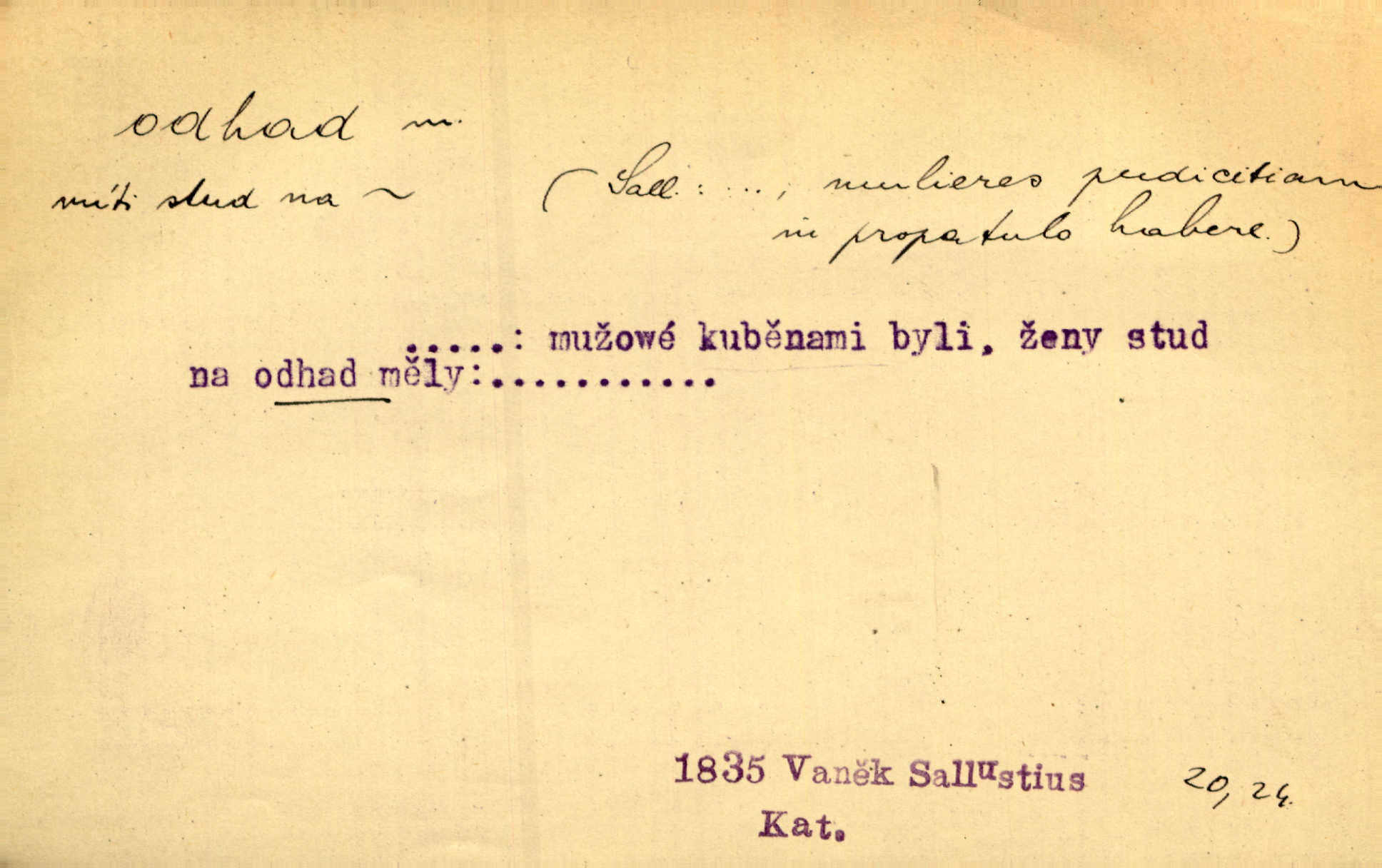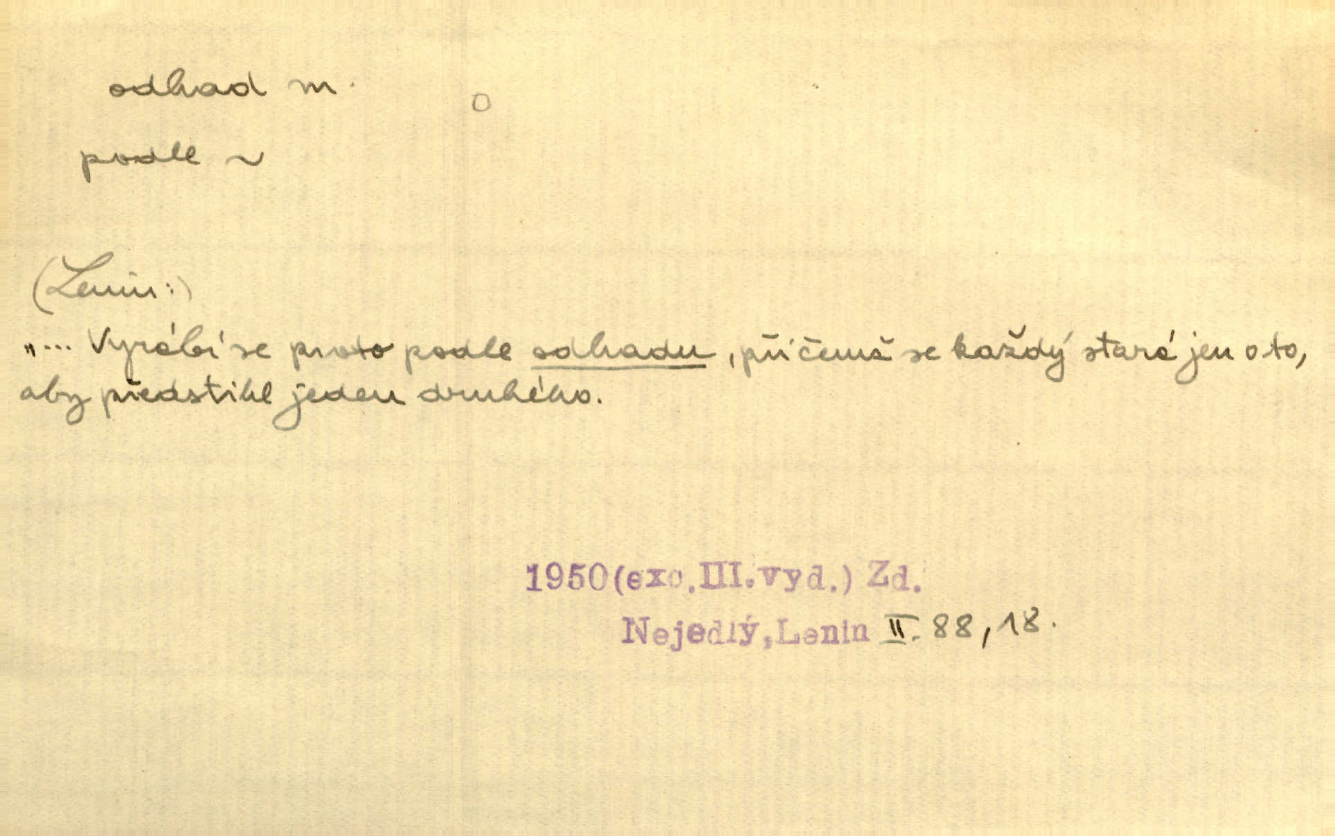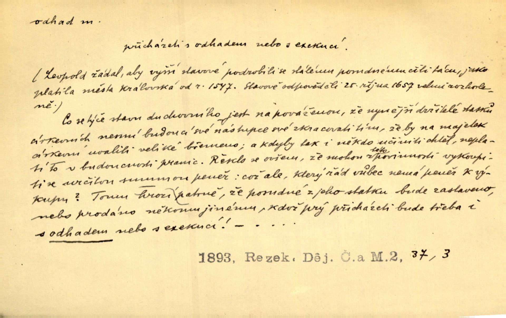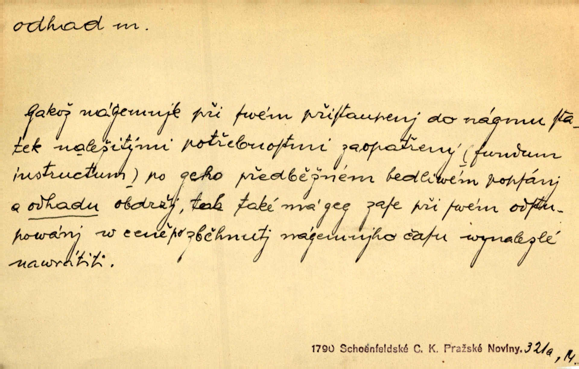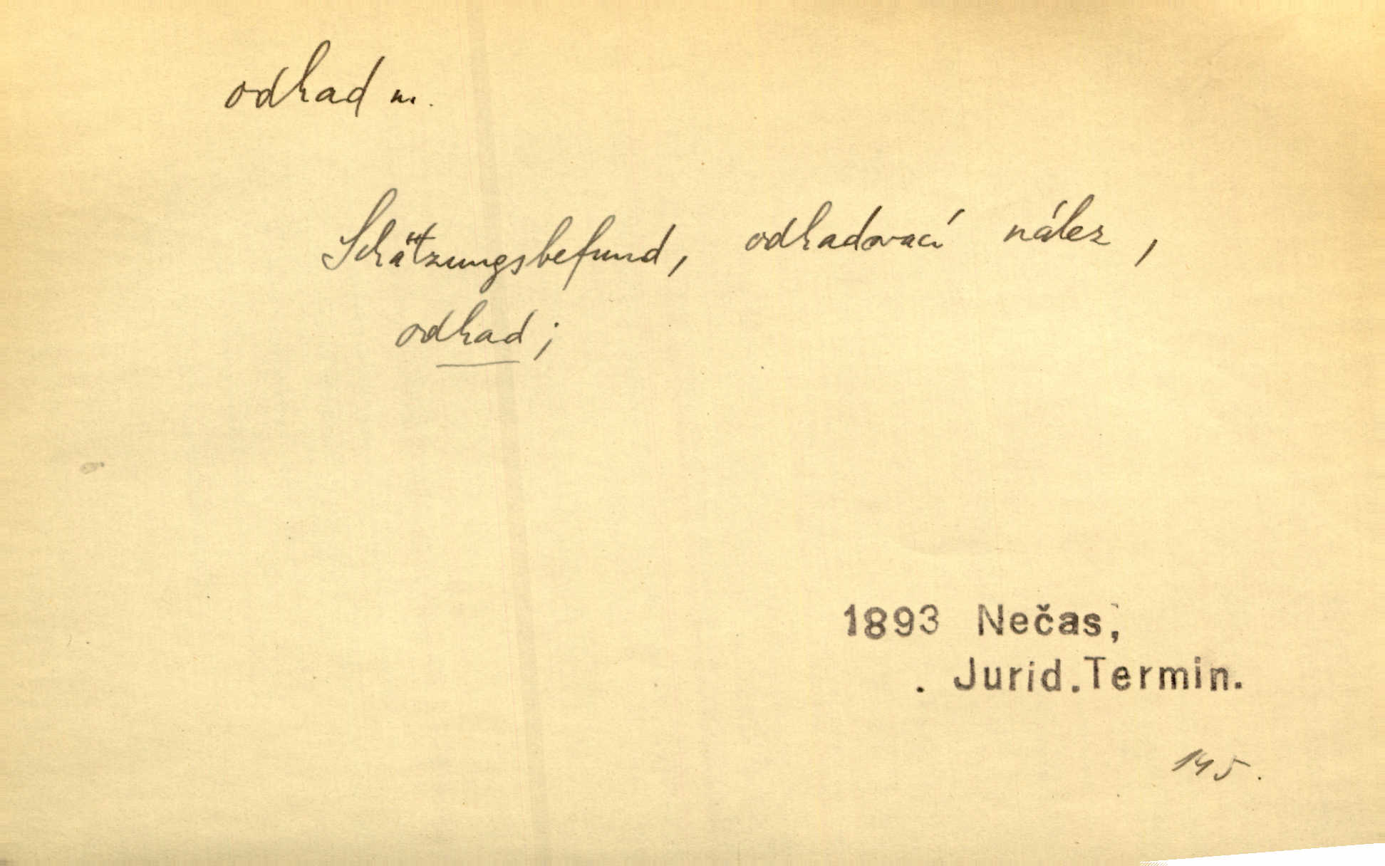 - odhad, -u m. úkon, jehož úkolem je zjistiti pravou cenu věci. Klein z Týna kde který skoupil Vášův dluh a vymohl juž odhad mlýna. Heyd. Však i při nejpřísnějším odhadu zbude básníkovi „Z přírody“ a „Pohádek z naší vesnice“ jistě tolik, že se mu nemusí vyčítati ten pomníček na Karlově náměstí. Mach. Obch. vyšetření hodnoty (na př. nějakého zboží) podle rozličných method.