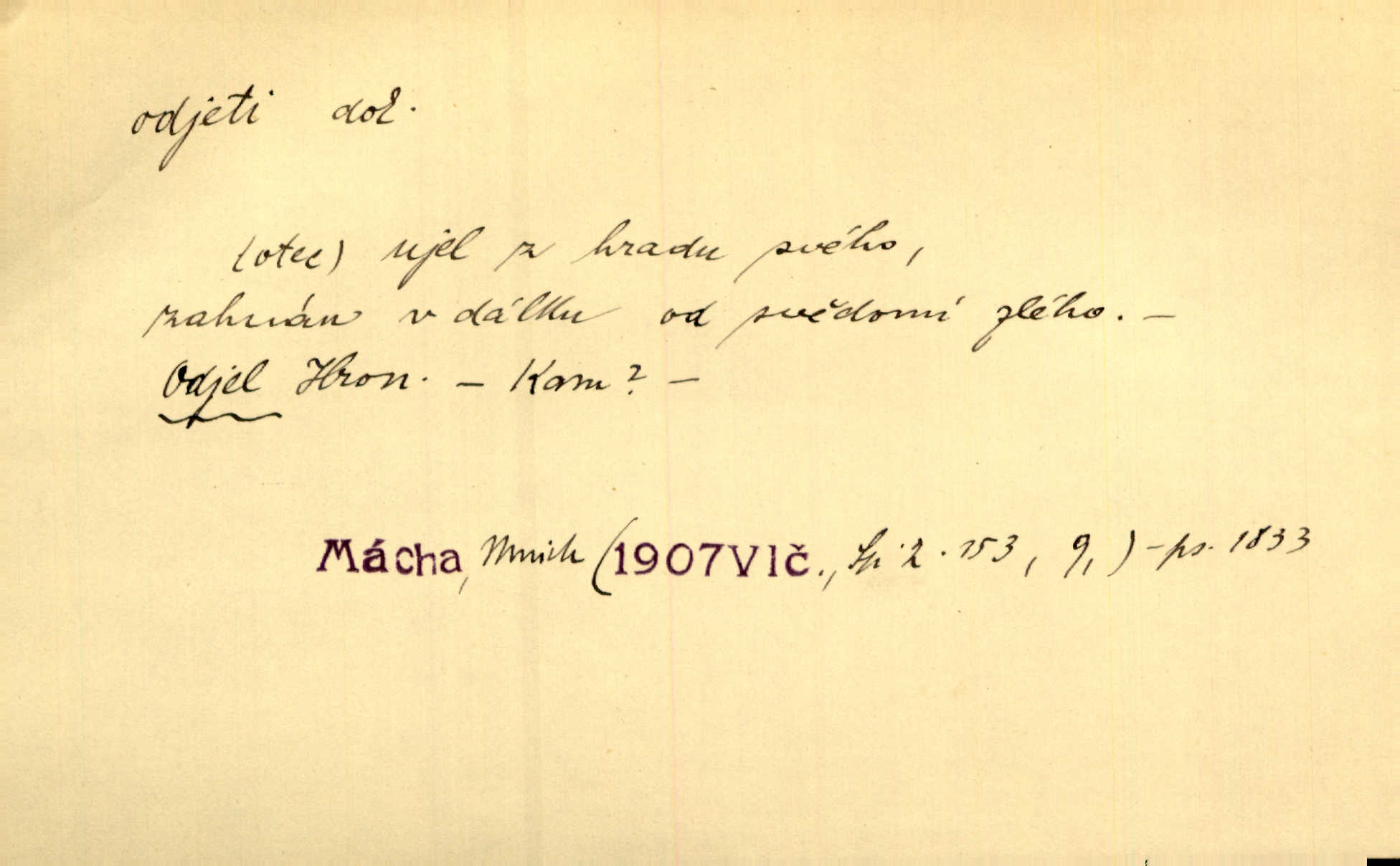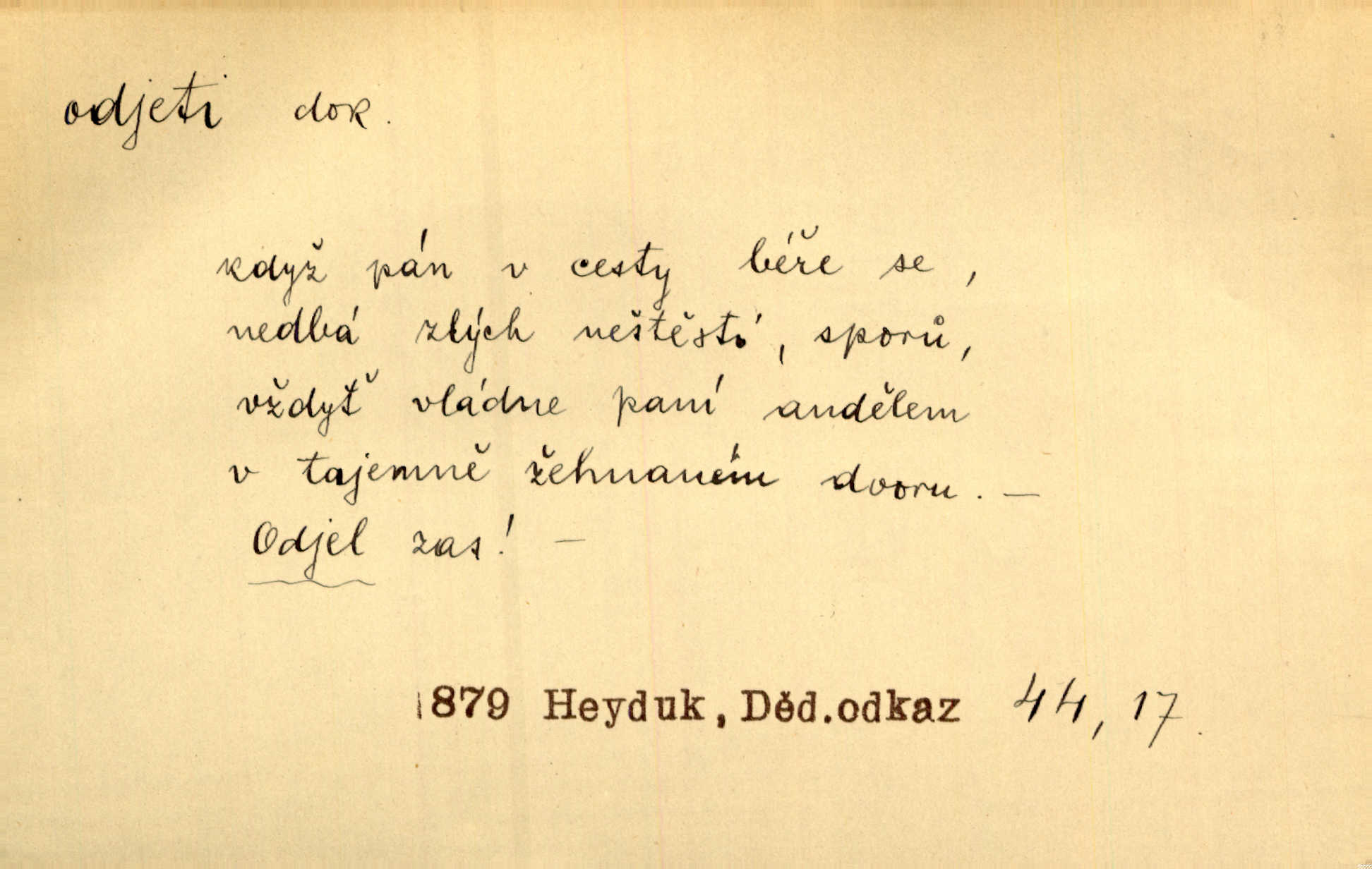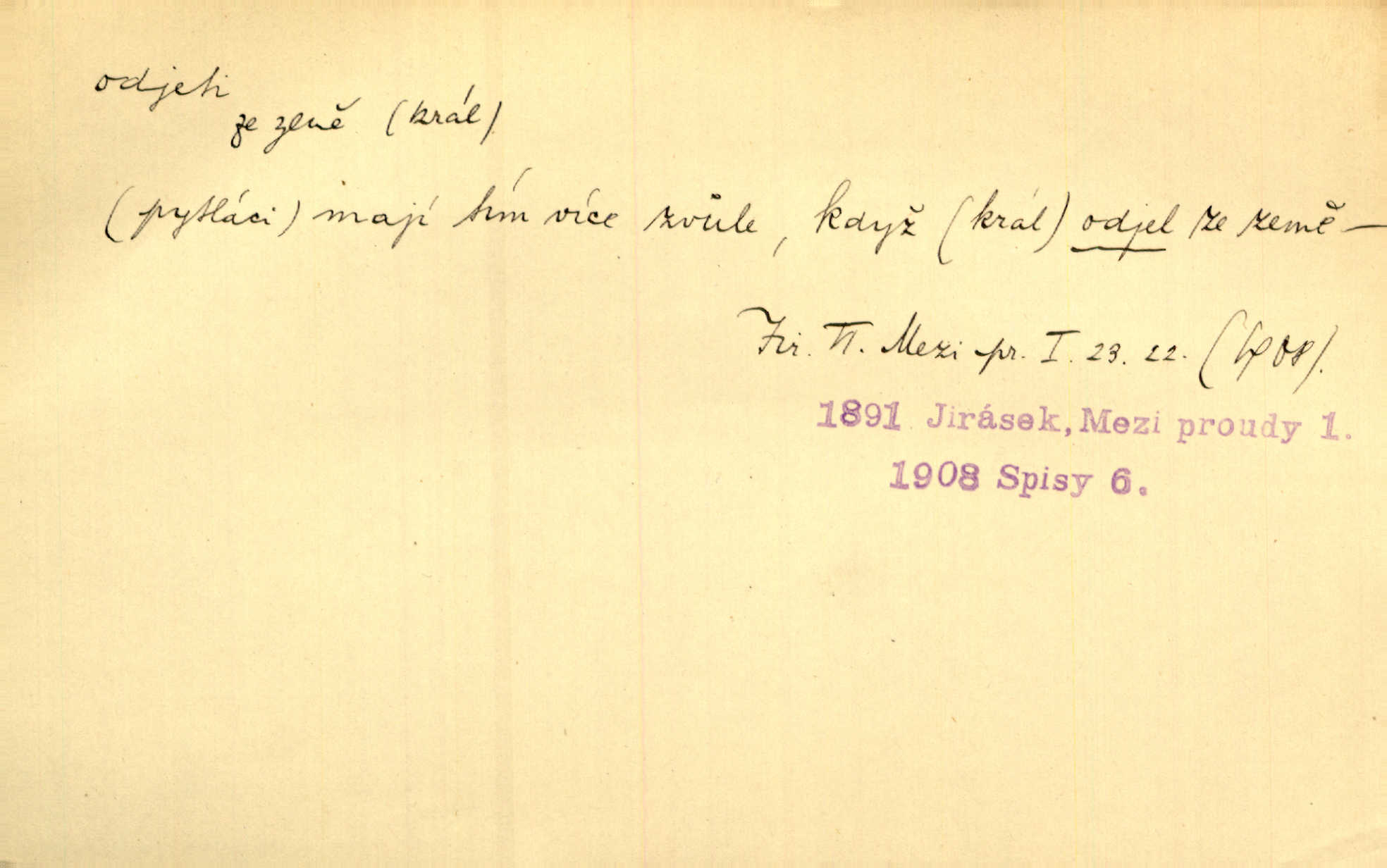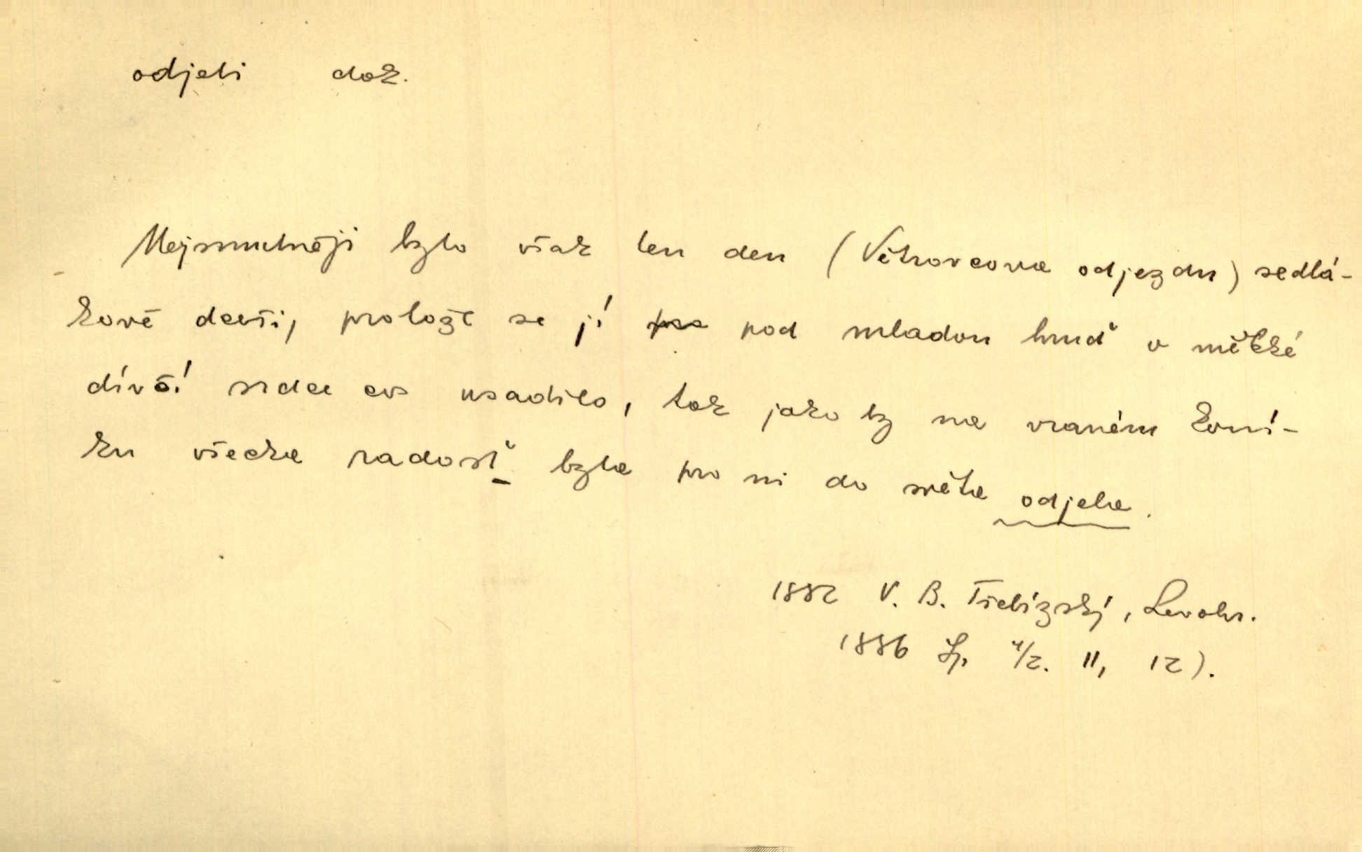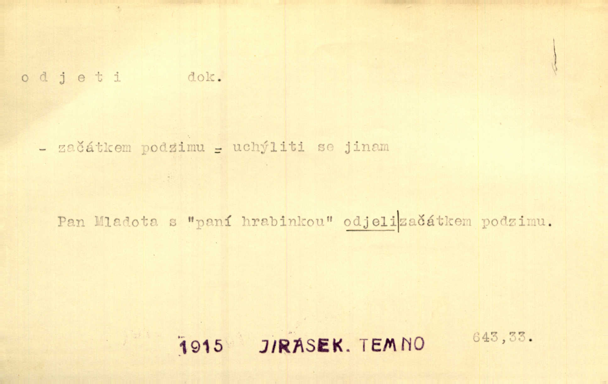 - odjeti (řidč. odejeti) dok. (o člověku n. jiném tvoru) vozmo n. jízdmo nějaké místo opustiti. Císař s dvorem odjeli z Prahy, císař v krytém voze. Jir. Odjel [vozka] za svou povinností. Šmil. Vskočil do fiakru a odjel. Ner. Prohlásila, že večerním vlakem odjede k mamince. Vach. Neříkaje nikomu kam a proč, odjel si sám do Libějic. Podl. Sardus, syn Heraklův, odjel do Lybie s loďstvem odplul. Vrch. Rozloučil se mladý manžel s drahou Dobrunkou a odejel do boje. Něm. [Kněžna] pokynula comtesse k odjetí, obě vsedly na koně. Něm. Odjede, odkud není návratu zemře. Šmil. D (o vozidle n. plavidle) opustiti nějaké místo. Kočí práskl do koně a povoz, seč sešlý kůň klusati mohl, odejel. Arb. S Blaženou promluvil spěšně několik slov, ani vozu nedal odejet. R. Svob.