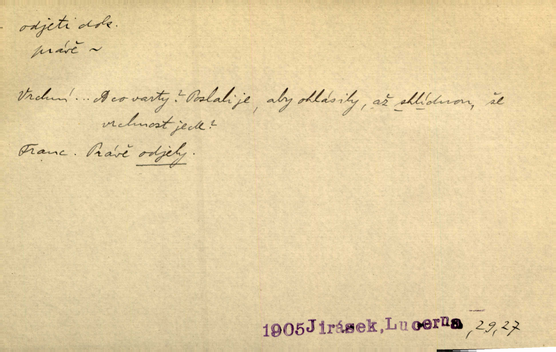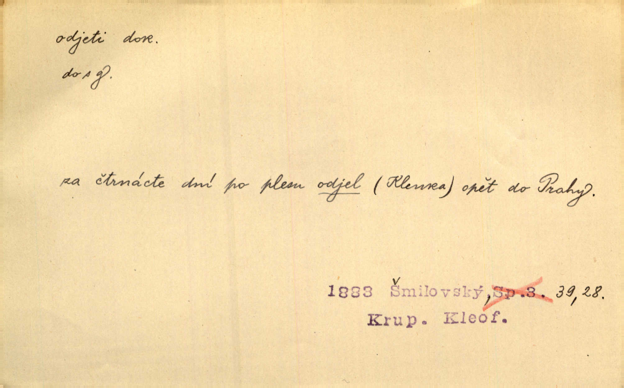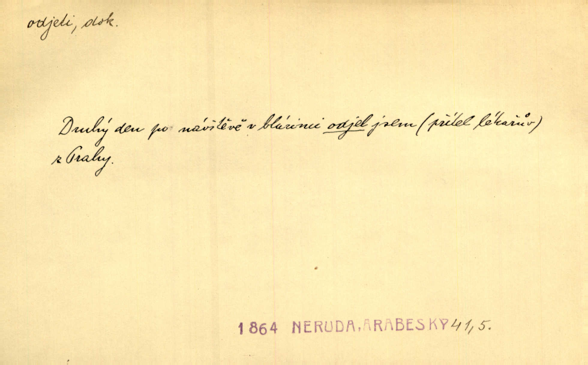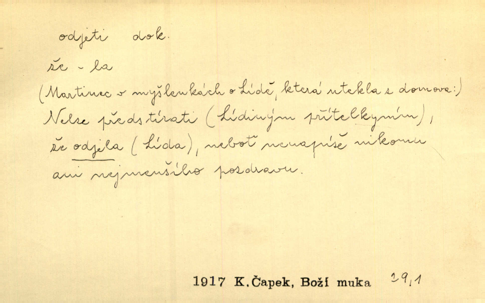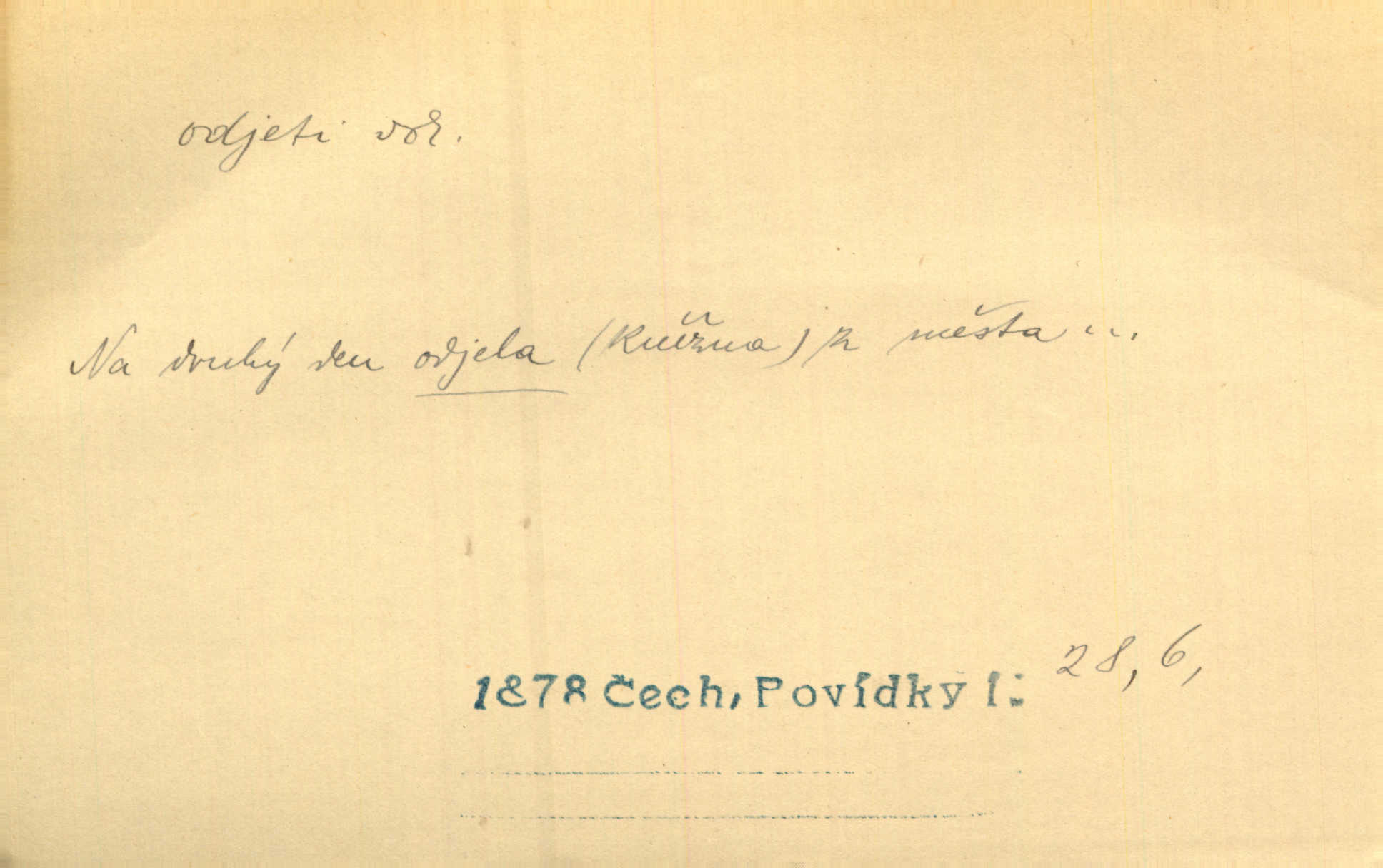 - odjeti (řidč. odejeti) dok. (o člověku n. jiném tvoru) vozmo n. jízdmo nějaké místo opustiti. Císař s dvorem odjeli z Prahy, císař v krytém voze. Jir. Odjel [vozka] za svou povinností. Šmil. Vskočil do fiakru a odjel. Ner. Prohlásila, že večerním vlakem odjede k mamince. Vach. Neříkaje nikomu kam a proč, odjel si sám do Libějic. Podl. Sardus, syn Heraklův, odjel do Lybie s loďstvem odplul. Vrch. Rozloučil se mladý manžel s drahou Dobrunkou a odejel do boje. Něm. [Kněžna] pokynula comtesse k odjetí, obě vsedly na koně. Něm. Odjede, odkud není návratu zemře. Šmil. D (o vozidle n. plavidle) opustiti nějaké místo. Kočí práskl do koně a povoz, seč sešlý kůň klusati mohl, odejel. Arb. S Blaženou promluvil spěšně několik slov, ani vozu nedal odejet. R. Svob.