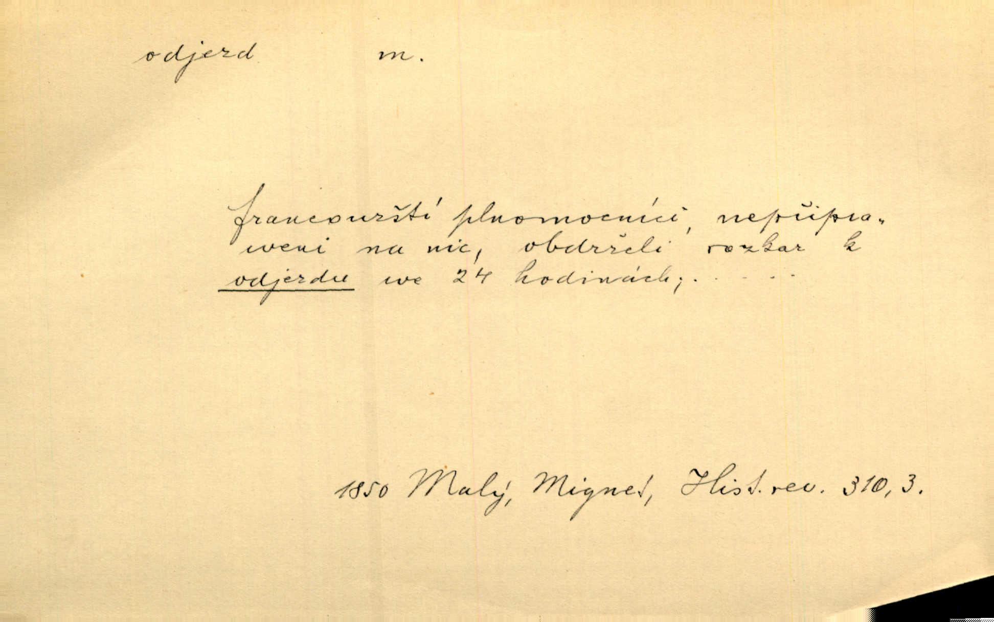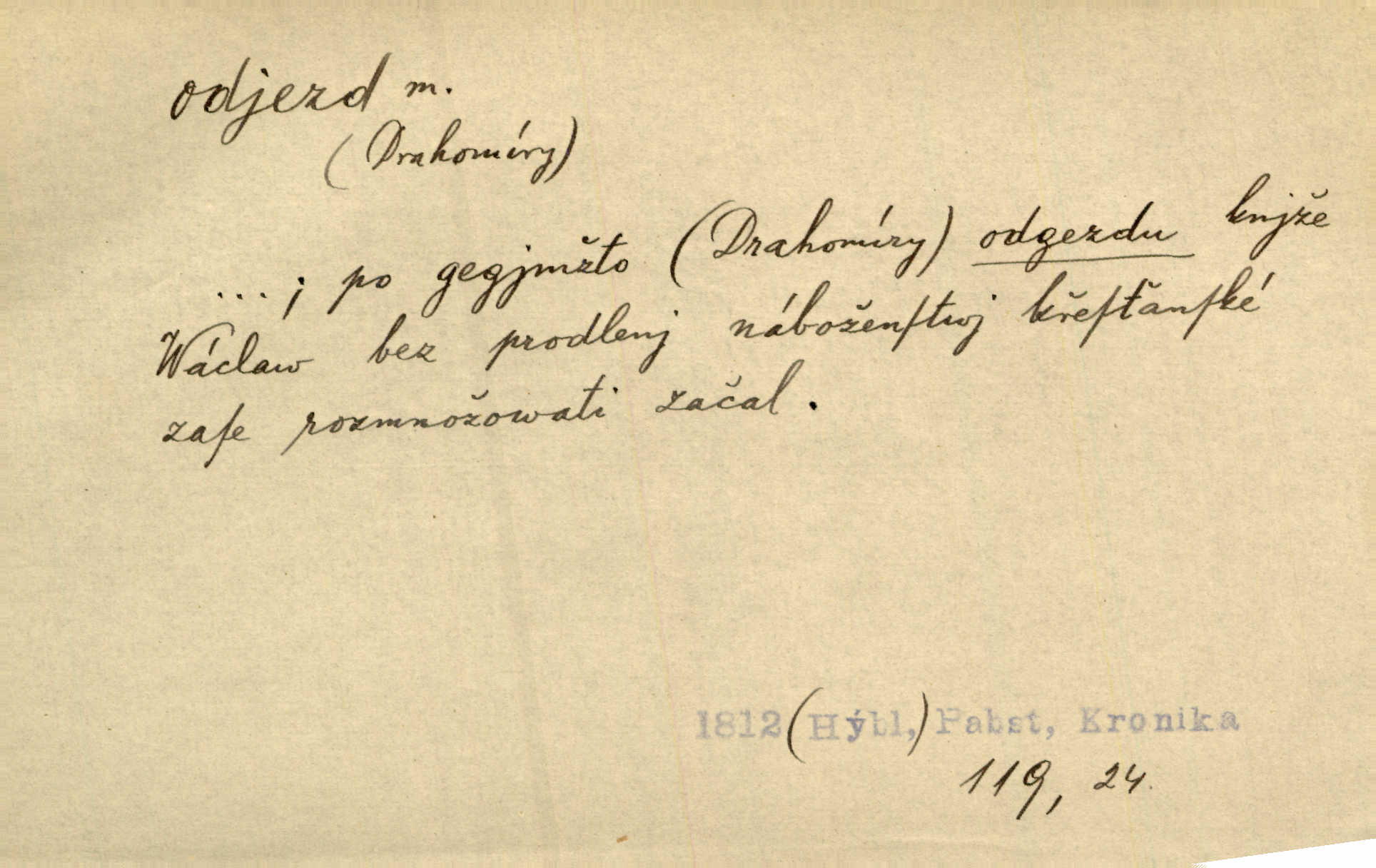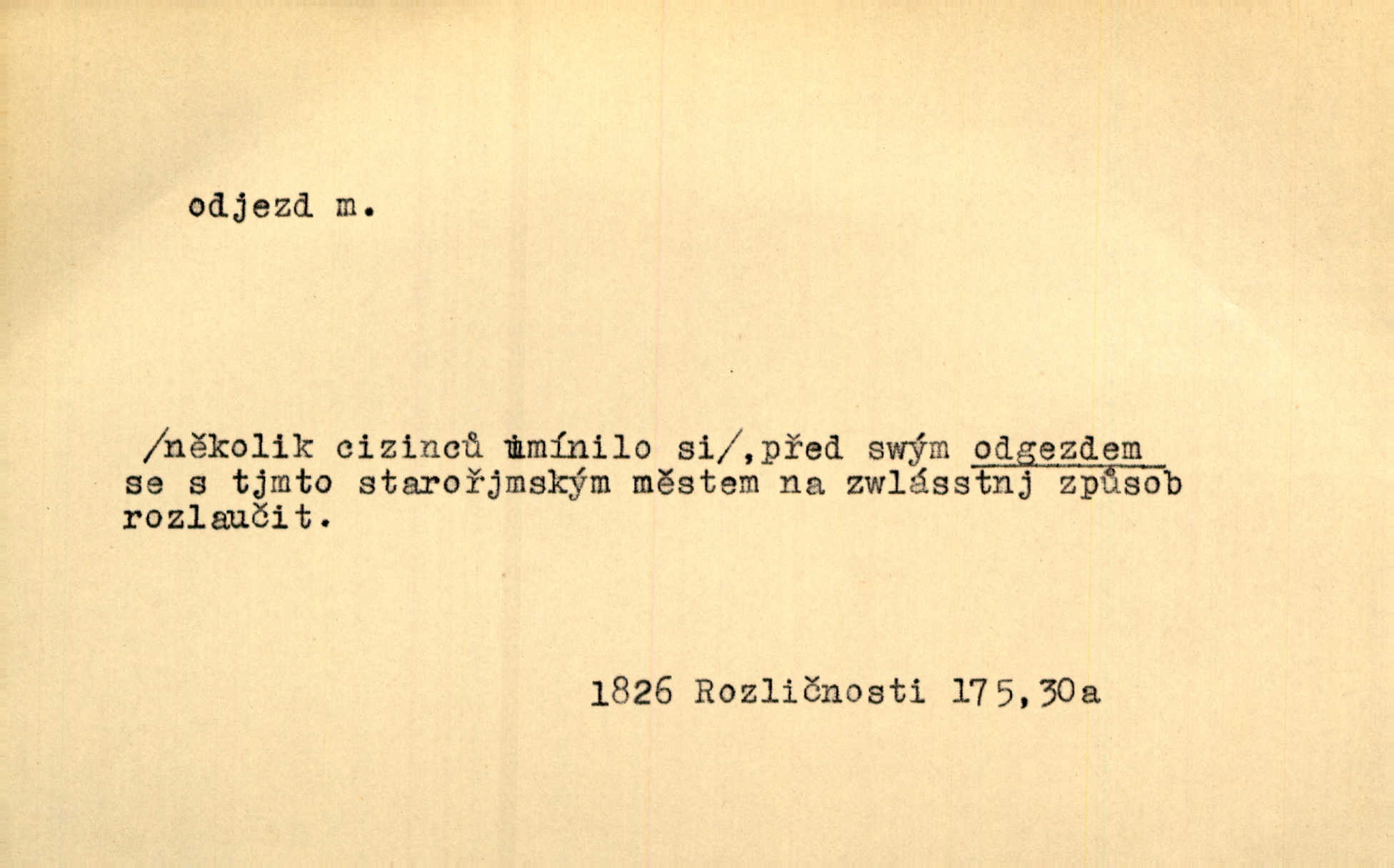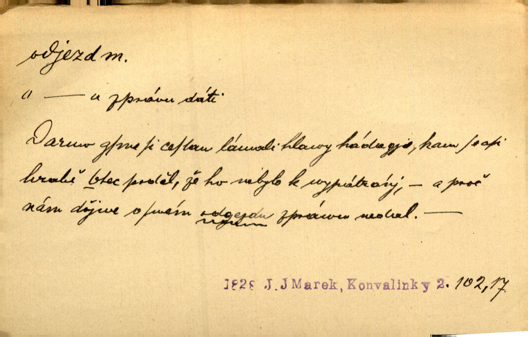 - odjezd, -u m. opuštění místa vozmo, jízdmo n. plavidlem, odjetí. Na vozech seděli již vozkové k odjezdu připravení. Rais. Po odjezdu kočáru hovořilo se hlučně u Taliána. Maj. Loď, která je měla převézti, byla pohotově a čekala na znamení k odjezdu. Pfleg. Odjezd vlaku. Us. Najal jsem vraha, který milence vašeho stíhá, a doufám, že vám v brzku zprávu o jeho odjezdu do nebeského království sdělím o smrti. Zey.