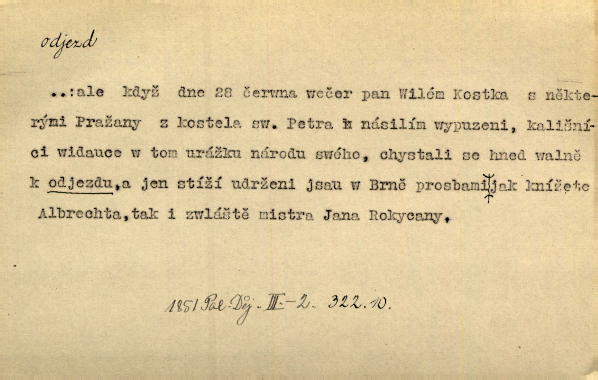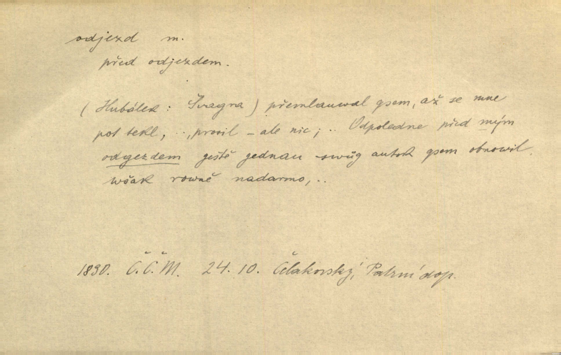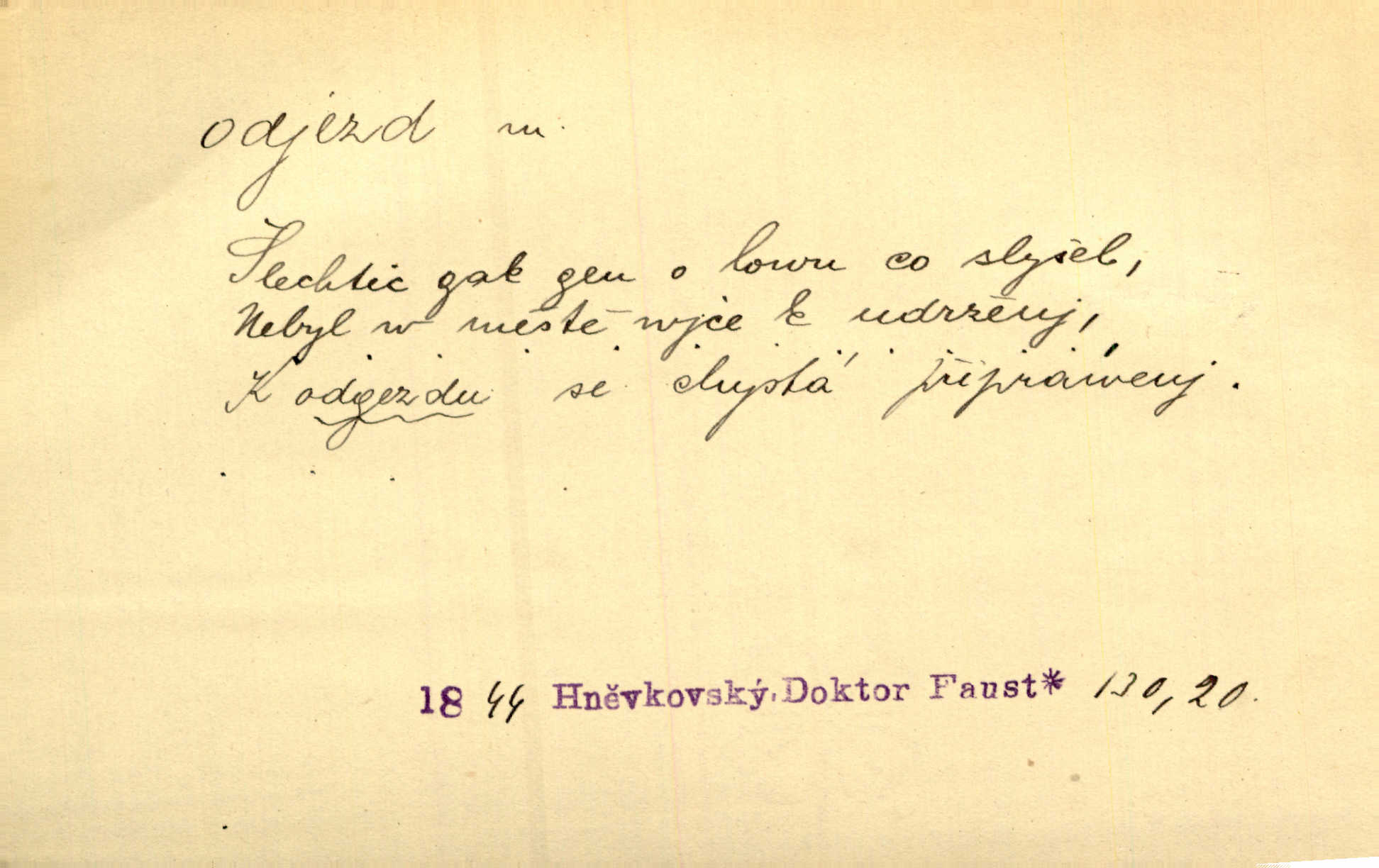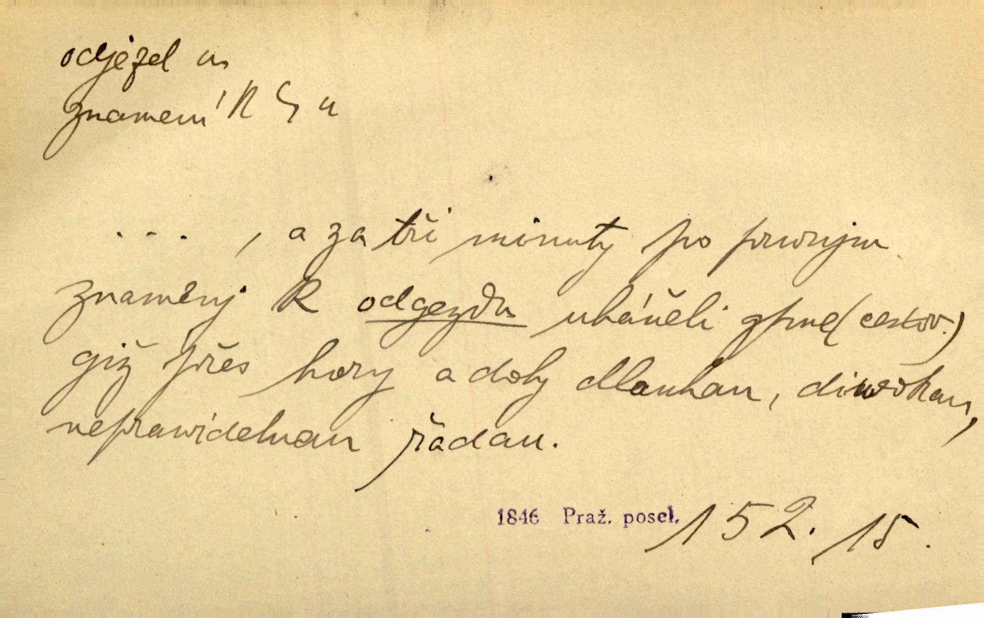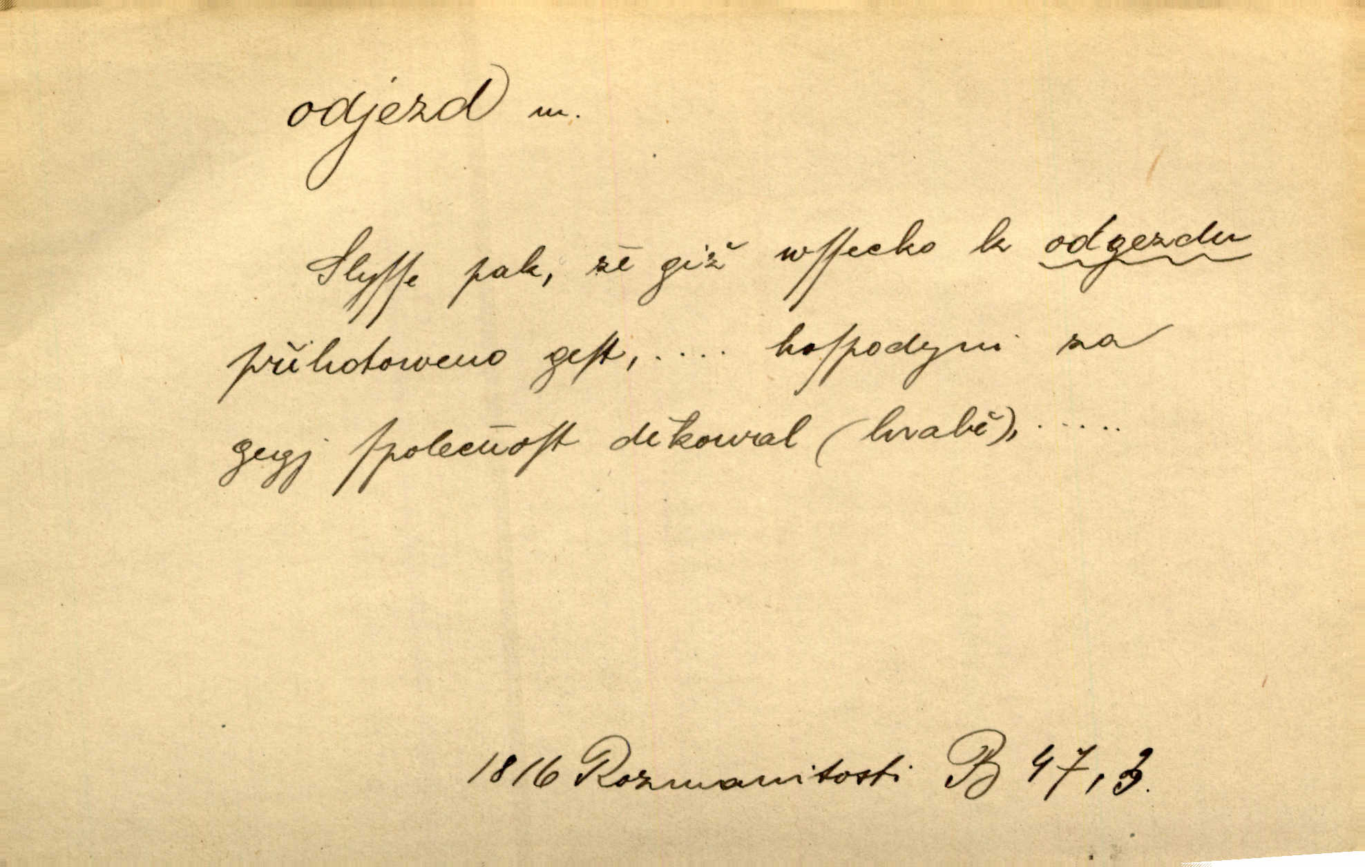 - odjezd, -u m. opuštění místa vozmo, jízdmo n. plavidlem, odjetí. Na vozech seděli již vozkové k odjezdu připravení. Rais. Po odjezdu kočáru hovořilo se hlučně u Taliána. Maj. Loď, která je měla převézti, byla pohotově a čekala na znamení k odjezdu. Pfleg. Odjezd vlaku. Us. Najal jsem vraha, který milence vašeho stíhá, a doufám, že vám v brzku zprávu o jeho odjezdu do nebeského království sdělím o smrti. Zey.