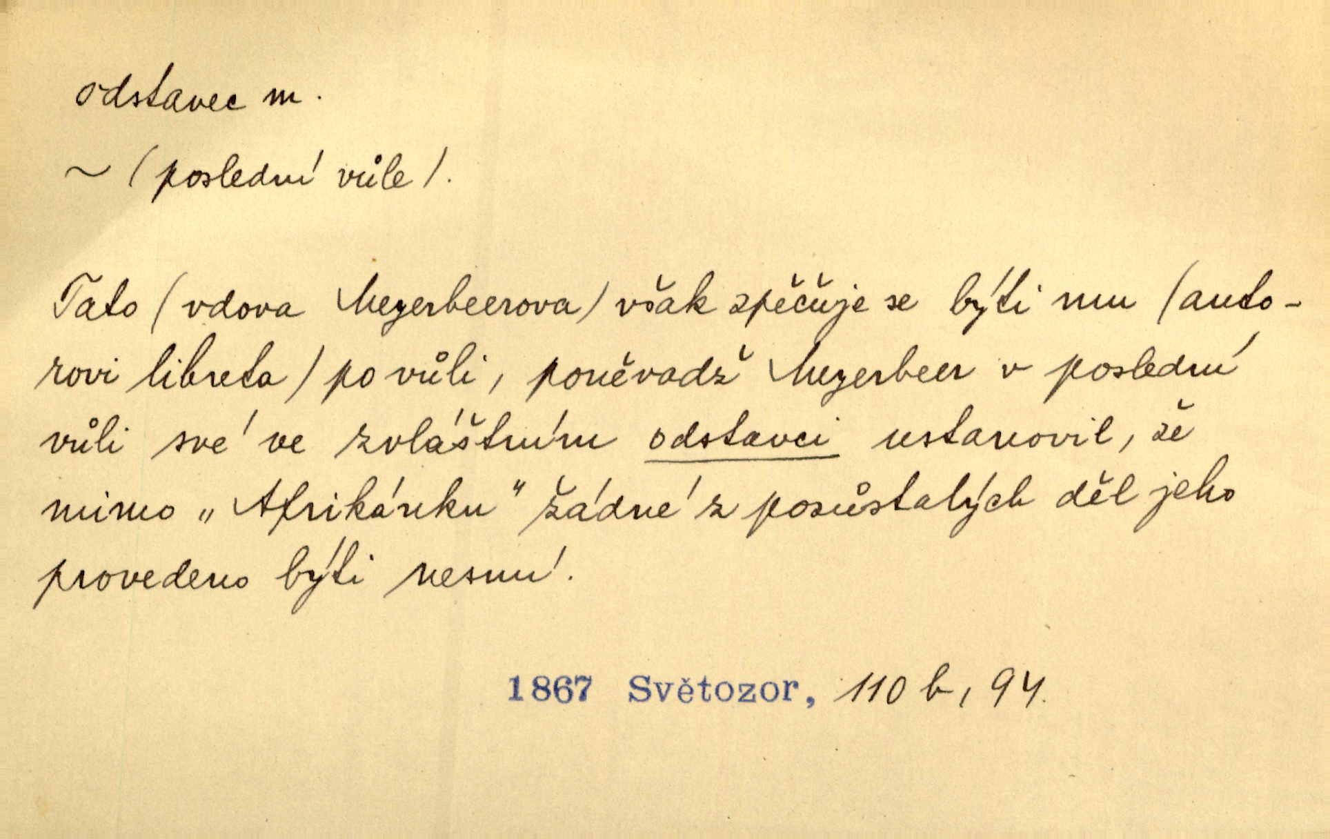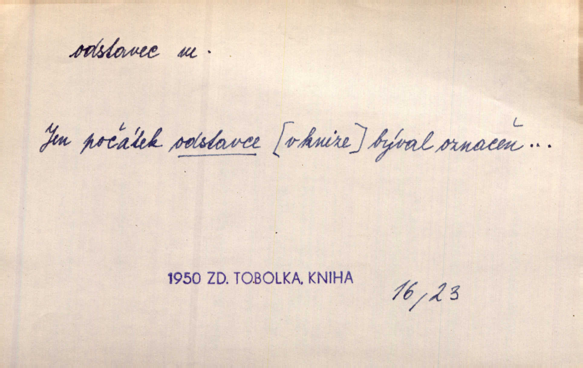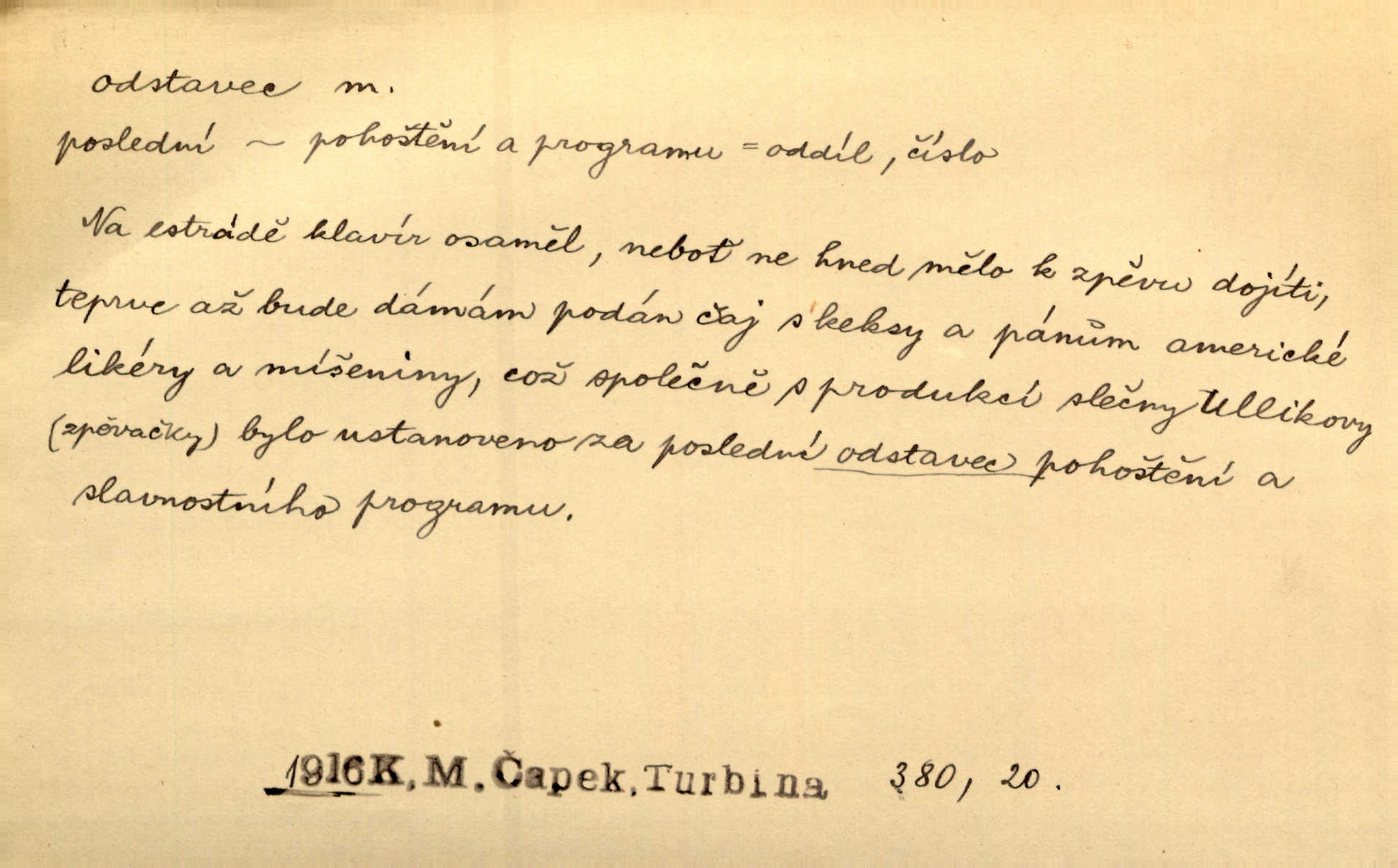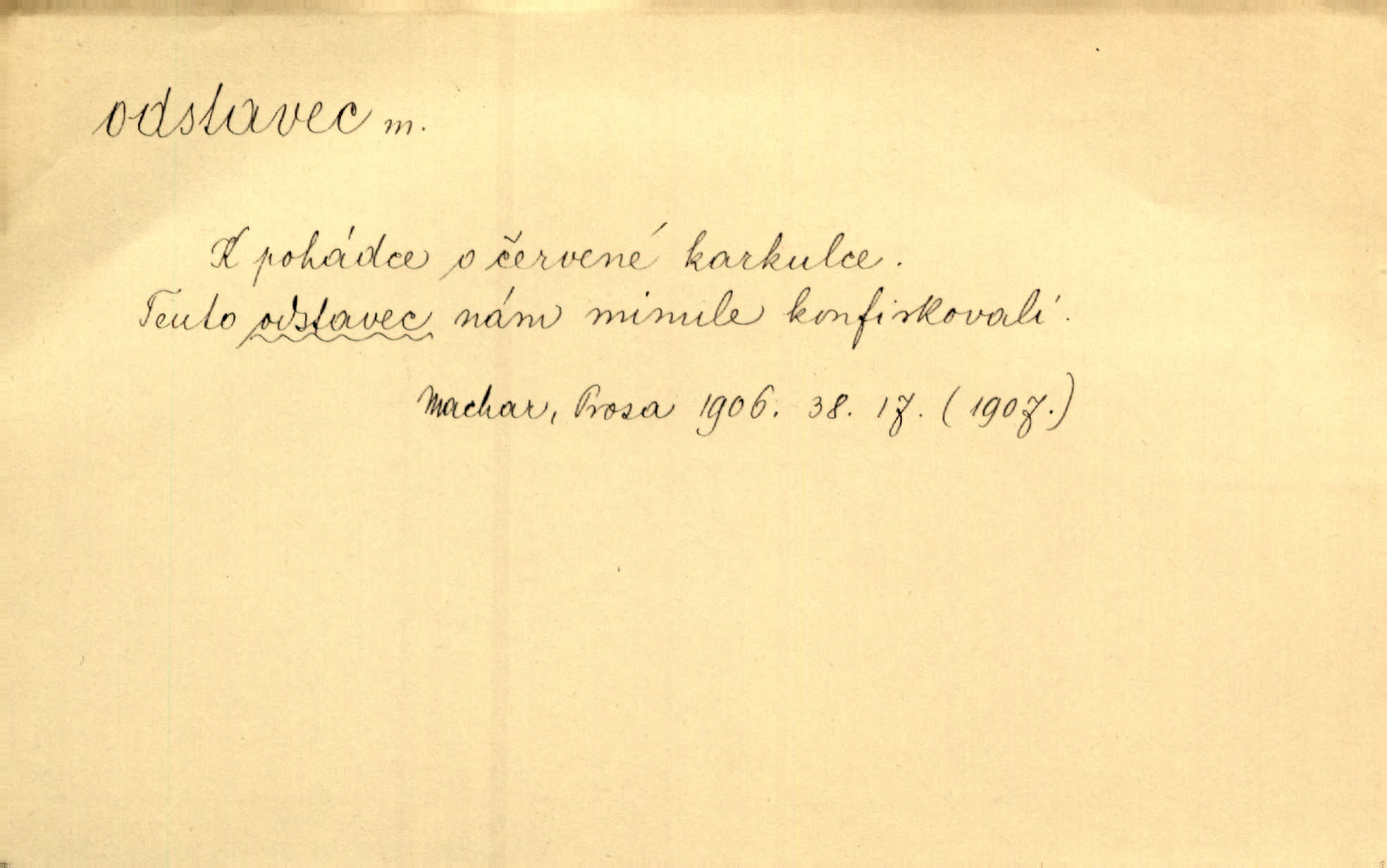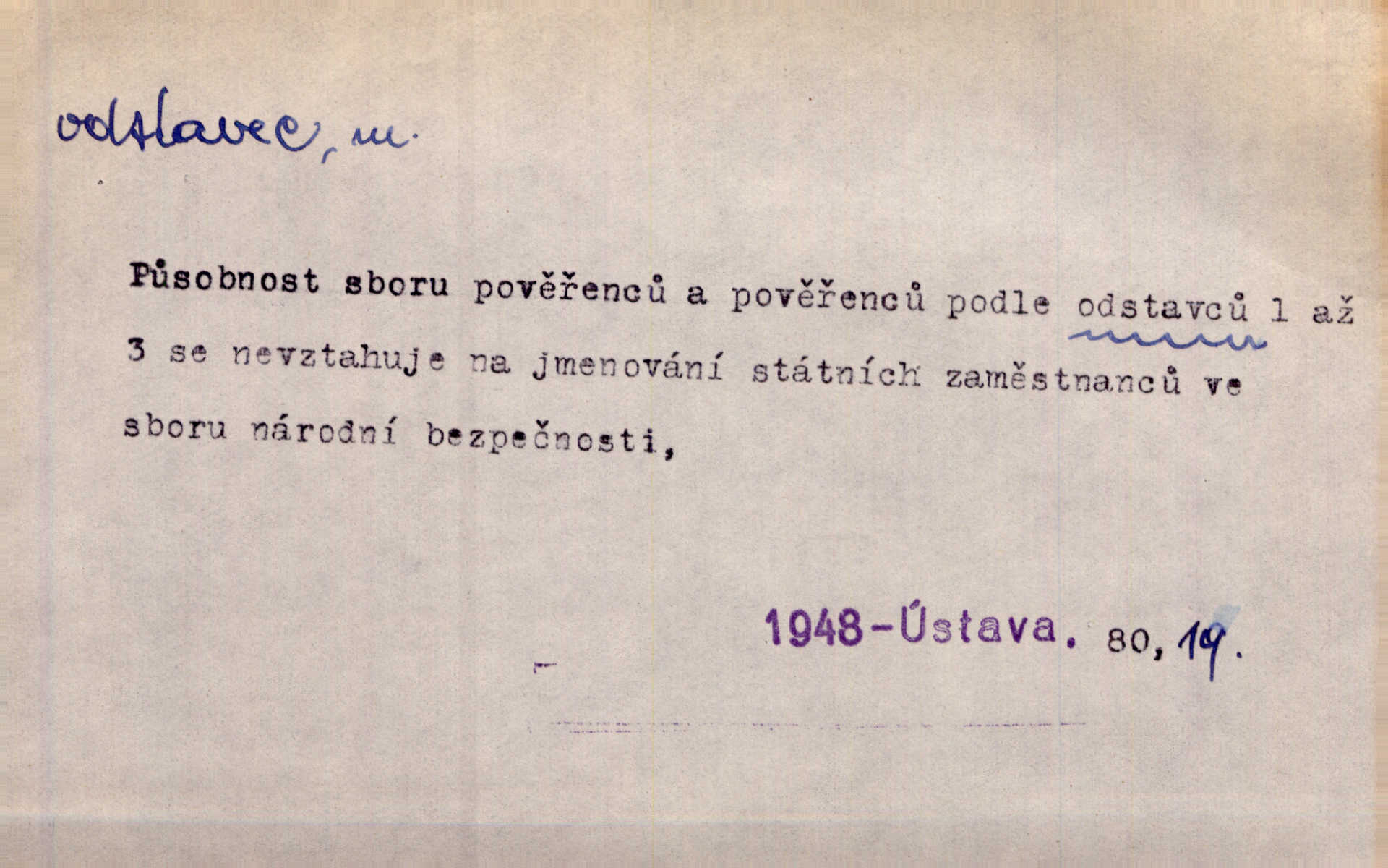 - odstavec, -vce m. oddíl nějakého textu. Dočetl odstavec, položil knížku. Jir. Tento odstavec nám minule konfiskovali. Mach. [Tak nebožtík] v poslední vůli své ve zvláštním odstavci ustanovil. Světozor. D oddíl něčeho vůbec, část. Společnost táhla se [z výletu] jako růženec v malých odstavcích po dvou a po třech. R. Svob. Rozděloval si celou vzdálenost na kratší odstavce. Čap. Ch. Snad může i pro mne začíti nový, lepší odstavec života. Čech. Čas plyne pořád stejně dál, v tom není odstavců ani změny. Ner. Mezi výhní a kovadlinou putují železné pruty v stejných odstavcích času nekonečně sem a tam intervalech. Ner. Potom další odstavec takové události rodinné: slavné zasnoubení článek. Herrm. Poslední odstavec slavnostního programu číslo. Čap. Ch. D Zř. plošina mezi dvěma oddíly schodů, odpočivadlo. Přešli jediný odstavec schodů a již se hospodář zastavil u šedě natřených dveří. Nov. Na prvním odstavci schodů viděl jsem řadu odevřených jizeb. Ner. Muž ji [na schodech] předhonil, a když konečně hlavu pozvedla, spatřila na druhém odstavci stát Heilbronna. Til.