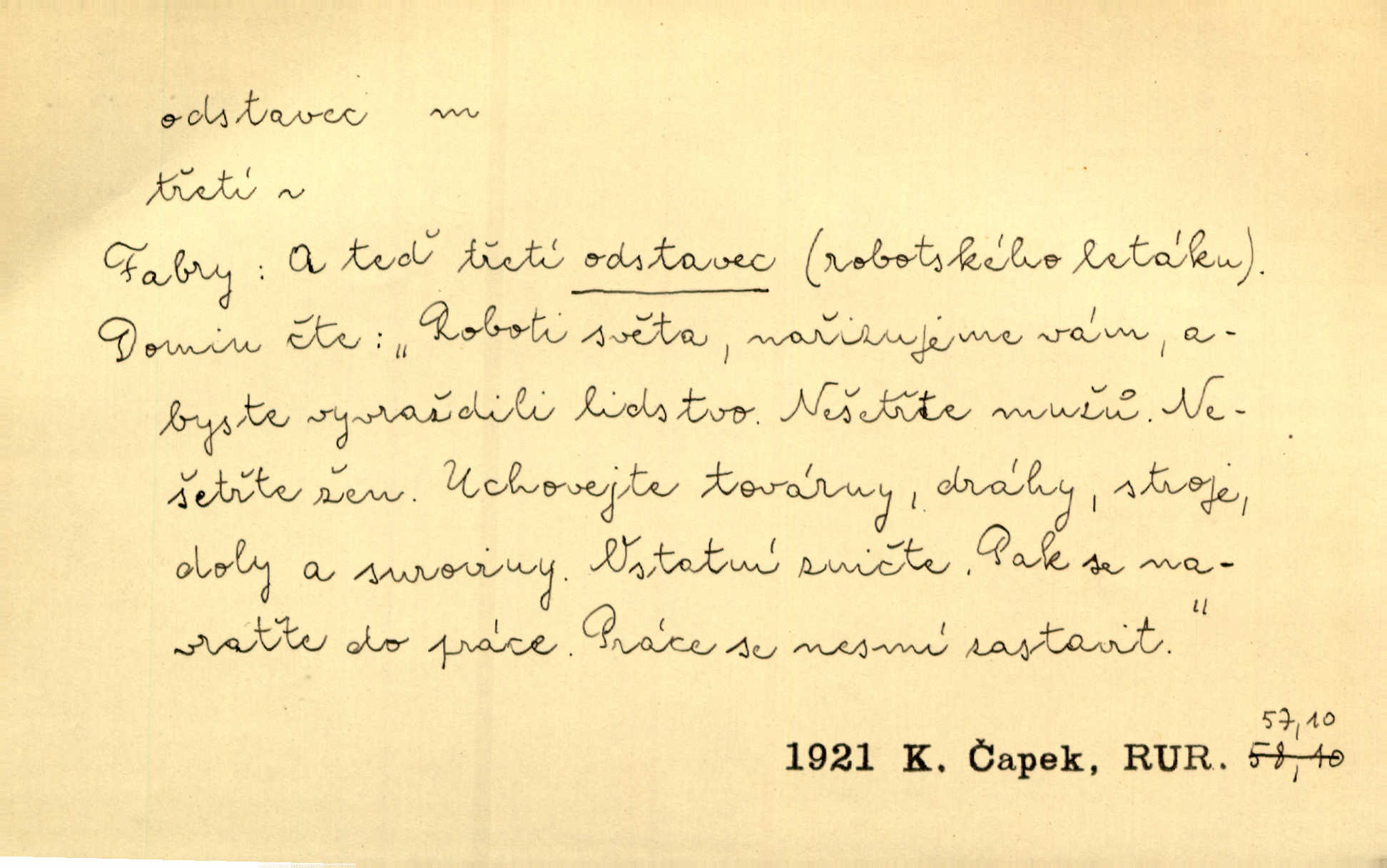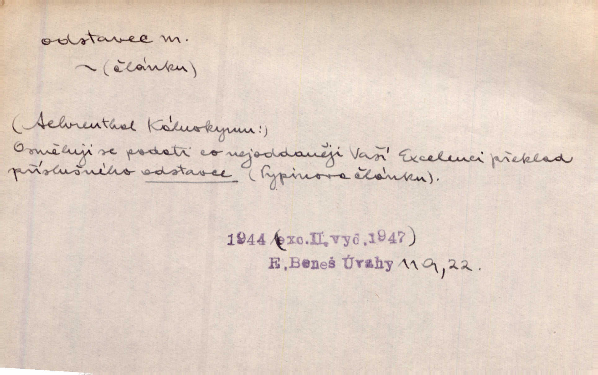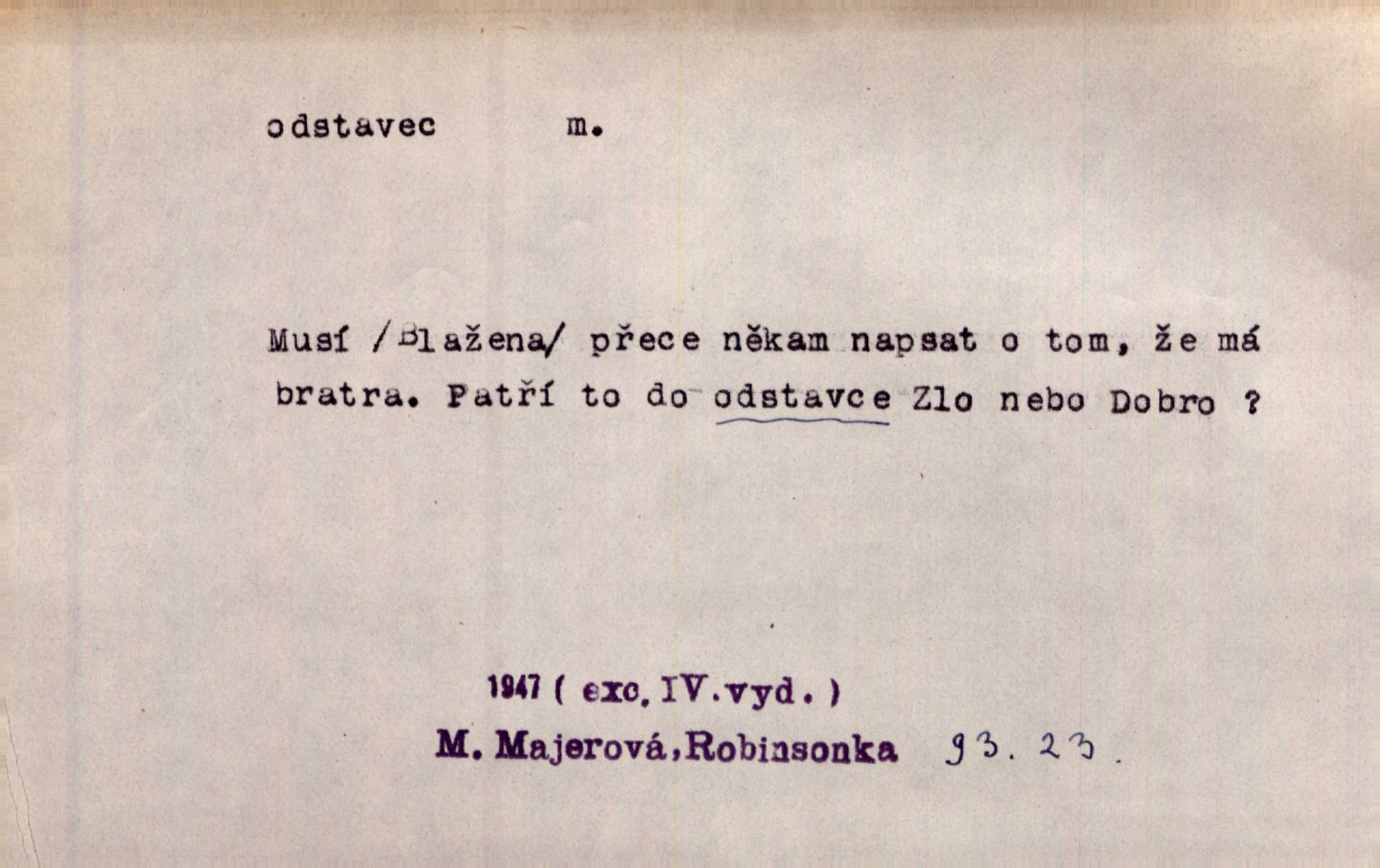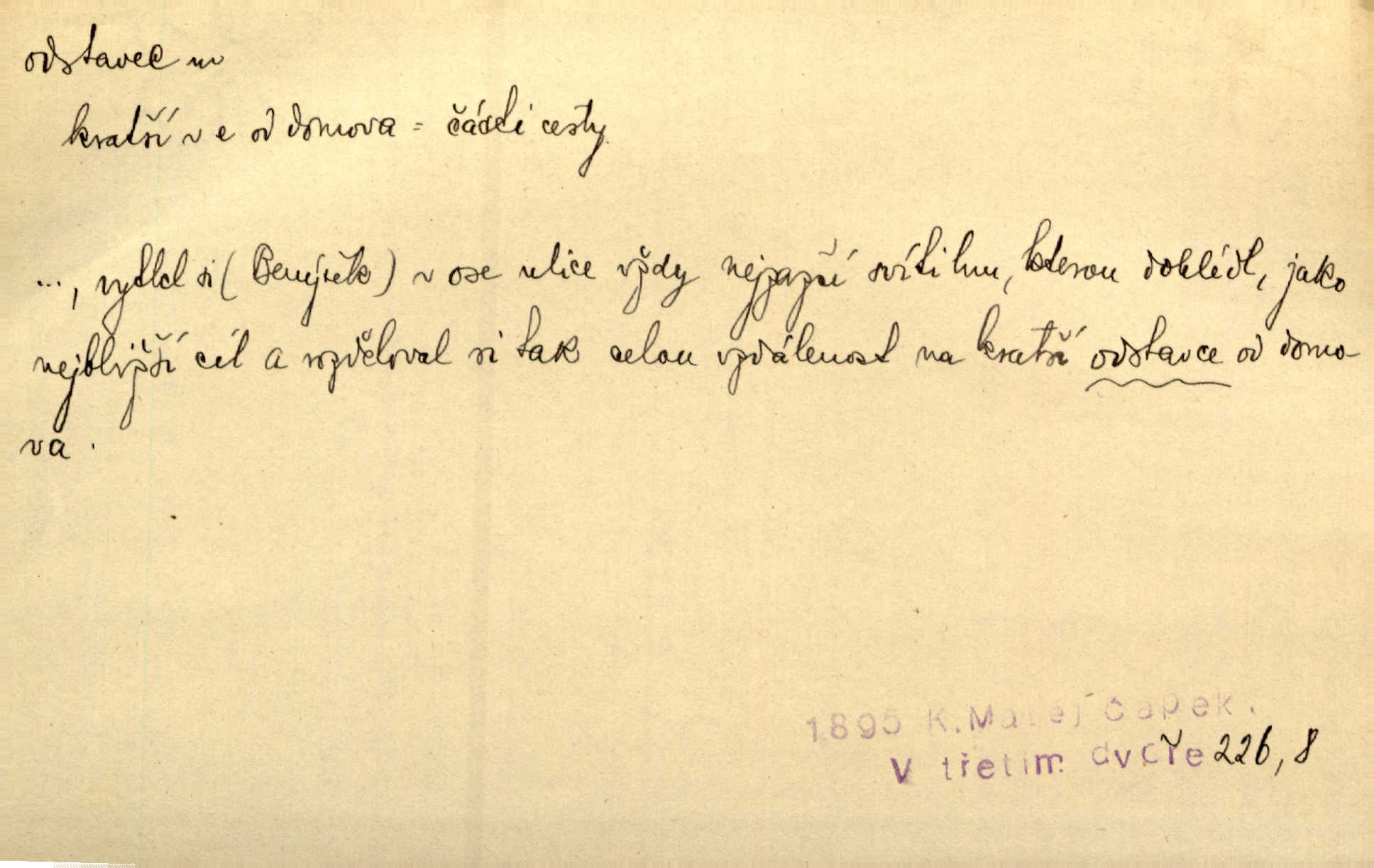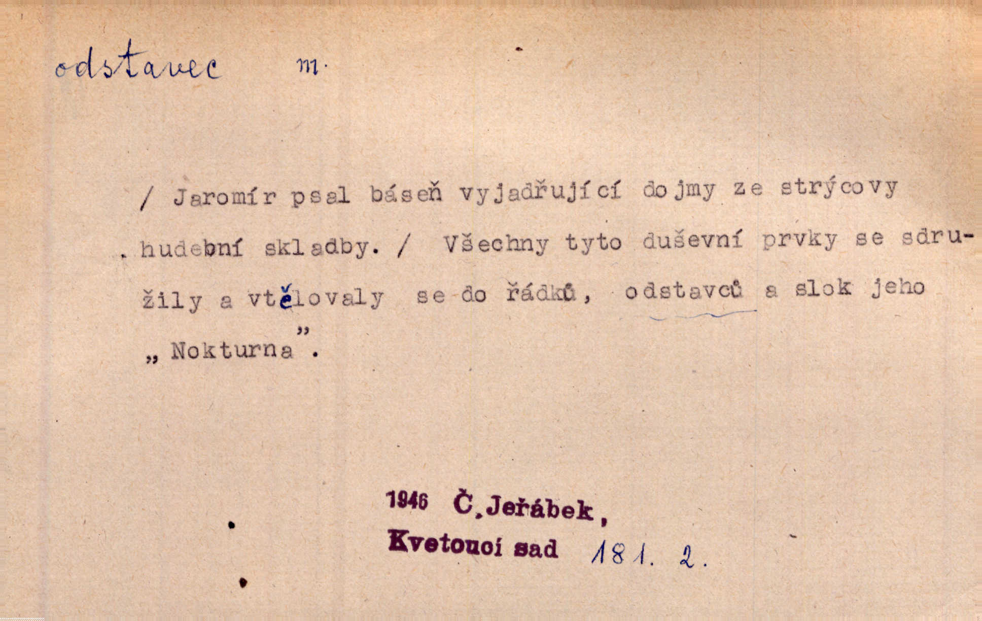 - odstavec, -vce m. oddíl nějakého textu. Dočetl odstavec, položil knížku. Jir. Tento odstavec nám minule konfiskovali. Mach. [Tak nebožtík] v poslední vůli své ve zvláštním odstavci ustanovil. Světozor. D oddíl něčeho vůbec, část. Společnost táhla se [z výletu] jako růženec v malých odstavcích po dvou a po třech. R. Svob. Rozděloval si celou vzdálenost na kratší odstavce. Čap. Ch. Snad může i pro mne začíti nový, lepší odstavec života. Čech. Čas plyne pořád stejně dál, v tom není odstavců ani změny. Ner. Mezi výhní a kovadlinou putují železné pruty v stejných odstavcích času nekonečně sem a tam intervalech. Ner. Potom další odstavec takové události rodinné: slavné zasnoubení článek. Herrm. Poslední odstavec slavnostního programu číslo. Čap. Ch. D Zř. plošina mezi dvěma oddíly schodů, odpočivadlo. Přešli jediný odstavec schodů a již se hospodář zastavil u šedě natřených dveří. Nov. Na prvním odstavci schodů viděl jsem řadu odevřených jizeb. Ner. Muž ji [na schodech] předhonil, a když konečně hlavu pozvedla, spatřila na druhém odstavci stát Heilbronna. Til.