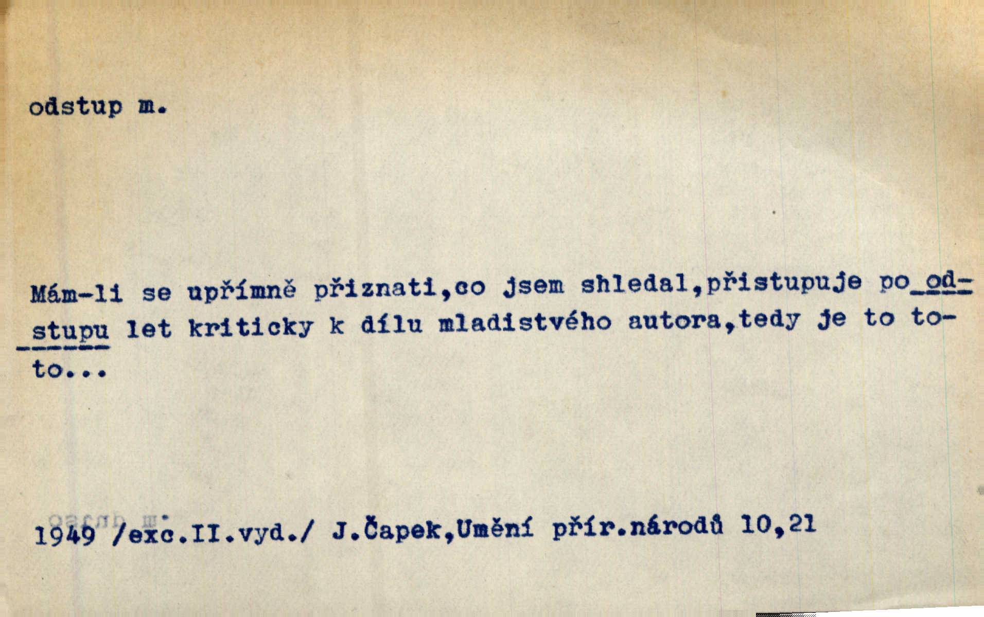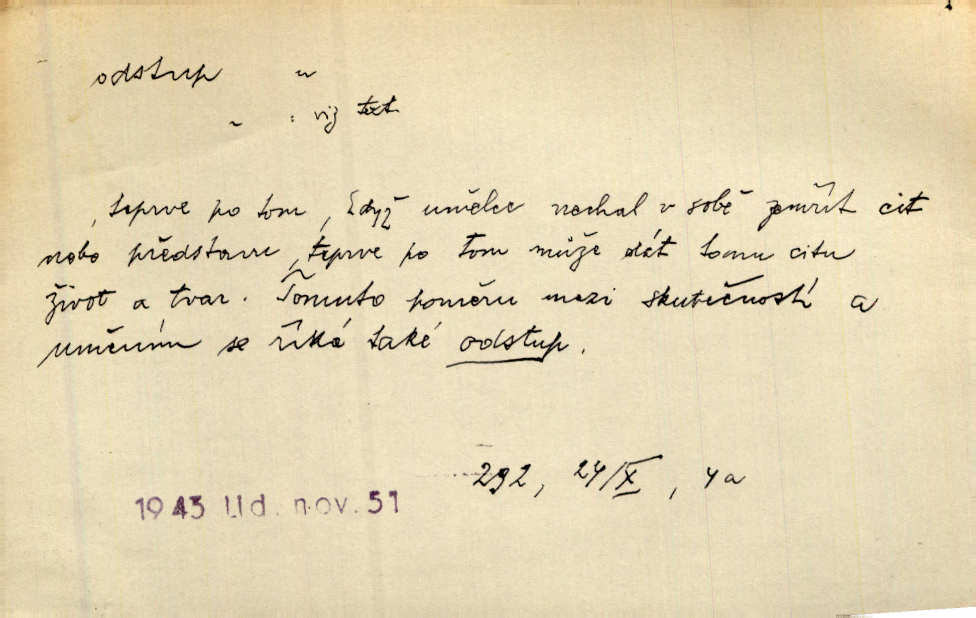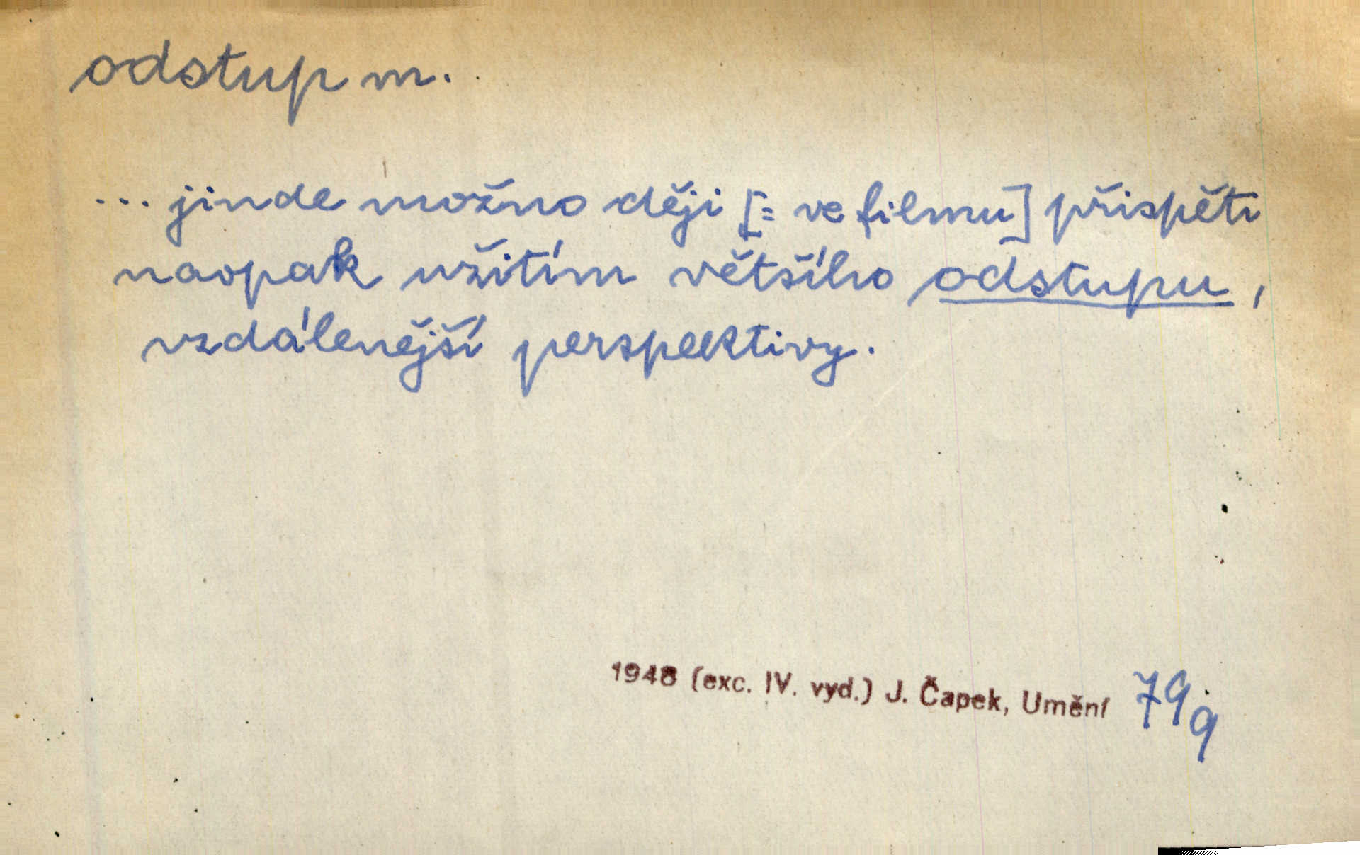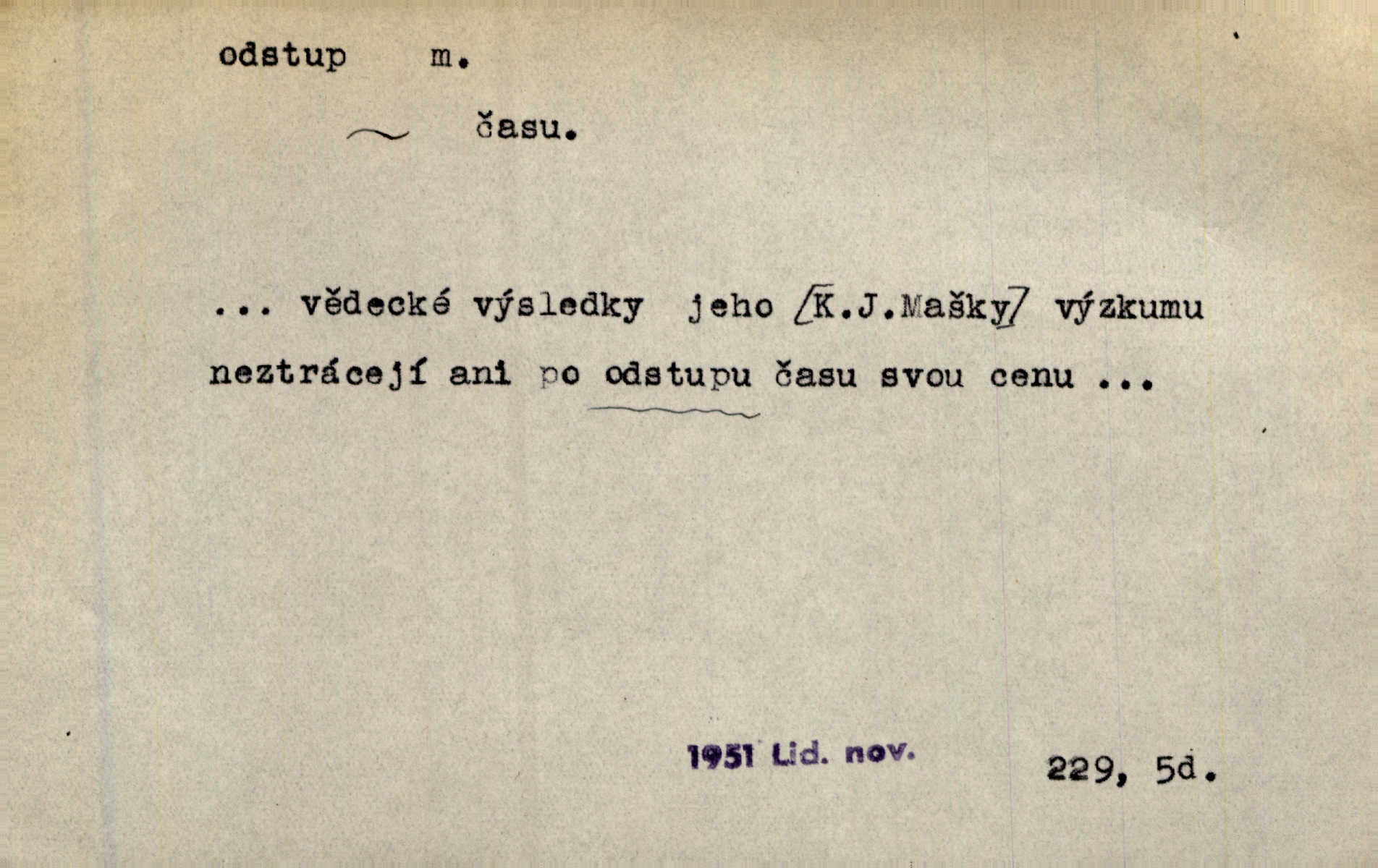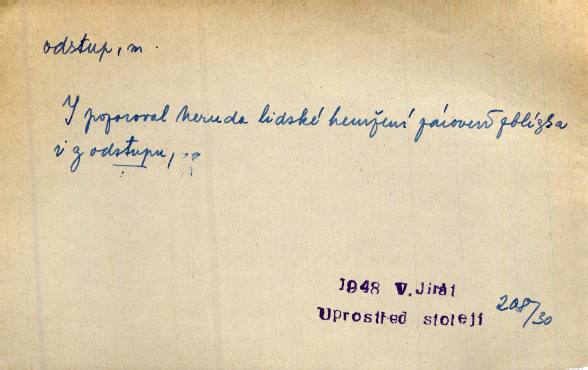 - odstup, -u m. odstoupení, odchod. Máš mít volný přístup i odstup. J. Malý. Uprostřed ní [vřavy] vstal, zapotácel se v odstupu od stolu. Vrba. Dozírali, jak se konal právě nástup a odstup dvou směn [pekařů]. Vach. Generace odcházející neví, kde je cesta k čestnému a zaslouženému odstupu odchodu (do nečinnosti). Kun. [Snaha Sigmundova,] aby lichého papeže přiměl k odstupu odstoupení z úřadu. Helf. Geol. pozvolný ústup moře s pevniny, regrese. D odstoupení na jistou vzdálenost; místní mezera. Na chodníku mezi sebou zachovávali odstup dvou kroků, jen tak, aby se slyšeli. Čap. Ch. Magická moc, která by mohla spoutat přesilu fysickou a držet ji na odstup. Šal. Všichni kolem stolu vstávali a snažili se v odstupu viděti jasněji [co je na obraze]. Kop. Šerm. vzdálení se krokem od soka. D časový interval, časová vzdálenost. Mezi ukončením [sněmovního] zasedání jednoho a zahájením druhého není téměř odstupu. Sobota. Postavy jejich [hrdinů] musely růst; teprve po smrti a po delším časovém odstupu. Hol. Jsou díla, která potřebují odstupu, aby jich velikost mohla být chápána. Mach. Souvěkovcům se obraz ten jevil ve světle zcela jiném než nám, z dalekého odstupu věc pozorujícím. Šus. D rozdíl mezi dvěma hodnotami. I tady [v socialismu] se ukáže jistý odstup mezi myšlenkou a skutečností. Přít. Úměrný odstup mezi služným. Plat. zák. D odměřené, chladné n. hrdé chování. [Syn, který se vrátil domů,] byl připraven na zvědavé otázky, ale polekal ho odstup všech stejně, jako podezřelá příchylnost dědova. Vrba. [Zeyer] dovedl si zachovávati odstup a krásné gesto samotářské. J. Kvap. Nadutost k služebnictvu a upřílišený odstup k úřednictvu povýšené chování. Vrba. Zachovával osobní odstup od tohoto mladého bouřliváka chladný odklon. Ben. D vystoupení z církve. [Tajni evangelíci] na faře svůj odstup ohlásili. Jir. D odchýlení, odklon. Daleko silnější odstup od revolucionismu jeví se později u Engelse. Čes. pol. Odstup od skutečnosti svádí [básníka] k jakémusi plošnému líčení vnějšího světa. Hrb. D vzdání se něčeho. Odstup nějaké části země cizině. Čes. pol. Znal dobře svého staršího syna, a proto nedovedl uvěřiti, že by jeho odstup z práv prvenství byl míněn jen tak prostně a bez kličky. Vrba.