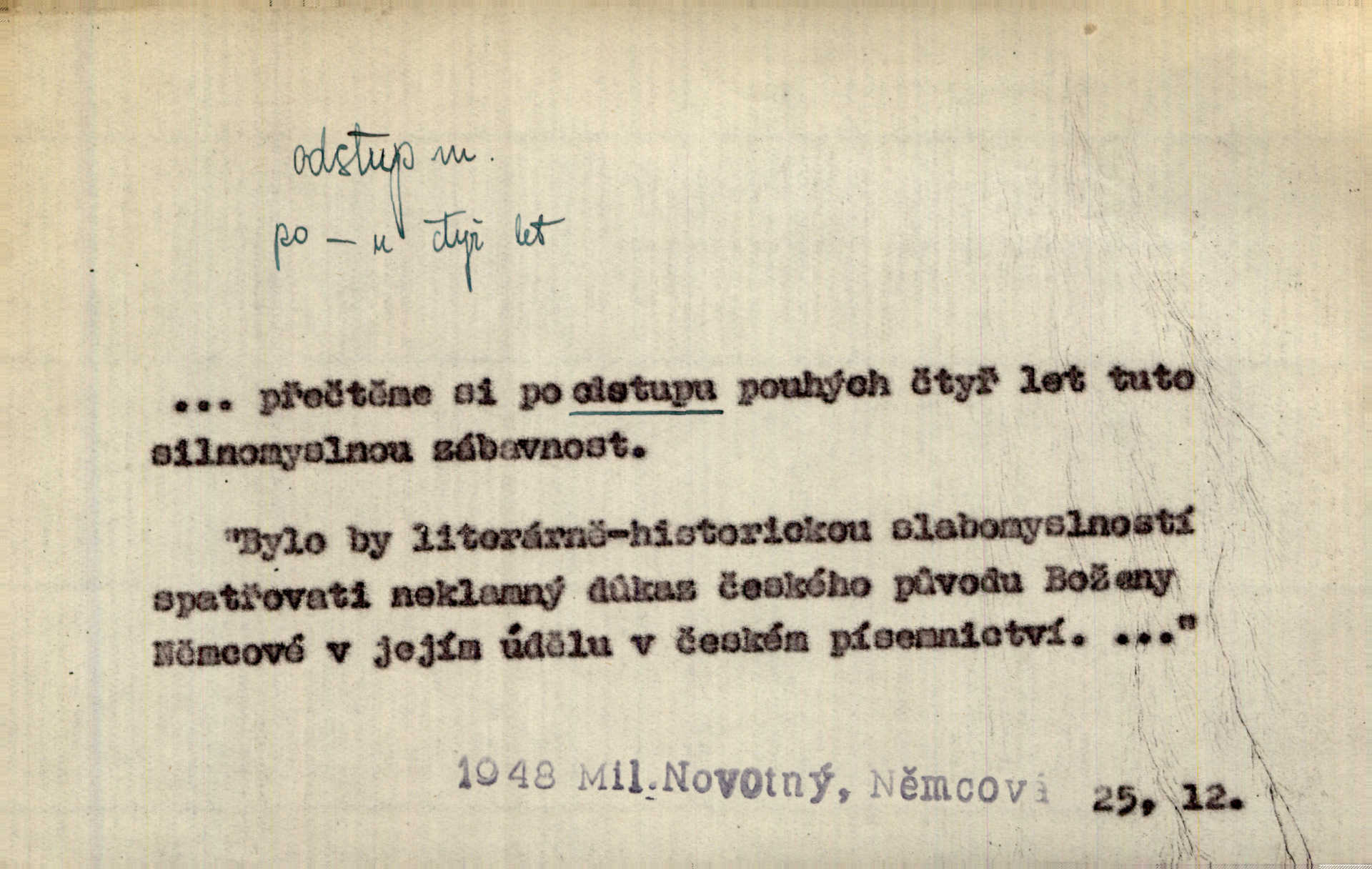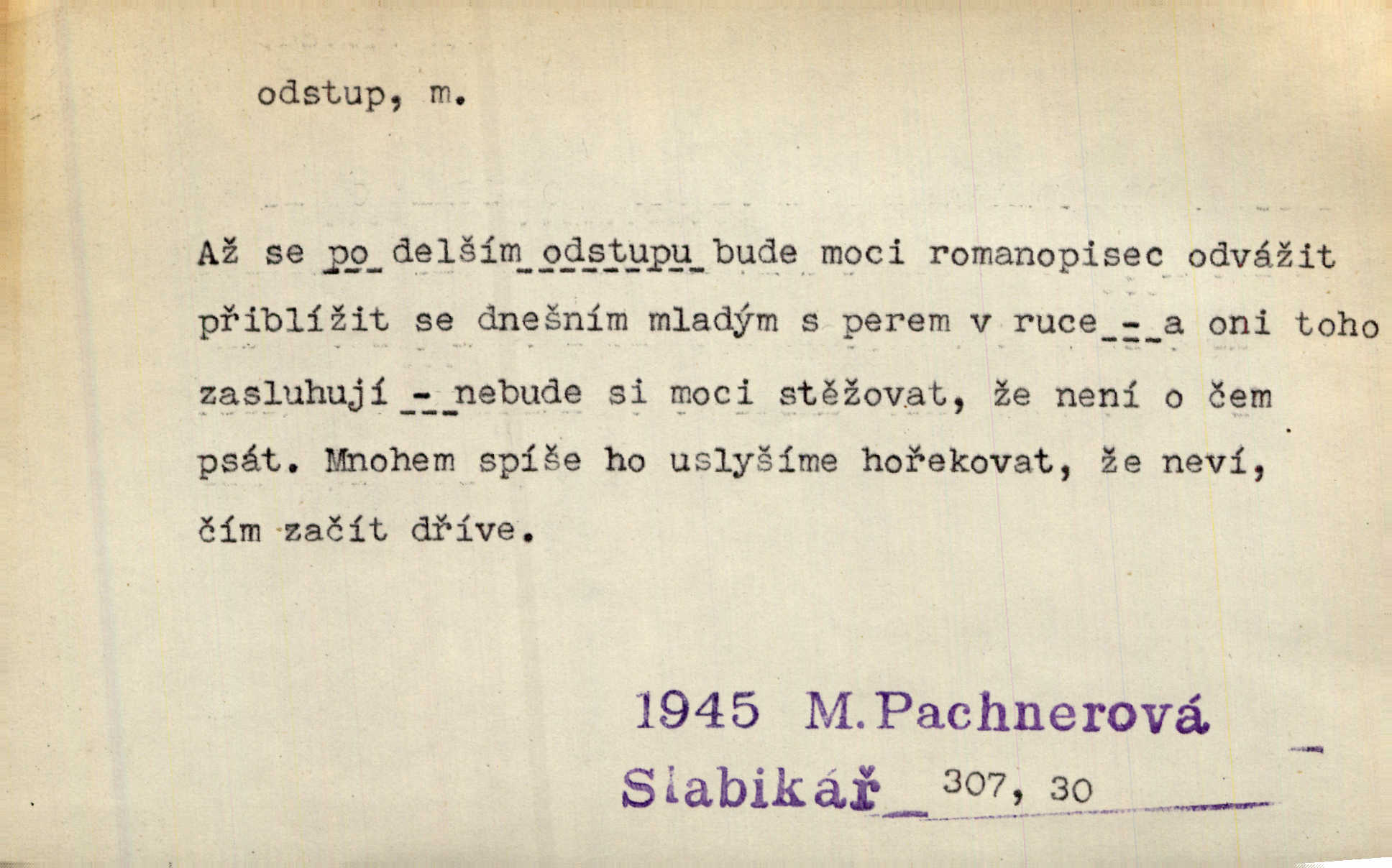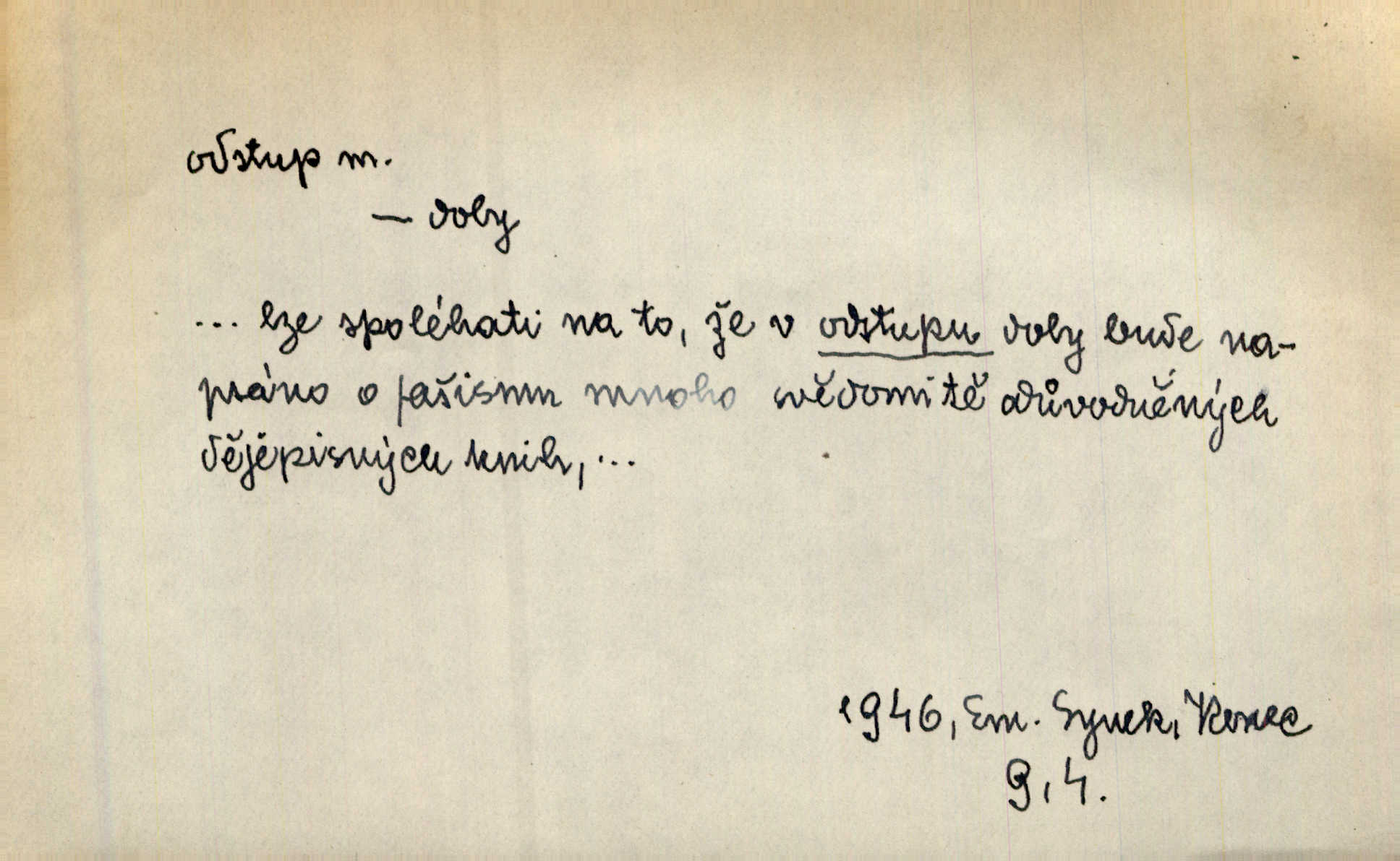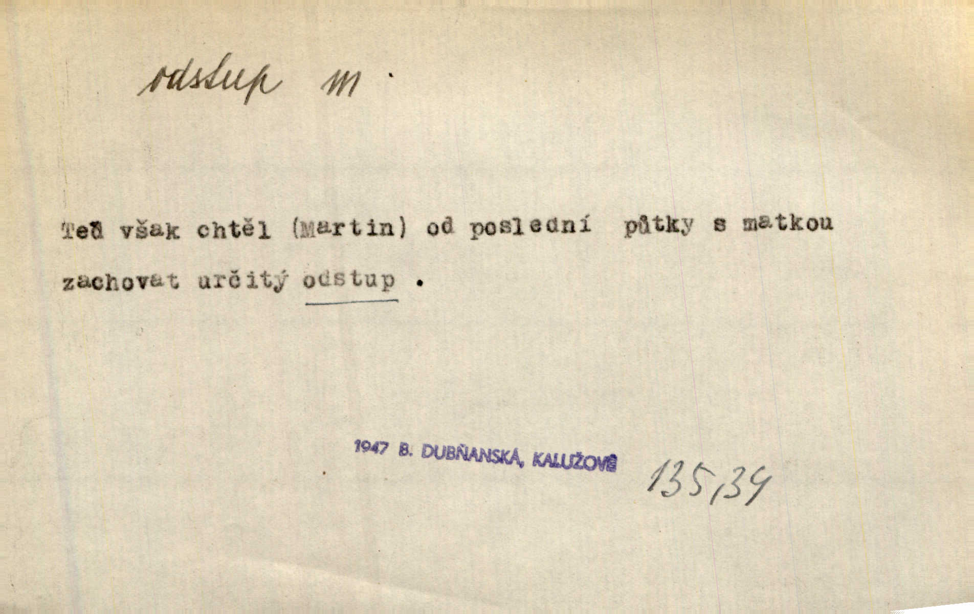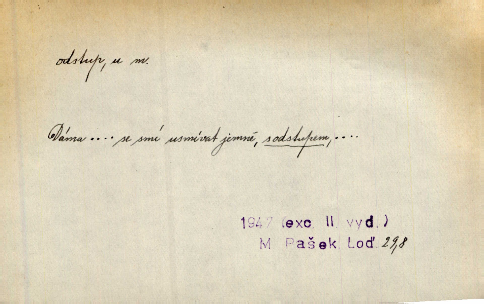 - odstup, -u m. odstoupení, odchod. Máš mít volný přístup i odstup. J. Malý. Uprostřed ní [vřavy] vstal, zapotácel se v odstupu od stolu. Vrba. Dozírali, jak se konal právě nástup a odstup dvou směn [pekařů]. Vach. Generace odcházející neví, kde je cesta k čestnému a zaslouženému odstupu odchodu (do nečinnosti). Kun. [Snaha Sigmundova,] aby lichého papeže přiměl k odstupu odstoupení z úřadu. Helf. Geol. pozvolný ústup moře s pevniny, regrese. D odstoupení na jistou vzdálenost; místní mezera. Na chodníku mezi sebou zachovávali odstup dvou kroků, jen tak, aby se slyšeli. Čap. Ch. Magická moc, která by mohla spoutat přesilu fysickou a držet ji na odstup. Šal. Všichni kolem stolu vstávali a snažili se v odstupu viděti jasněji [co je na obraze]. Kop. Šerm. vzdálení se krokem od soka. D časový interval, časová vzdálenost. Mezi ukončením [sněmovního] zasedání jednoho a zahájením druhého není téměř odstupu. Sobota. Postavy jejich [hrdinů] musely růst; teprve po smrti a po delším časovém odstupu. Hol. Jsou díla, která potřebují odstupu, aby jich velikost mohla být chápána. Mach. Souvěkovcům se obraz ten jevil ve světle zcela jiném než nám, z dalekého odstupu věc pozorujícím. Šus. D rozdíl mezi dvěma hodnotami. I tady [v socialismu] se ukáže jistý odstup mezi myšlenkou a skutečností. Přít. Úměrný odstup mezi služným. Plat. zák. D odměřené, chladné n. hrdé chování. [Syn, který se vrátil domů,] byl připraven na zvědavé otázky, ale polekal ho odstup všech stejně, jako podezřelá příchylnost dědova. Vrba. [Zeyer] dovedl si zachovávati odstup a krásné gesto samotářské. J. Kvap. Nadutost k služebnictvu a upřílišený odstup k úřednictvu povýšené chování. Vrba. Zachovával osobní odstup od tohoto mladého bouřliváka chladný odklon. Ben. D vystoupení z církve. [Tajni evangelíci] na faře svůj odstup ohlásili. Jir. D odchýlení, odklon. Daleko silnější odstup od revolucionismu jeví se později u Engelse. Čes. pol. Odstup od skutečnosti svádí [básníka] k jakémusi plošnému líčení vnějšího světa. Hrb. D vzdání se něčeho. Odstup nějaké části země cizině. Čes. pol. Znal dobře svého staršího syna, a proto nedovedl uvěřiti, že by jeho odstup z práv prvenství byl míněn jen tak prostně a bez kličky. Vrba.