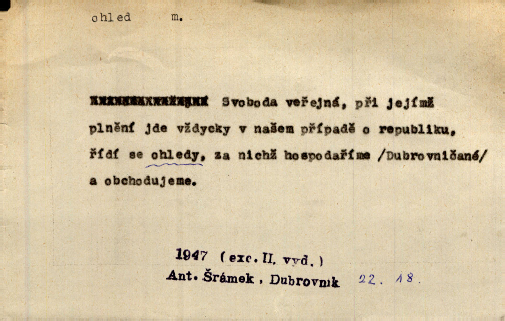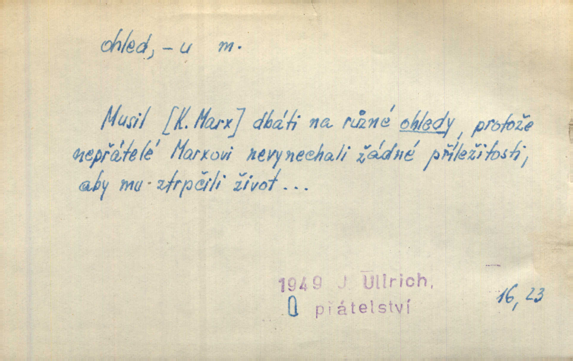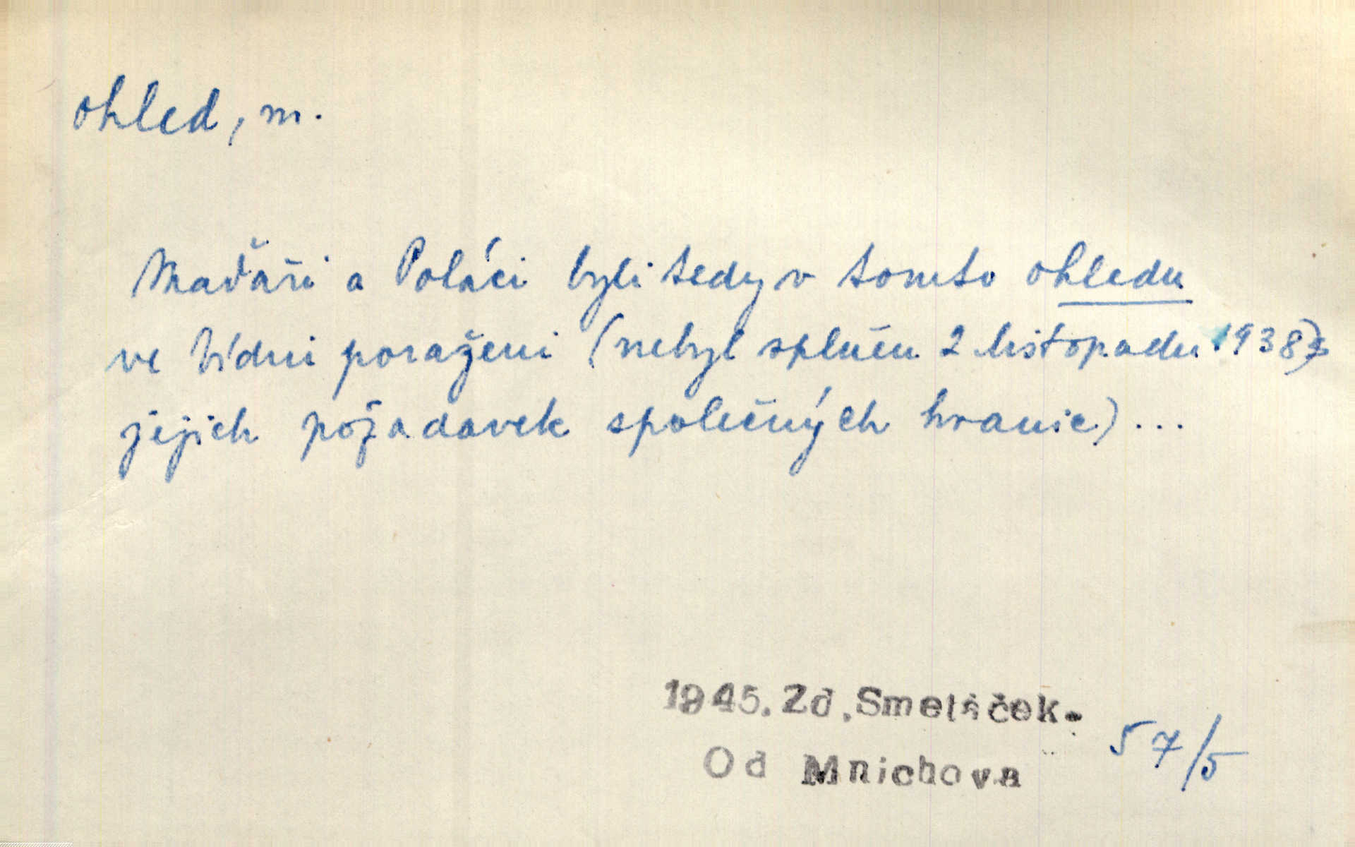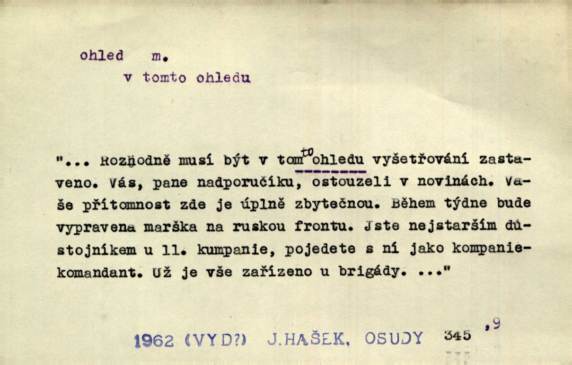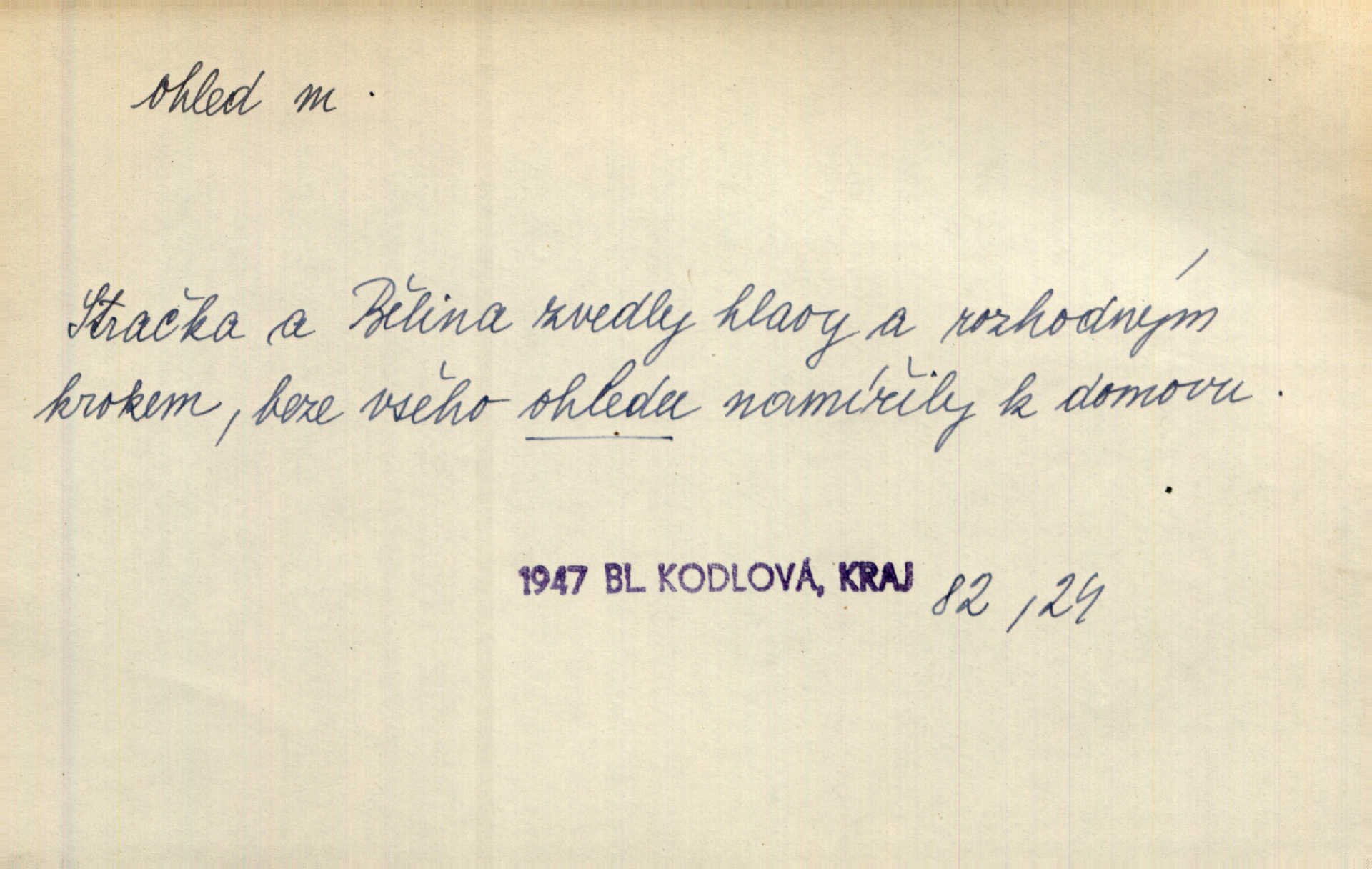 - ohled, -u m. zřetel k zájmu, potřebám, významu a pod. Výminkář nedořekl, snad s ohledem na Barušku. Rais. Budou [páni] přinuceni brát ohled na žádosti a potřeby lidu. Šmil. Nic ti nedali [rodiče], odbyli tě hůř než nějaký podruh, jaké tedy ohledy! Rais. Mám za svou povinnost mluviti o tak vážné věci zcela upřímně, bez obalu, bez ohledu. Bozd. Bylo potřebí člověka nevázaného ohledy ani k svým ani k cizím, aby pověděl své názory tak, jak je pověděl Chelčický. J. Vlč. Nezná společenských ohledů a ignoruje každou slušnost. Vrba. Odmítáme z právních ohledů nějaký čin, ale jako by se nechumelilo, přijímáme jeho důsledky. Dyk. Rozplakala se hlasitě, bez ohledu na to, kdo ji slyší. R. Svob. Zast. Jeho milost královská mu ohledem na zásluhy jeho rodu život daruje. Hál. Jitka se měla ohledem na slabé zdraví jen čtení, psaní a trochu počítání přiučiti. Svět. Ohledem na jeho posud zachovalé mravy odložilo se vyřknutí soudu. Tyl. Nejsi ještě dosti zkušený ohledem na ženské. Podl. D stránka, hledisko, s nichž se nějaká věc pozoruje, posuzuje. Dějiny národu českého jsou v nejednom ohledu poučnější a zajímavější nad dějiny jiných národův. Pal. V ohledu věrnosti žádnému mužskému co věřiti není. Sab. Rozumec je muž v každém ohledu ctihodný. Šmil. Bohatýři byli nejlepšími představiteli národa v ohledu duševném i mravném. Hol. V ohledu politickém byli [adamité] smýšlení republikánského. Jir. V ohledu látkovém byly nyní [za doby „Lumíra“] veškeré doby, veškeré země, veškeré národy, veškeré kultury stejně vítány. Arne N. D ohledy (dial. ohlady), -ů ohledávání, prohlídka. Rychtář přišel na ohledy, aby věznici k smrti souzené v krmích nebylo podáno jedu. Win. Společně se vydáme na ohledy některých těch idejí západnických. Kos. Pojedu dříve do pole než na ohledy za nevěstou námluvy. Jir. Přijdi [děvče] na ohledy, budu v loďce sám. Heyd. Vydal jsem se na ohledy, k panně pěkné na námluvy. Hol. Přijížděli králové z dalekých zemí k ní [princezně] na ohlady, ale ona žádného nechtěla. Něm. Mysl. ohledy zvěře přihlížení při lovu k velikosti zvěře, rychlosti letu a pod. D Arch. úmysl, záměr, cíl, účel. Vidělť škaredé tváře a patrný ohled, jen aby jej vytiskli. Tyl. Opustila jsi dům otcovský z ohledů zrádných? Tyl. Ničemníci kloní se až k zemi, by špatné své ohledy snáze v skutek přivesti mohli. Čel.