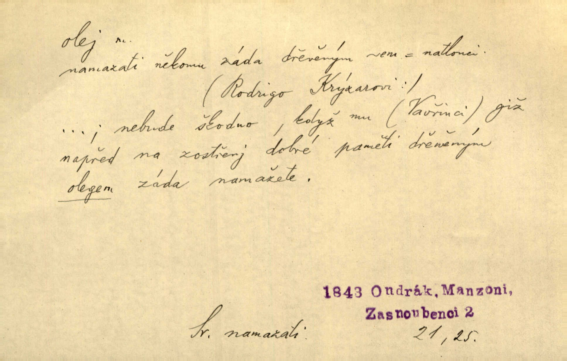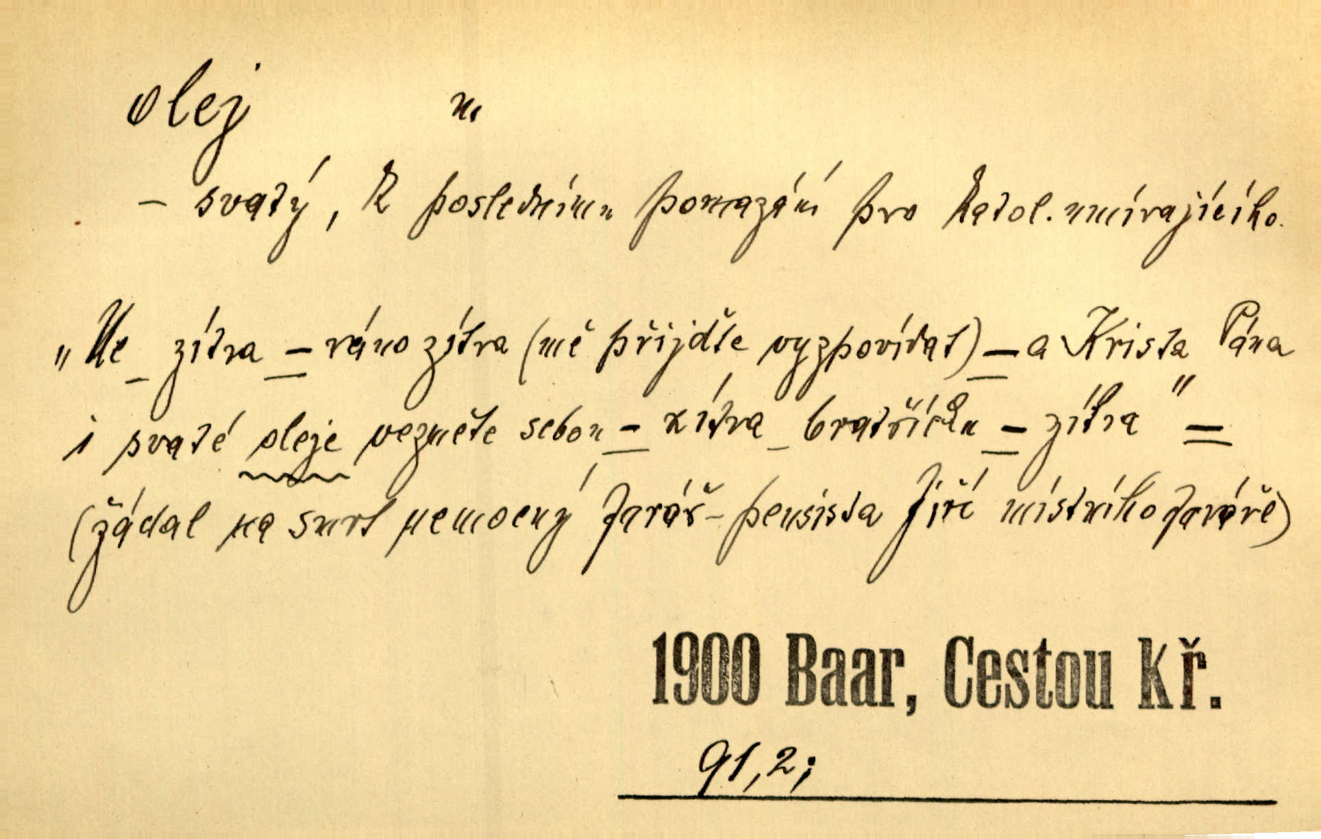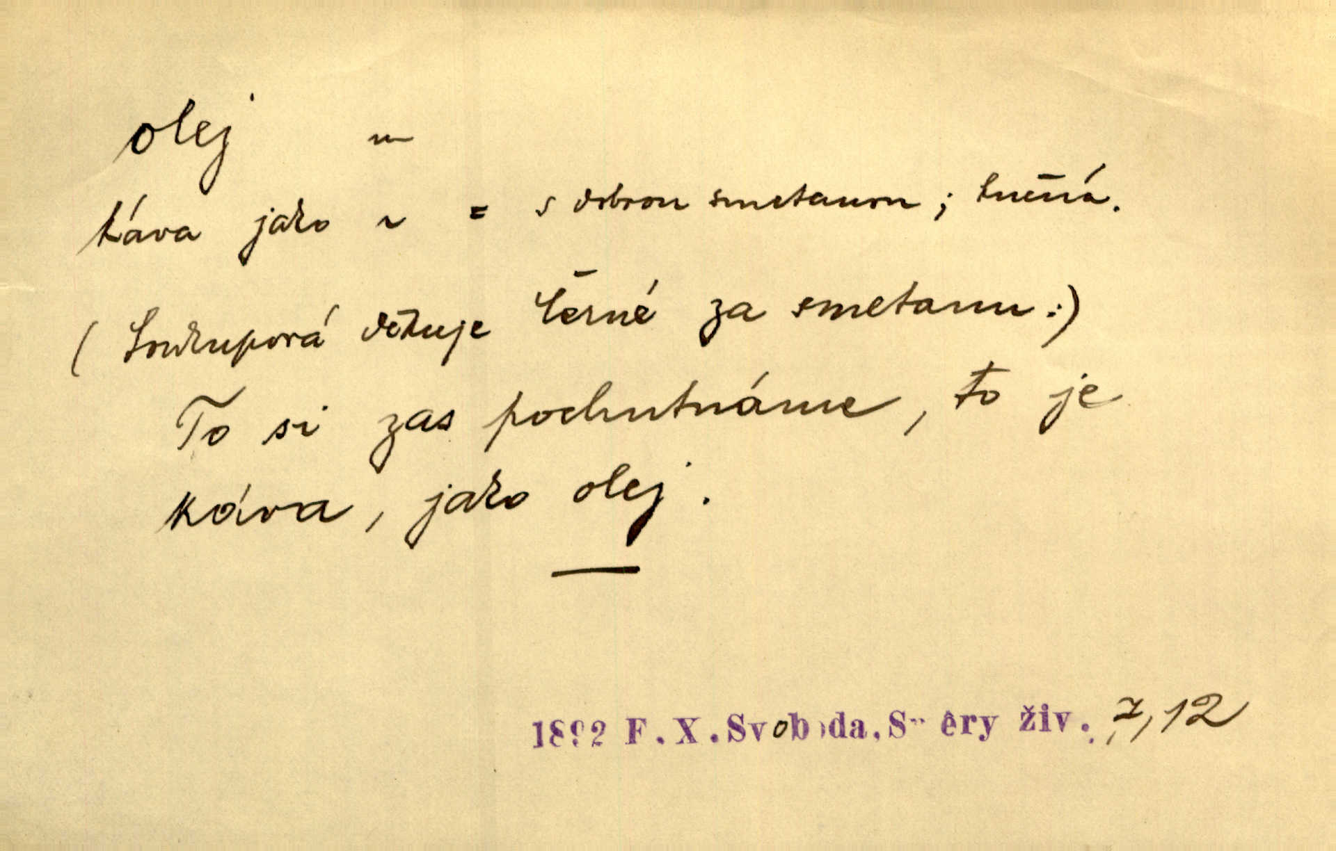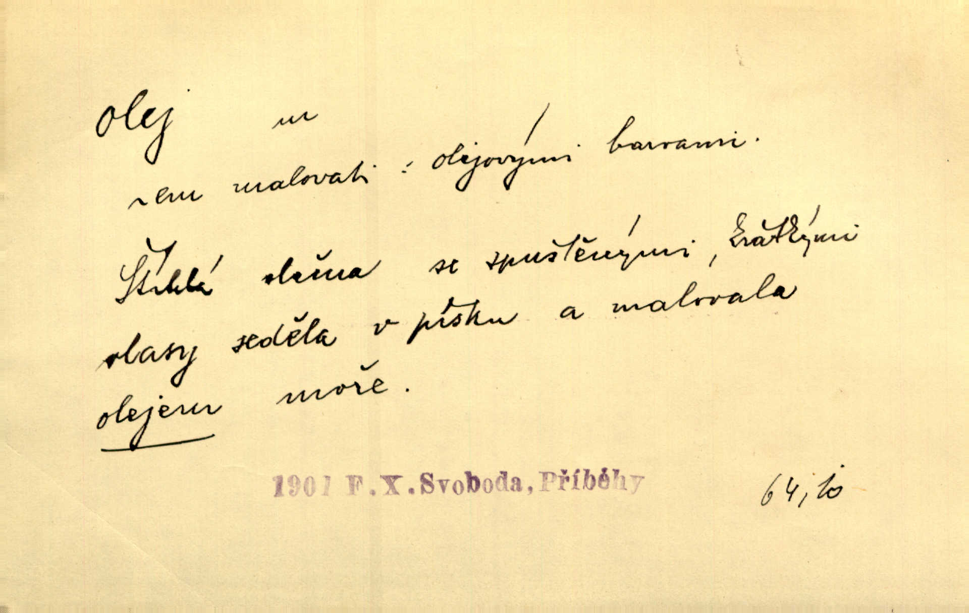 - olej, -e m. vazká látka mastné povahy, kapalná za obyčejné teploty a mazlavá. To si zas pochutnáme, to je káva, jako olej s dobrou smetanou. Svob. Ustál. sp. Kdykoliv básník nebo umělec začne provozovat takovéto svéráznictví, je patrné, že mu došel olej nastal u něho úpadek. Šal. Chlácholil sedláky, domkáře a podruhy, aby se do sebe nedali, ale tím lil olej do ohně a ještě víc je podráždil. Prav. Byl rozvážný a připomenul si, že by jediné nepravé, neopatrné slovo bylo olejem do plamene. Jir. Po čtyřnedělním vyslýchání vyšla pravda na světlo jak olej na vodu. Herb. Vidím, že z kamene oleje nevytlačím neoblomím necitelného. Šmil. Nebude škodno, když mu již napřed na zostření dobré paměti dřevěným olejem záda namažete napráskáte. Ondrák. Dejte se v oleji malovati každý v životní velikosti olejomalbou. Podl. To bude má první práce v oleji pro svět v olejových barvách. Jir. Na stěně visela olejem malovaná podobizna babičky. R. Svob. D olejomalba. Zajímavé je srovnání oleje [Jos. Čapka] „Chlapec se svítilnou“ se stejnojmennou litografií. K. Teige.