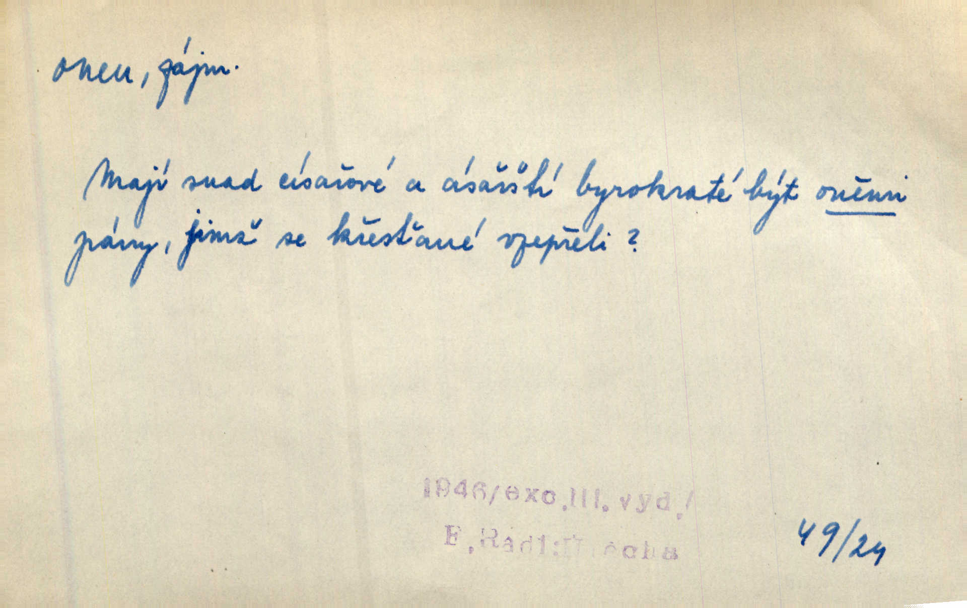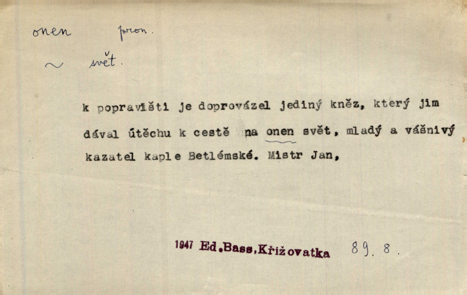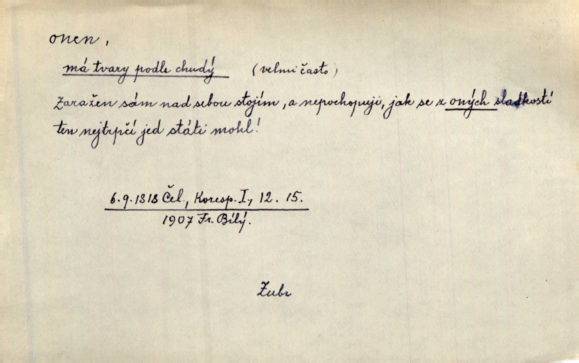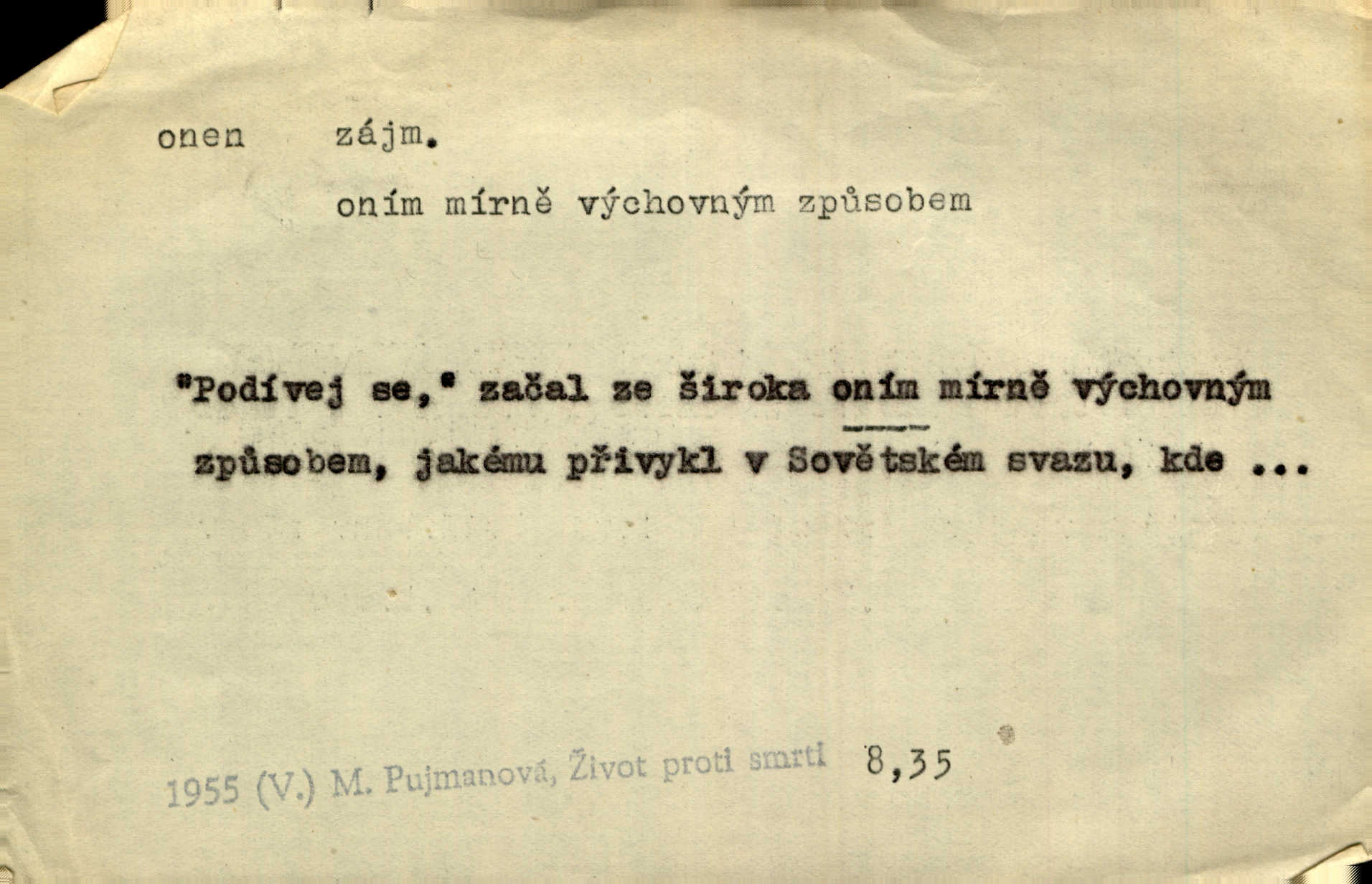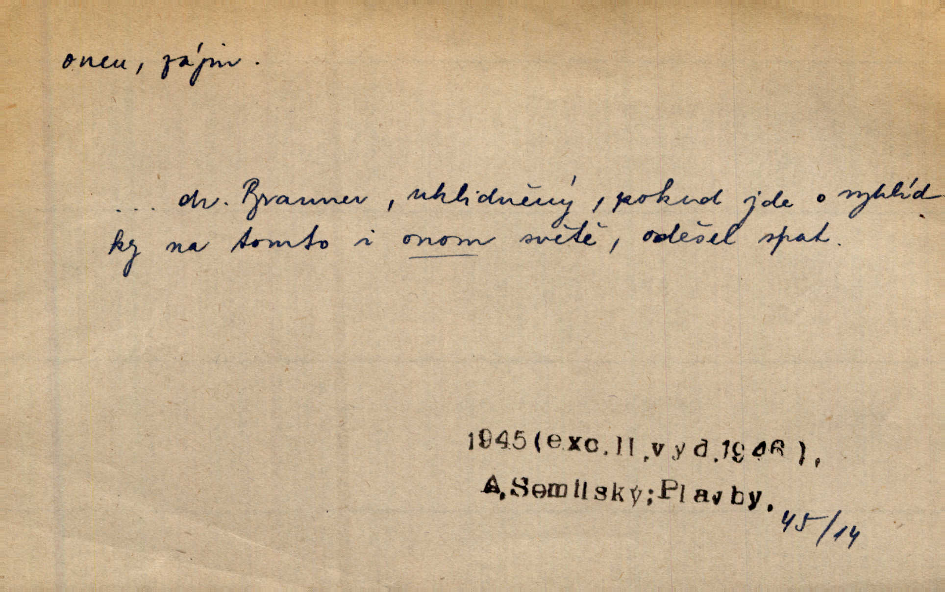 - onen, ona, ono (zast. onenno, onano, onono) zájm. ukaz., jež ukazuje na vzdálenější ze dvou osob n. věcí. Část lomenice pod tímto příčným prknem byla prostě obílena, ona však nad ním všecka omalována. Jir. Ve hrůze očekával jsem, které dvéře se nyní otevrou, zda veliké, vedoucí bezpochyby do nádvoří, aneb ony menší, patrně ke schodům služebnictva. Čap. Ch. Onano zoufale nešťastná [láska Vondrejcova] nebyla k smrti, kdežto tahle [láska Annina]‚ jež nezůstavila žádného přání nesplněného, Bůhví že ano! Čap. Ch. Měl chvíle, kdy se cítil už více na onom než na tomto světě mrtev. Zey. Odešel na onen svět zemřel. Jir. D ukazuje na druhou ze dvou osob n. věcí ve výrazech vyjadřujících střídání ve spojení ten-onen, tento-onen jeden-druhý. Mnozí křesťané tak se v chrámě chovají, jakoby chrám byl hospoda. Tato sem přichází, aby se ukázala; onen, aby viděl. Puchm. [Paní] všímala si kde jaké maličkosti, časem ukazujíc synovi rukou hned v tu hned v onu stranu. Herb. City jeho houpaly se posud jako na váze brzy v tu, brzy v onu stranu. Šmil. Truhlice byla brzo u toho, brzo u onoho rychtáře v úkrytu. Jir. Mlčky postál s otcem, prohlížel to i ono, poklepal sem tam hůlečkou. Herb. Mluvili o tom i onom o všeličems. Šmil. D ten onen sem tam někdo, leckdo. Ten onen, ta ona na ně i pokřikli. Jir. Načíná [chemik] laboratorní pokusy s tím oním předpokládaným sloučením hmot, ale pokusy se nedaří. K. Čap. Každou chvíli se trefovalo, že mne ten onen potřeboval. Kos. D ukazuje na osobu n. věc, o které byla již řeč, která je známá n. časově vzdálená. Bude hůře osamocen než onino dva staří lidé, kteří vůbec dětí neměli. Klost. Portýr se uklonil s onou úsměvnou pokorou, na kterou se za zpropitné služebnictvo hostinců vždy sníží. Ner. Kolikrát vykonalo již ono staré kyvadlo svou jednotvárnou obchůzku. Čech. Vás posavad věrné potěšuji potěšením míru, kterýmž potěšil nás převěrný náš Pán oněmino svatými slovy svými. Jir. Kdes oné tmavé noci byl, a co za řízení tě volalo z domu? Klicp. Já, maje předstoupiti před soudnou stolici onoho nad hvězdami, nechci obtížiti duši svou podílem na krvi prolité. J. z Hv. Za onoho času byl hostinec „u zeleného stromu“ v Praze vyhlášený v tehdejší době. Sab. Za onoho času umíval jsem dudáka a černého Petra, ale teď bych snad ani to nesvedl kdysi dávno. Rais. Kořalky líznete leda za onoho času zřídka kdy. Rais. Rozmluva mezi Rojerem a Evelinou je jako váhavé, bezcílné tahání, styl z roku onoho. Vodák. Lid. Hezky jsme se s panímámou v onen týden smluvily v kostele minulý týden. Rais. D Zast. na slovo vzatý, slavný, proslulý. Konstituce jest jen provedení ve státu známé oné zásady vší spravedlnosti: čeho sobě nechceš, jinému nečiň. Pal. Povstal Nestor libomluvný, onen hlasitý z Pylonu řečník. J. Nej.