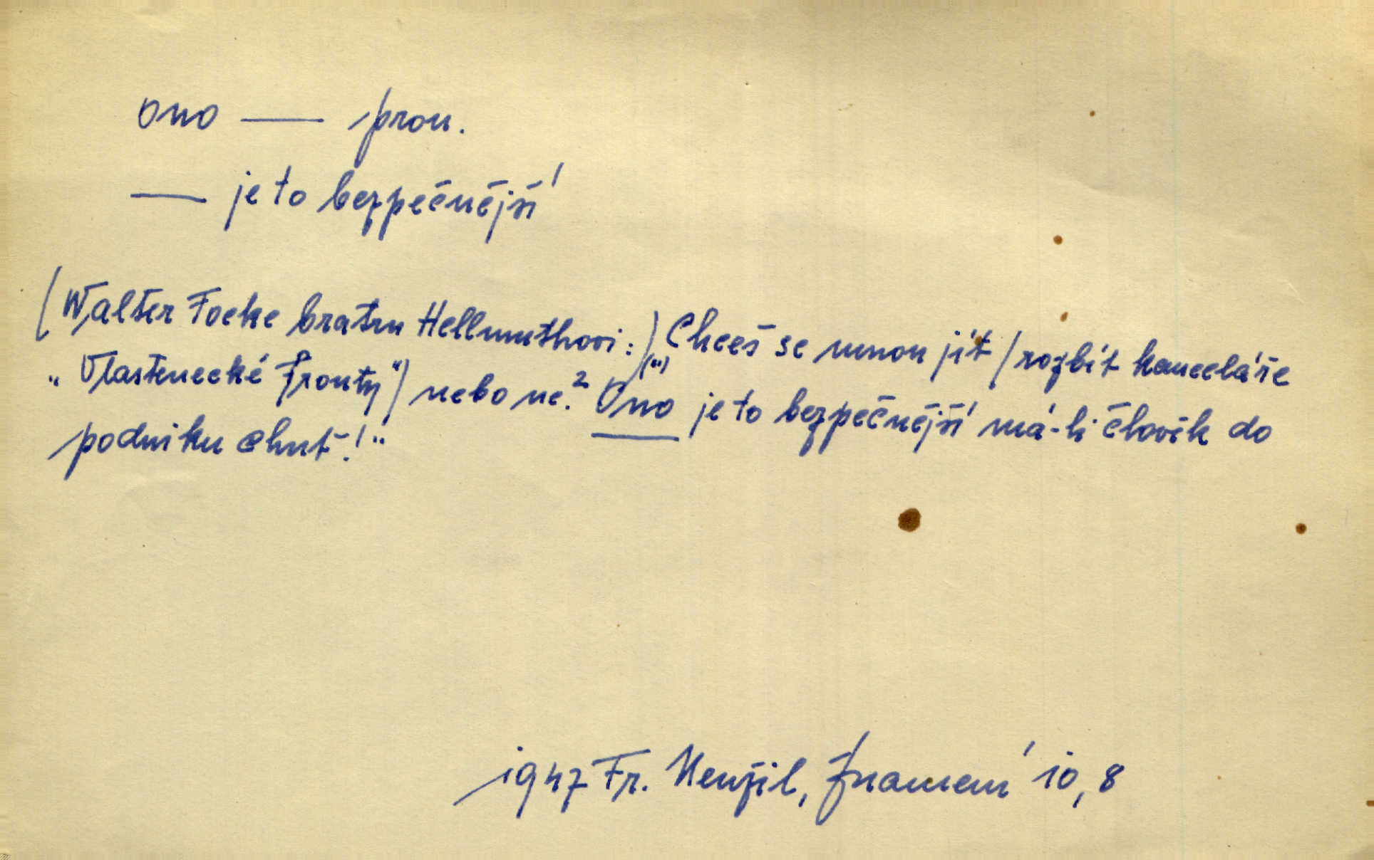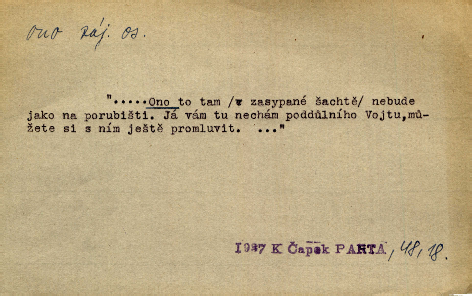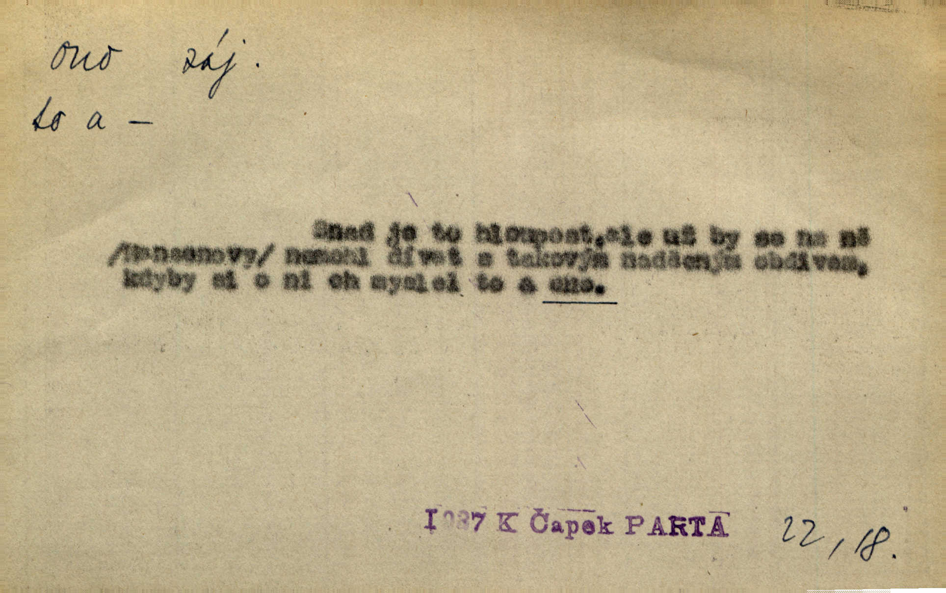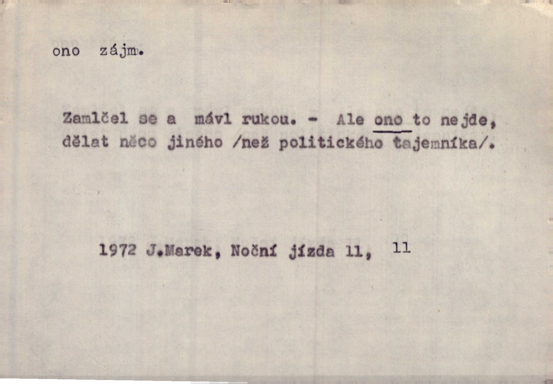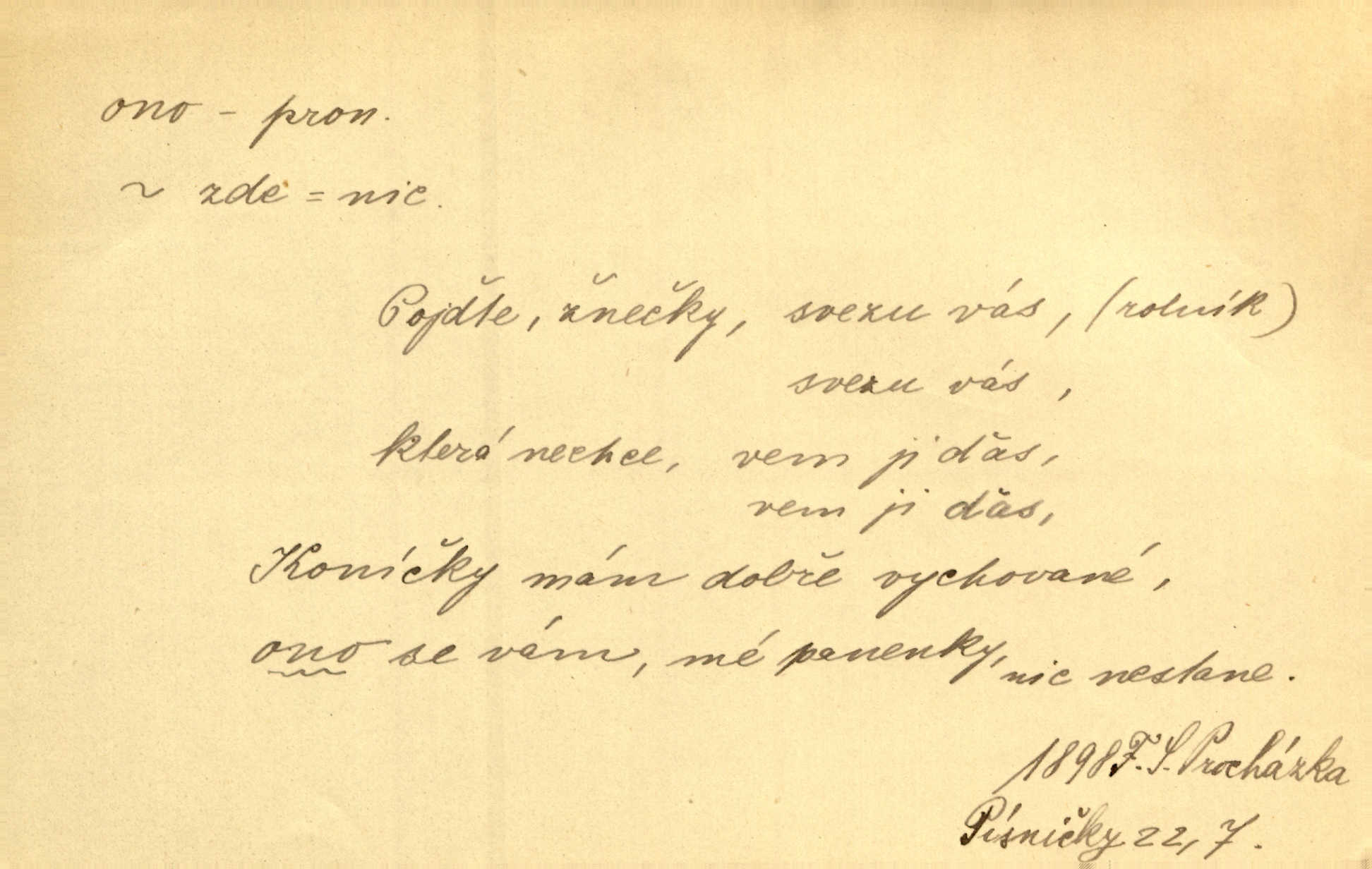 - onen, ona, ono (zast. onenno, onano, onono) zájm. ukaz., jež ukazuje na vzdálenější ze dvou osob n. věcí. Část lomenice pod tímto příčným prknem byla prostě obílena, ona však nad ním všecka omalována. Jir. Ve hrůze očekával jsem, které dvéře se nyní otevrou, zda veliké, vedoucí bezpochyby do nádvoří, aneb ony menší, patrně ke schodům služebnictva. Čap. Ch. Onano zoufale nešťastná [láska Vondrejcova] nebyla k smrti, kdežto tahle [láska Annina]‚ jež nezůstavila žádného přání nesplněného, Bůhví že ano! Čap. Ch. Měl chvíle, kdy se cítil už více na onom než na tomto světě mrtev. Zey. Odešel na onen svět zemřel. Jir. D ukazuje na druhou ze dvou osob n. věcí ve výrazech vyjadřujících střídání ve spojení ten-onen, tento-onen jeden-druhý. Mnozí křesťané tak se v chrámě chovají, jakoby chrám byl hospoda. Tato sem přichází, aby se ukázala; onen, aby viděl. Puchm. [Paní] všímala si kde jaké maličkosti, časem ukazujíc synovi rukou hned v tu hned v onu stranu. Herb. City jeho houpaly se posud jako na váze brzy v tu, brzy v onu stranu. Šmil. Truhlice byla brzo u toho, brzo u onoho rychtáře v úkrytu. Jir. Mlčky postál s otcem, prohlížel to i ono, poklepal sem tam hůlečkou. Herb. Mluvili o tom i onom o všeličems. Šmil. D ten onen sem tam někdo, leckdo. Ten onen, ta ona na ně i pokřikli. Jir. Načíná [chemik] laboratorní pokusy s tím oním předpokládaným sloučením hmot, ale pokusy se nedaří. K. Čap. Každou chvíli se trefovalo, že mne ten onen potřeboval. Kos. D ukazuje na osobu n. věc, o které byla již řeč, která je známá n. časově vzdálená. Bude hůře osamocen než onino dva staří lidé, kteří vůbec dětí neměli. Klost. Portýr se uklonil s onou úsměvnou pokorou, na kterou se za zpropitné služebnictvo hostinců vždy sníží. Ner. Kolikrát vykonalo již ono staré kyvadlo svou jednotvárnou obchůzku. Čech. Vás posavad věrné potěšuji potěšením míru, kterýmž potěšil nás převěrný náš Pán oněmino svatými slovy svými. Jir. Kdes oné tmavé noci byl, a co za řízení tě volalo z domu? Klicp. Já, maje předstoupiti před soudnou stolici onoho nad hvězdami, nechci obtížiti duši svou podílem na krvi prolité. J. z Hv. Za onoho času byl hostinec „u zeleného stromu“ v Praze vyhlášený v tehdejší době. Sab. Za onoho času umíval jsem dudáka a černého Petra, ale teď bych snad ani to nesvedl kdysi dávno. Rais. Kořalky líznete leda za onoho času zřídka kdy. Rais. Rozmluva mezi Rojerem a Evelinou je jako váhavé, bezcílné tahání, styl z roku onoho. Vodák. Lid. Hezky jsme se s panímámou v onen týden smluvily v kostele minulý týden. Rais. D Zast. na slovo vzatý, slavný, proslulý. Konstituce jest jen provedení ve státu známé oné zásady vší spravedlnosti: čeho sobě nechceš, jinému nečiň. Pal. Povstal Nestor libomluvný, onen hlasitý z Pylonu řečník. J. Nej.