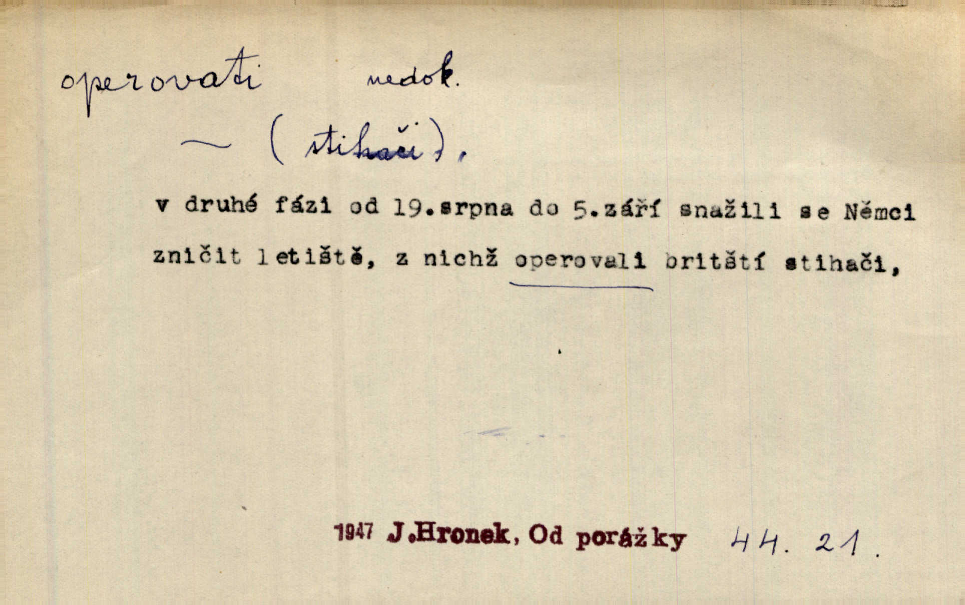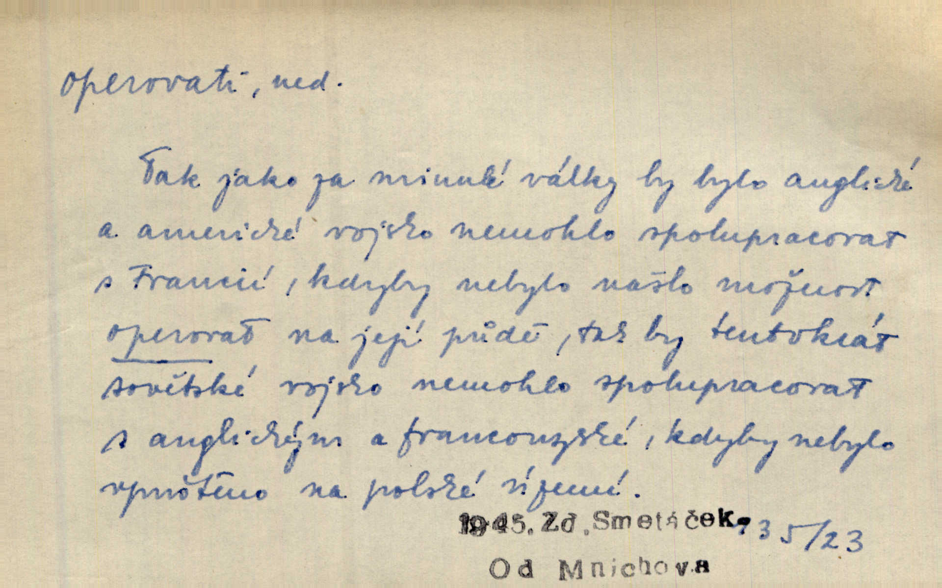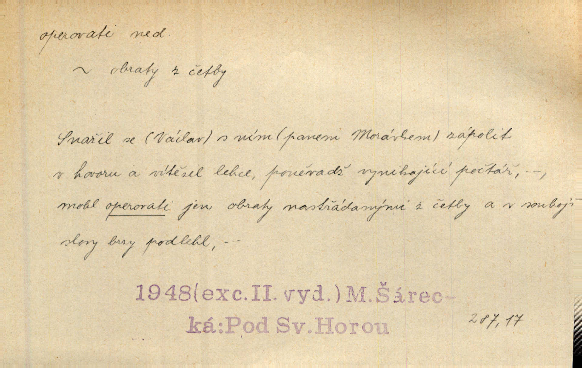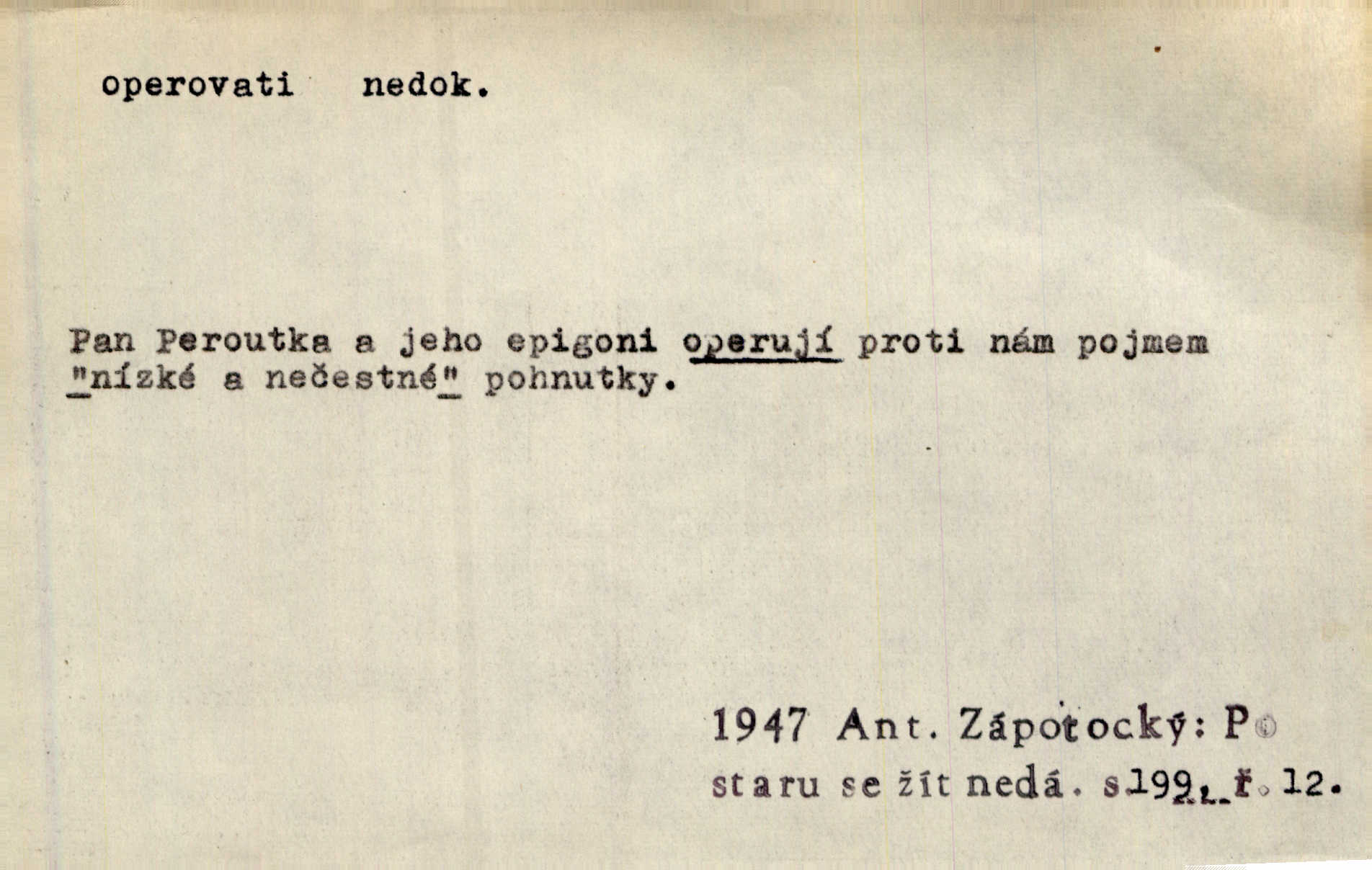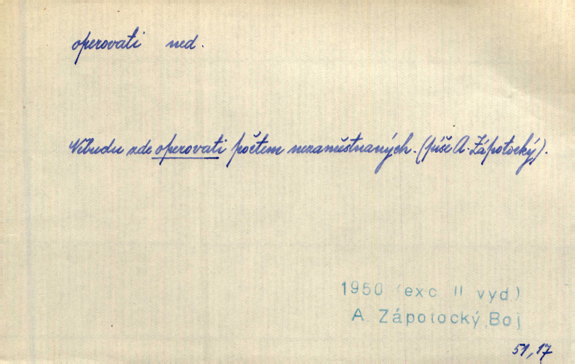 - operovati ned. (čím, s čím) soustavně pracovati s něčím, používati něčeho, působiti něčím. Jestliže v diskusi byla formulována námitka, že naše politické stranictví je už de fakto stavovské, pak se zde operovalo zase jen kulatým a nepřesným slovem. Přít. Zná [básník] chladně operovat kouzlem slohové zkratky. Sez. S tímto devaterem uměn operuje valná většina esthetiků idealistických. Hostin. Na novém jevišti operováno nyní taky „světelnými efekty“. Herrm. Skoro všechny ty projevy operují několika hesly. Z. Nej. Schönberg zná vedle konsonantních akordů z kvint a tercií také souzvuky zbudované z kvart na sebe navršených, s nimiž operuje zcela zřetelně jako s konsonantními. Smet. Četli jsme statistiku operující čísly podezřele ilusorními. Přít. Operuje se [u marxistů] politicky a massami co možná velkými. Mas. D prováděti operace (obchodní, vojenské a p.). Snad tedy vyhraju v kartách. Nebo budu operovati na burse. Kam. [Marradas] se spojil s hlavním vojskem, aby se brzy zase od něho oddělil a v jižních Čechách operoval. Mik. Fin. nakupovati. D (koho) lék. prováděti (na někom) operaci. Přen. Adujev operuje jej [synovce] ze všech těchto zbytečností, které podle jeho mínění znemožňují úředníku, aby to někam ve světě přivedl zbavuje. Šal.