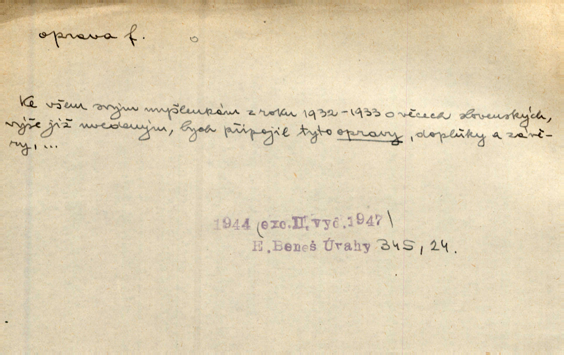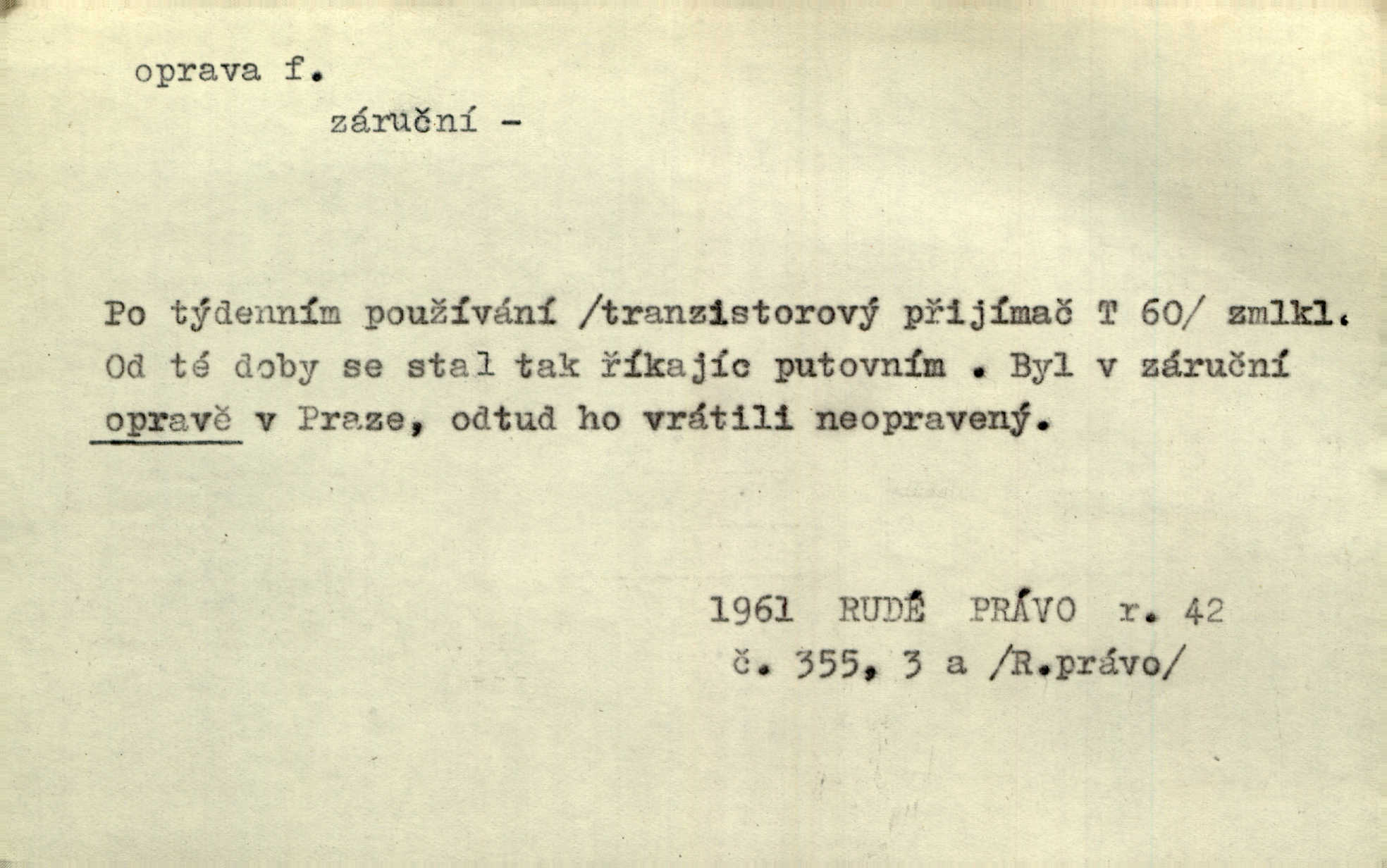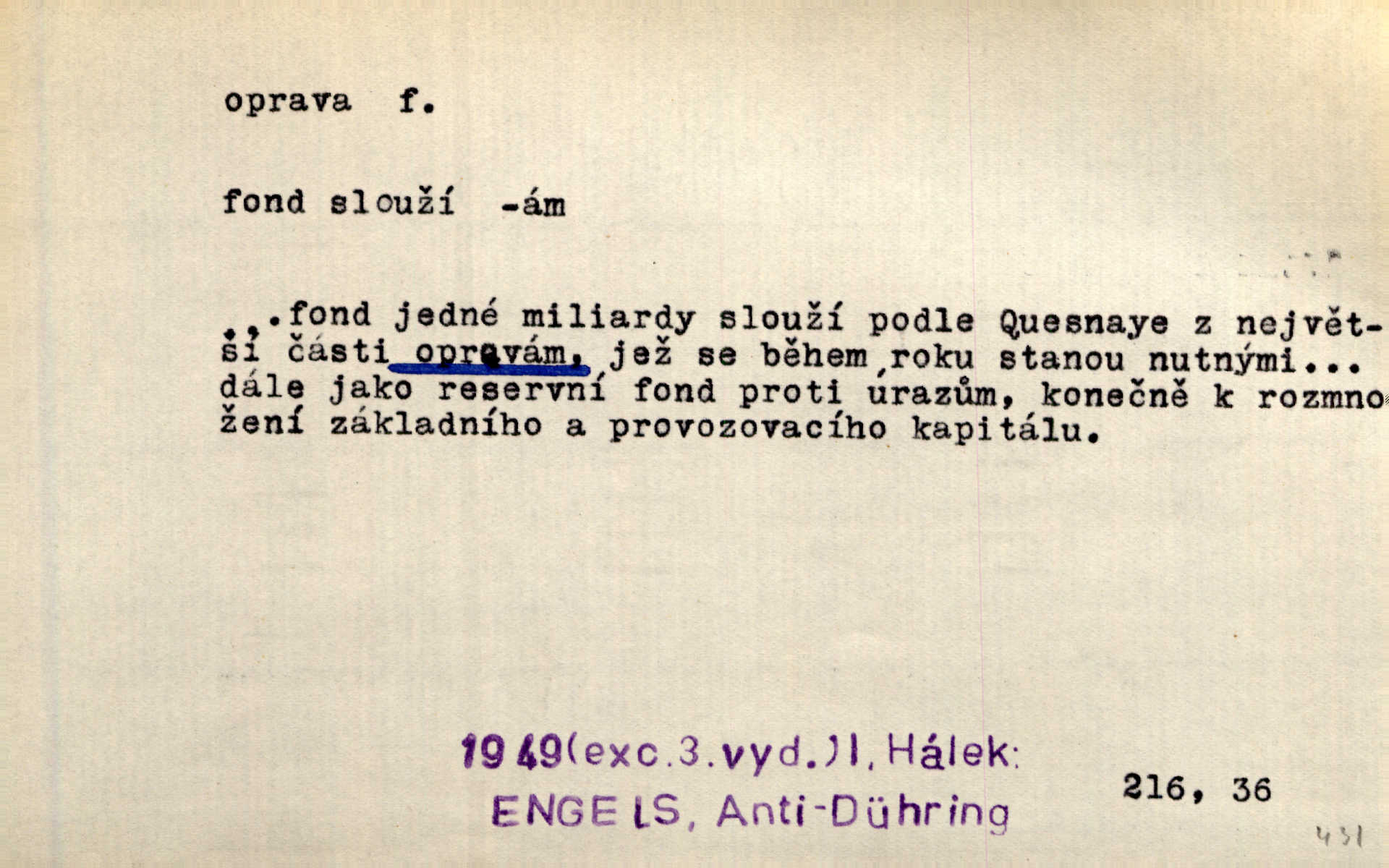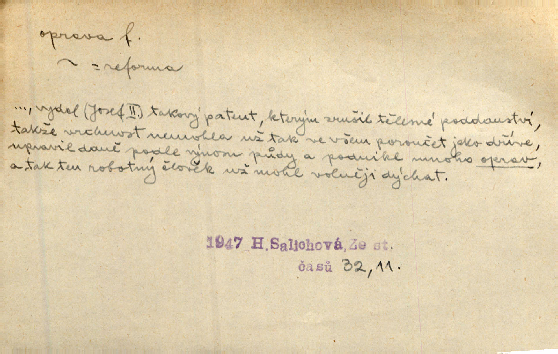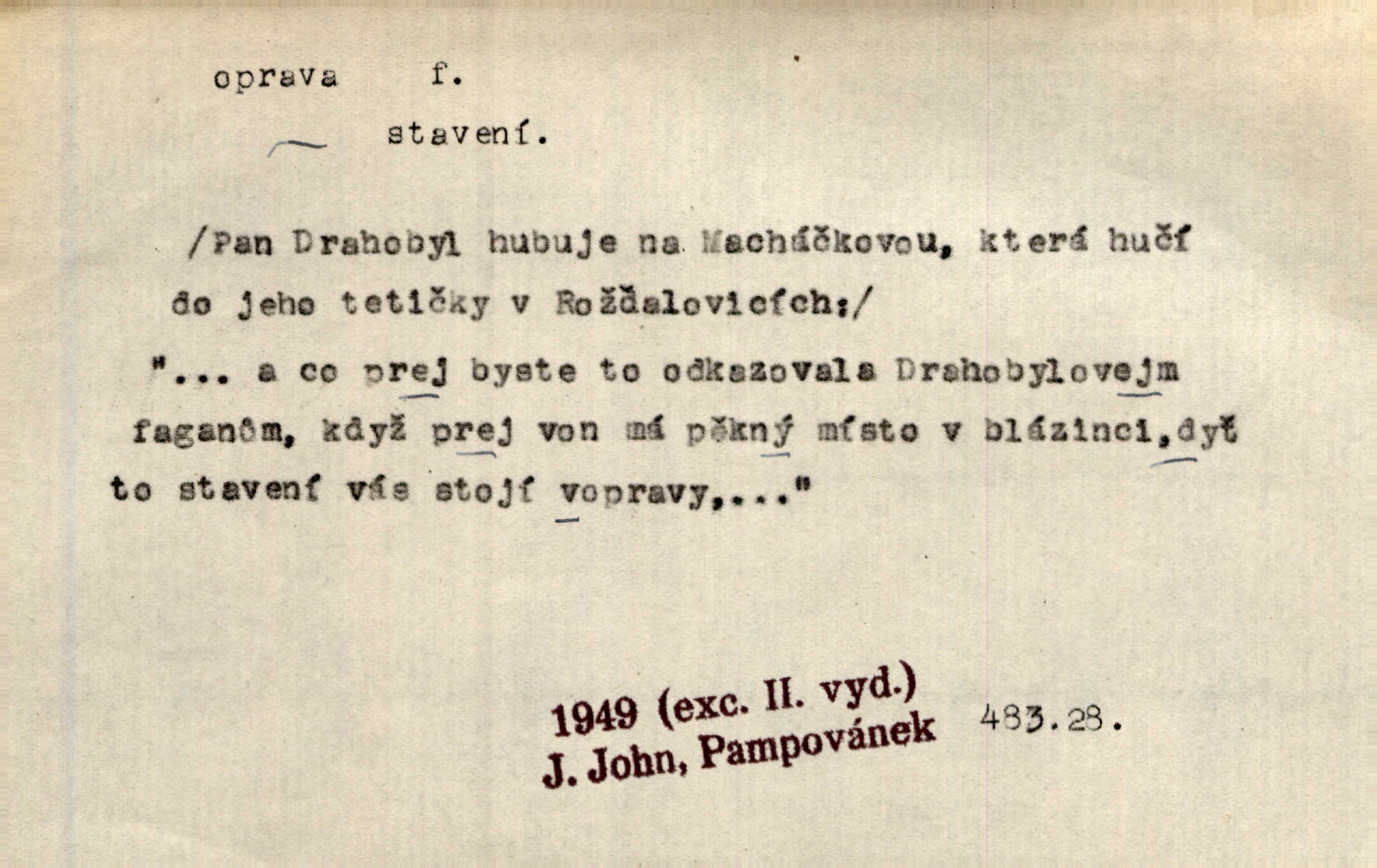 - oprava, -y f. napravování, napravení, odstraňování, odstranění chyb, vad něčeho. Vešel [do tiskárny] hoch s opravami „Věčného světla“, a položiv je na nejbližší stůl, odešel. Čap. Ch. Škol. opravná zkouška po prázdninách, reparát. Krátce před r. 1860 propadli jsme [s přítelem] ve škole eklatantně, že na tak zvanou „opravu“ po prázdninách nebylo možno ani pomysliti. Arb. Oprava úloh. Voj. (při střelbě z děl) povel k úpravě dřívějších palebných prvků; oprava směru letounu úhel, o který je nutno kurs letounu opravit vzhledem k větru, aby se pohyboval v zamýšlené dráze. Práv. tisková oprava uveřejnění správného znění nějaké skutečnosti, jejímž předchozím uveřejněním se cítil někdo dotčen. Mat. úprava výsledku při počítání s čísly neúplnými, aby byl co možná přesný. D uvedení něčeho poškozeného do bývalého stavu, obnovení. [Dům] je starý a oprava by více stála, než co by za něj dali. Jir. Se zednickým mistrem vyjednal pořádnou opravu [domu]. Střechu pobili nově, všude nakladli nových podlah. Rais. [Kostel] pozdějšími opravami byl hrubě poškozen. Jir. D změna, úprava mající něco zlepšiti, zdokonaliti. Nutnost opravy [své hry] mohl uznati sám při prvním provozování. Ner. Rysy toho náměstíčka se urovnaly rozličnými opravami. Čech. Tetička Urbanová měla svátečné černé šaty ze starého těžkého atlasu, které již po dvacet let různými opravami přizpůsobovala „duchu času“. Herrm. Bylo to právě na statcích Ostrovínských, kde se nejprvé mnohé opravy i nové zvyky zaváděti počaly. I. Klicp. D náprava, reforma (veřejných zřízení). Milič první jal se směle hlásati, jak je nutno opravy v církvi. Jir. Jednu chvíli existoval plán předložit moderní pronikavou volební opravu. Mach. D Hist. právo ochranné a obranné nad kláštery vznesené na zemské pány, zahrnující v sobě i pravomoc nad poddanými.