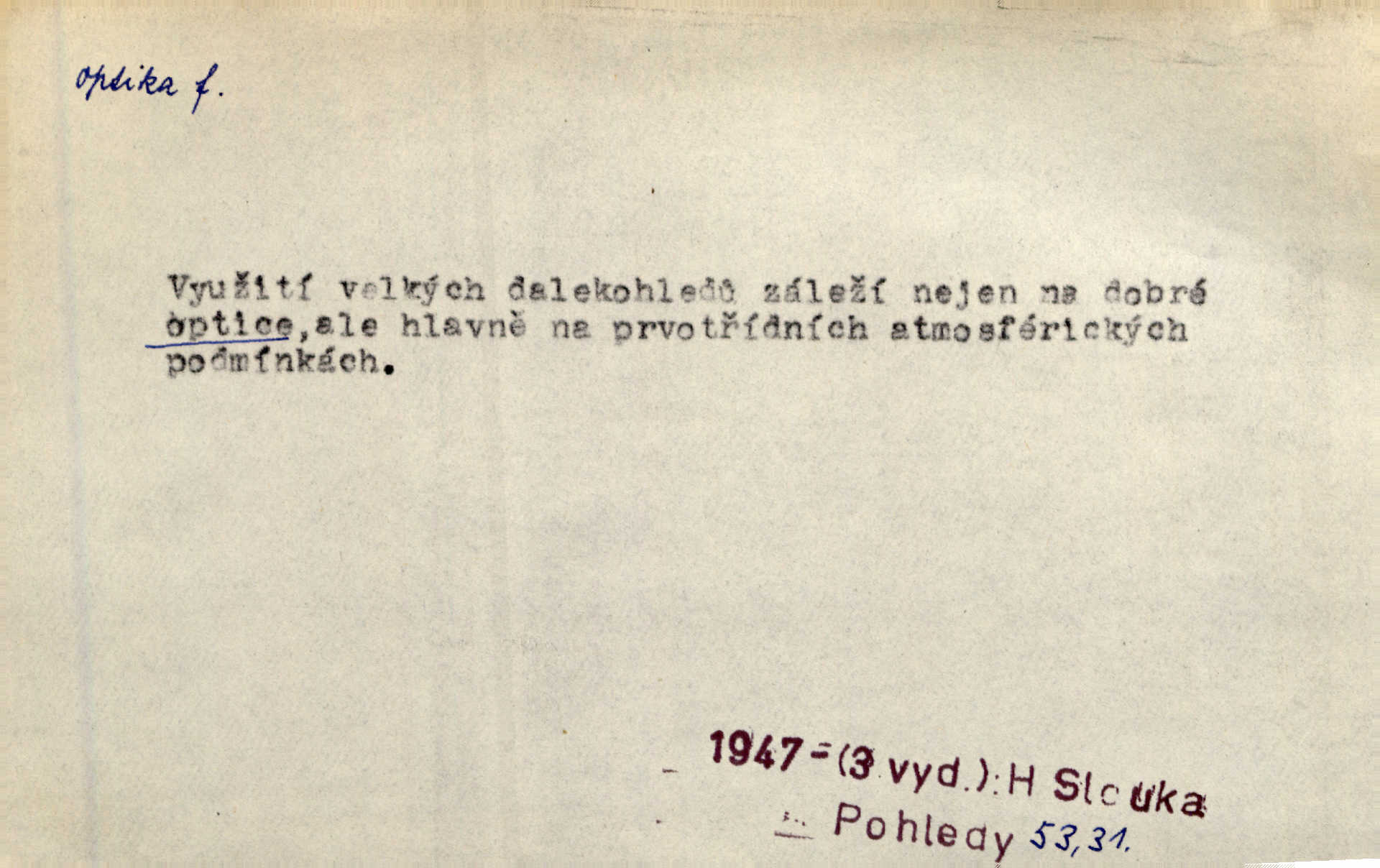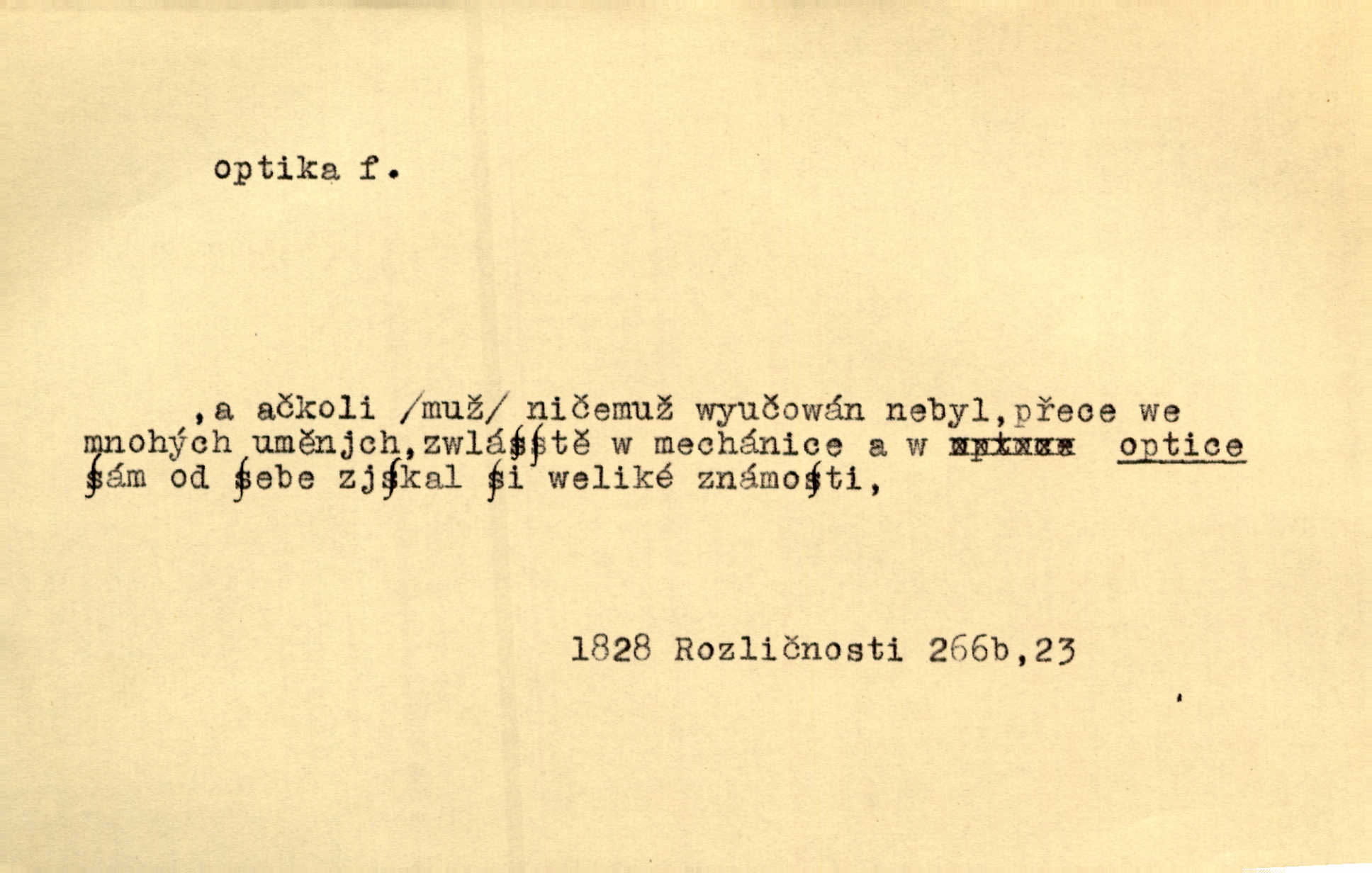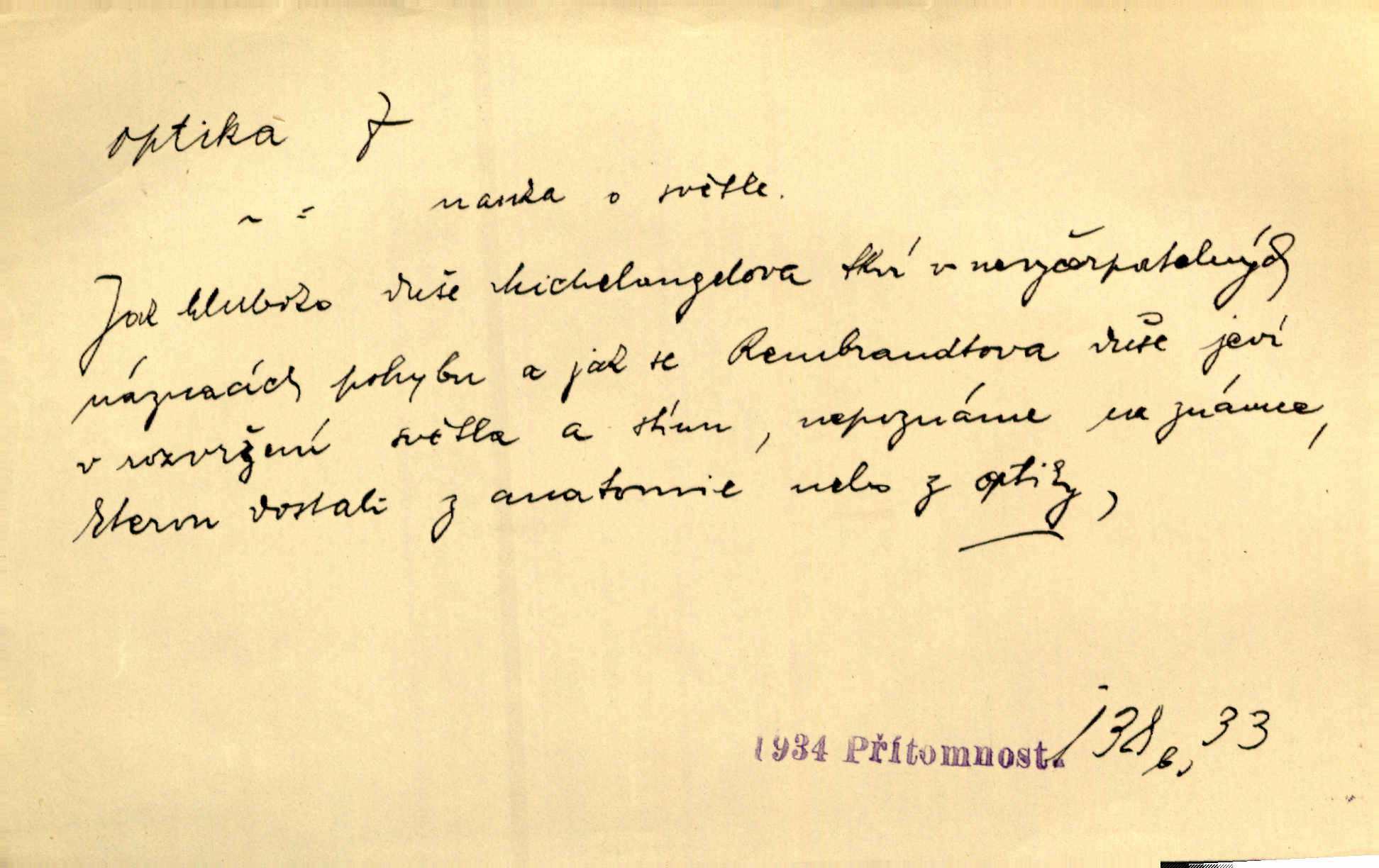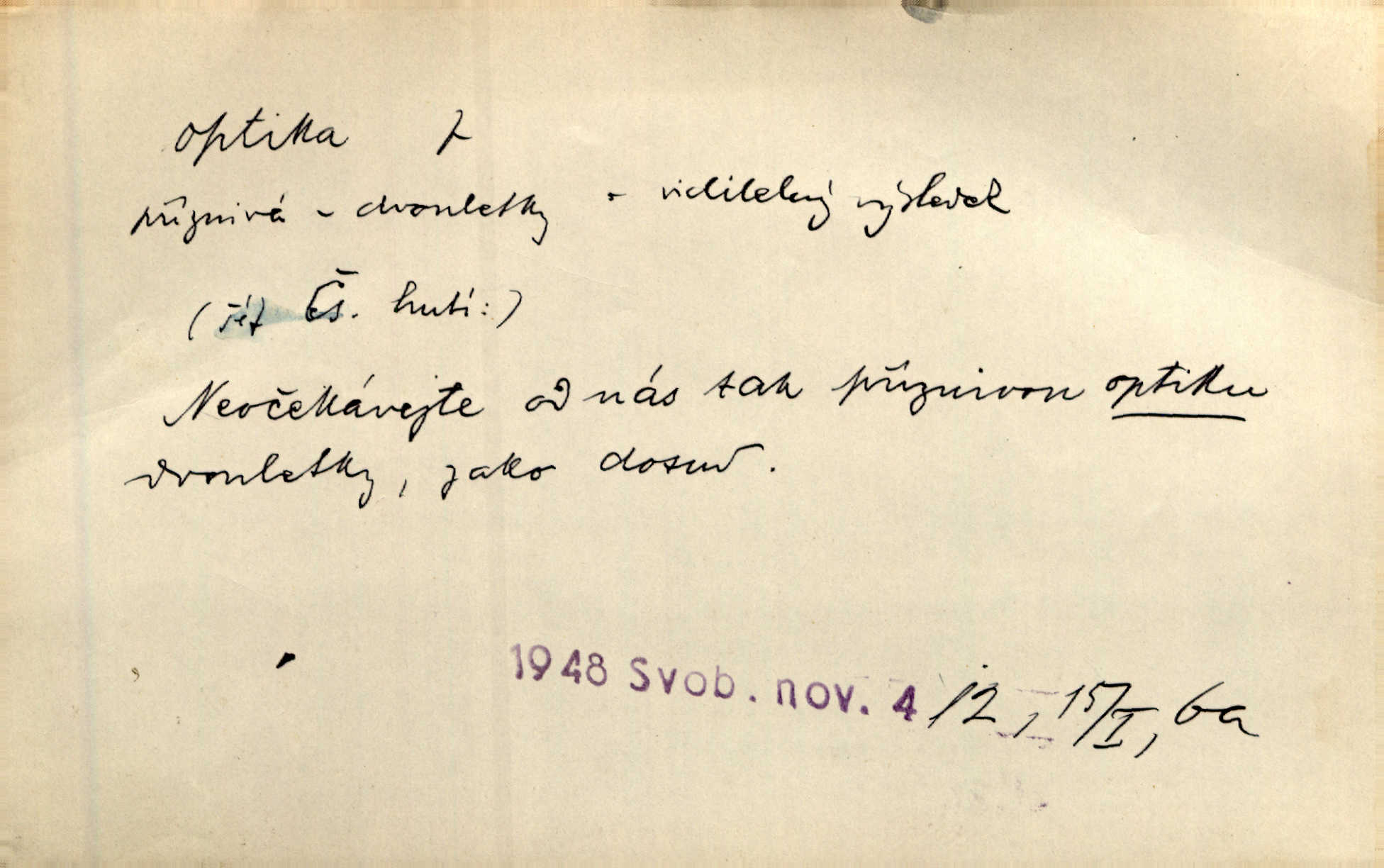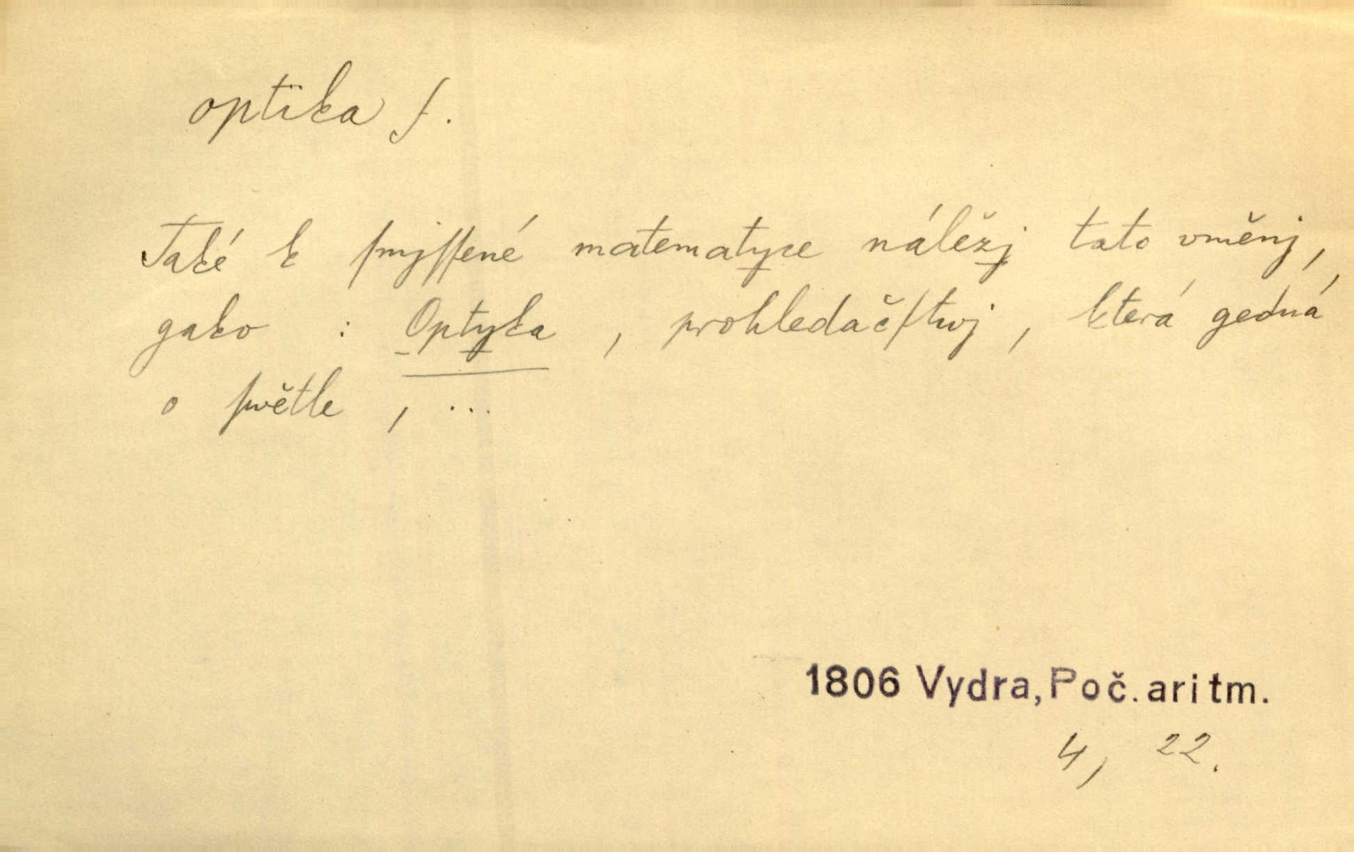- optika, -y f. fys. nauka o světle; optická část přístroje n. stroje (čočky, hranoly a pod.); souhrn vlastností optického skla, čoček o pod. D schopnost nazírání, posuzování. Jeho [Nezvalova] optika je v této studii časné mladosti nesrovnatelně složitější než i nadprůměrný rozhled sebevyspělejšího dítěte. Sez. Každé umění se absolutností své optiky ocítá v nejtěsnější blízkosti náboženství. Panor. Jejich [nakladatelů] programová slabost je neuchránila před skreslenou optikou kamarádského pařížsko-pražského souručenství. Přít.